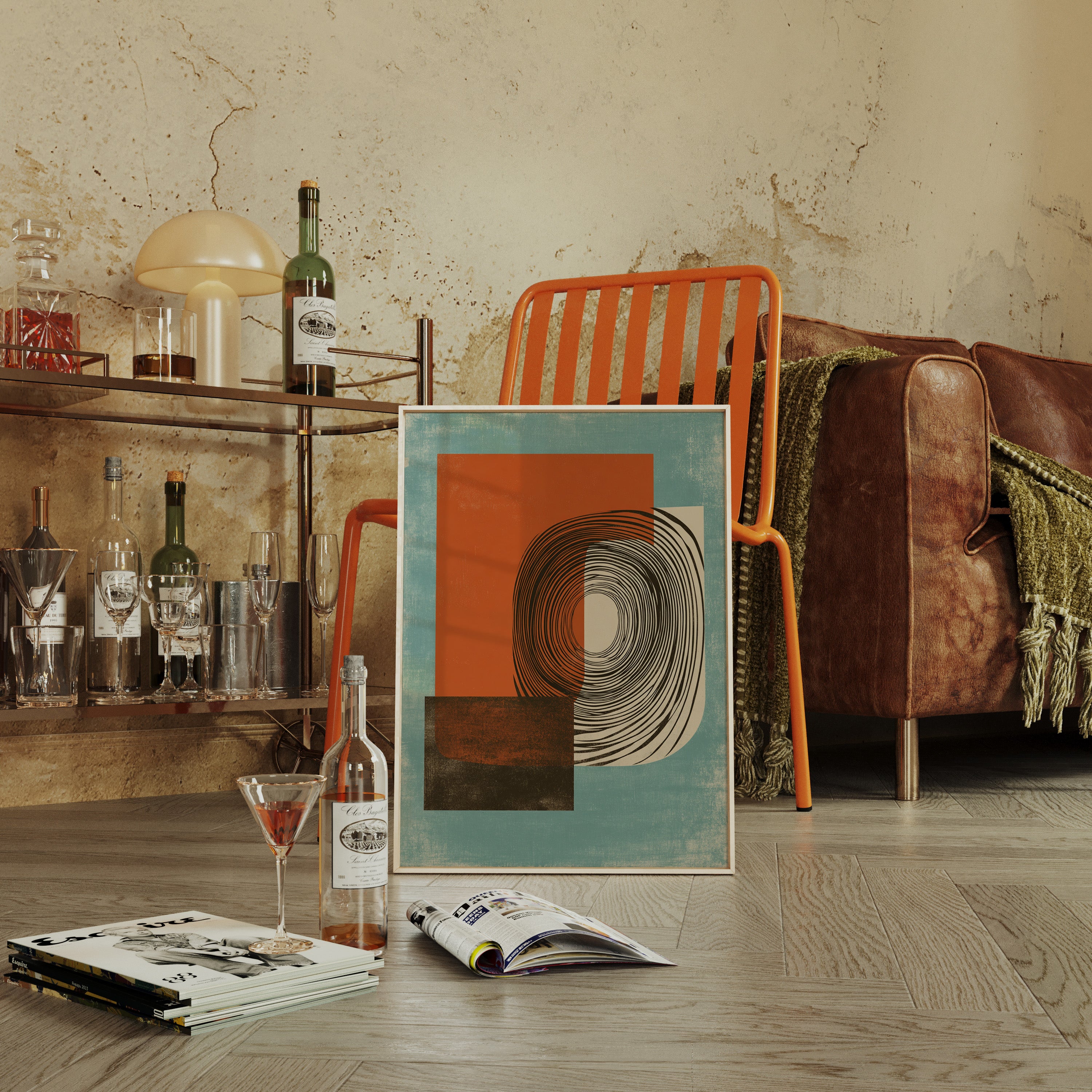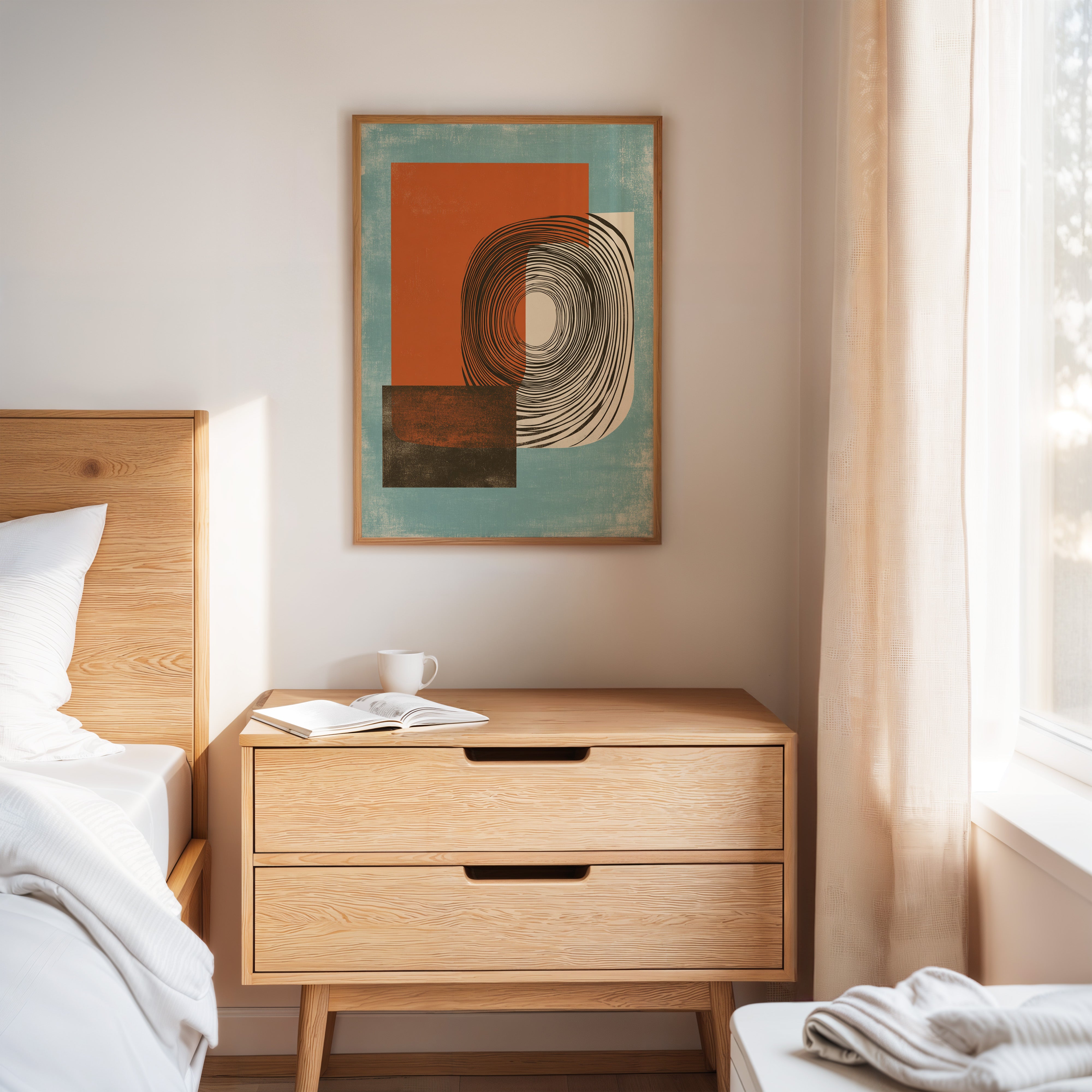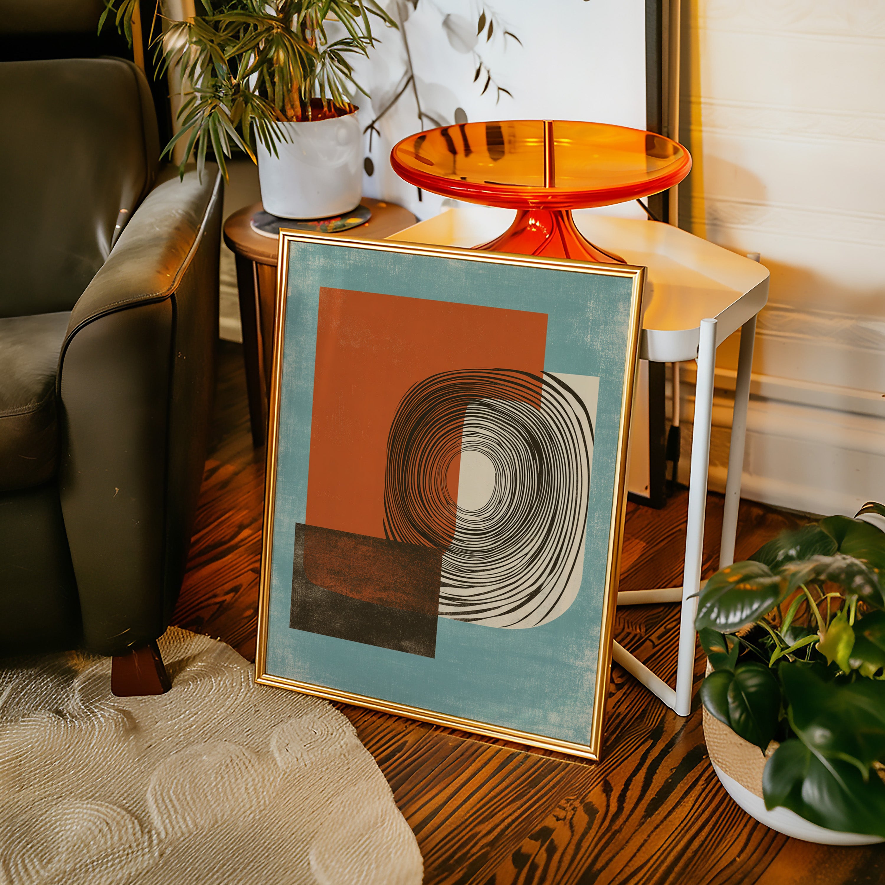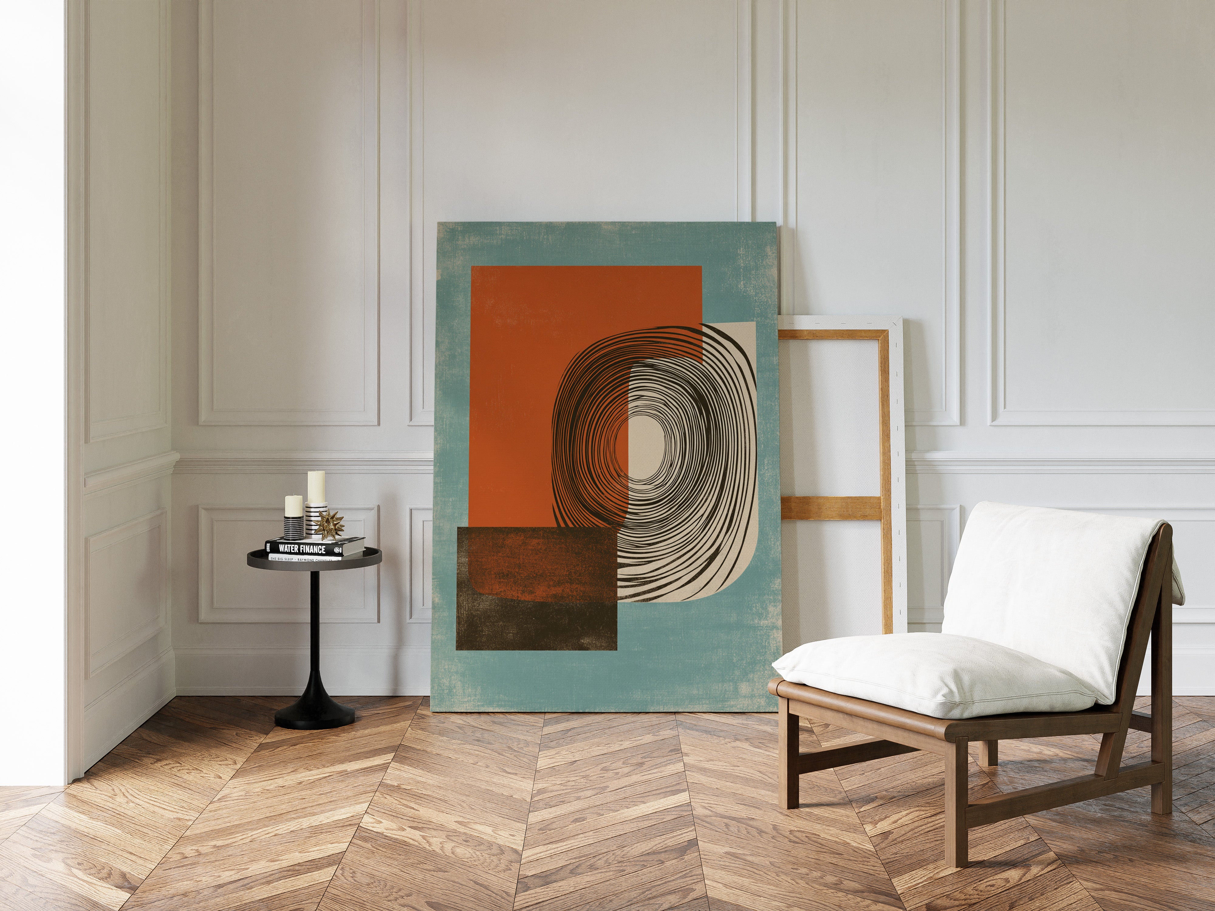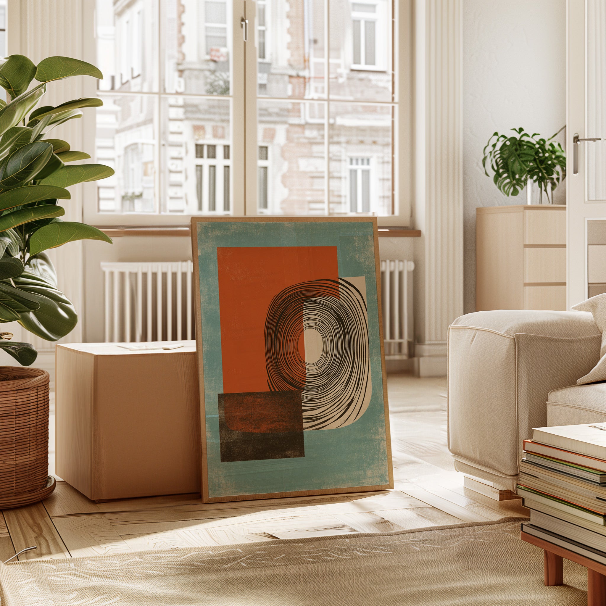 In a dance of organic forms, colors merge and play, inviting the viewer into a world of tactile sensation and layered depth. This piece embodies the artisanal spirit, where each line and hue tells a story of craftsmanship and connection. Rich terracotta swirls embrace a creamy orbit, balanced by the grounding presence of deep brown and the cool touch of turquoise, evoking a sense of harmony and nature's embrace. Ideal for a creative workspace or a cozy reading nook, this piece inspires reflection and conversation.