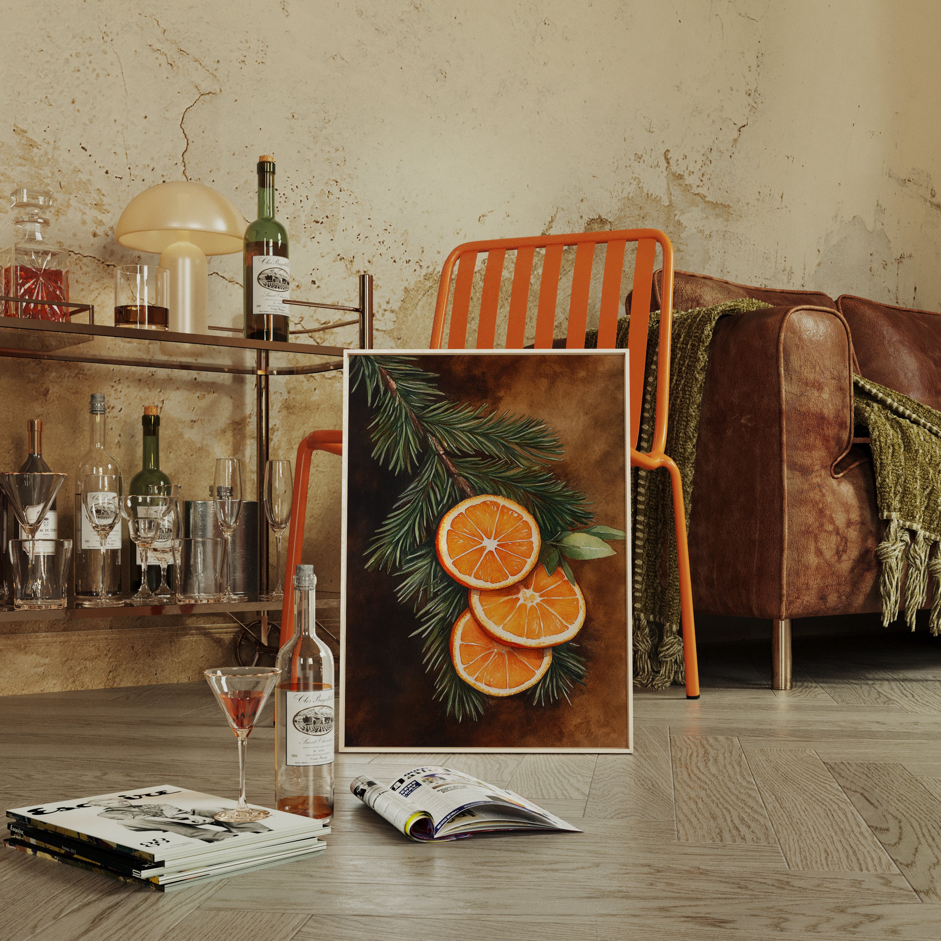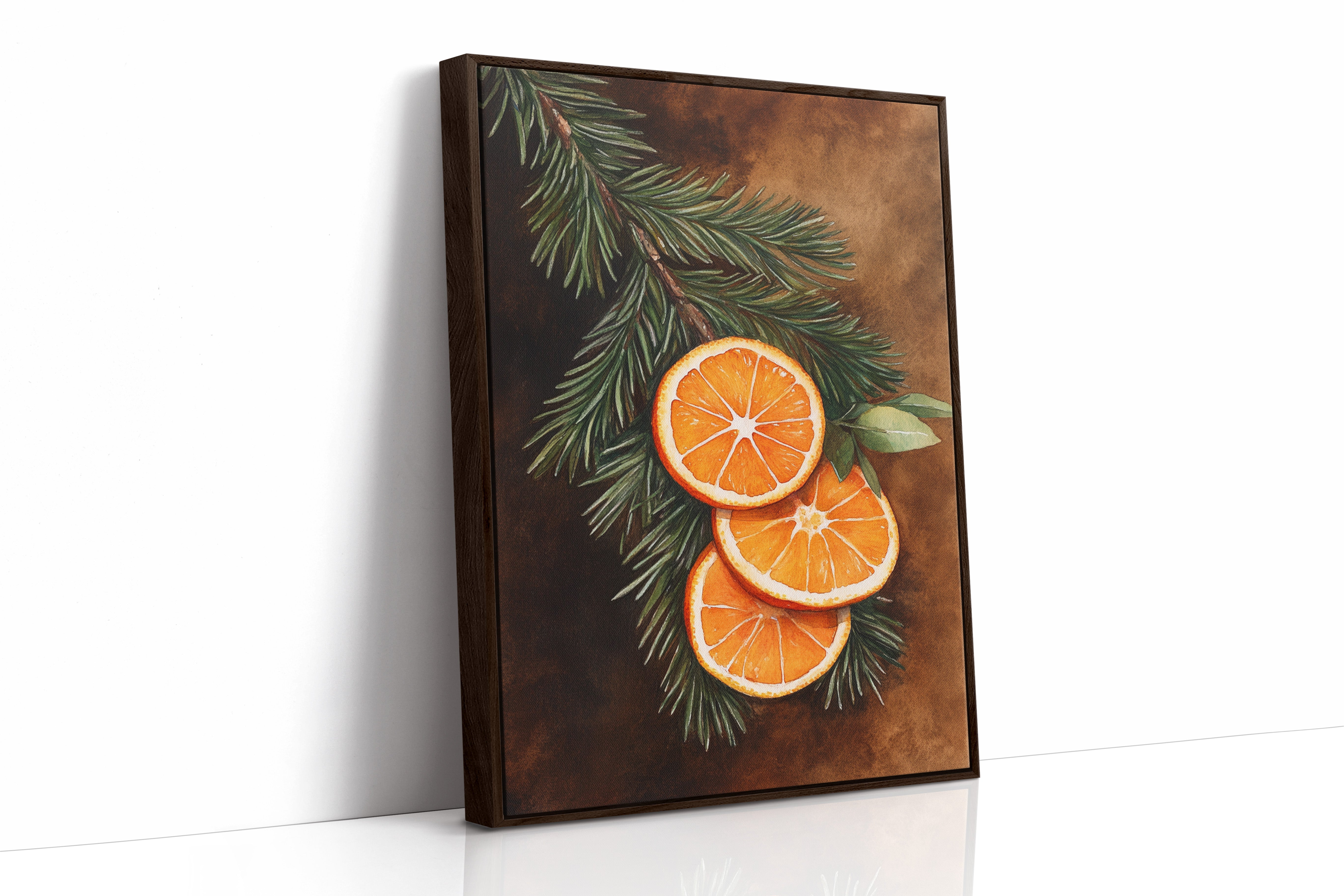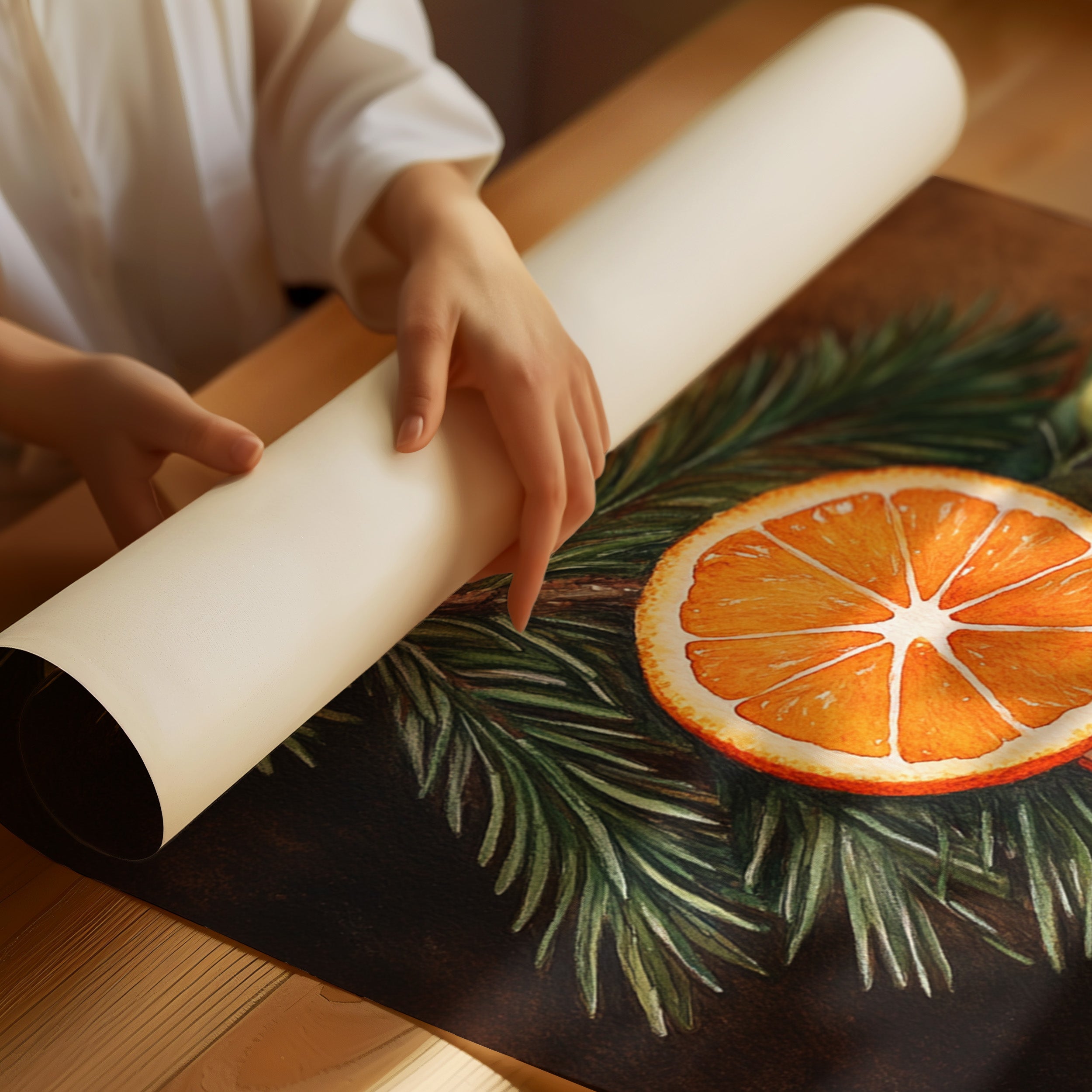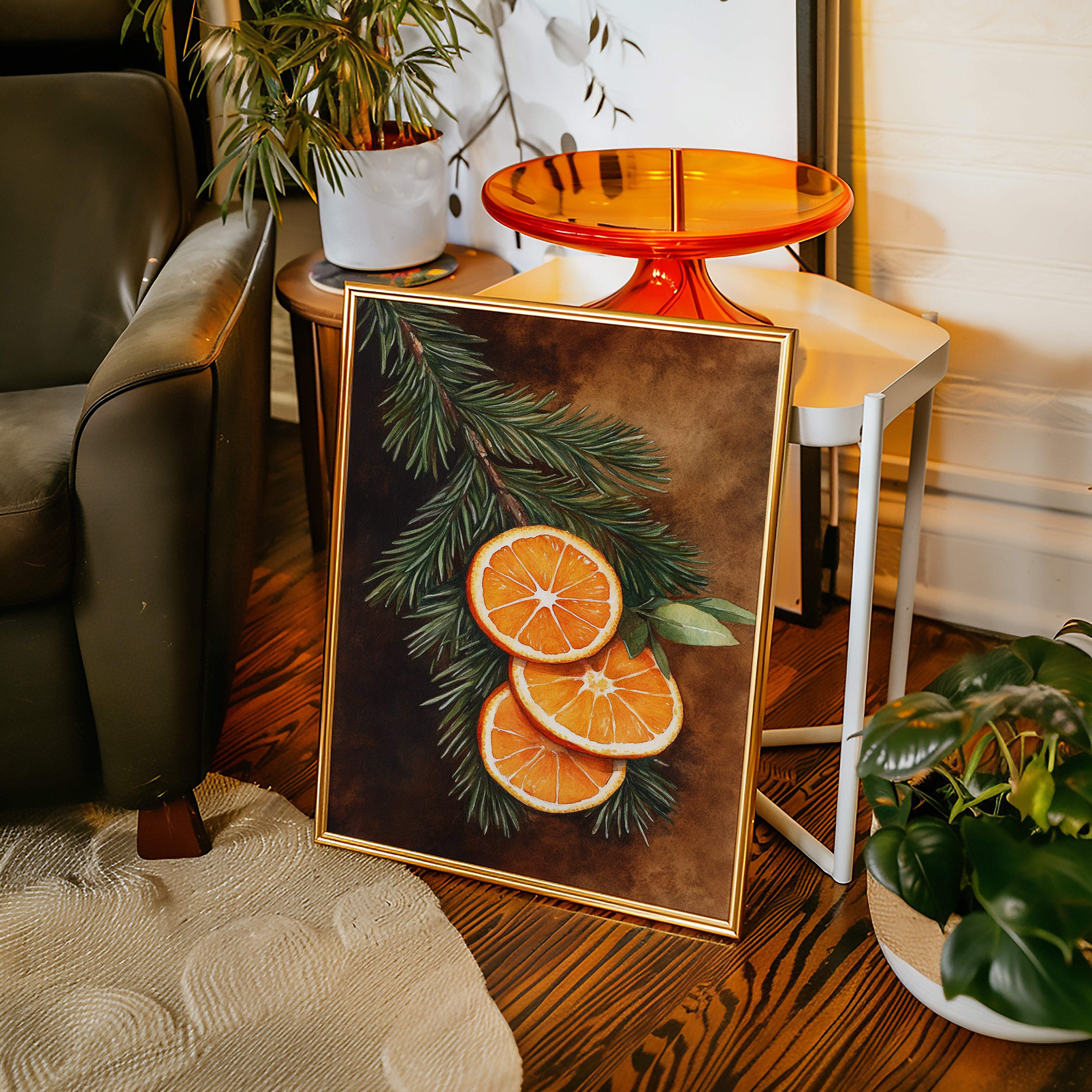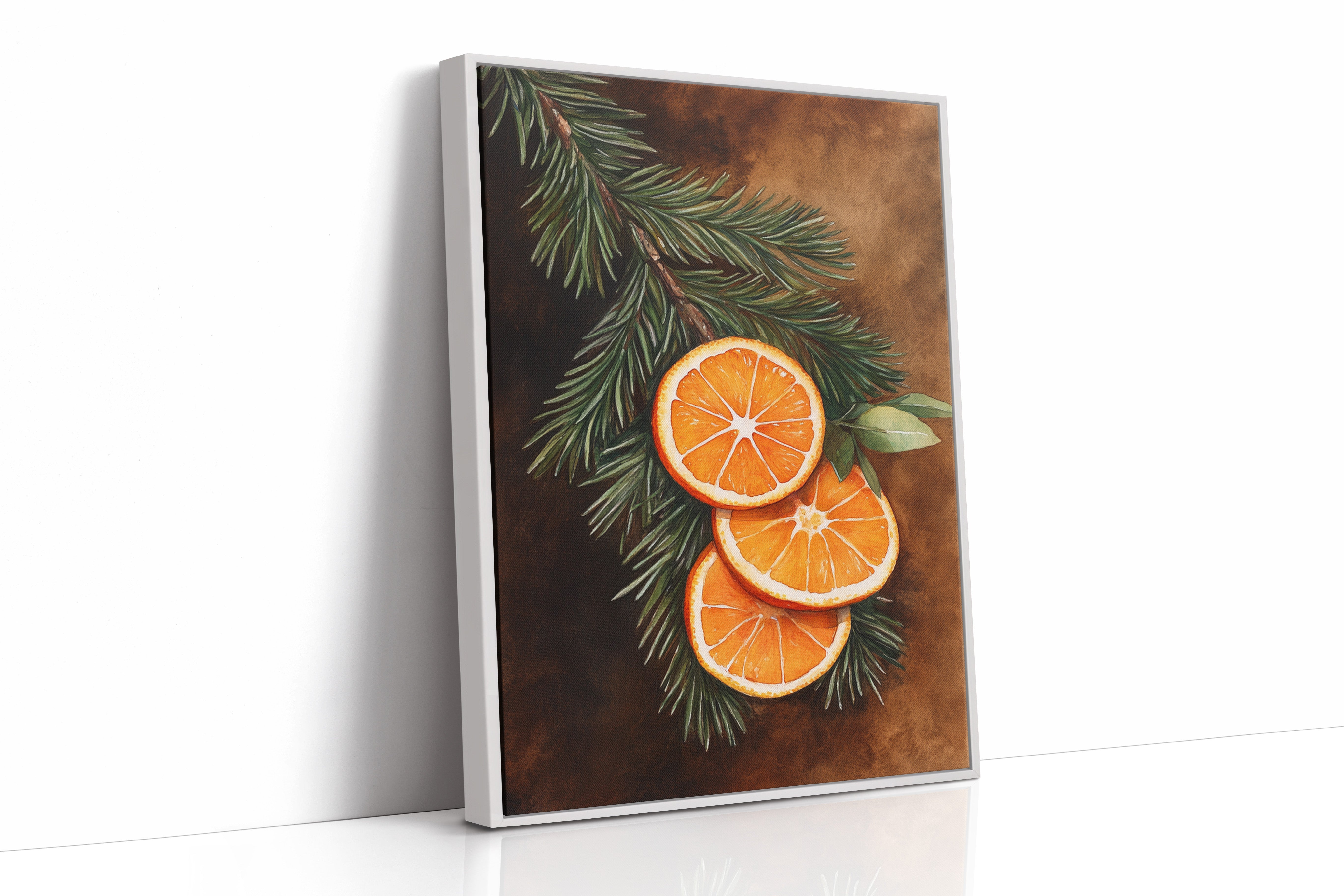 A gentle embrace of winter warmth and citrus zest fills the room. Nestled within 'Winter Solace,' this piece harmonizes festive charm with cozy elegance. Perfect for living rooms or welcoming entryways, where its vibrant tones invite warmth and cheer. - Archival-quality fine art paper (matte or satin) - Premium pigment-based inks - Available unframed or in natural wood frames - Printed in the USA - Size refers to print only; frame adds ~1" to all sides