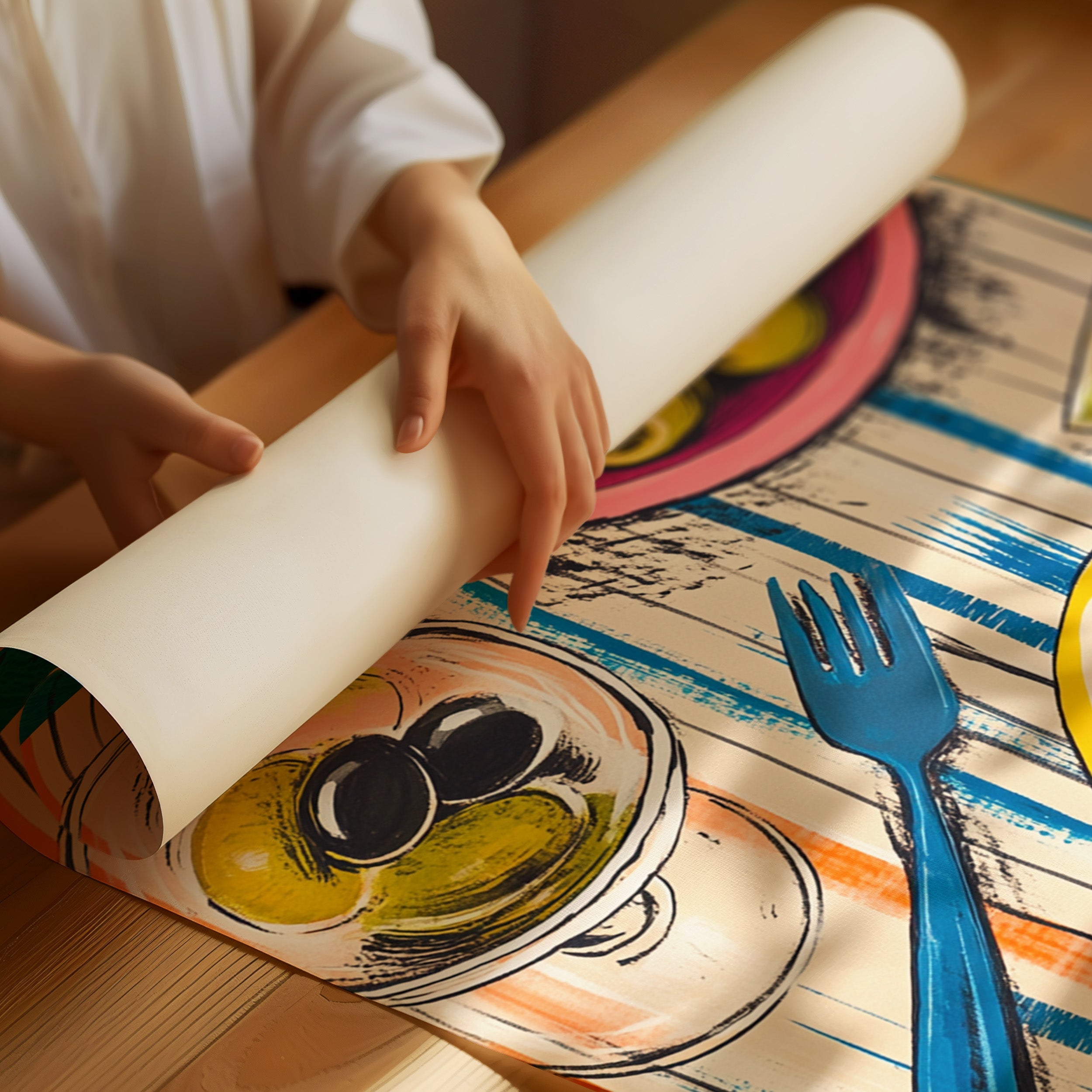 Perfect for modern dining rooms, bright kitchens, or any space where food and conversation flow freely. Its energetic palette and graphic style make it an ideal focal point for entertaining areas that celebrate the art of gathering.