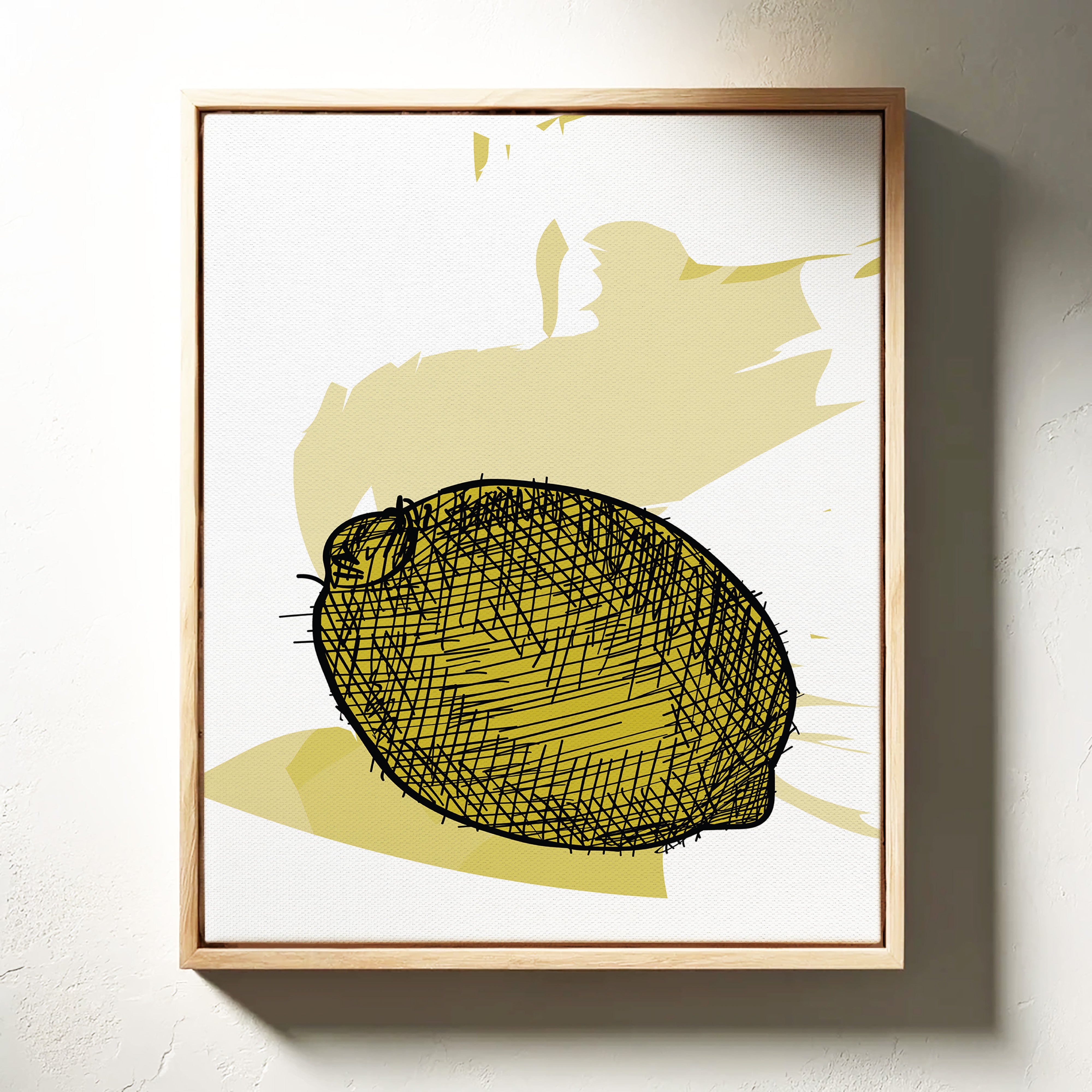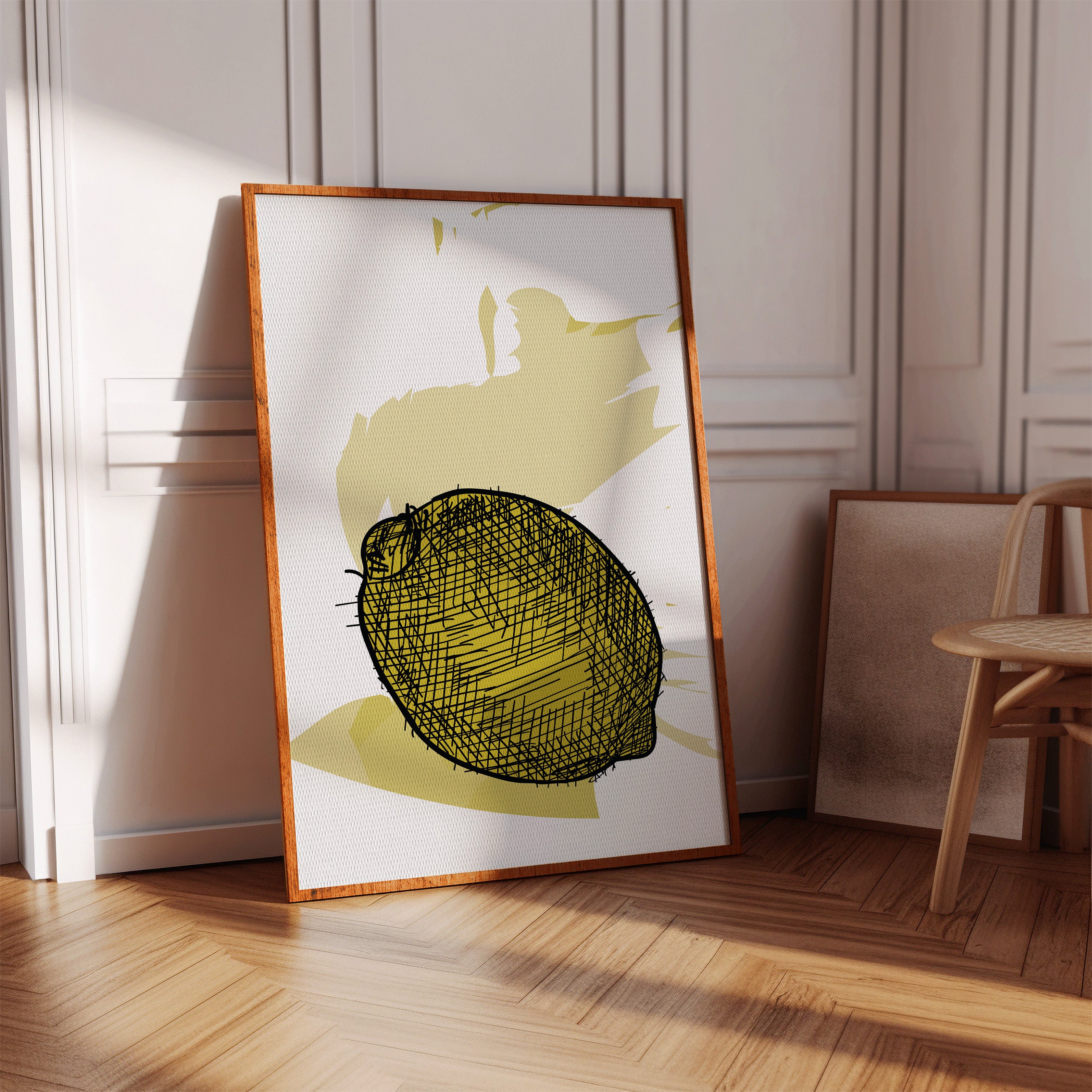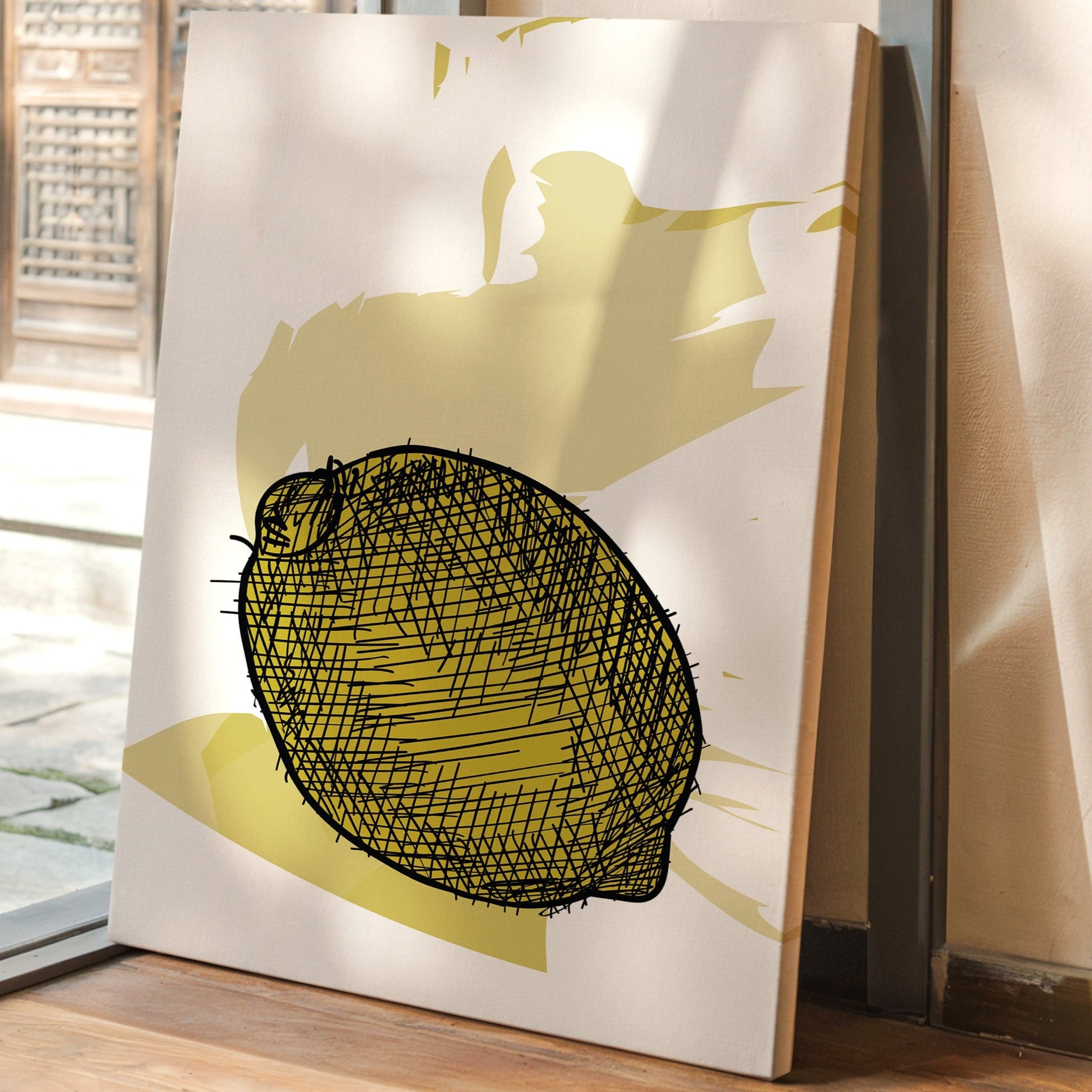 A bold lemon emerges from delicate crosshatched lines, casting its sunny disposition against a warm cream backdrop. This piece from our Contemporary collection marries minimalist design with expressive illustration techniques. The careful balance of negative space and detailed linework creates a striking visual rhythm, while the soft yellow palette adds a gentle warmth that feels both modern and timeless. The composition speaks to the beauty of simplicity, where a single subject becomes a powerful statement through thoughtful artistic restraint. Perfect for bringing a fresh, artistic energy to kitchen spaces or adding a sophisticated pop of color to neutral dining areas. The piece invites quiet contemplation while maintaining an air of playful sophistication.