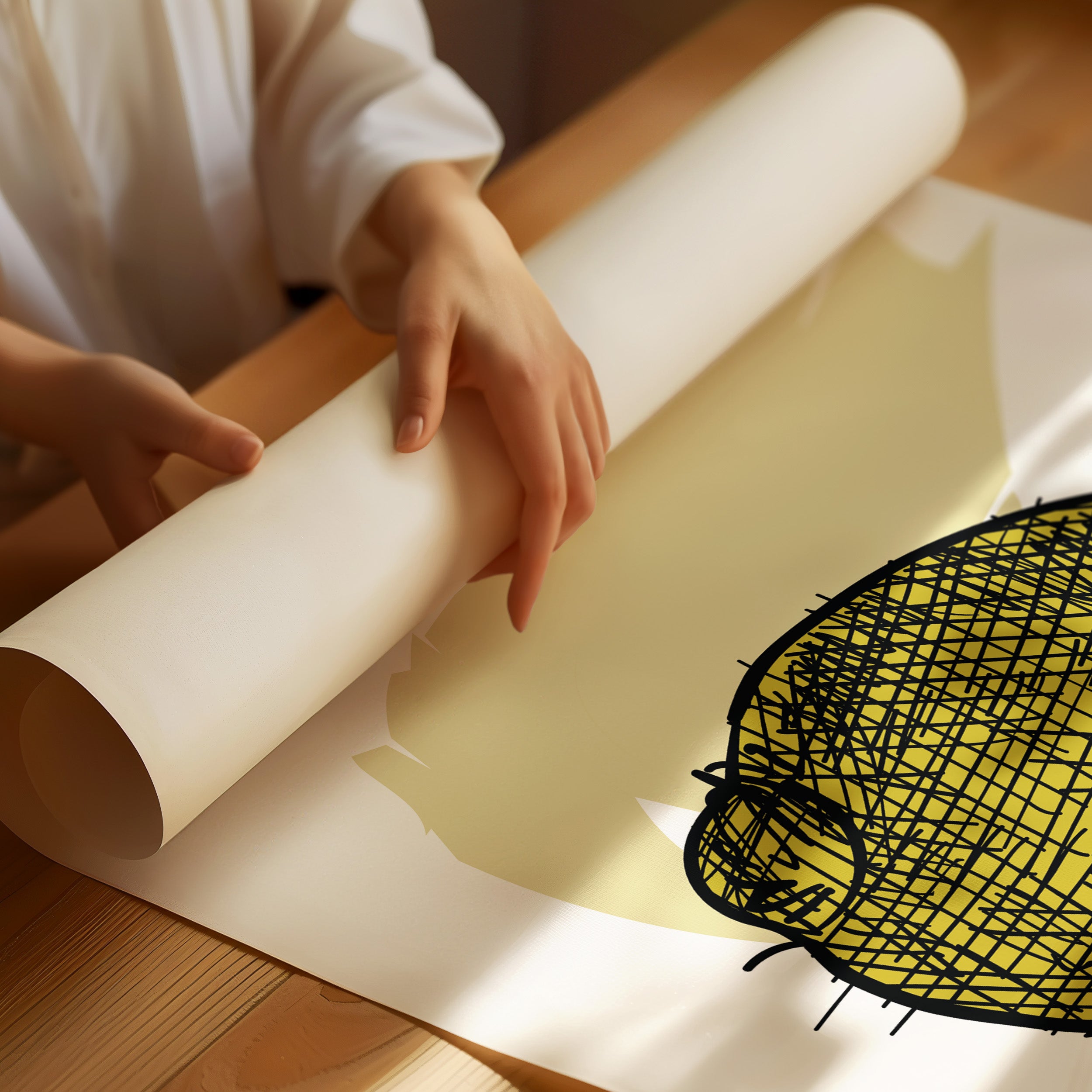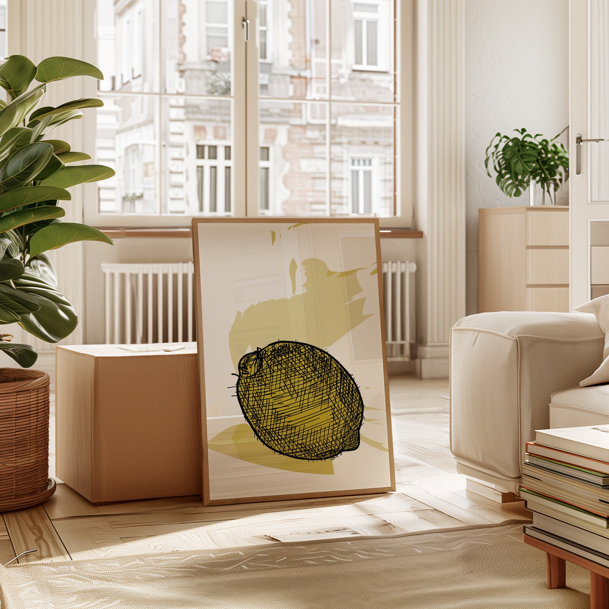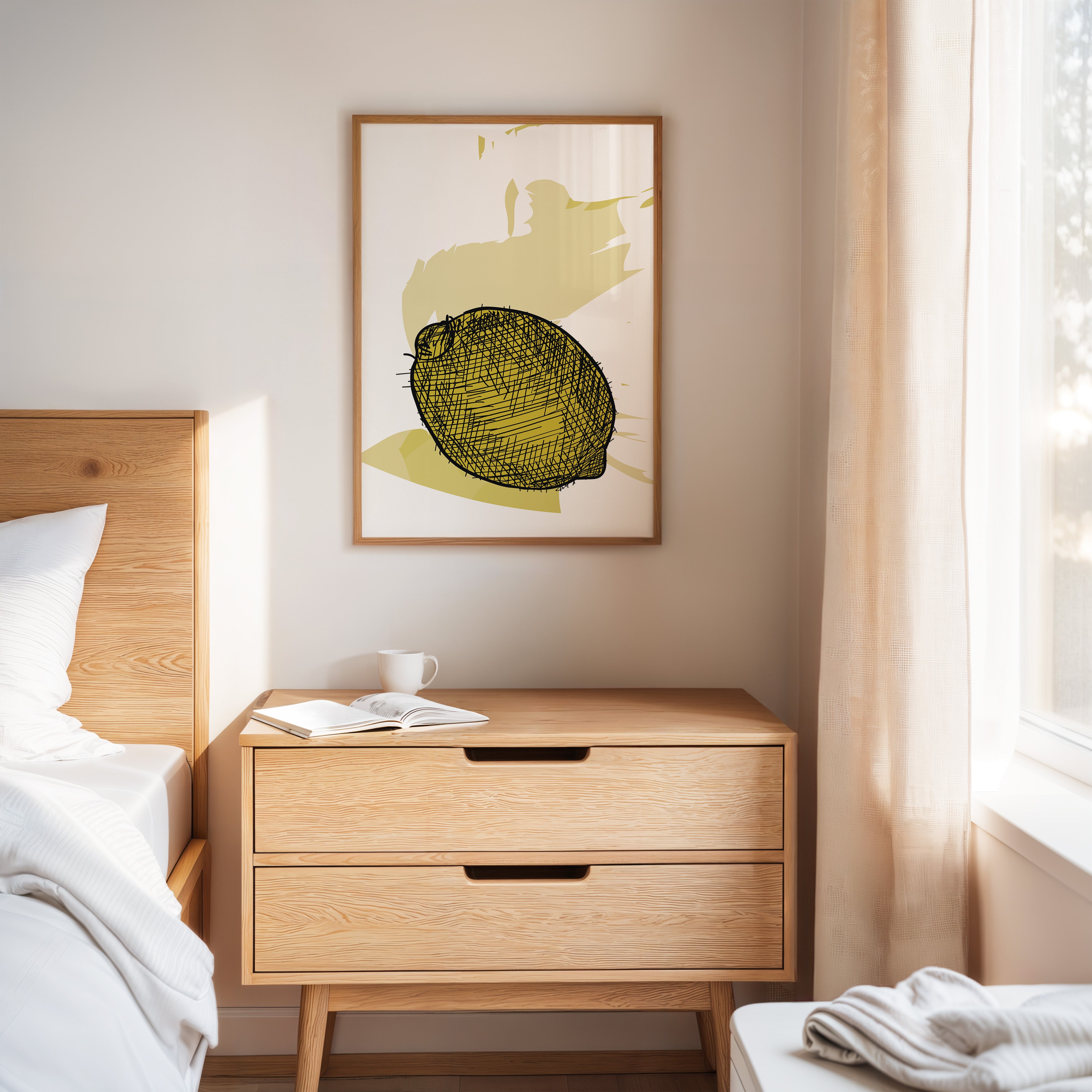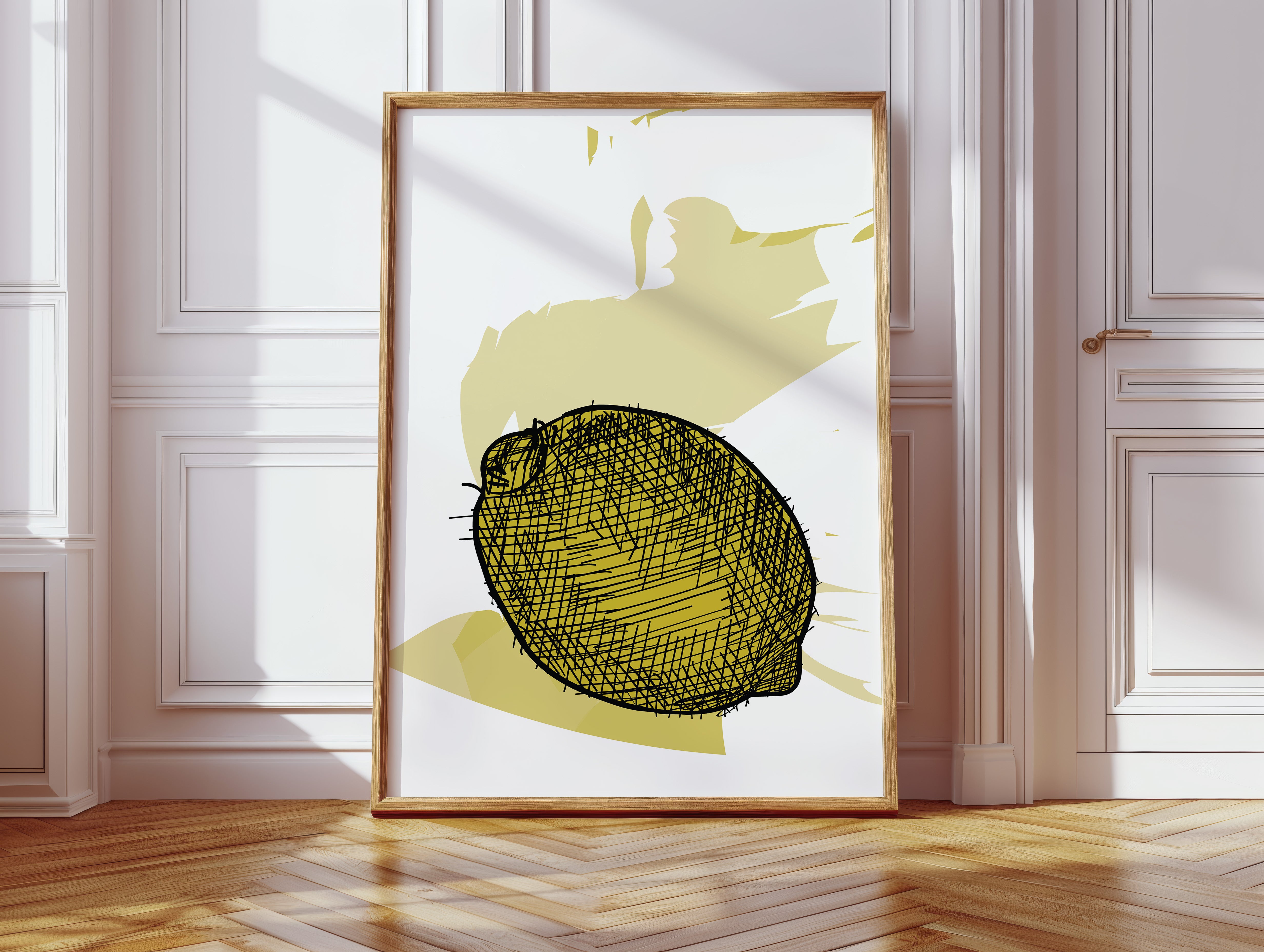 A bold lemon emerges from delicate crosshatched lines, casting its sunny disposition against a warm cream backdrop. This piece from our Contemporary collection marries minimalist design with expressive illustration techniques. The careful balance of negative space and detailed linework creates a striking visual rhythm, while the soft yellow palette adds a gentle warmth that feels both modern and timeless. The composition speaks to the beauty of simplicity, where a single subject becomes a powerful statement through thoughtful artistic restraint. Perfect for bringing a fresh, artistic energy to kitchen spaces or adding a sophisticated pop of color to neutral dining areas. The piece invites quiet contemplation while maintaining an air of playful sophistication.