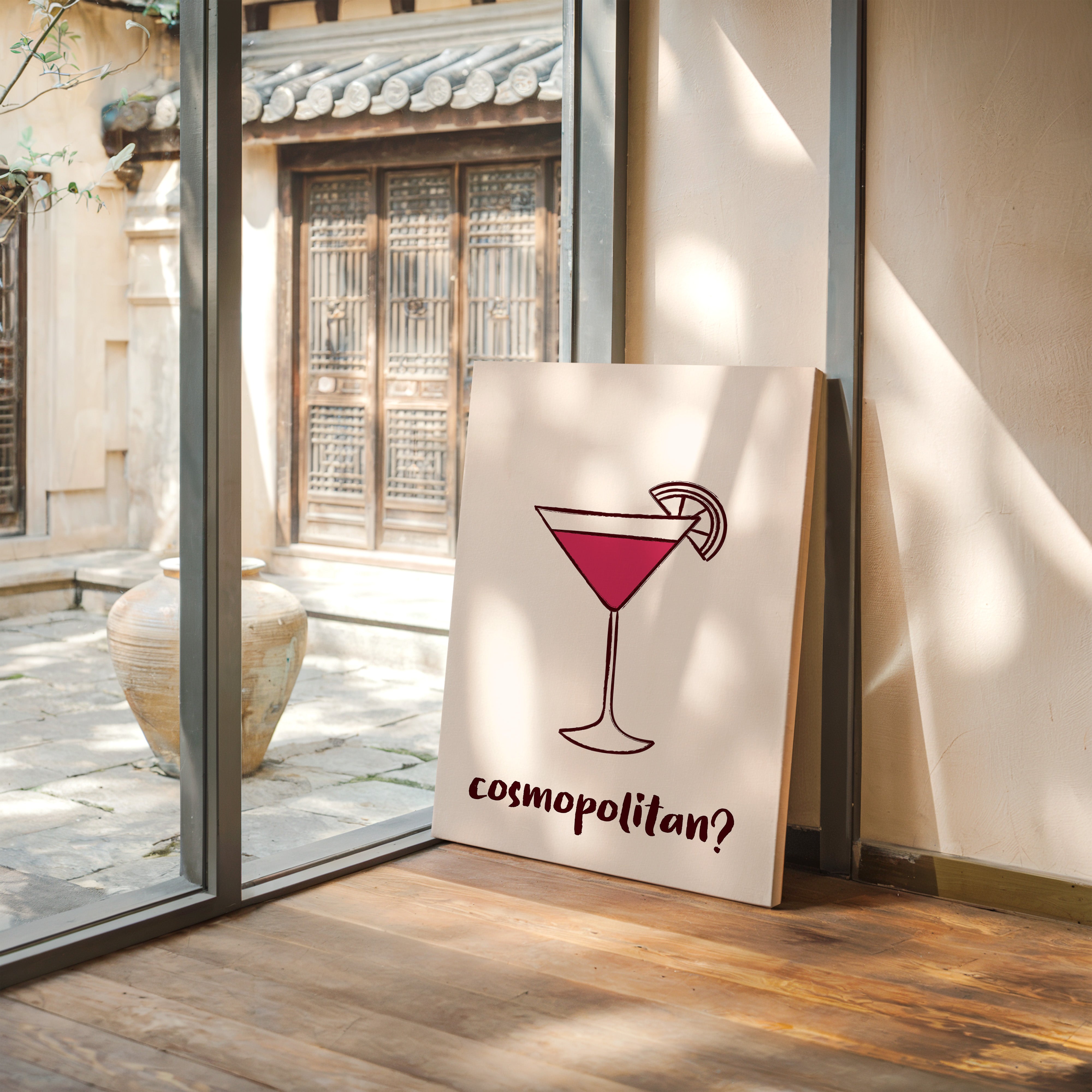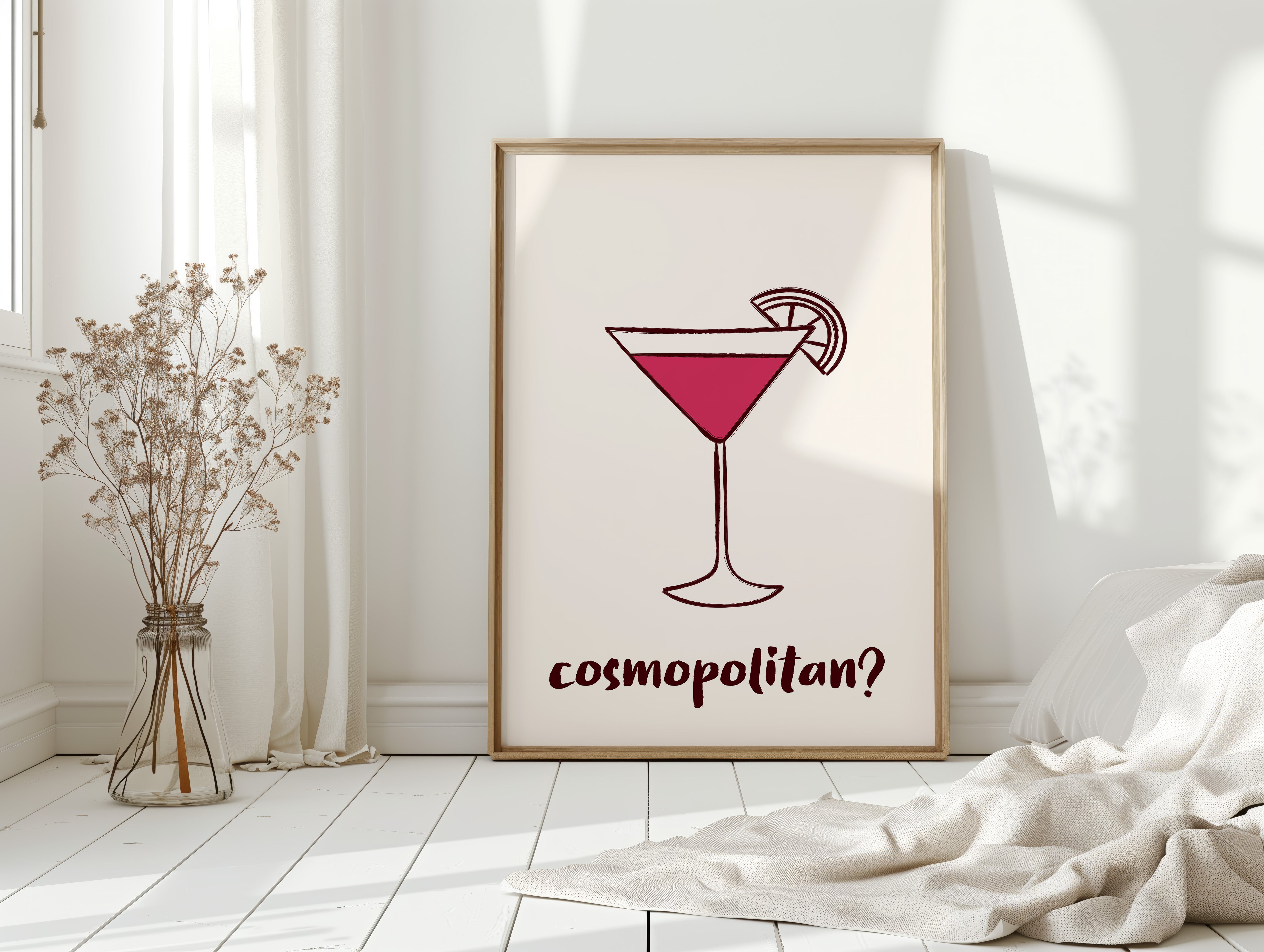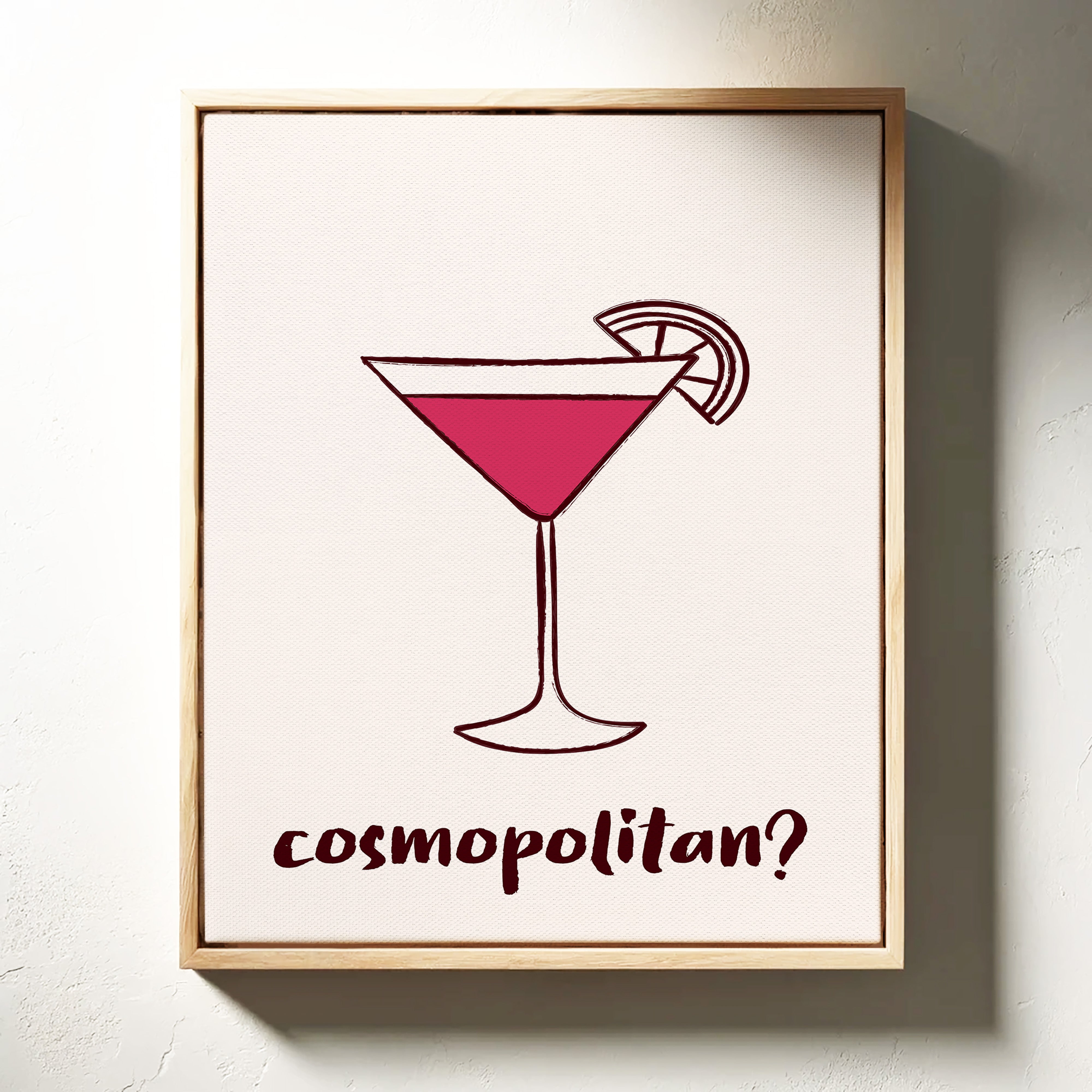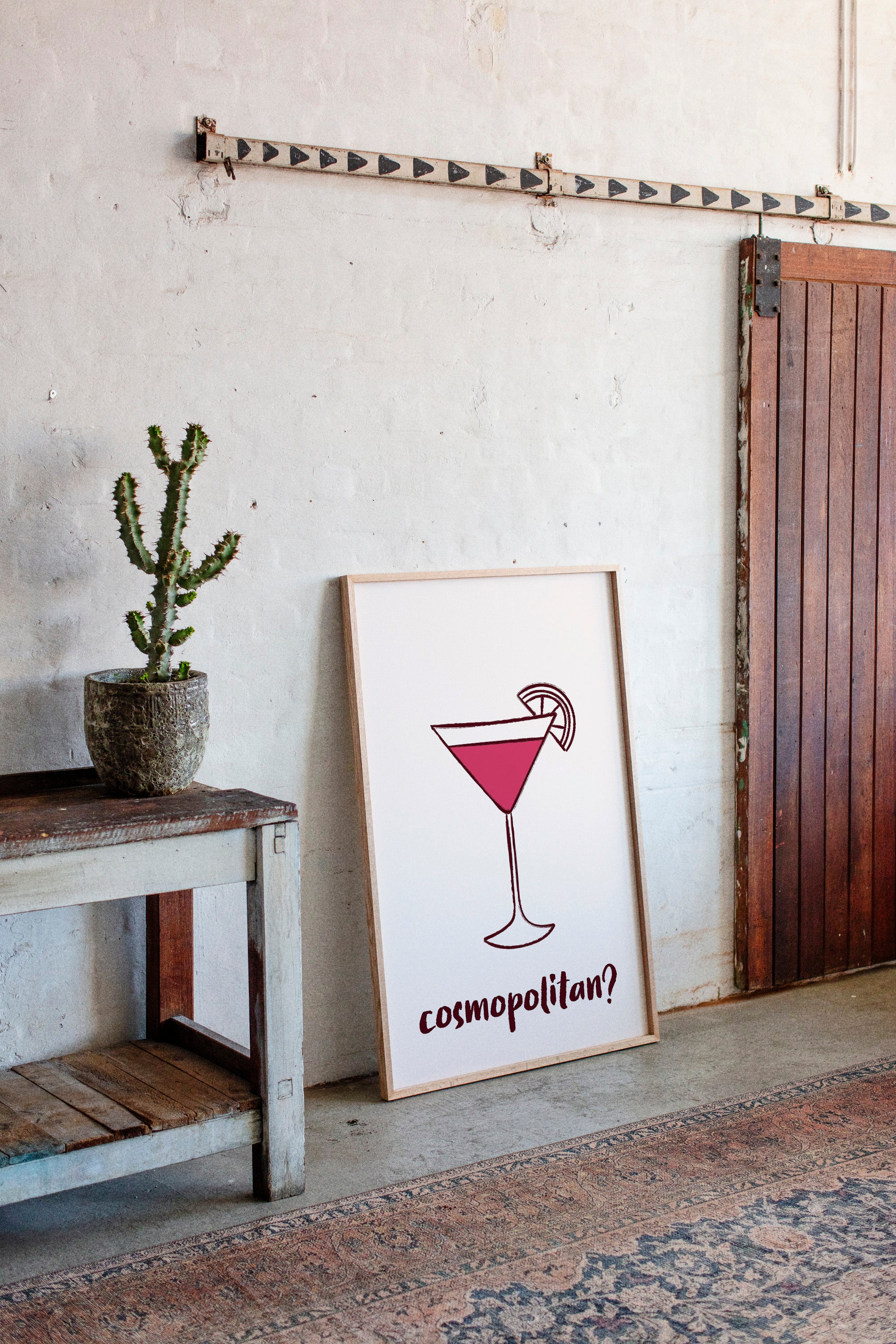 A single martini glass stands poised against pristine white, its contents a bold splash of pink promise. This minimalist piece from our Contemporary collection captures the essence of sophisticated urban living. The clean lines of the glass contrast beautifully with the playful script below, while the deep burgundy outline and vibrant pink liquid create a striking visual dialogue. Perfect for adding a touch of cosmopolitan charm to a home bar area or dining space. Each viewing invites a new conversation, a fresh story waiting to unfold.