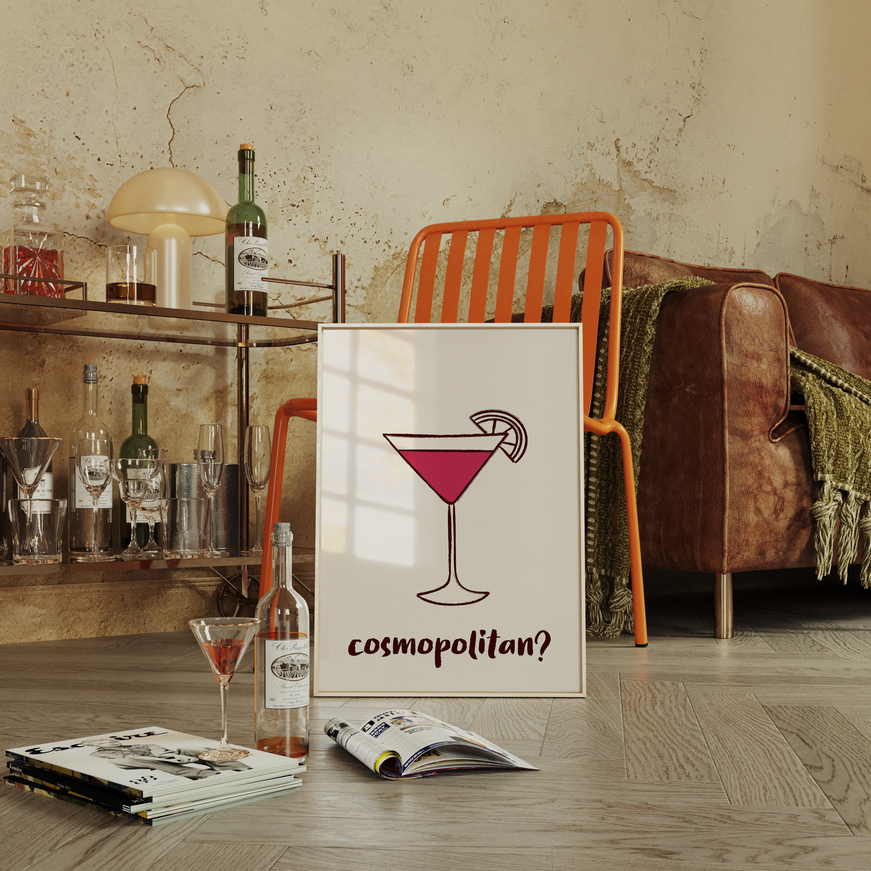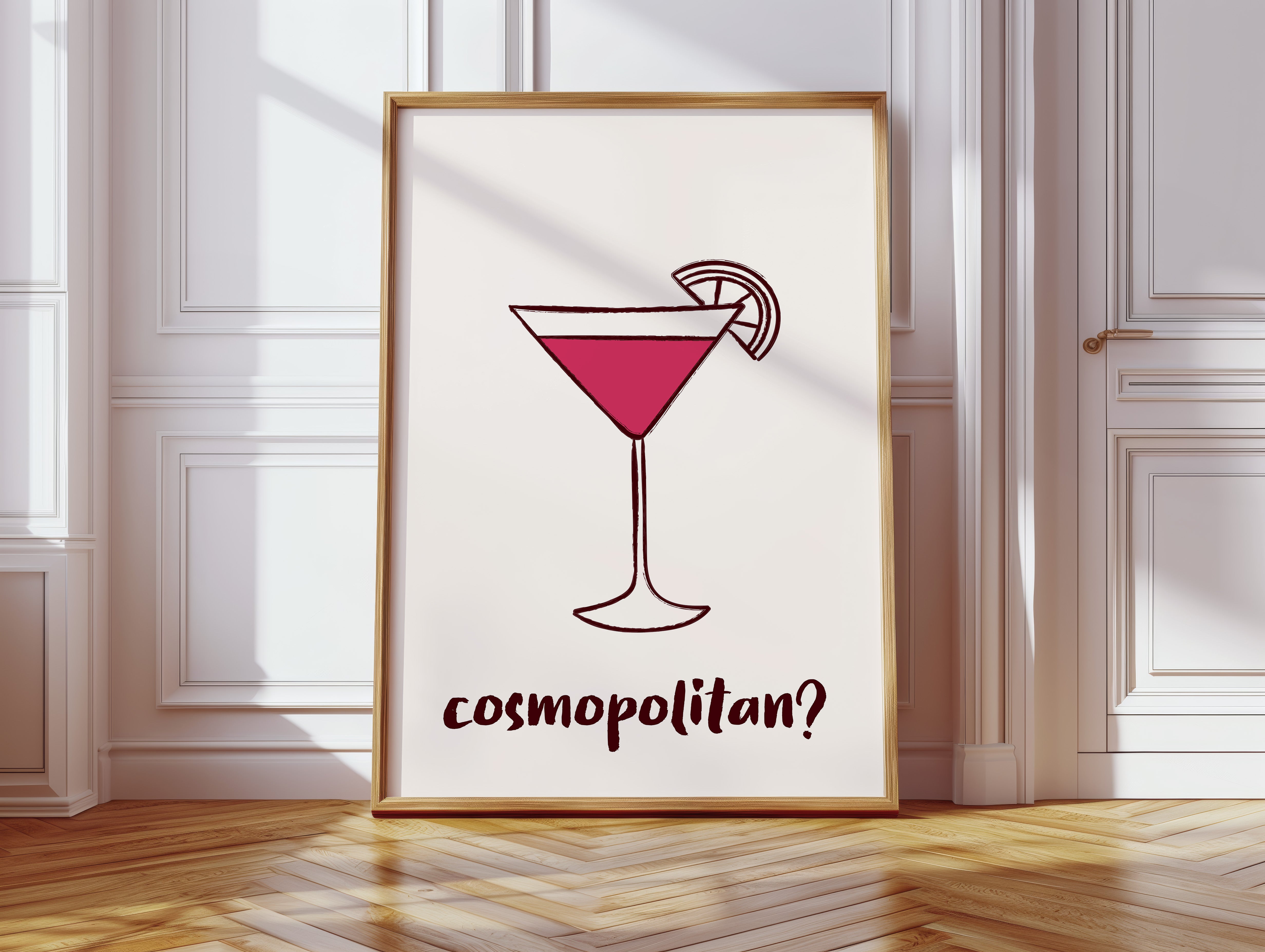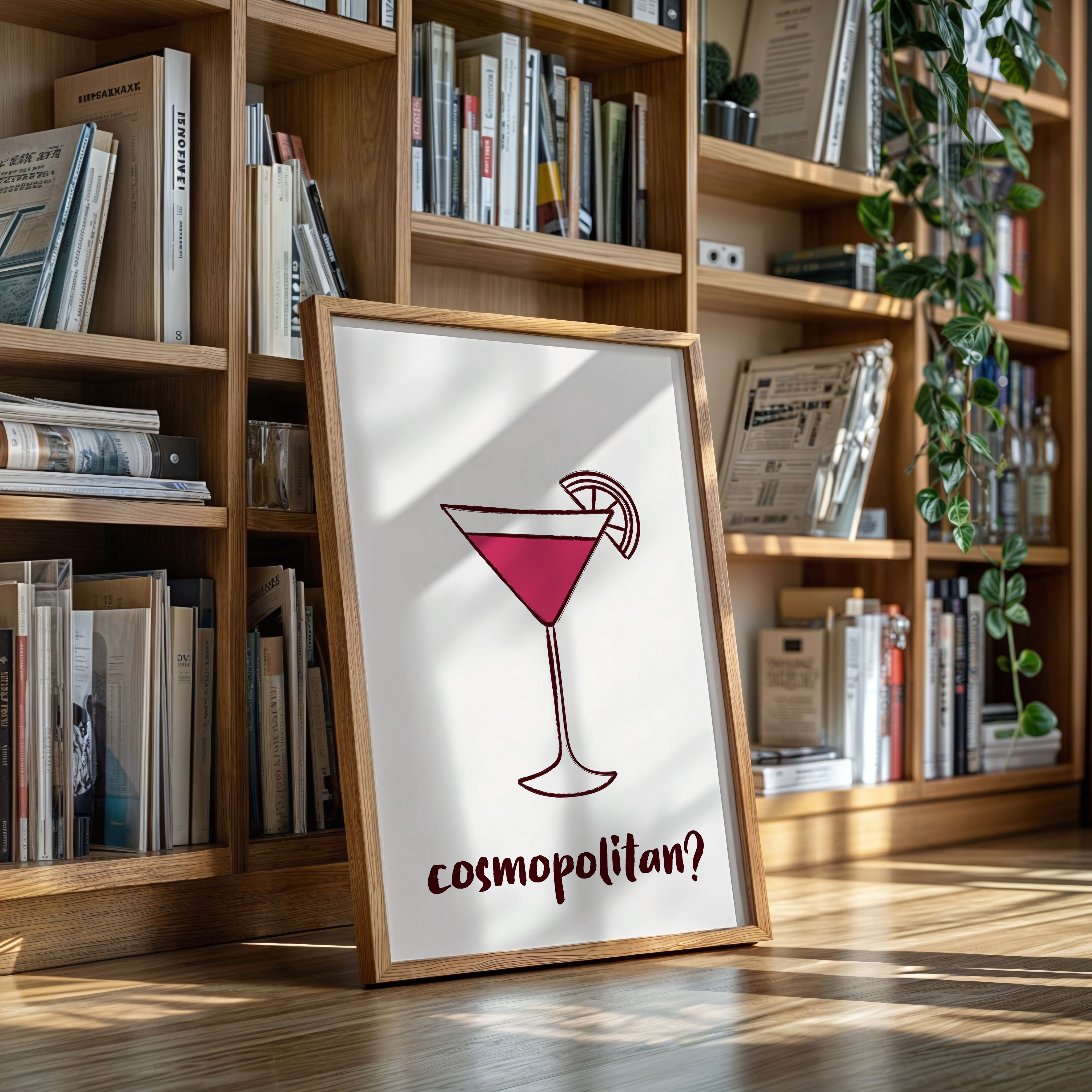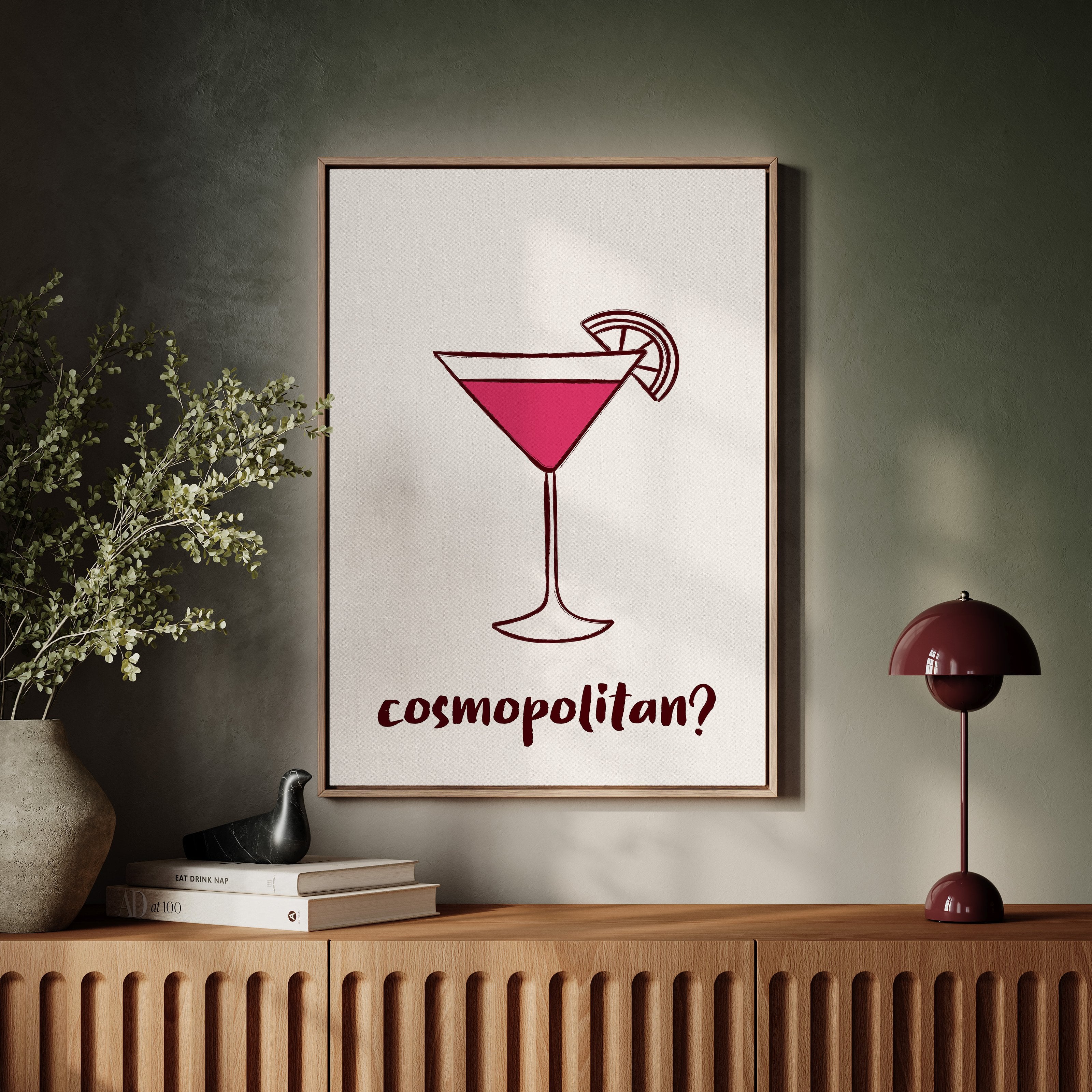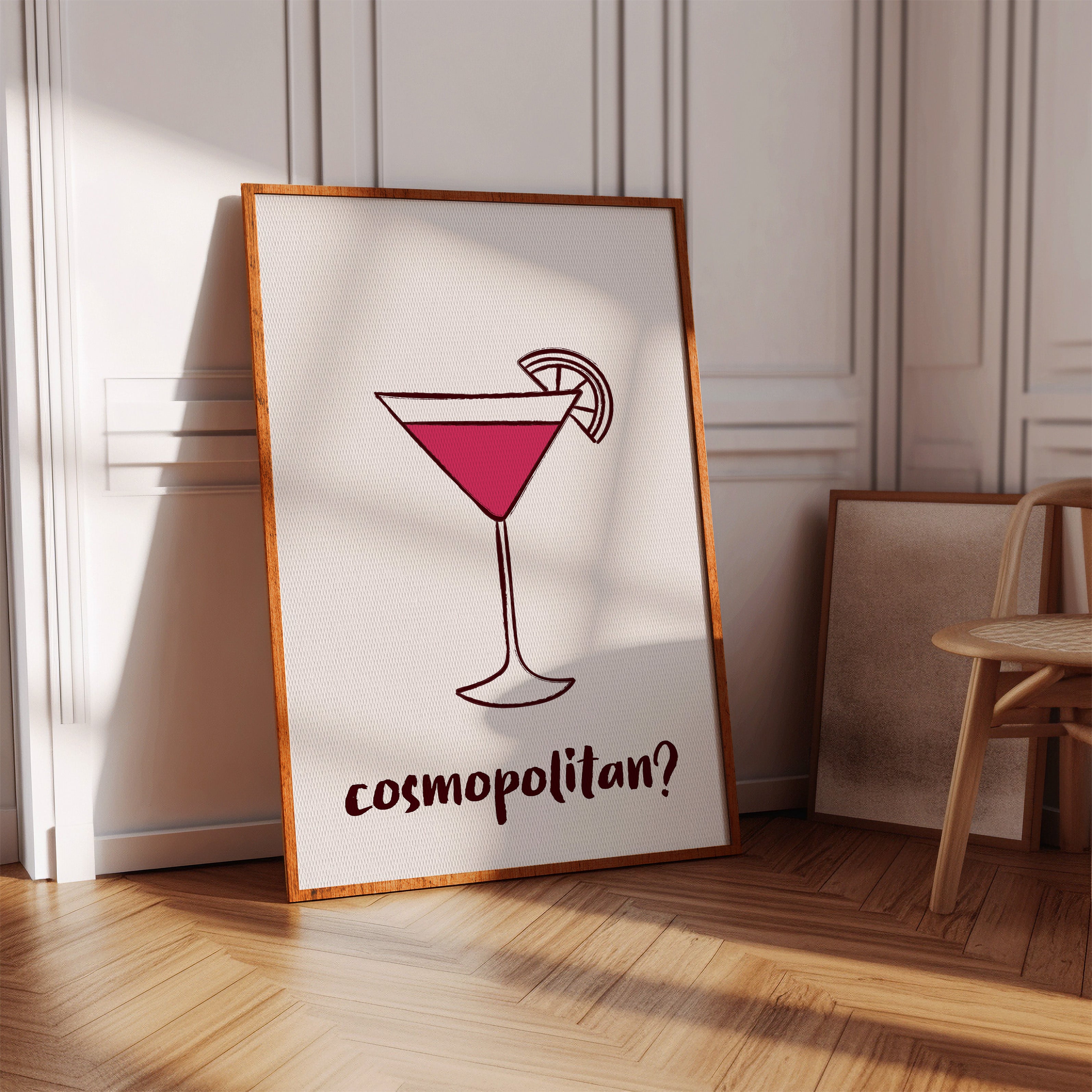 A single martini glass stands poised against pristine white, its contents a bold splash of pink promise. This minimalist piece from our Contemporary collection captures the essence of sophisticated urban living. The clean lines of the glass contrast beautifully with the playful script below, while the deep burgundy outline and vibrant pink liquid create a striking visual dialogue. Perfect for adding a touch of cosmopolitan charm to a home bar area or dining space. Each viewing invites a new conversation, a fresh story waiting to unfold.