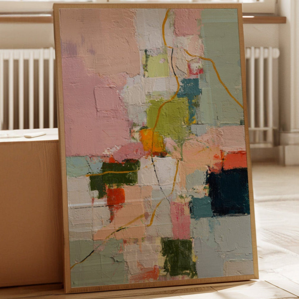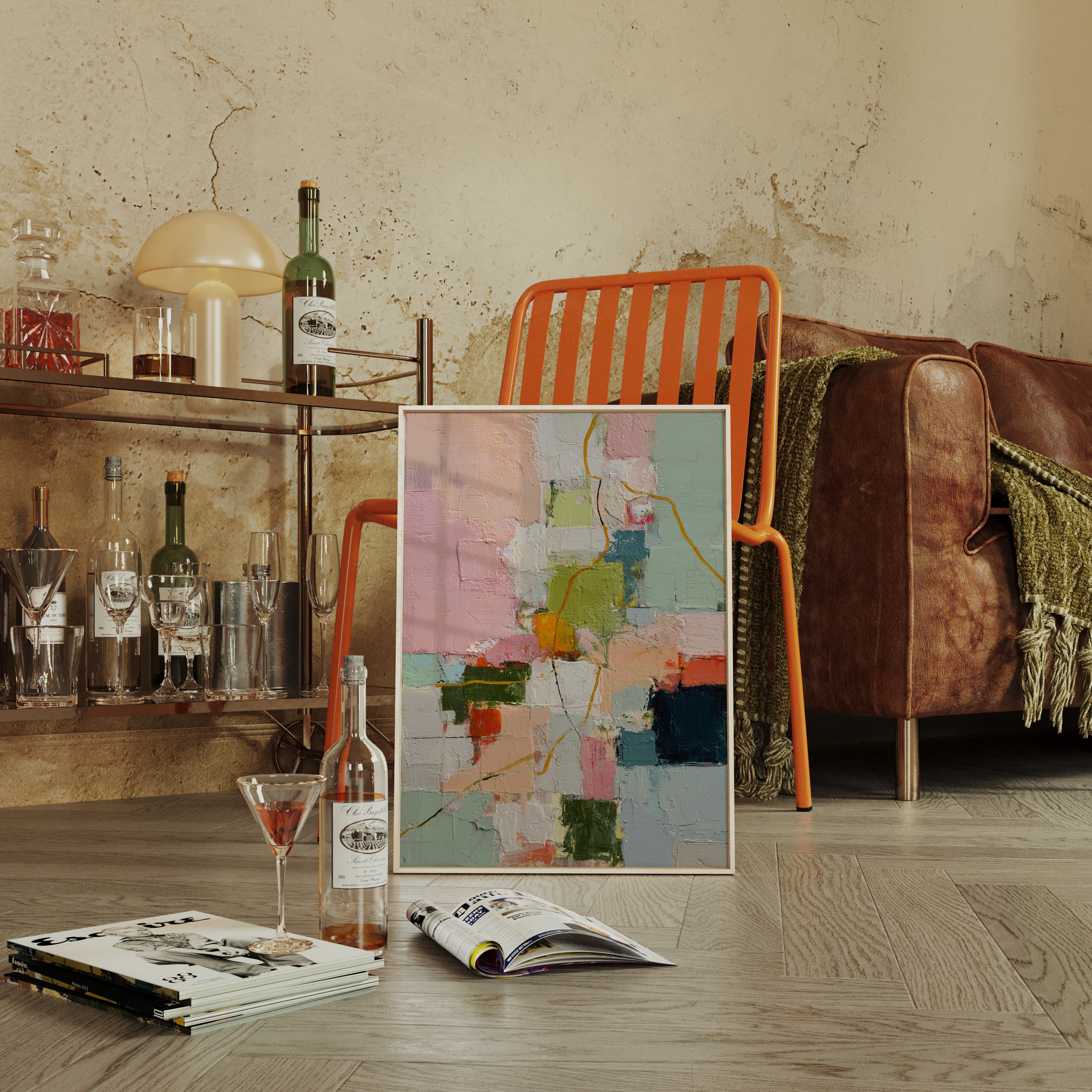 In a vibrant tapestry of hues, emotions intertwine, inviting the viewer to trace their own story through the strokes. This piece embodies the spirit of the Artisanal collection, where each layer tells a tale of creativity and craftsmanship. A symphony of soft pastels and bold accents creates a dynamic conversation, while textured surfaces add depth and intrigue, evoking a sense of warmth and familiarity. Perfect for a cozy nook or a lively studio, this piece encourages reflection and inspiration in any setting. - Archival-quality fine art paper (matte or satin) - Premium pigment-based inks - Available unframed or in natural wood frames - Printed in the USA - Size refers to print only; frame adds 1"" to all sides With care, let this artwork breathe life into your space.
