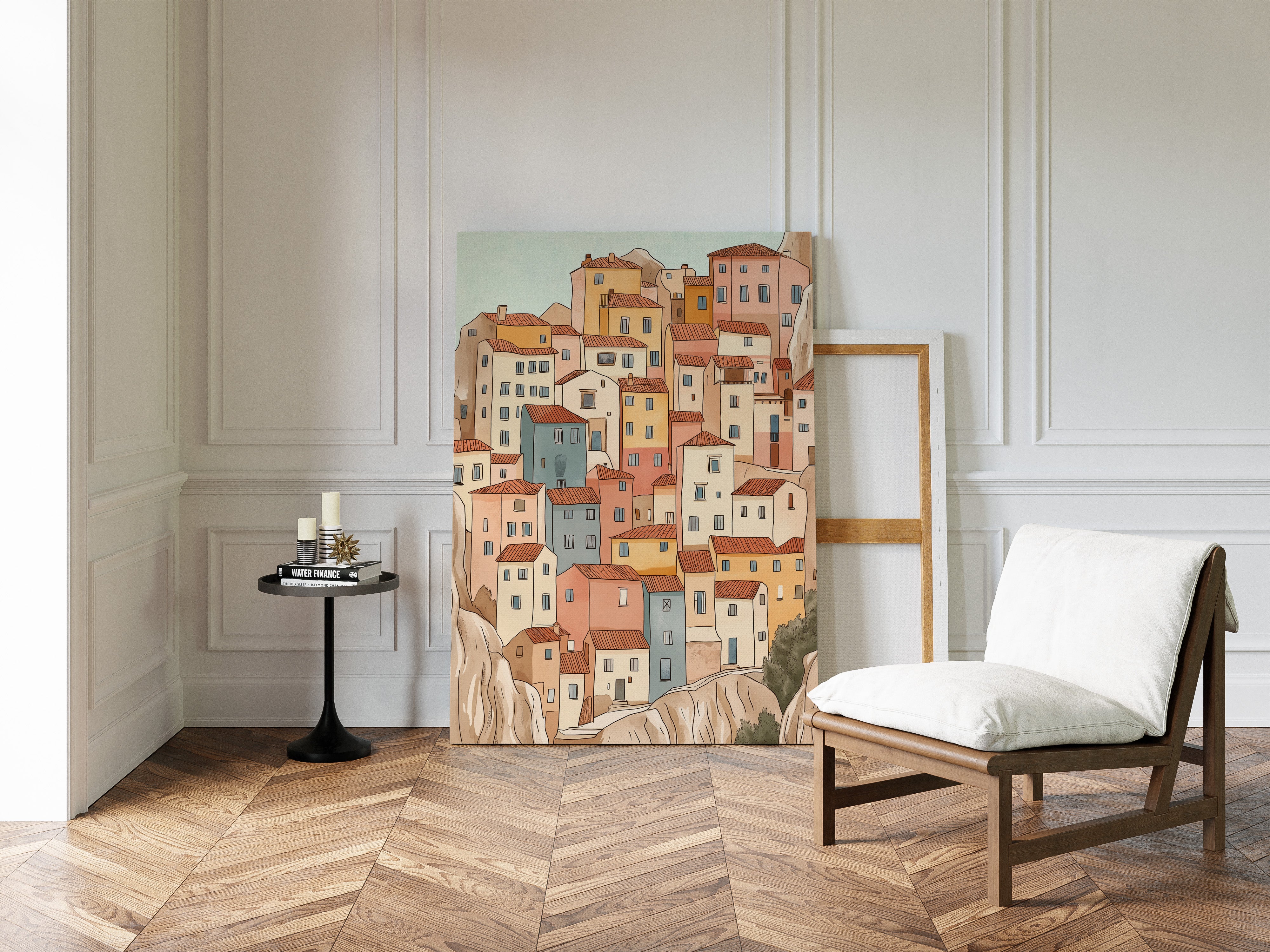 Colorful Village on the Cliffs | Gallery Canvas / 9" x 11" | $65.00