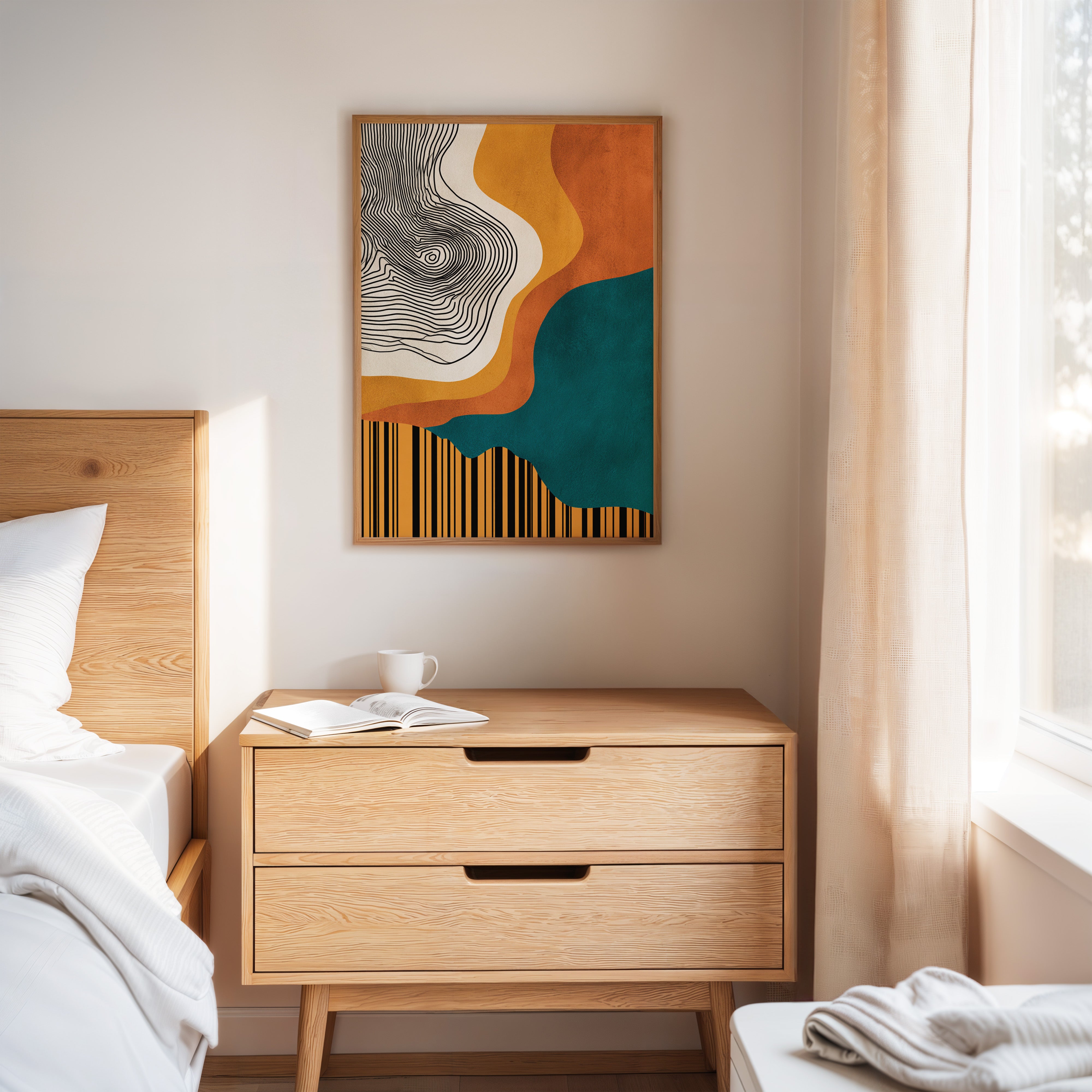 In a dance of vibrant hues, lines intertwine, mapping the essence of exploration and creativity. This piece belongs to the Artisanal collection, celebrating the beauty of handcrafted design. Rich tones of orange and teal swirl together, creating a vivid landscape where imagination flows freely, inviting the viewer to traverse its undulating paths. Ideal for a creative workspace or a cozy reading nook, this artwork inspires the spirit of adventure and innovation.