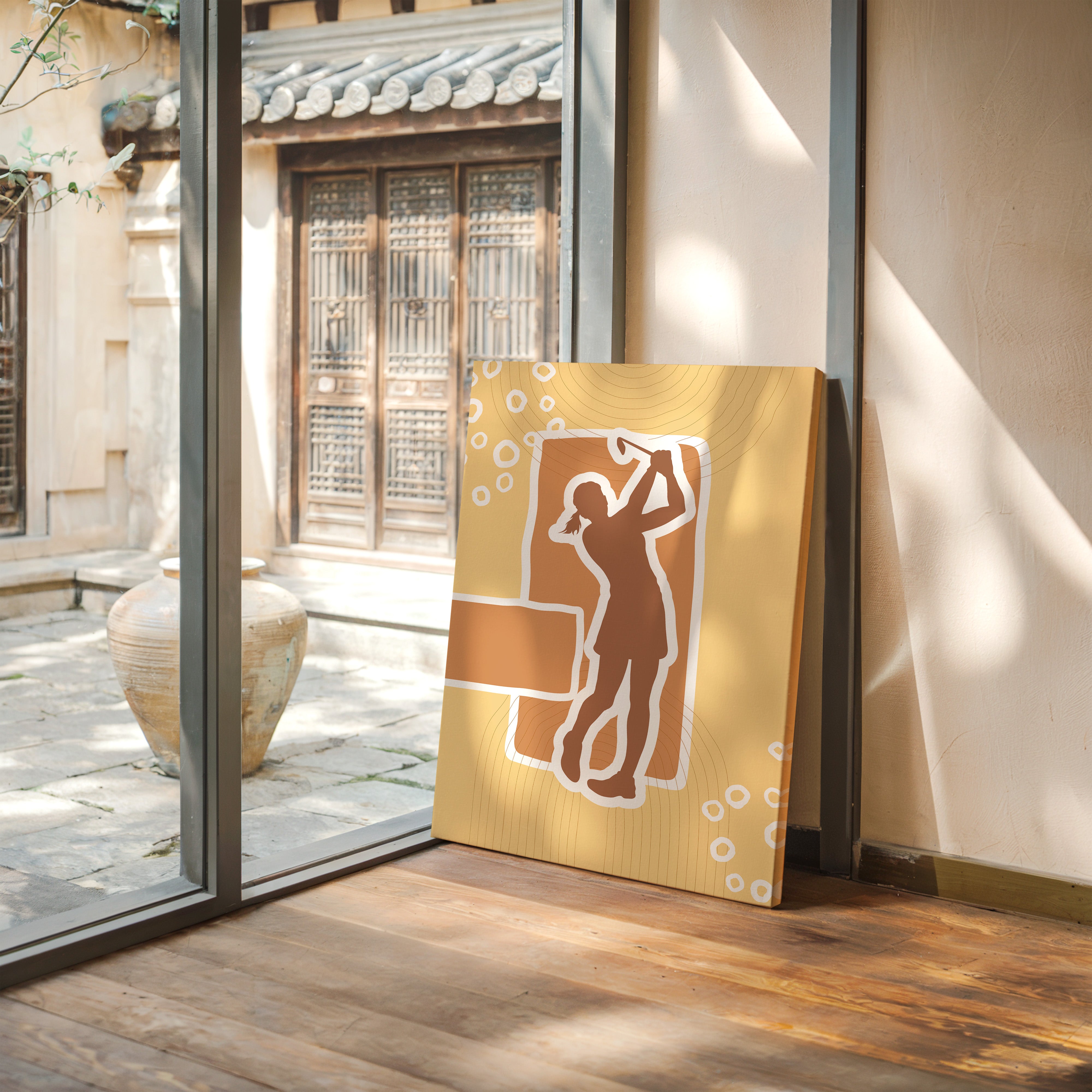 A solitary silhouette stands in perfect harmony, instrument raised skyward as circles of light dance around the frame. This striking contemporary piece captures the essence of musical expression through minimalist design. The warm copper and golden tones create a sense of timeless afternoon light, while concentric circles ripple outward like sound waves through the composition. The figure's graceful pose suggests both strength and artistic abandon, frozen in a moment of pure creative release. Perfect for music rooms, creative spaces, or any area where you want to inspire artistic expression and joy. The piece radiates warmth and creative energy, inviting viewers to pause and listen to their own inner melody.