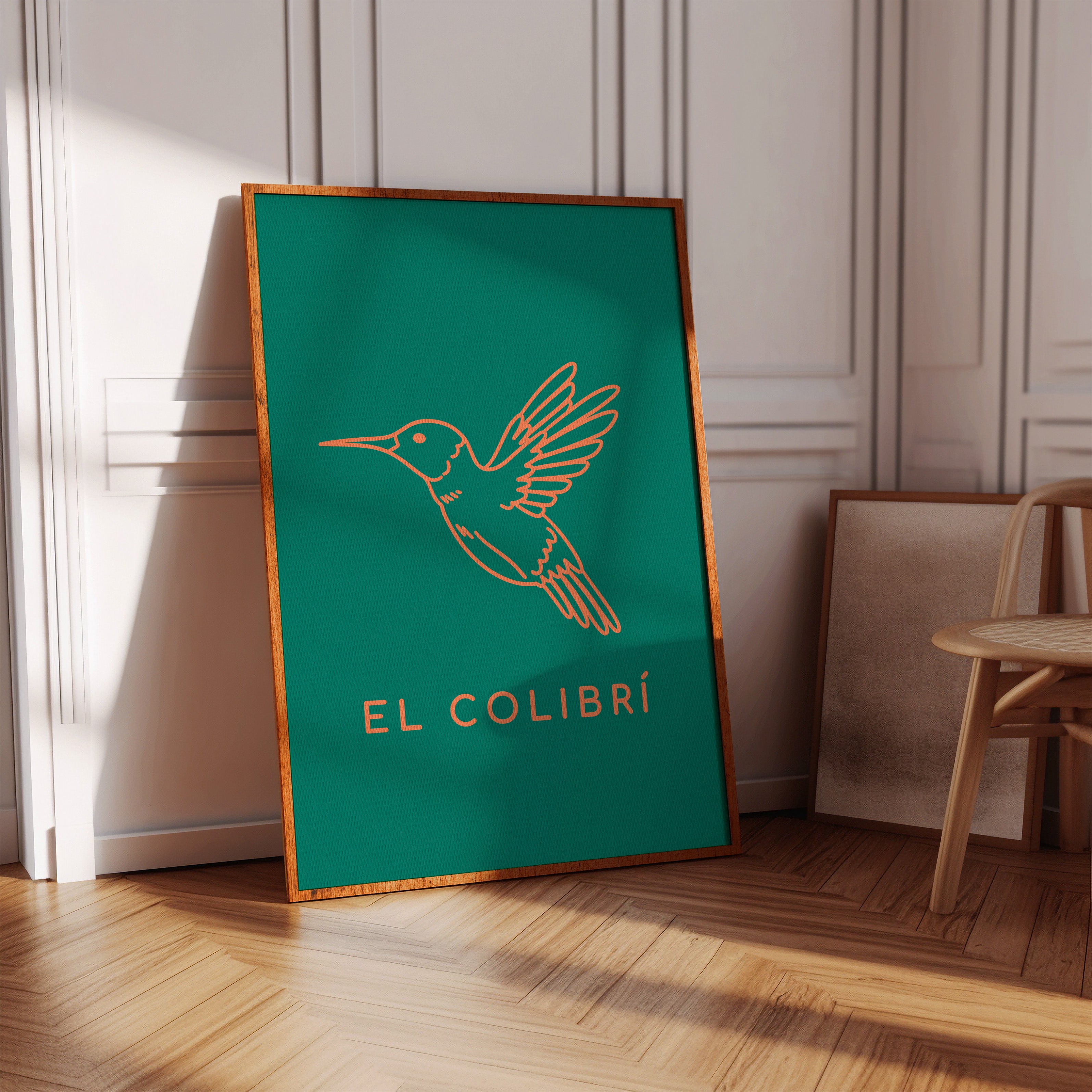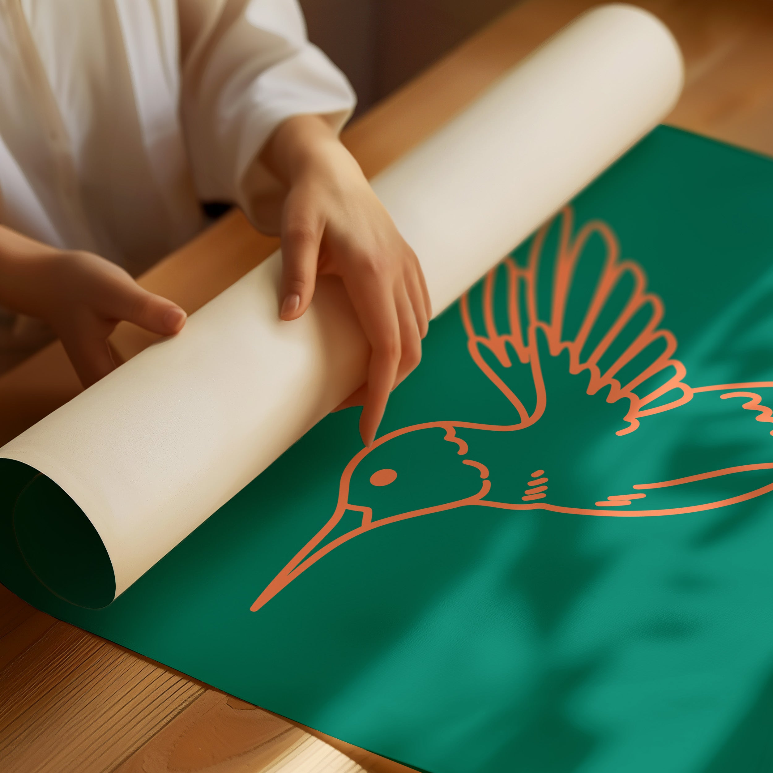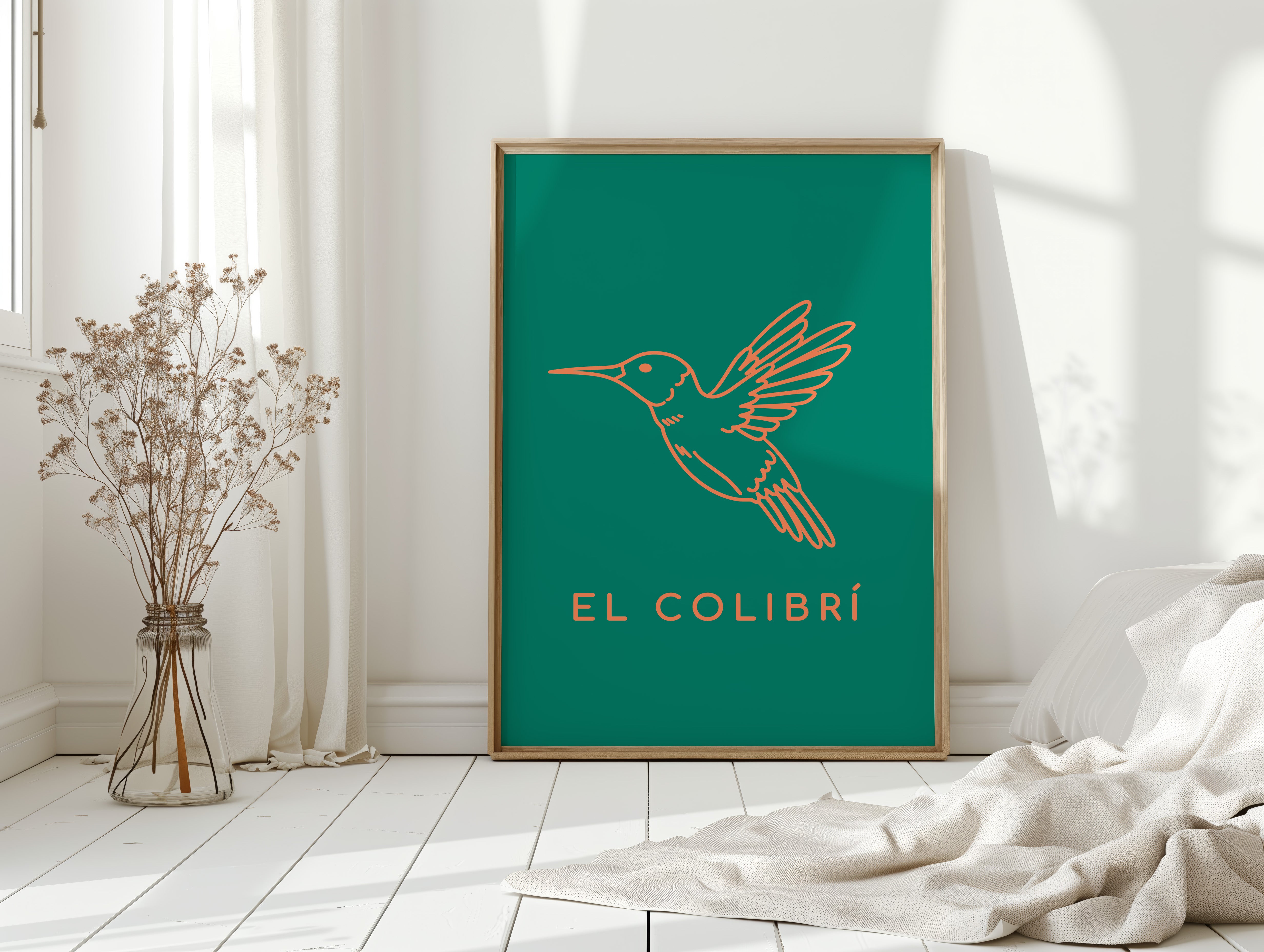 A delicate hummingbird hovers in suspended animation, its coral outline burning bright against deep emerald depths. Part of our Contemporary collection, this minimalist design captures the essence of natural grace through clean, flowing lines. The bird's form tells a story of perpetual motion frozen in time - wings spread wide, beak pointed forward, every curve suggesting the poetry of flight. The striking contrast between the warm coral and rich emerald creates an arresting focal point perfect for modern spaces seeking both serenity and vitality. This piece brings a touch of natural wonder to any room, especially suited for spaces where you gather to dream and reflect.