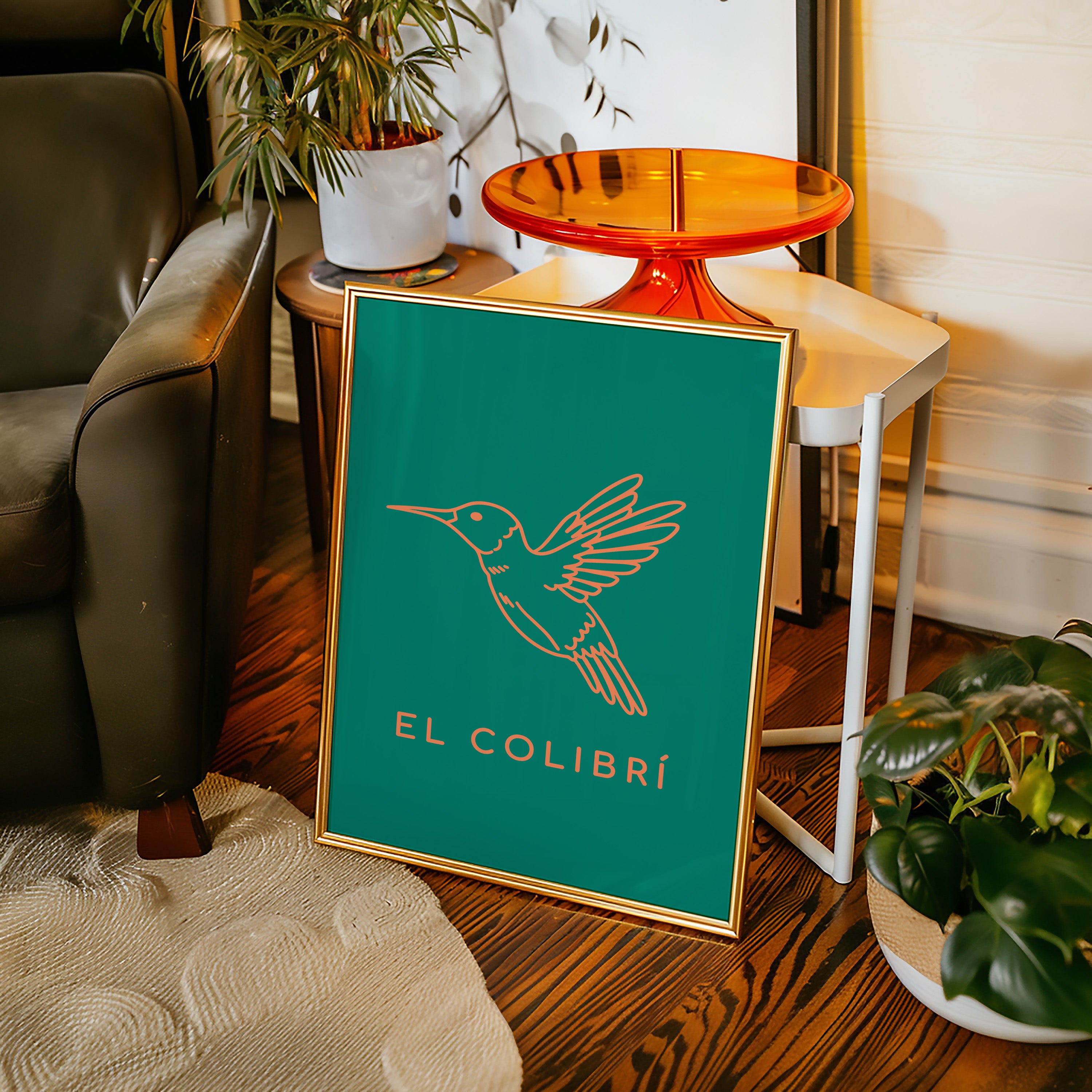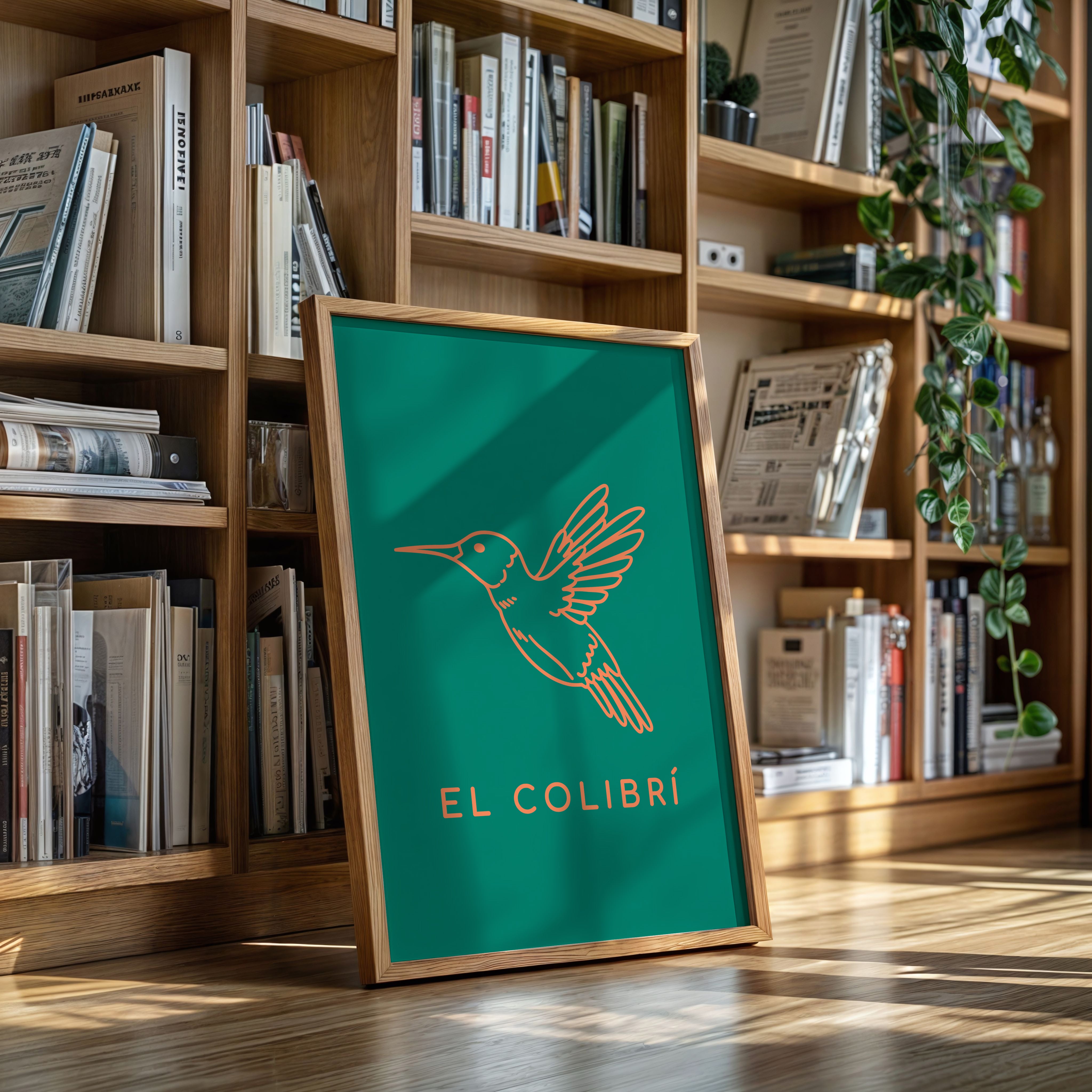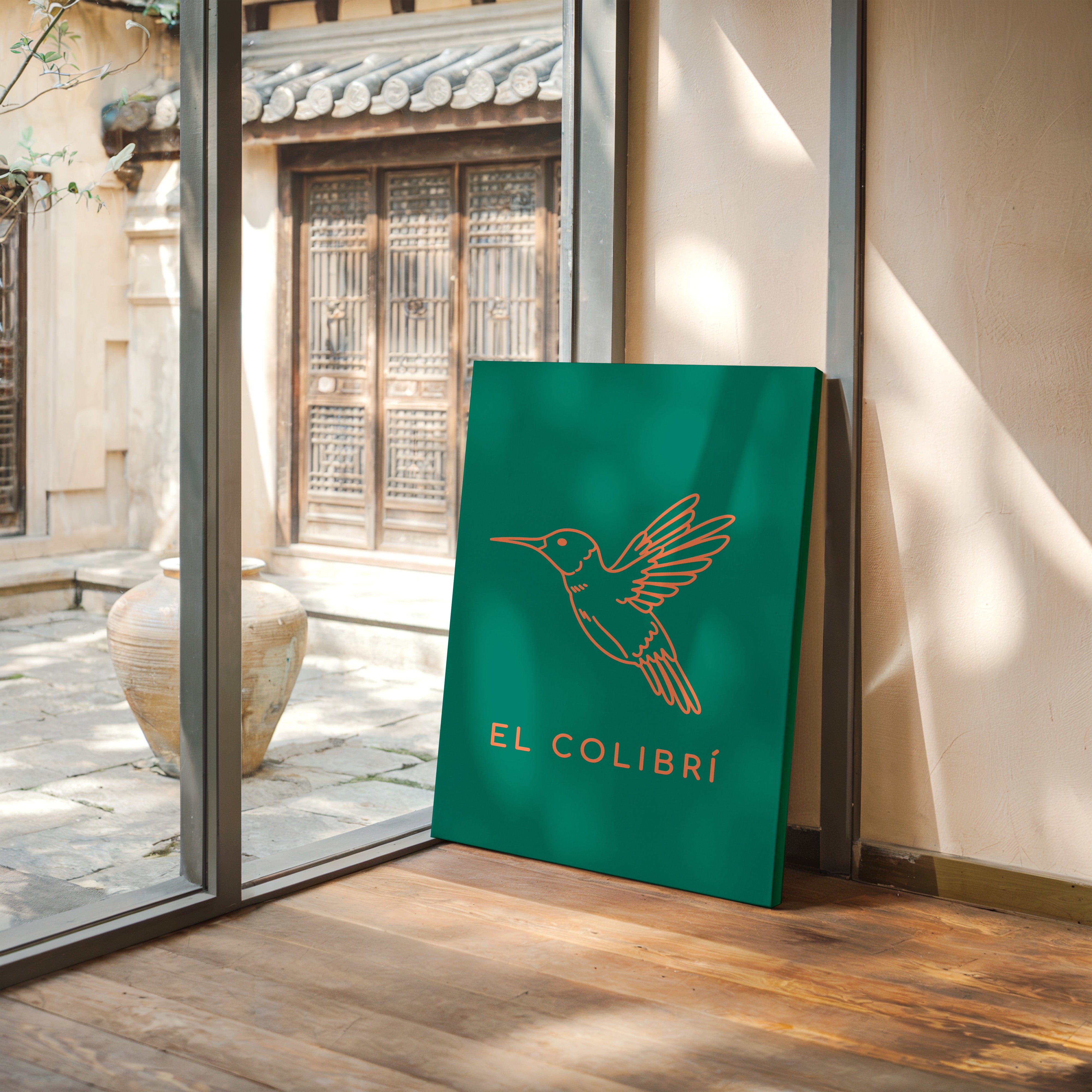 A delicate hummingbird hovers in suspended animation, its coral outline burning bright against deep emerald depths. Part of our Contemporary collection, this minimalist design captures the essence of natural grace through clean, flowing lines. The bird's form tells a story of perpetual motion frozen in time - wings spread wide, beak pointed forward, every curve suggesting the poetry of flight. The striking contrast between the warm coral and rich emerald creates an arresting focal point perfect for modern spaces seeking both serenity and vitality. This piece brings a touch of natural wonder to any room, especially suited for spaces where you gather to dream and reflect.