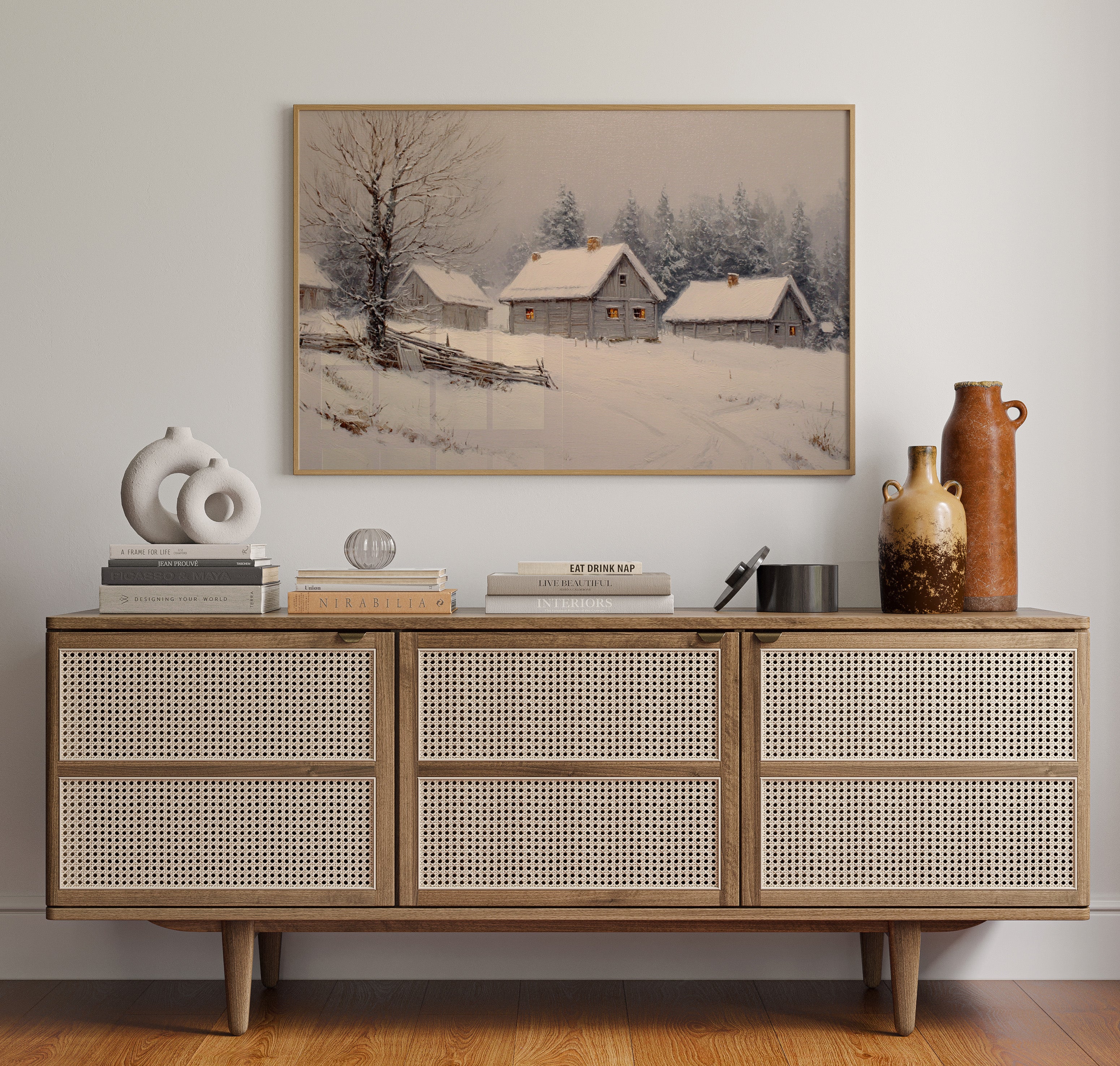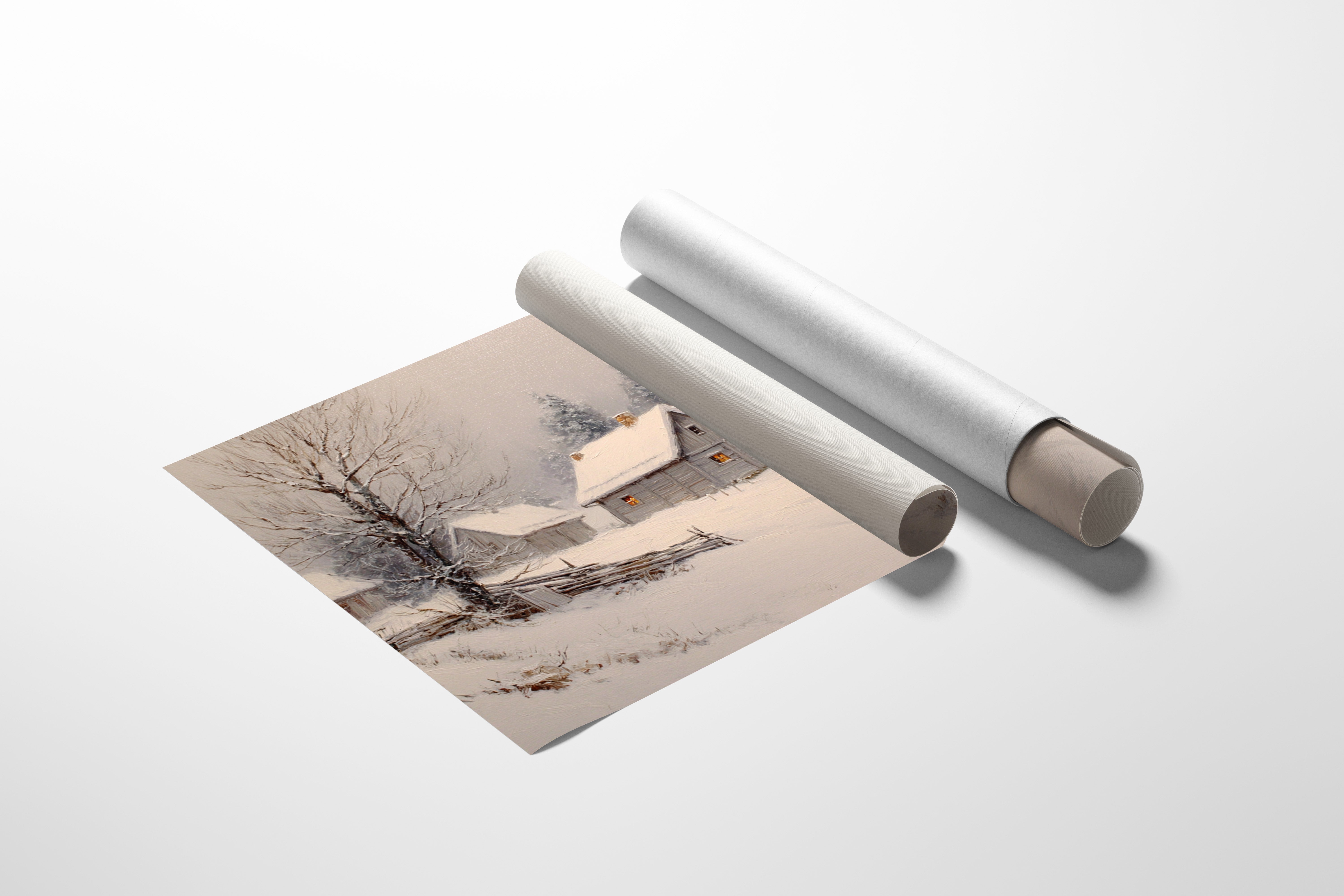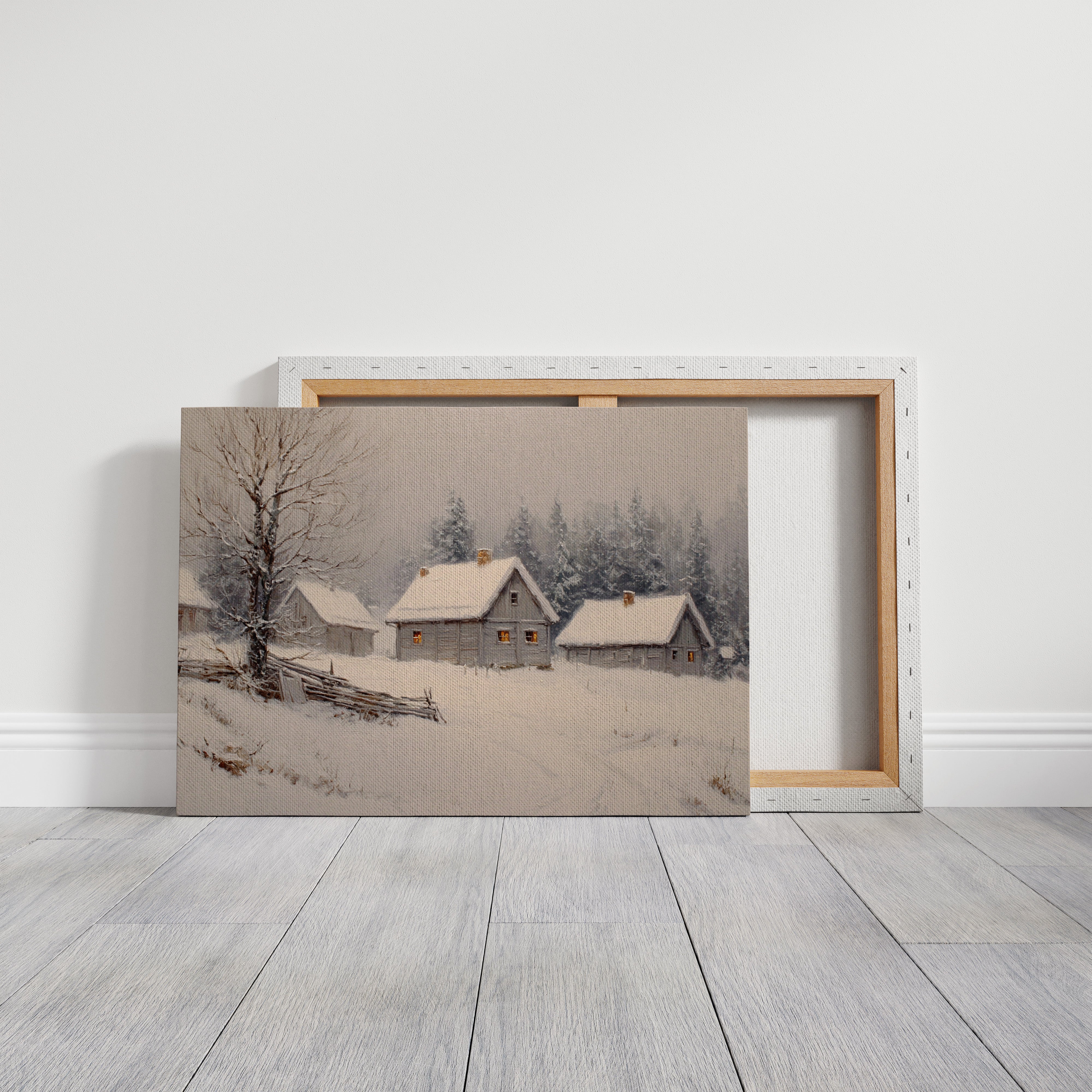 In the hush of snowfall, three cottages stand resilient, their warm lights glowing like beacons against the frosty air. This piece captures the essence of artisanal charm, inviting viewers into a serene winter landscape. Soft whites and gentle grays envelop the scene, while the textured brushstrokes evoke a tangible sense of comfort and nostalgia. Imagine this tranquil vista adorning a cozy reading nook, where one can escape into the warmth of stories by the fire.