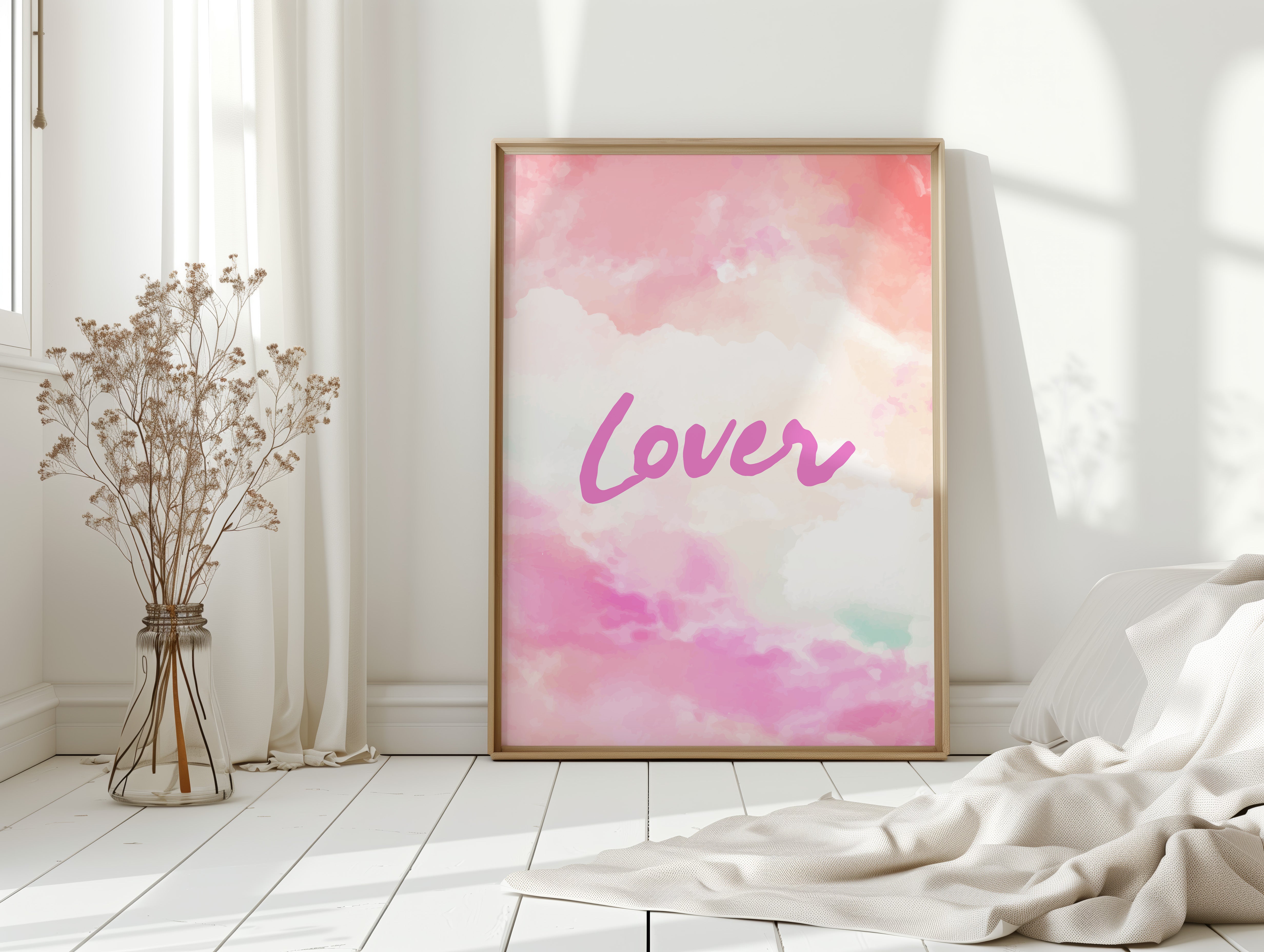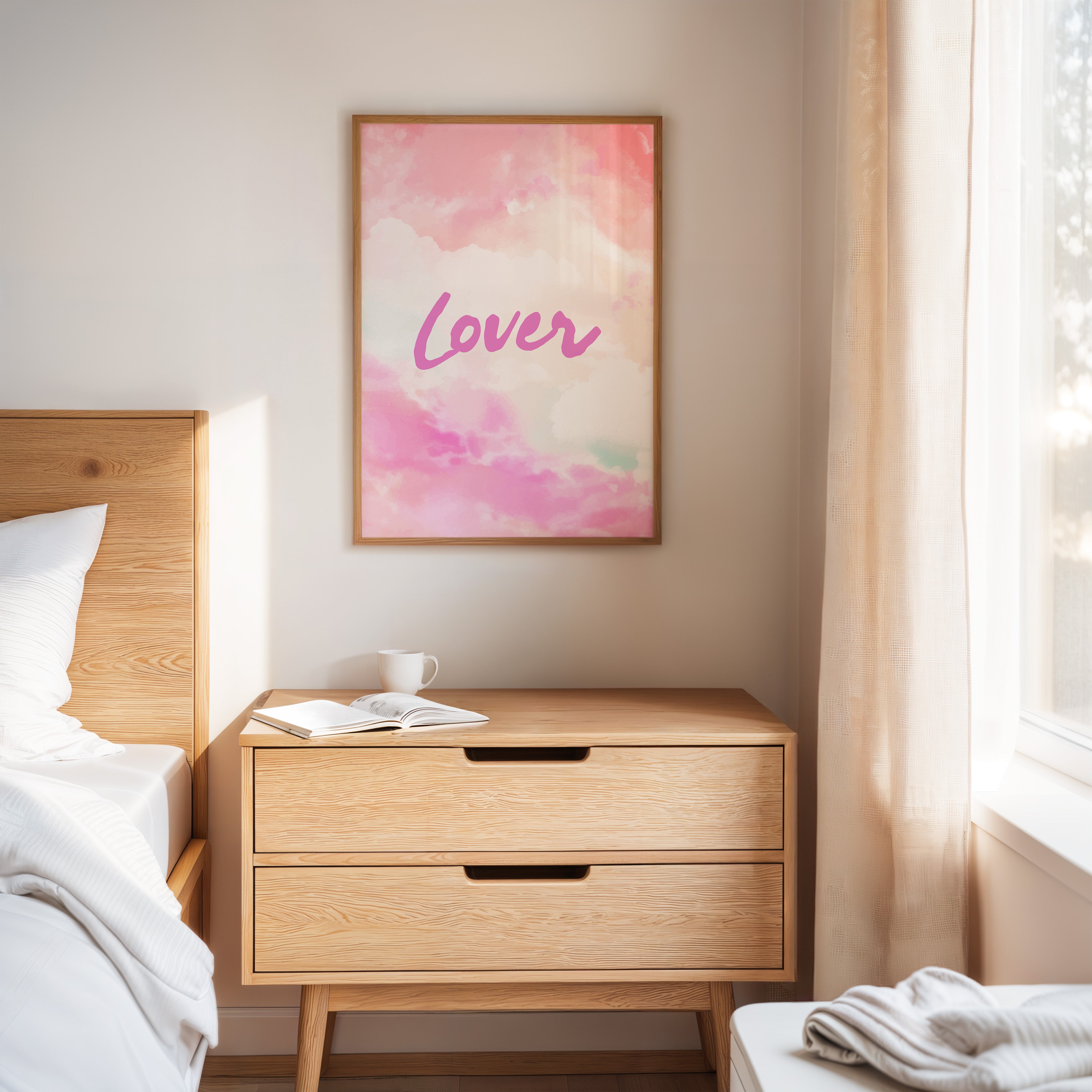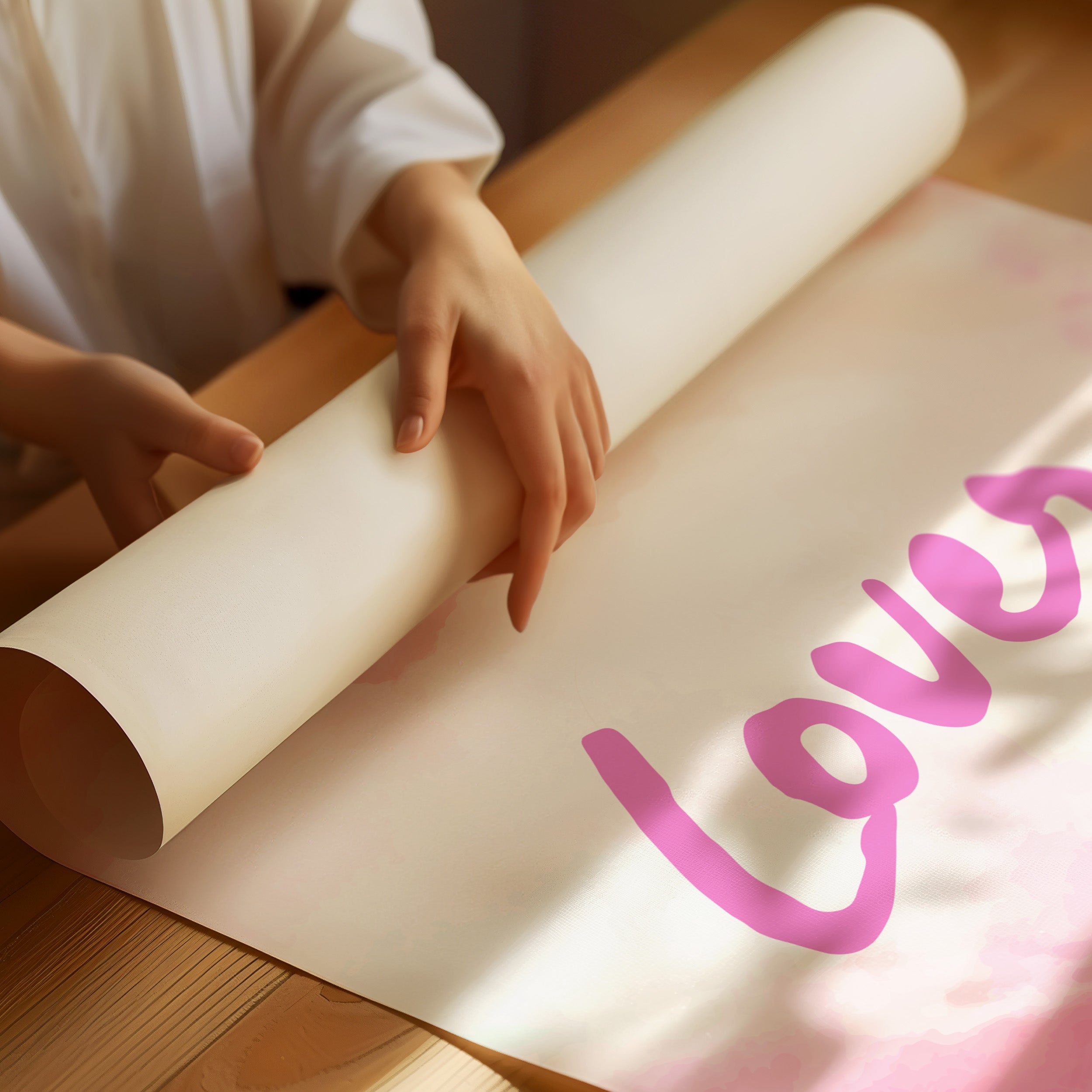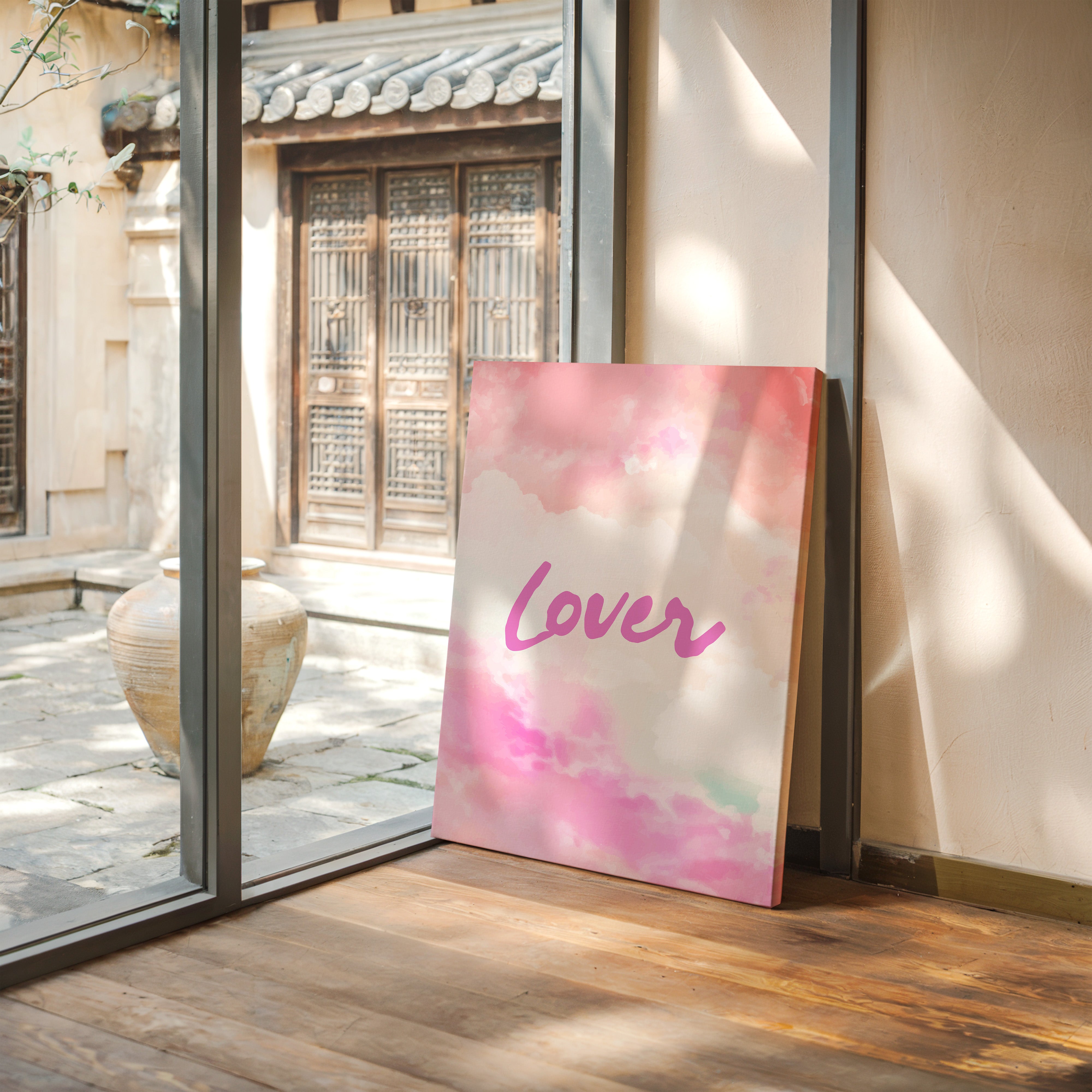 Like a breath of spring captured in watercolor, gentle pink clouds swirl and dance around a single bold declaration. This piece from our Contemporary collection merges minimalist typography with ethereal atmospheric effects. The interplay of soft rose and white creates a dreamy landscape where a singular word becomes both message and art, floating in a delicate ballet of color. The subtle hints of mint at the edges add depth while maintaining the piece's airy lightness. Perfect for creating a romantic focal point in a bedroom or adding an uplifting touch to a home office space. The gentle color palette offers a daily reminder of love's simple power.