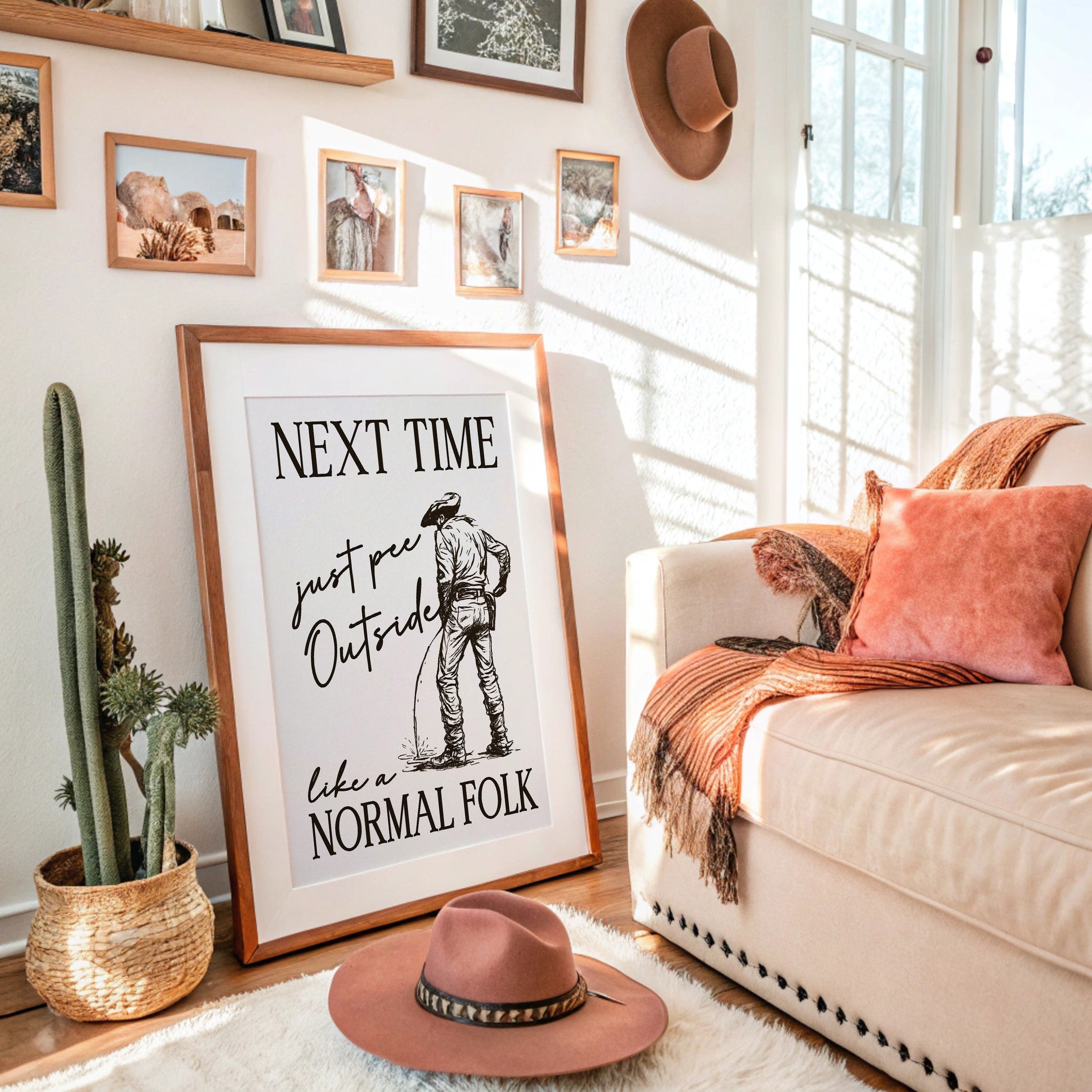 A solitary figure stands in contemplation, embodying the quiet strength of rural life. The bold black and white illustration captures the essence of authenticity through simple lines and purposeful negative space. This piece speaks to the heart of country living, where work and peace find perfect harmony. Perfect for a modern farmhouse kitchen, home office, or any space that celebrates the beauty of simple living.