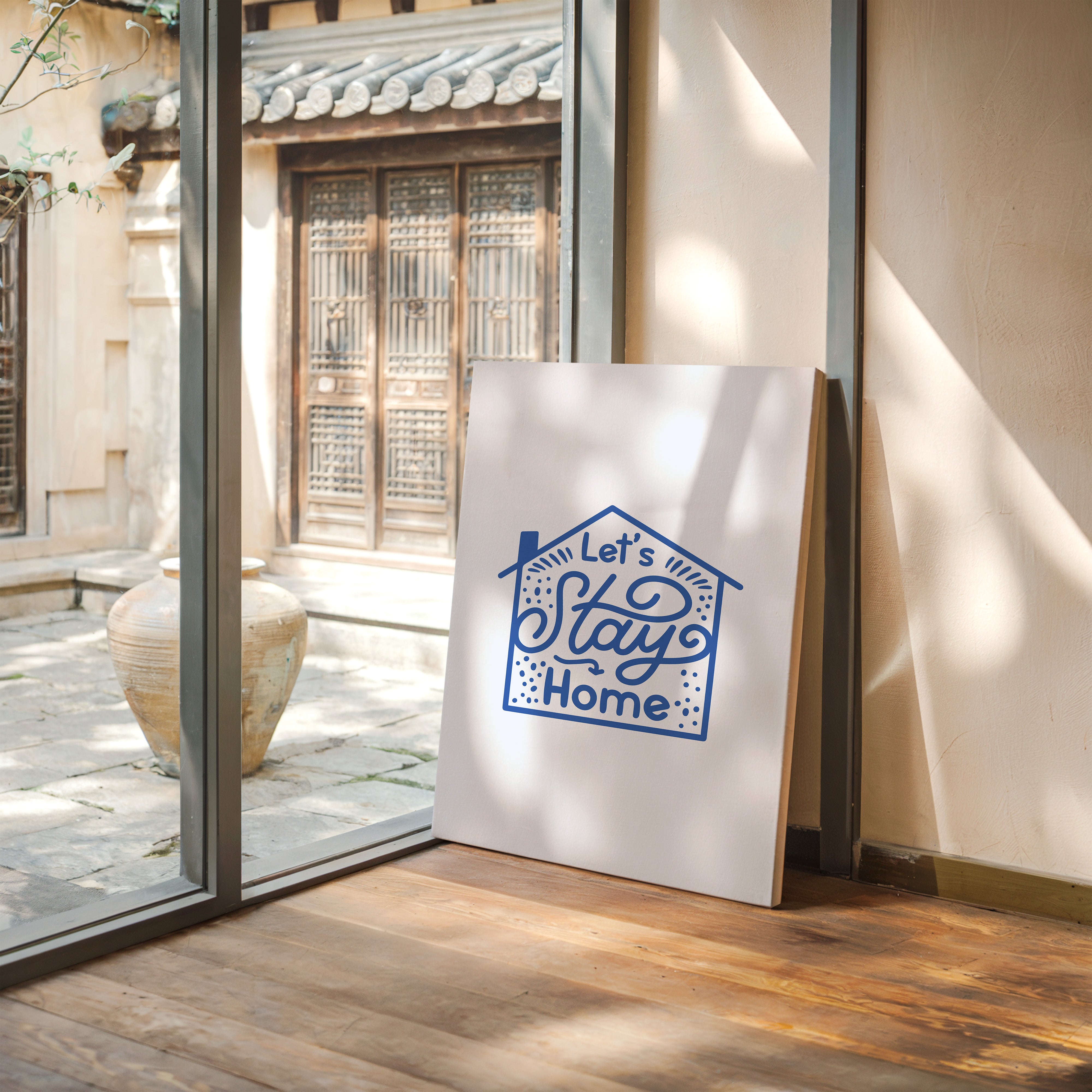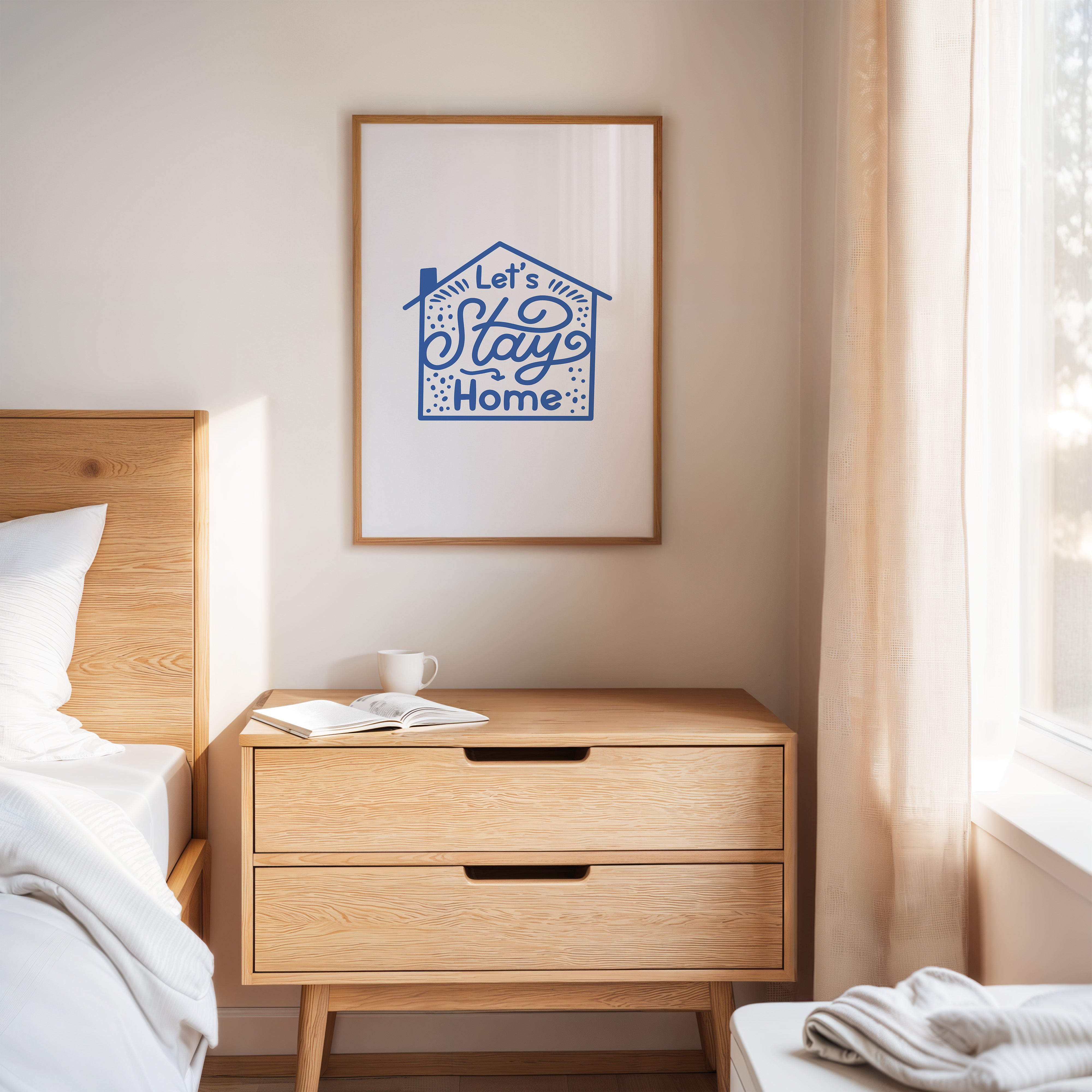 A gentle invitation unfolds in flowing script, wrapped in the warmth of cobalt blue against pristine white. This piece from our Contemporary collection speaks to the heart of home with its modern, minimalist charm. Playful dots scatter like confetti around hand-drawn lettering, while a simple house silhouette frames words that feel like a warm hug. The design creates an atmosphere of welcome, combining whimsical typography with clean geometric shapes. Perfect for kitchen walls or entryway spaces where it can greet guests with its cheerful message. The piece brings a touch of joy to everyday moments, reminding us that home is where stories begin.