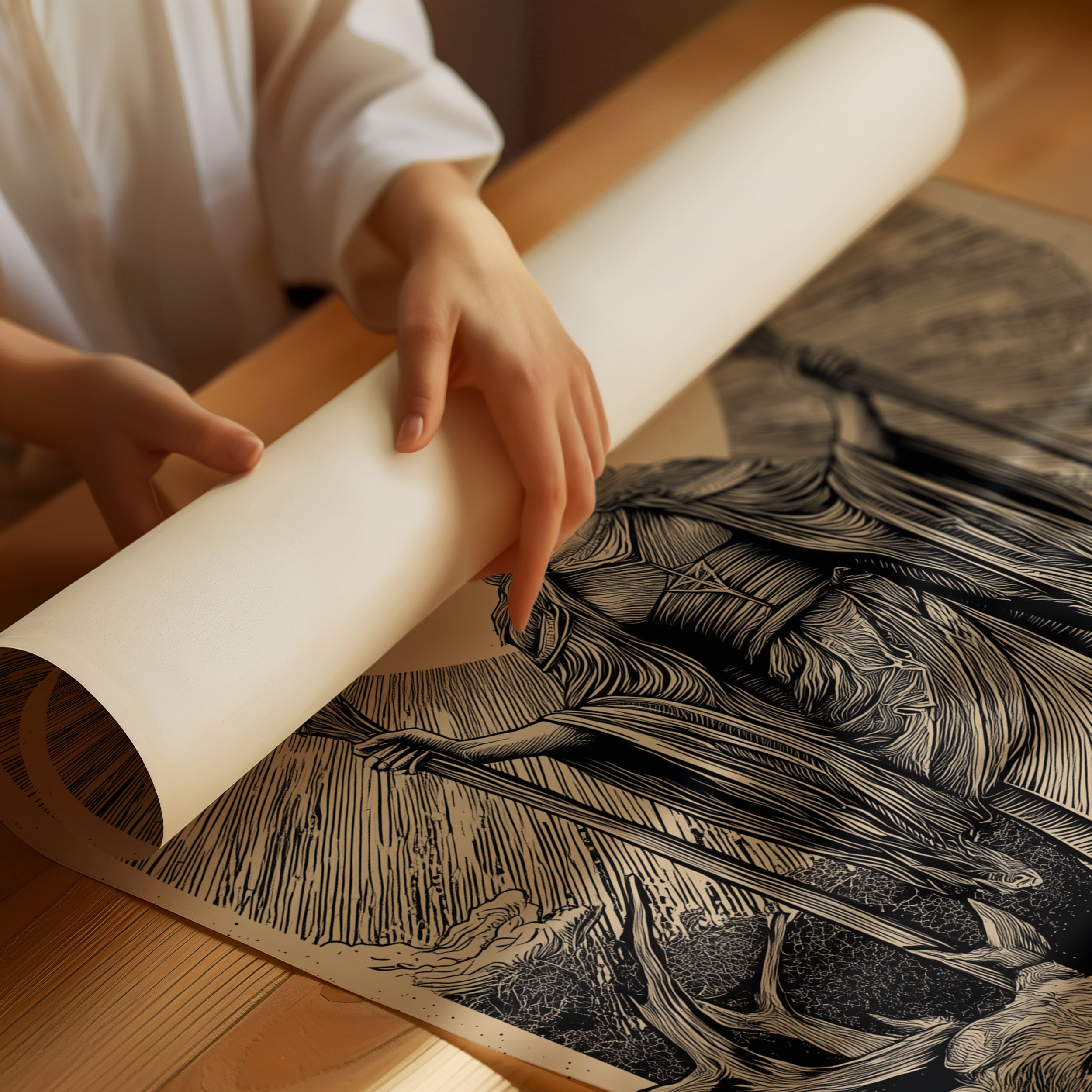 Paper Prints: Premium matte paper (300gsm) with optional handcrafted wooden frames