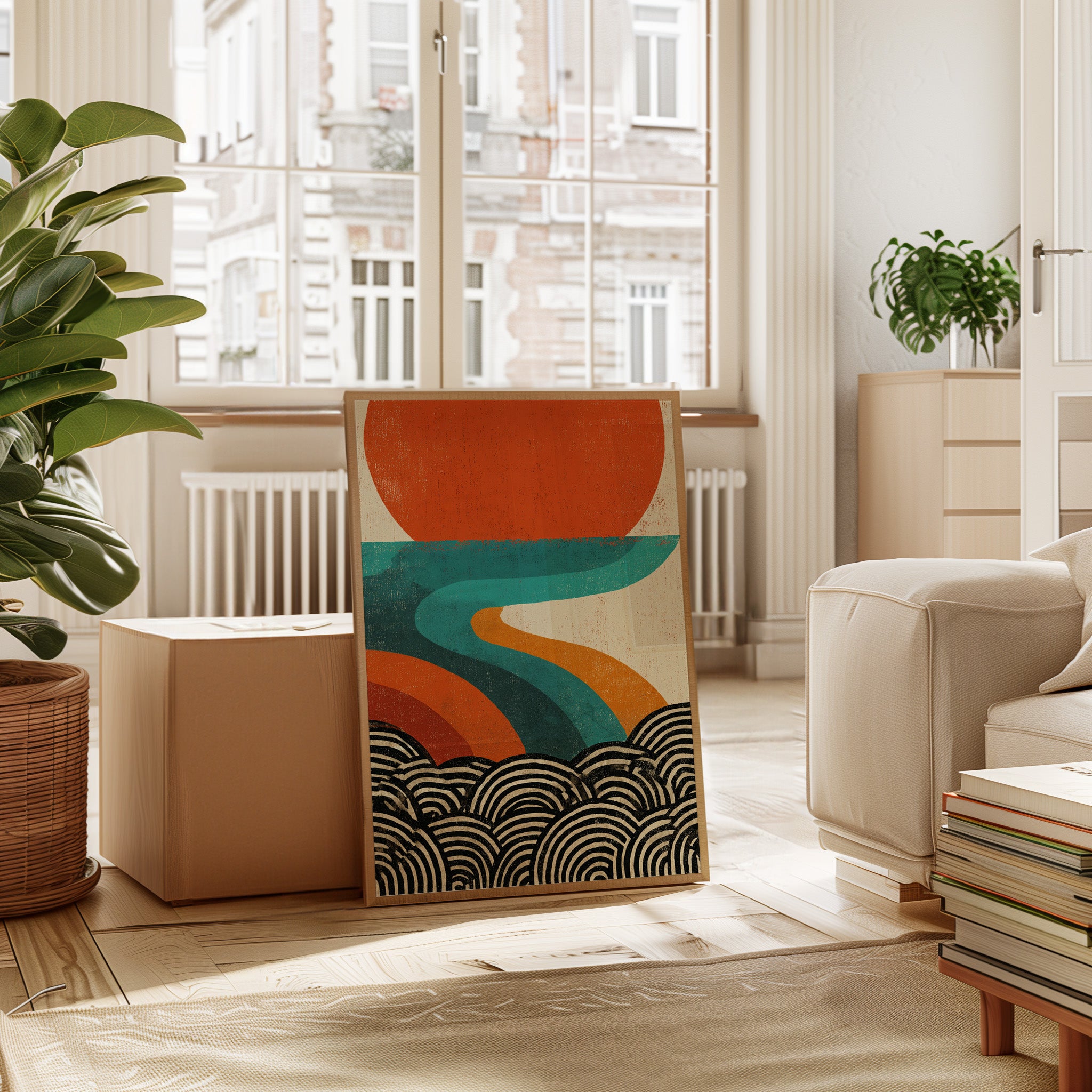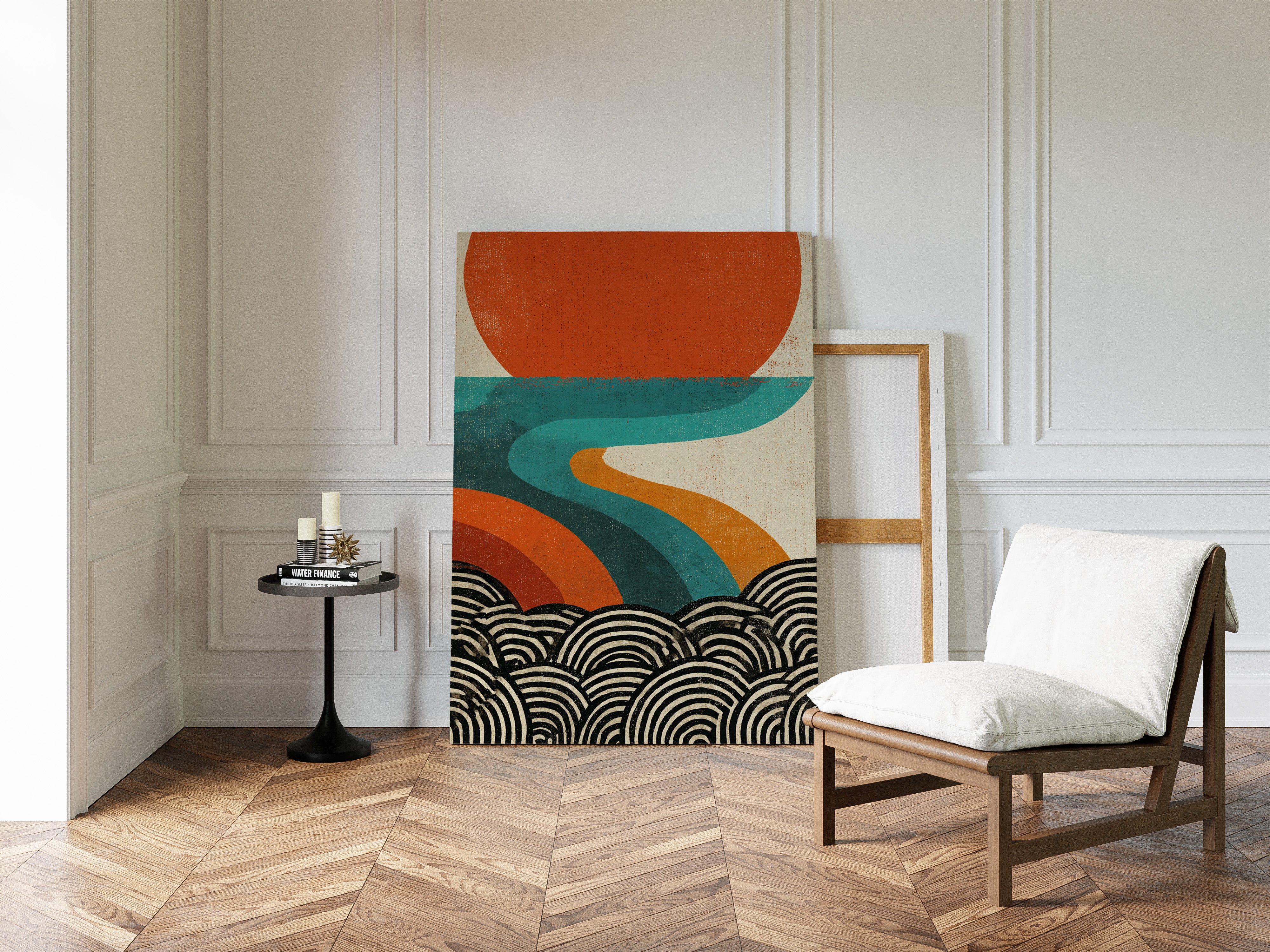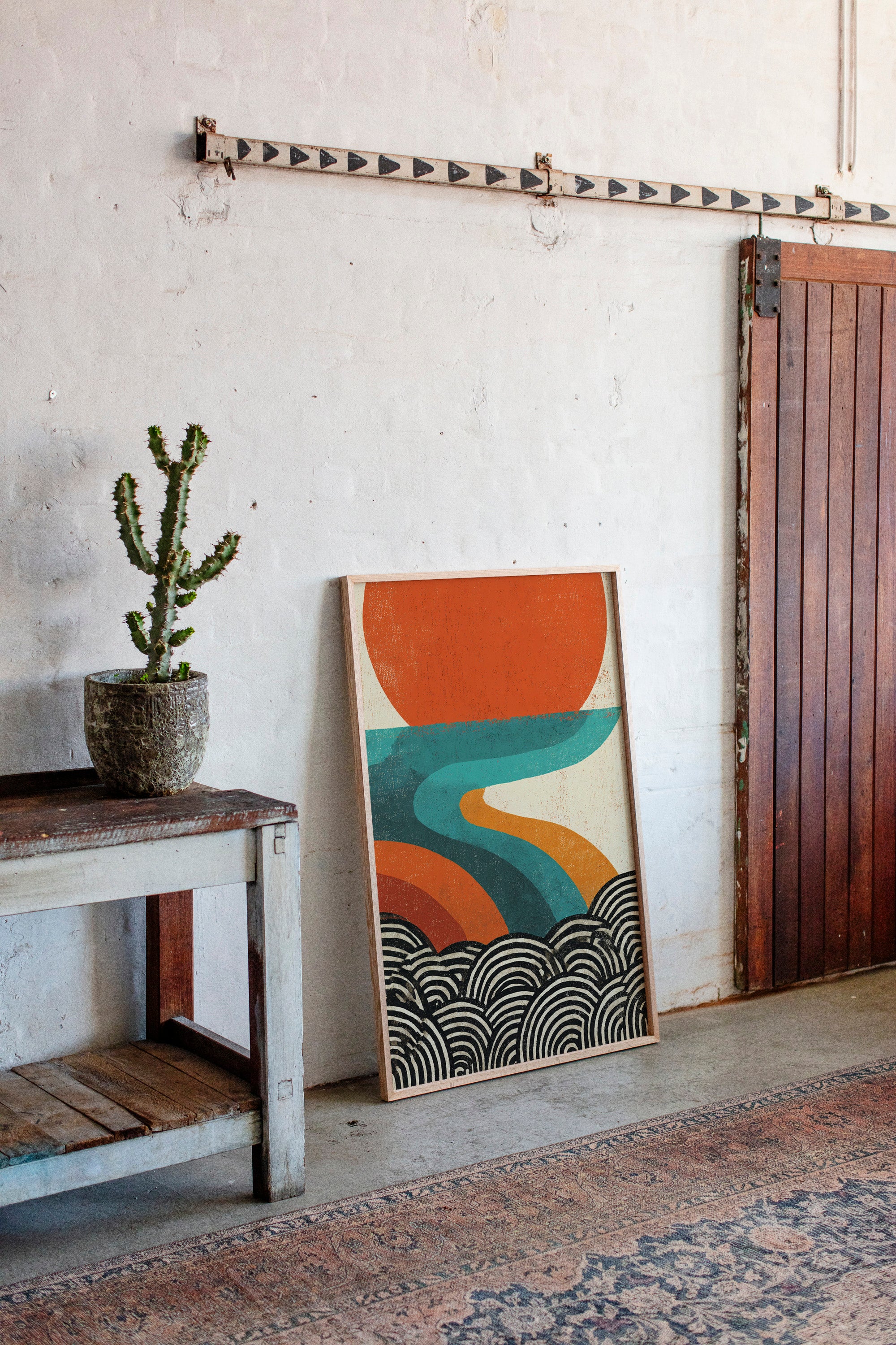 In the embrace of a warm horizon, vibrant waves curl with anticipation, reflecting the day's awakening. This piece invites you into the 'Artisanal' collection, where color and form dance in harmony. Rich textures create a tapestry of movement, as earthy tones blend with the boldness of the sun, evoking a sense of calm and vitality. Perfect for a serene living space or a creative studio, this piece inspires reflection and connection.