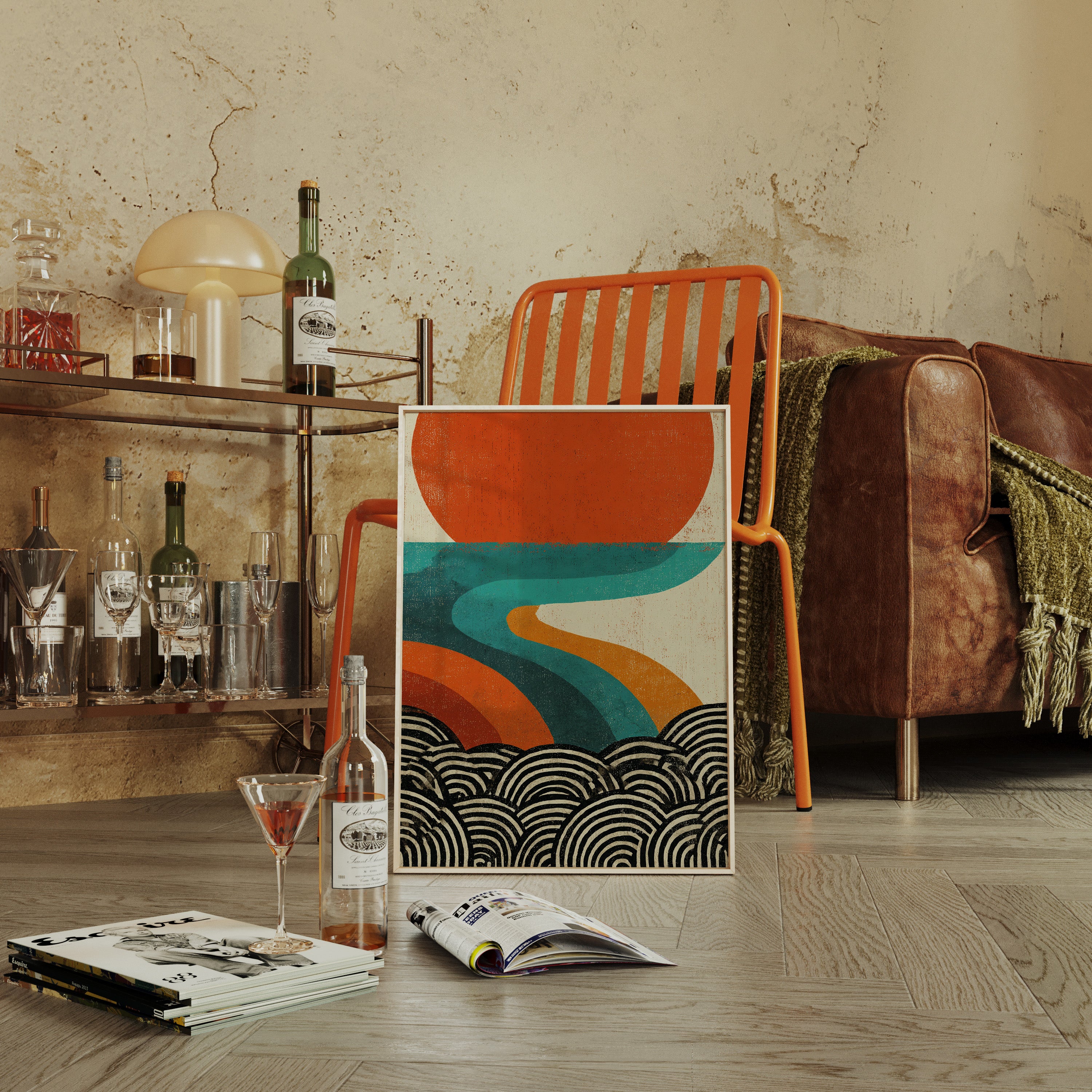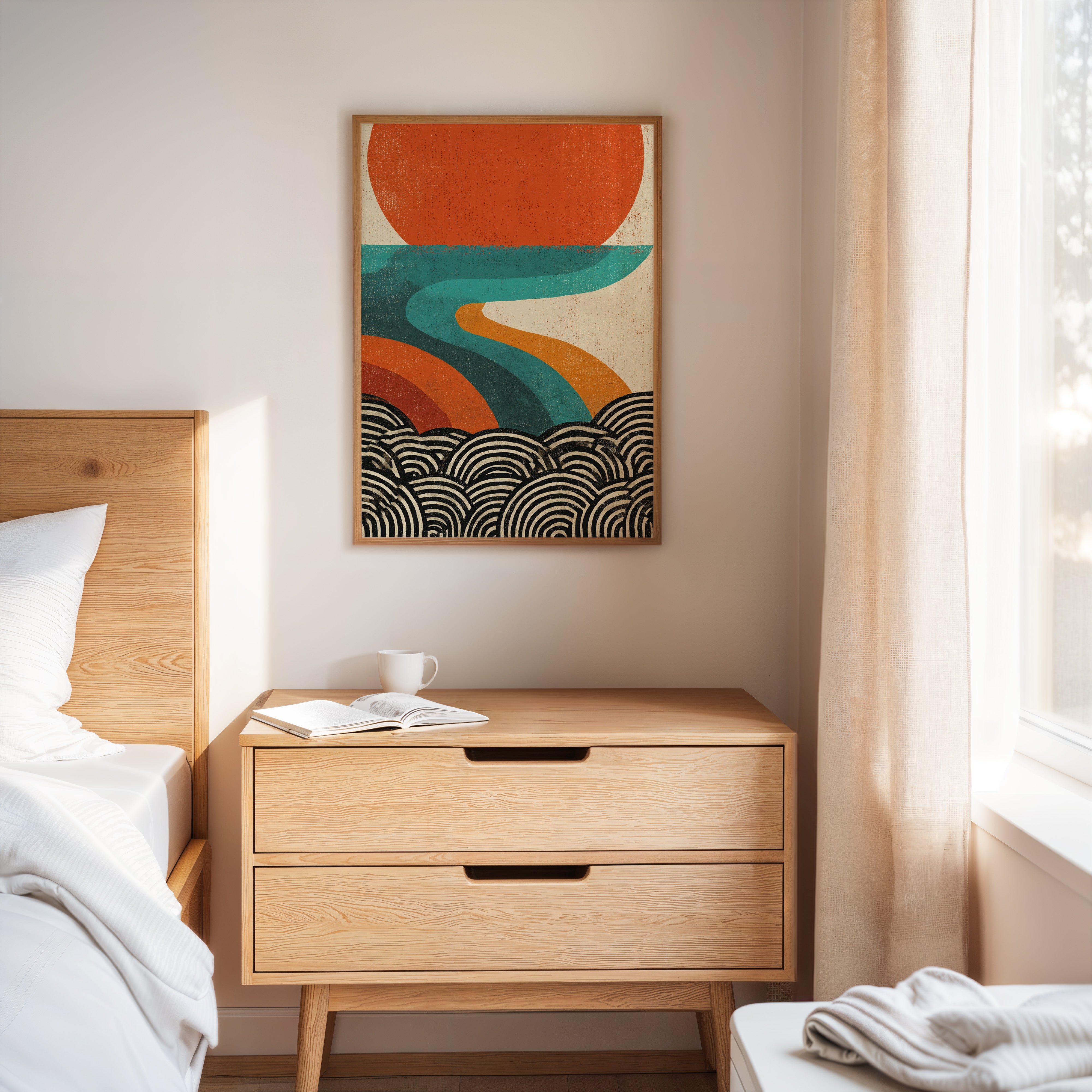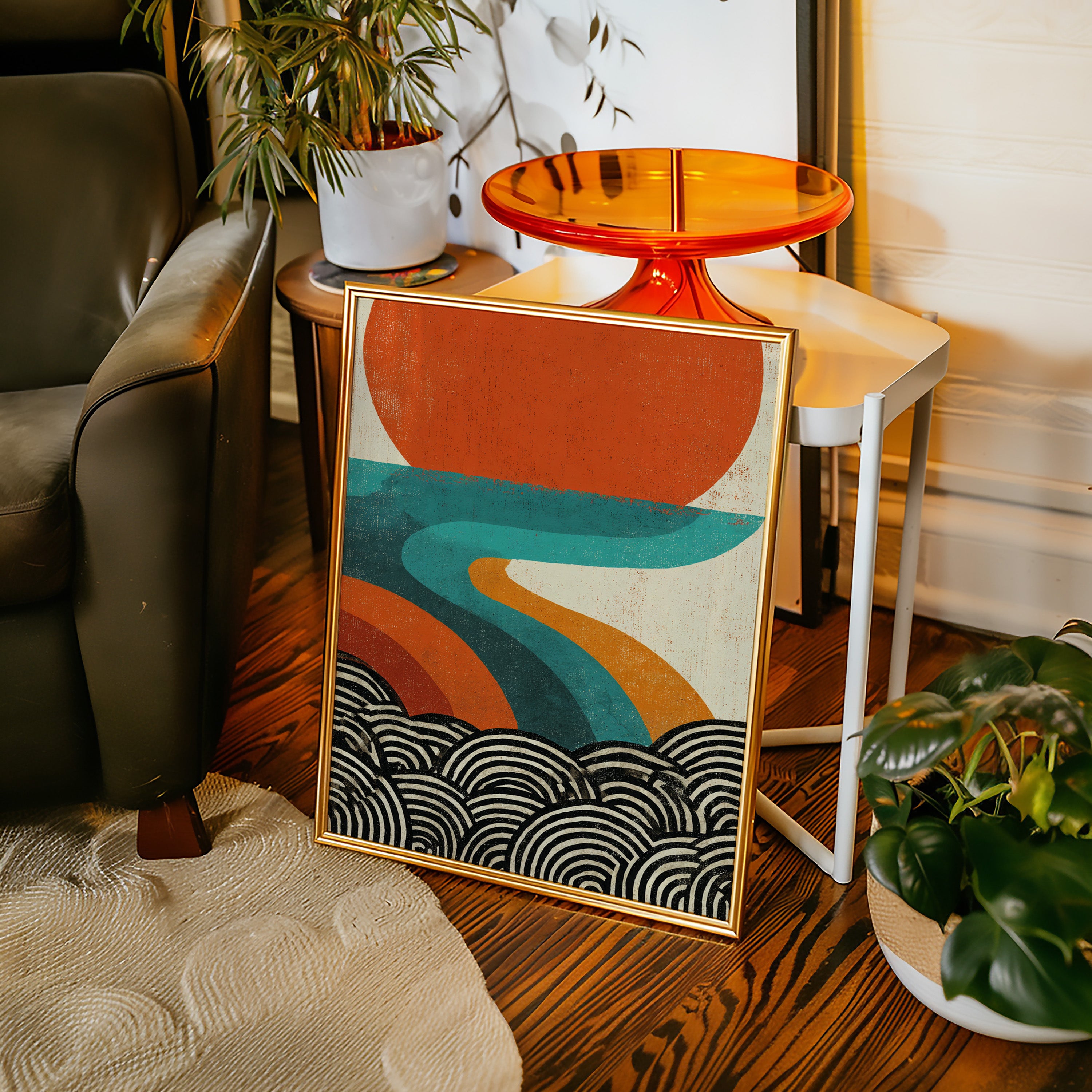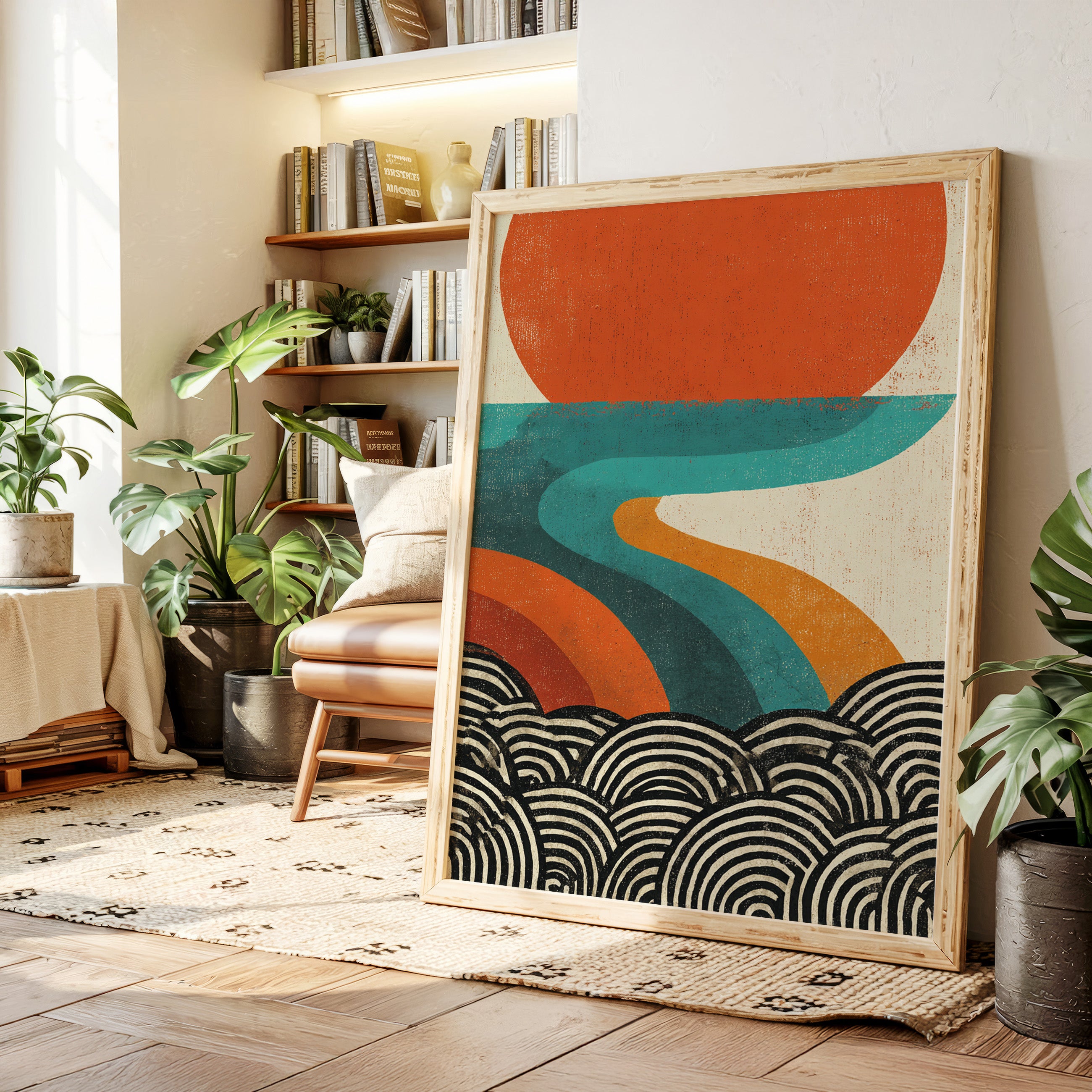 In the embrace of a warm horizon, vibrant waves curl with anticipation, reflecting the day's awakening. This piece invites you into the 'Artisanal' collection, where color and form dance in harmony. Rich textures create a tapestry of movement, as earthy tones blend with the boldness of the sun, evoking a sense of calm and vitality. Perfect for a serene living space or a creative studio, this piece inspires reflection and connection.