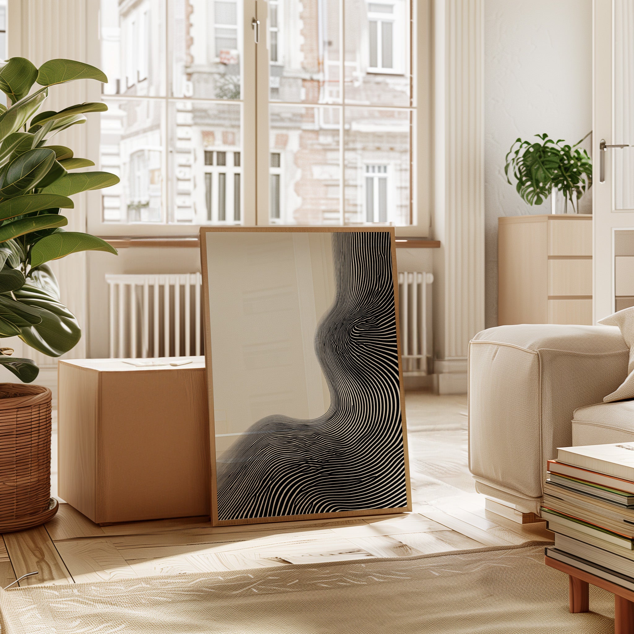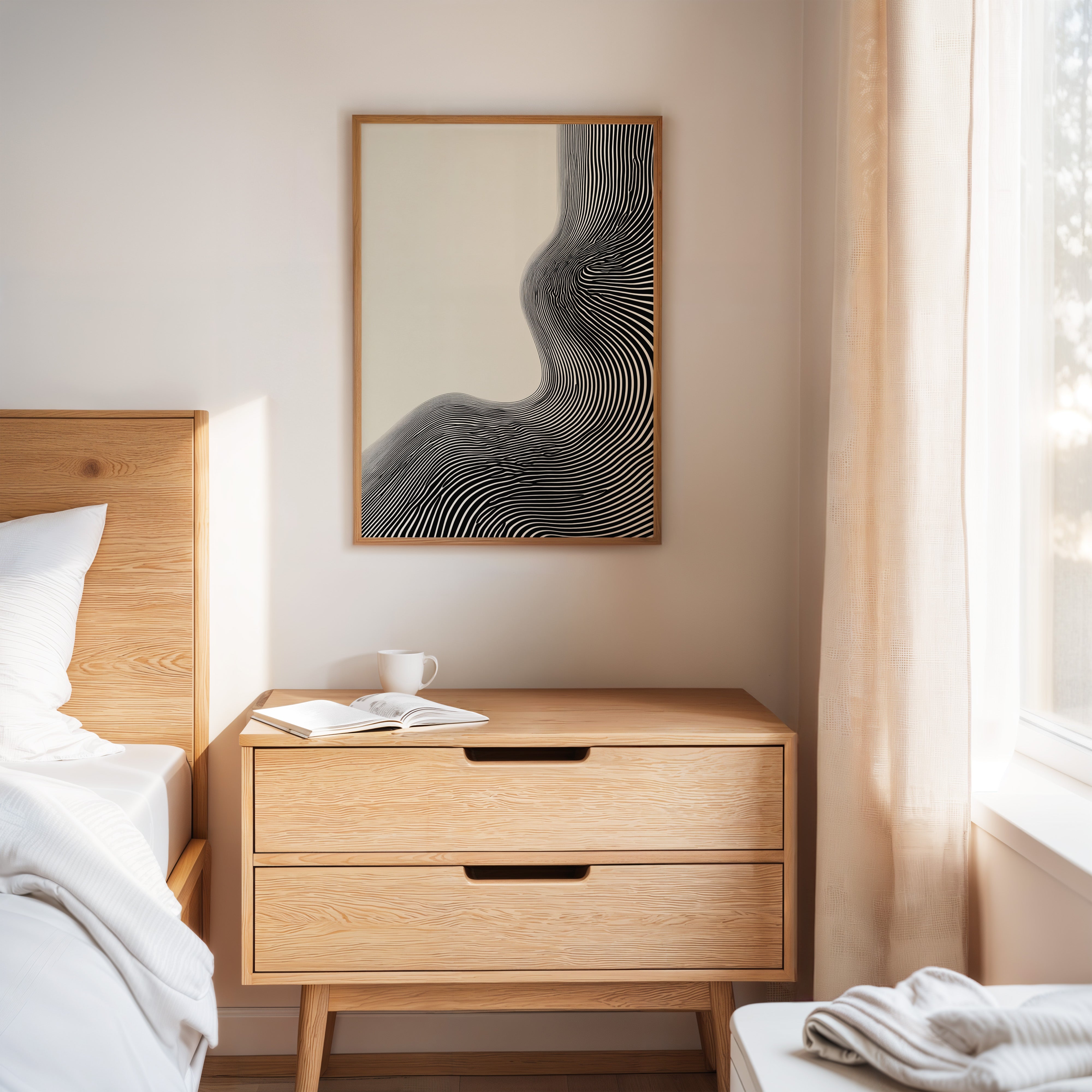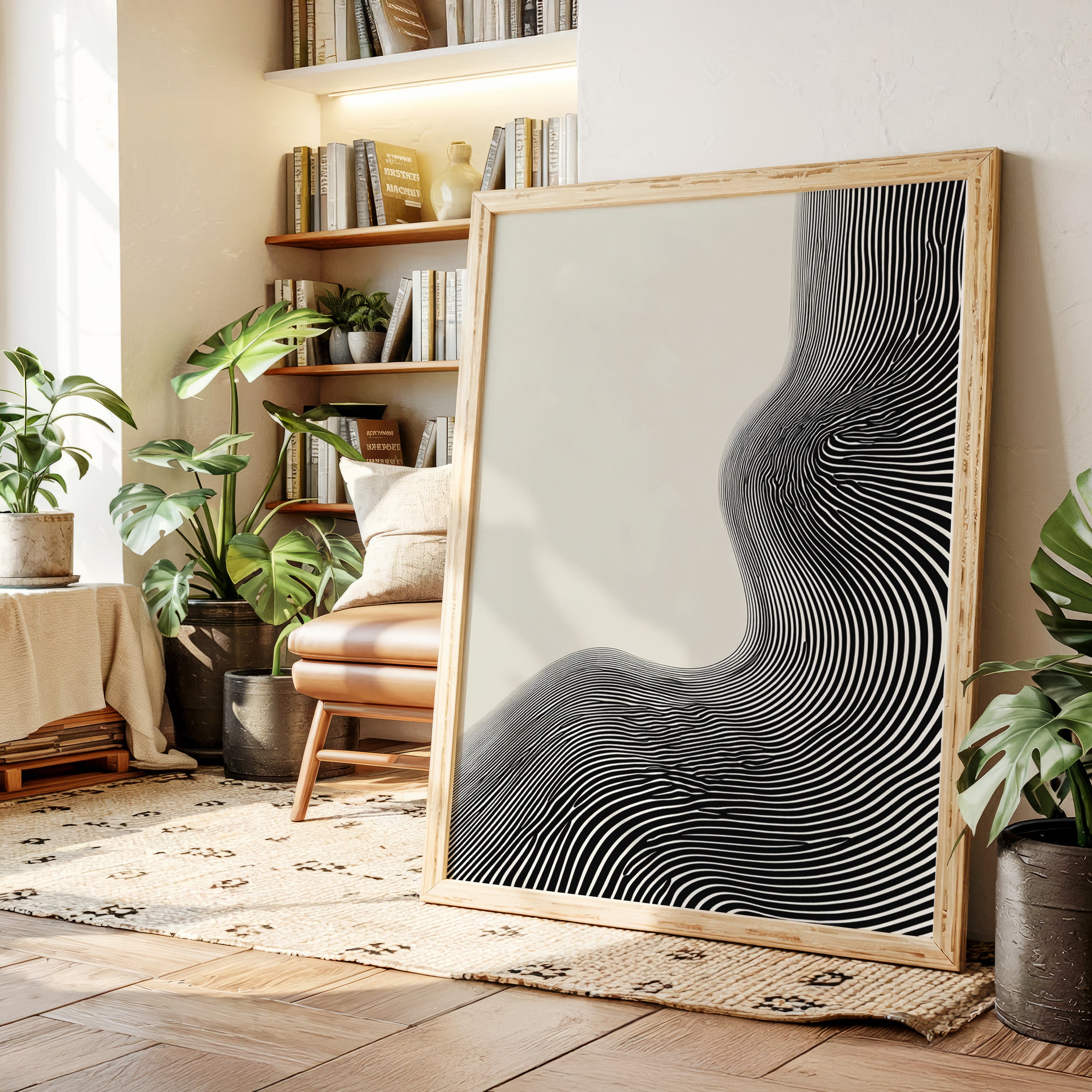 In the gentle rise and fall of lines, a narrative unfolds, inviting the viewer to trace the contours of imagination. This piece embodies the essence of artisanal craftsmanship, merging simplicity with elegance. Each flowing line tells a story of movement and rhythm, contrasting stark black against a soft beige backdrop, evoking a sense of calm and contemplation. Ideal for a modern study or serene reading nook, it subtly enhances the atmosphere without overwhelming the senses.