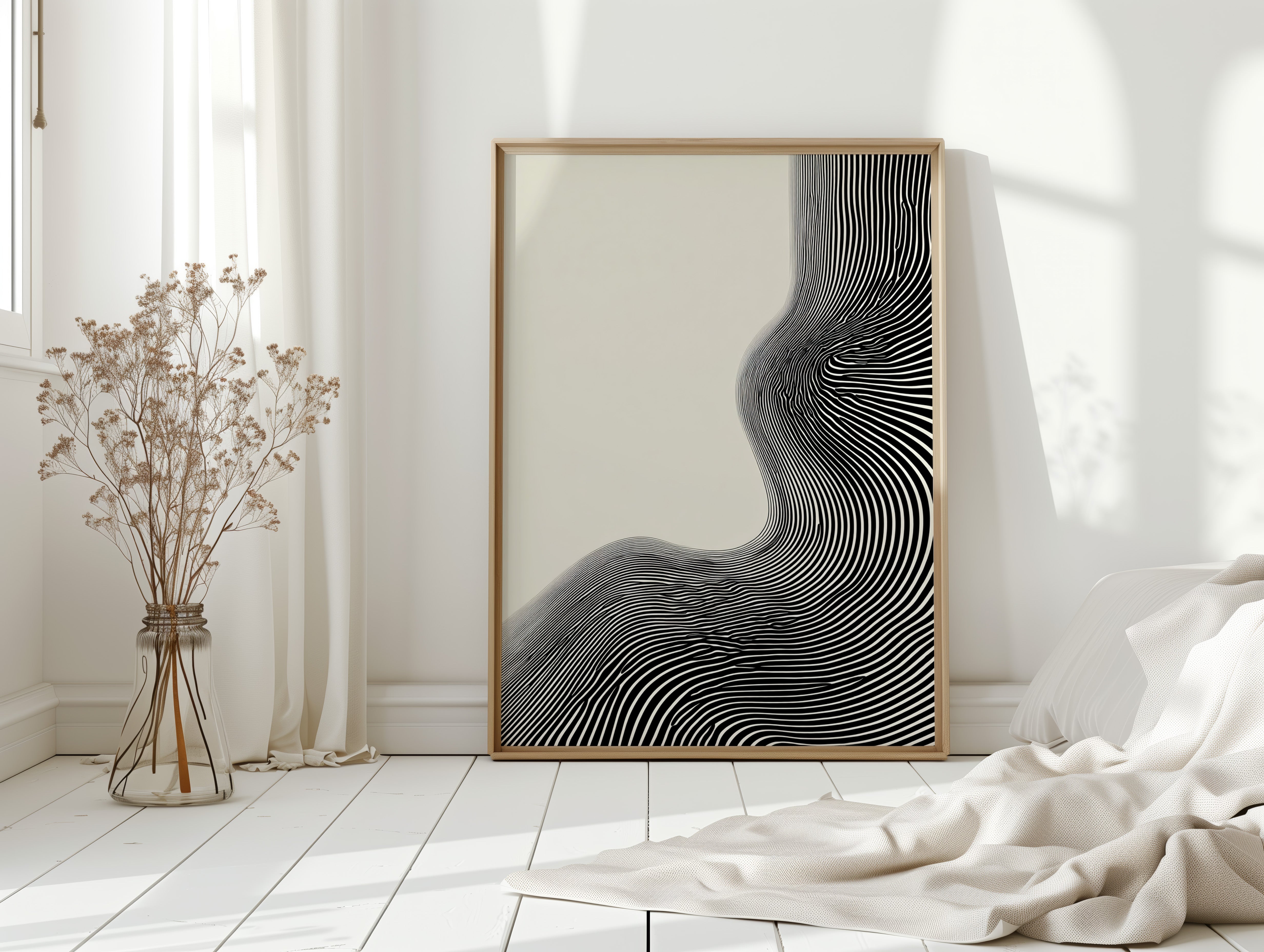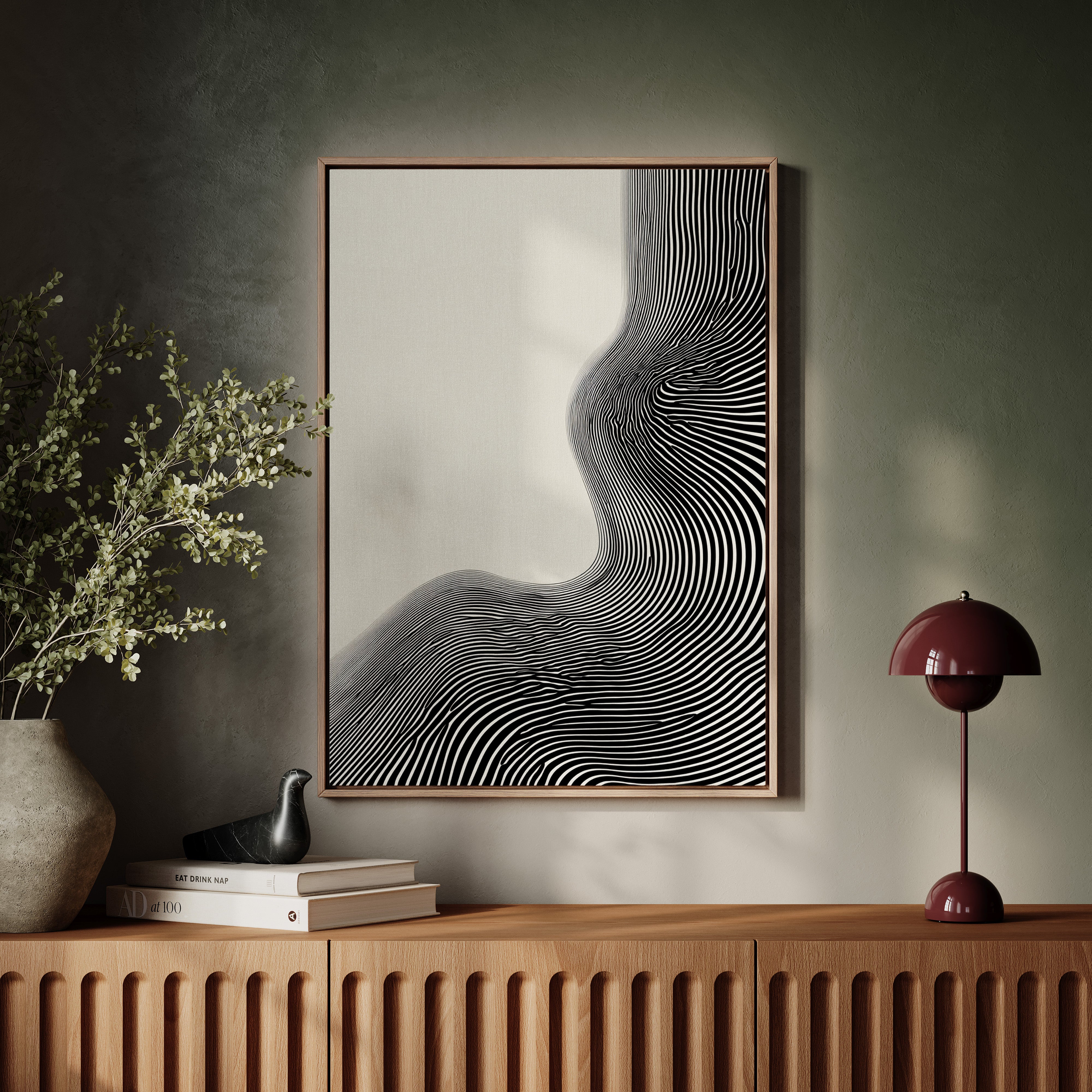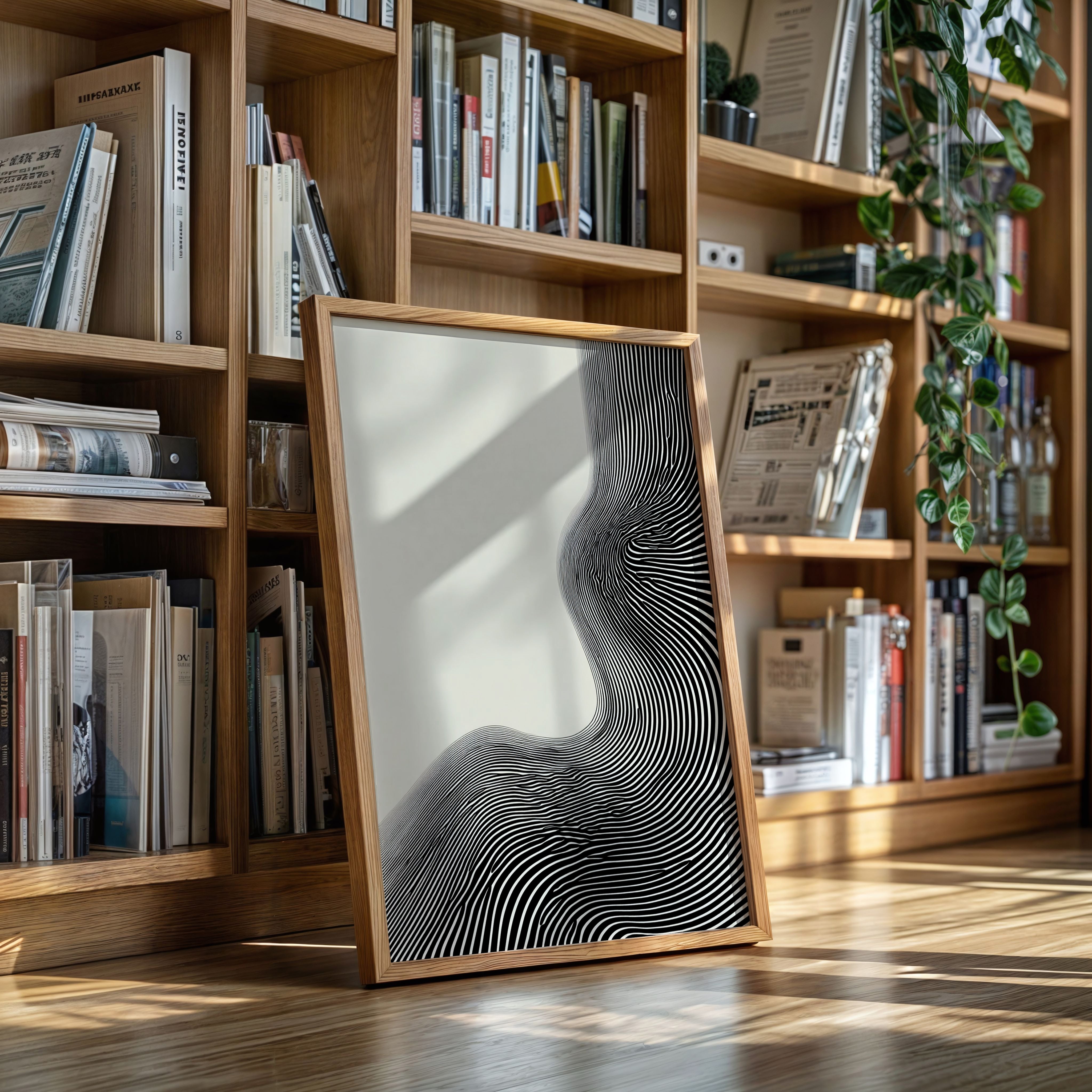In the gentle rise and fall of lines, a narrative unfolds, inviting the viewer to trace the contours of imagination. This piece embodies the essence of artisanal craftsmanship, merging simplicity with elegance. Each flowing line tells a story of movement and rhythm, contrasting stark black against a soft beige backdrop, evoking a sense of calm and contemplation. Ideal for a modern study or serene reading nook, it subtly enhances the atmosphere without overwhelming the senses.