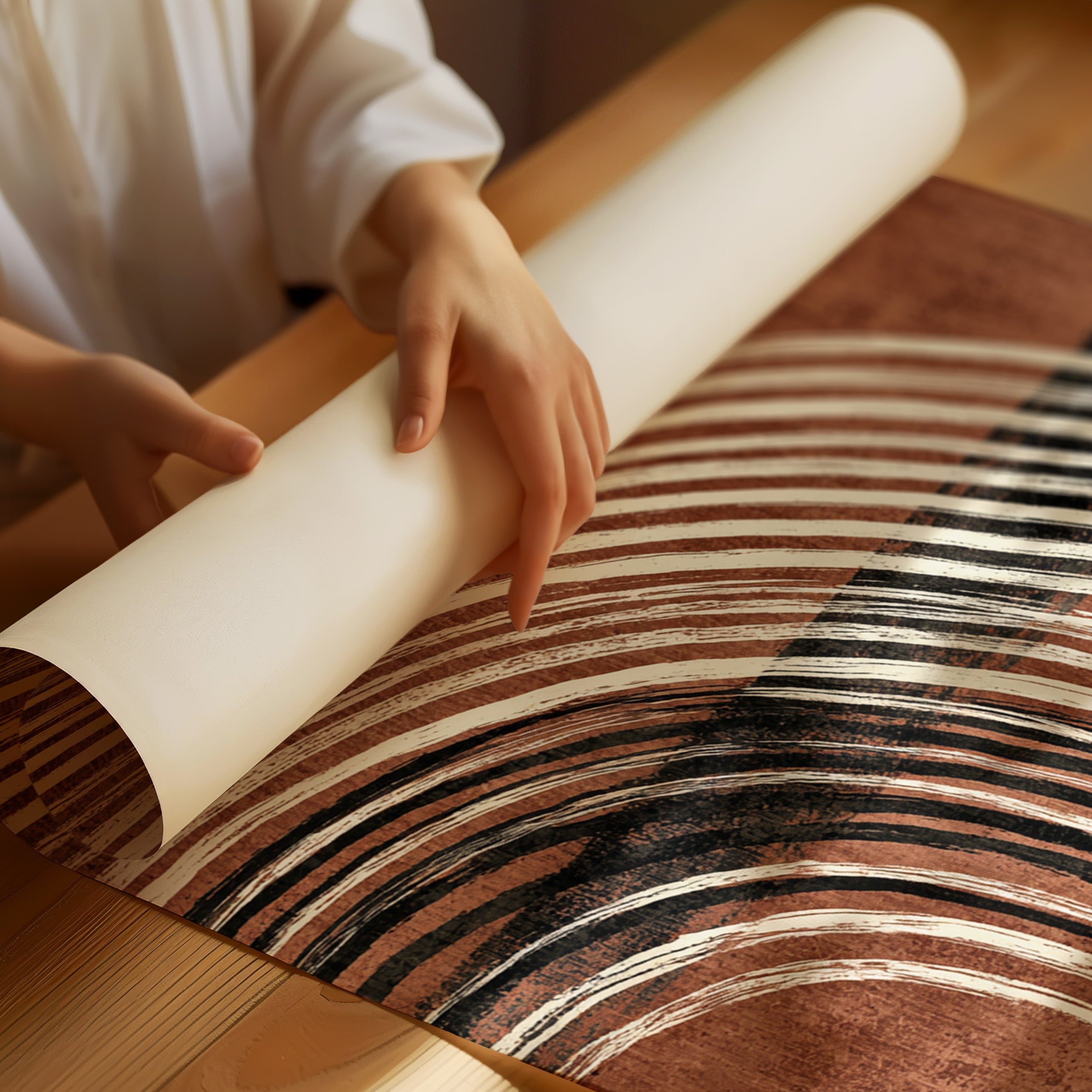 In a dance of earthy tones, lines converge, tracing the contours of memory and creation. This piece embodies the artisanal spirit, where craftsmanship meets warmth. The rhythmic patterns evoke a sense of connection with the earth, each curve telling a story of natures artistry, while the rich textures invite touch and contemplation. Ideal for a cozy reading nook or an inviting living room, this piece adds depth and warmth to any space.