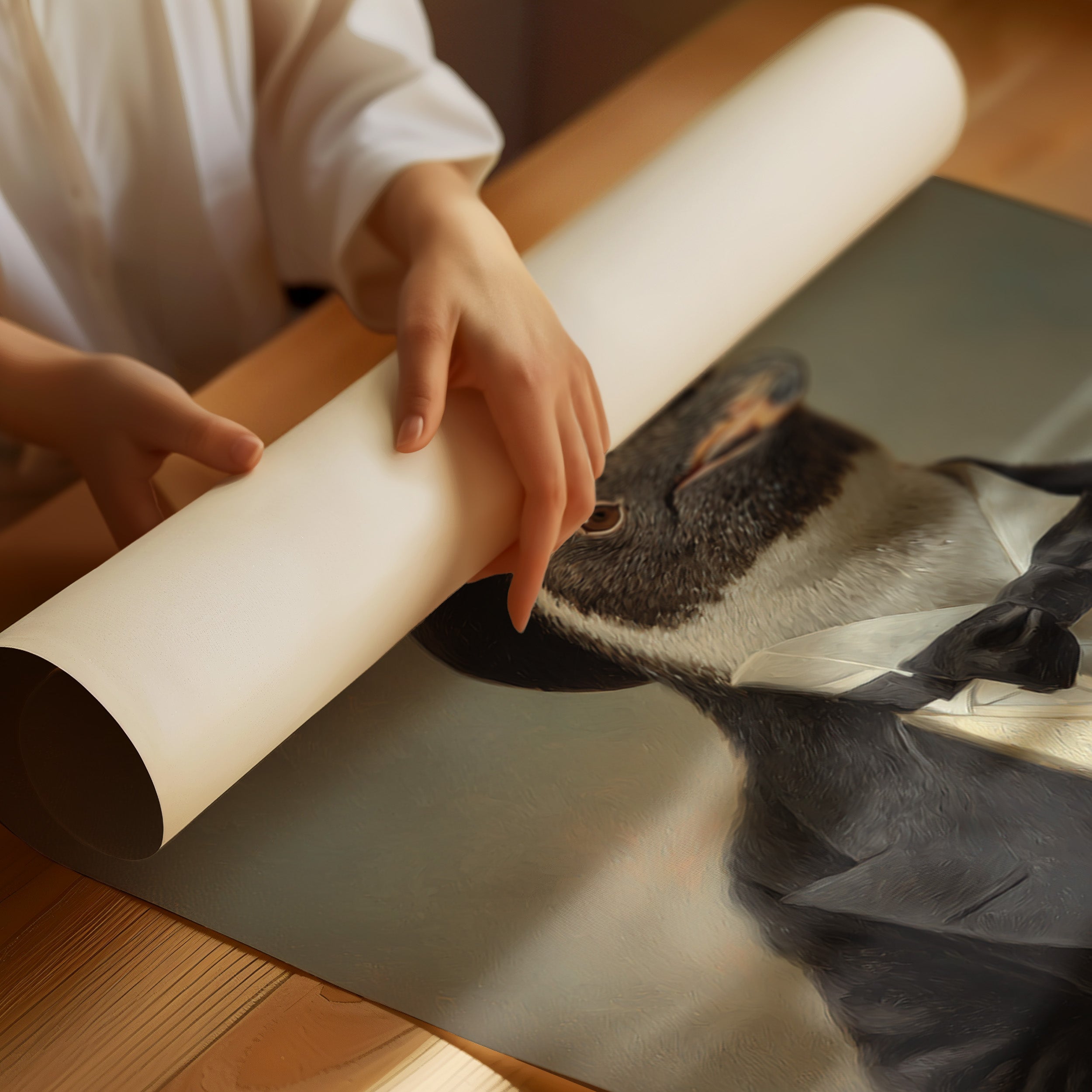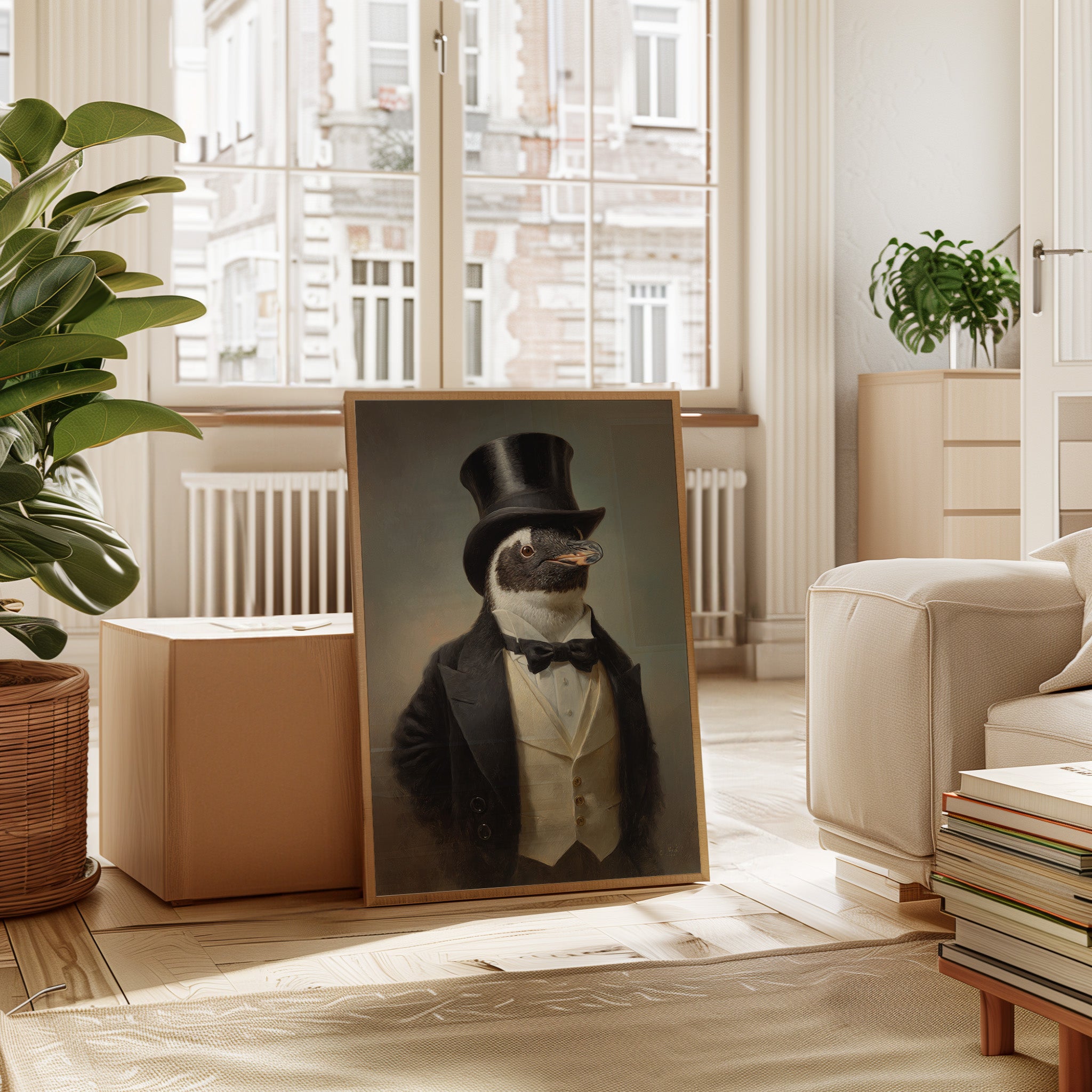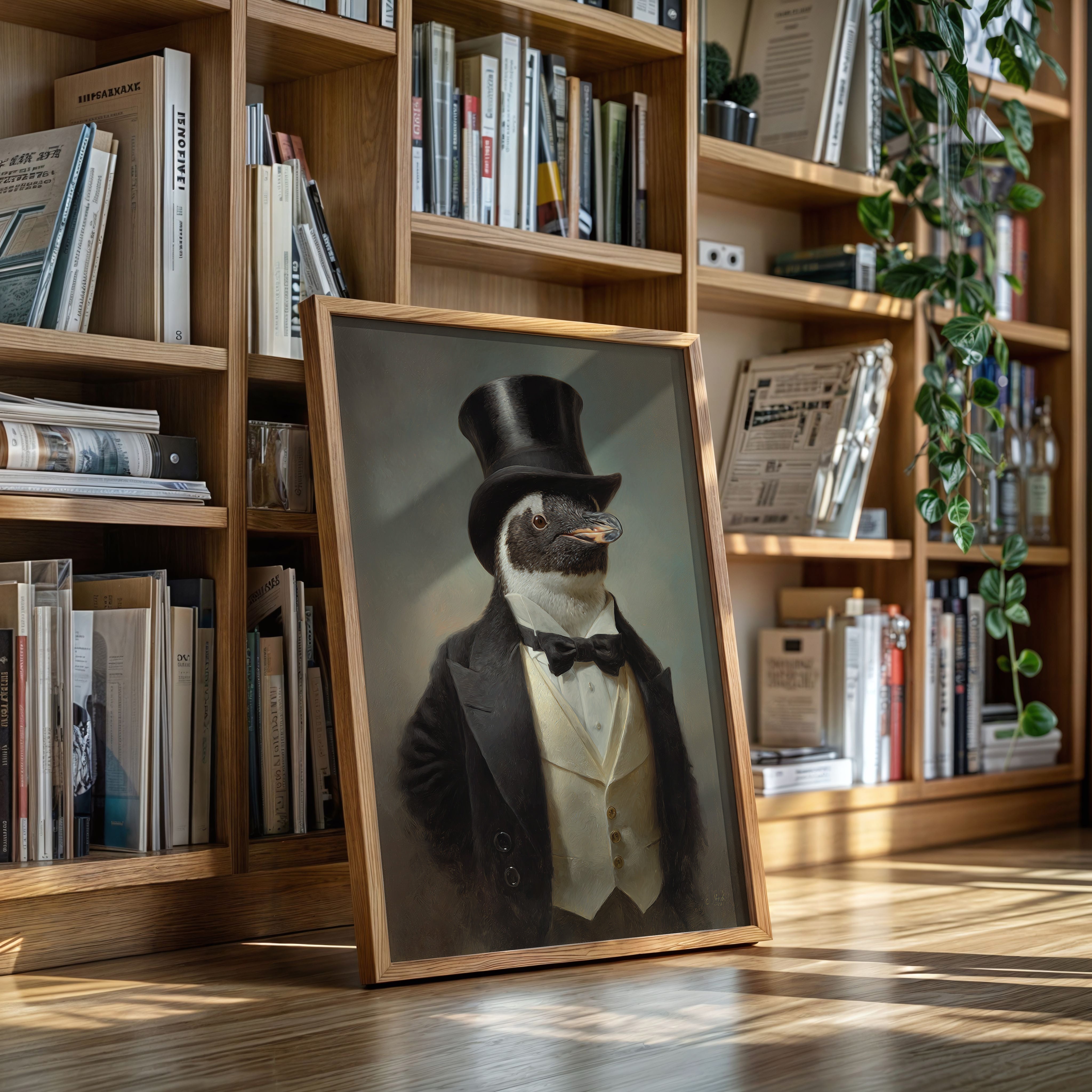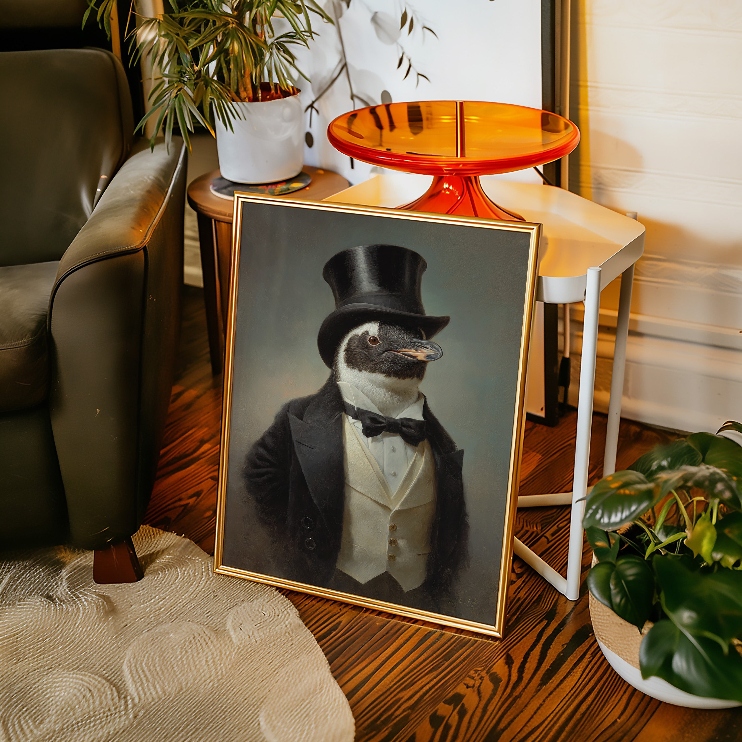 In a world where elegance meets whimsy, a penguin dons a top hat and tails, embodying a celebration of lifes quirks. This piece effortlessly marries humor with sophistication, reflecting the charm of the unexpected. Rich textures and warm tones bring the character to life, inviting smiles and sparking joy in any space. Perfect for a lounge or entryway, this artwork sets a playful yet refined tone for gatherings and conversations.