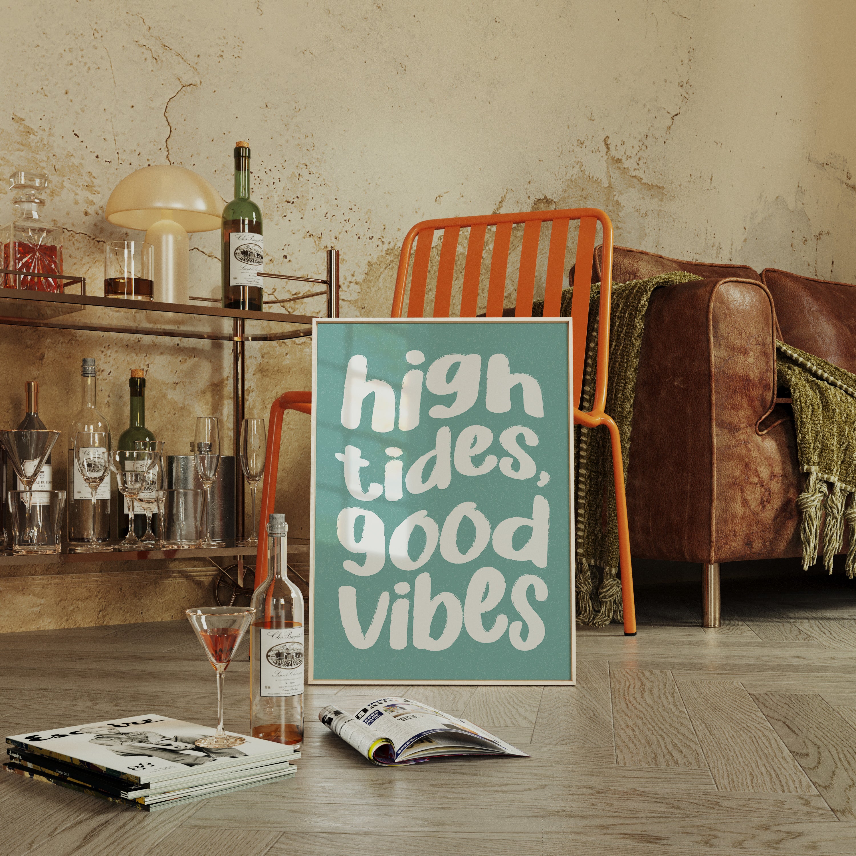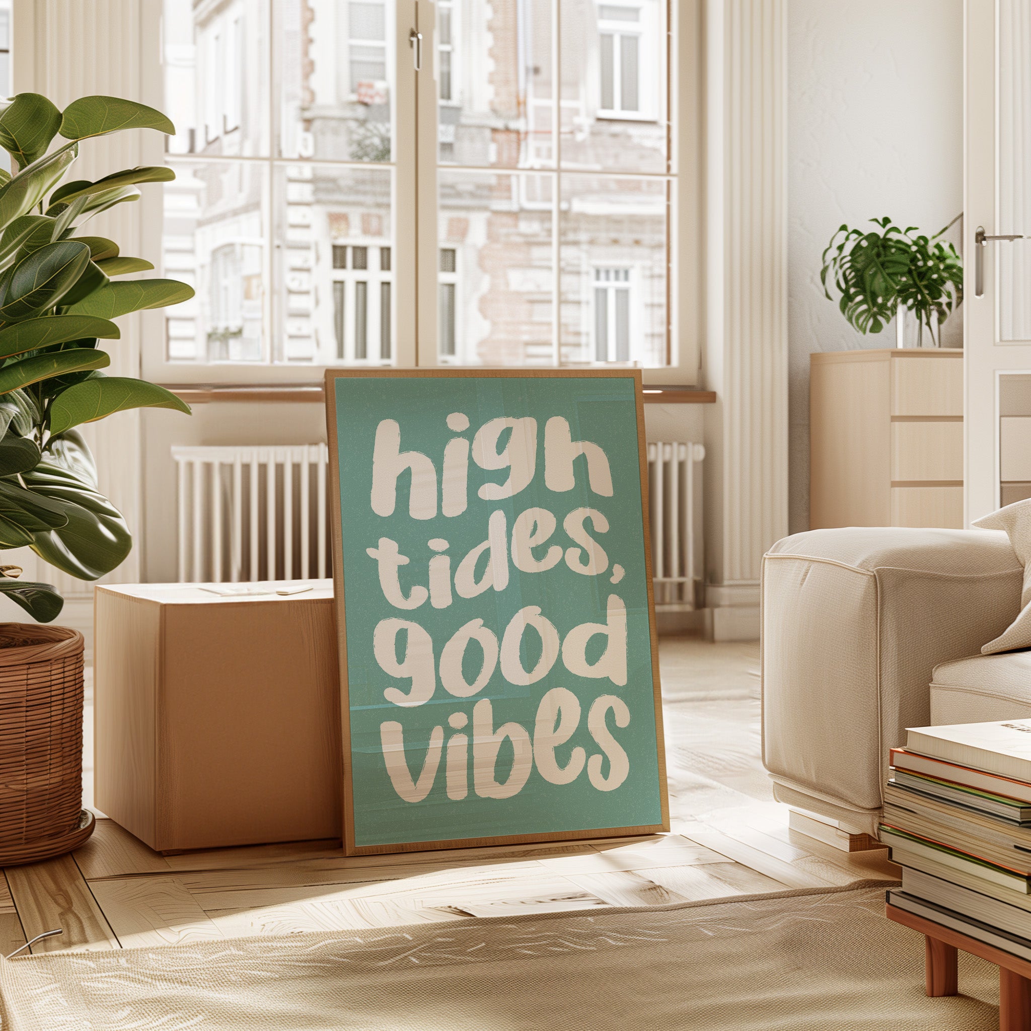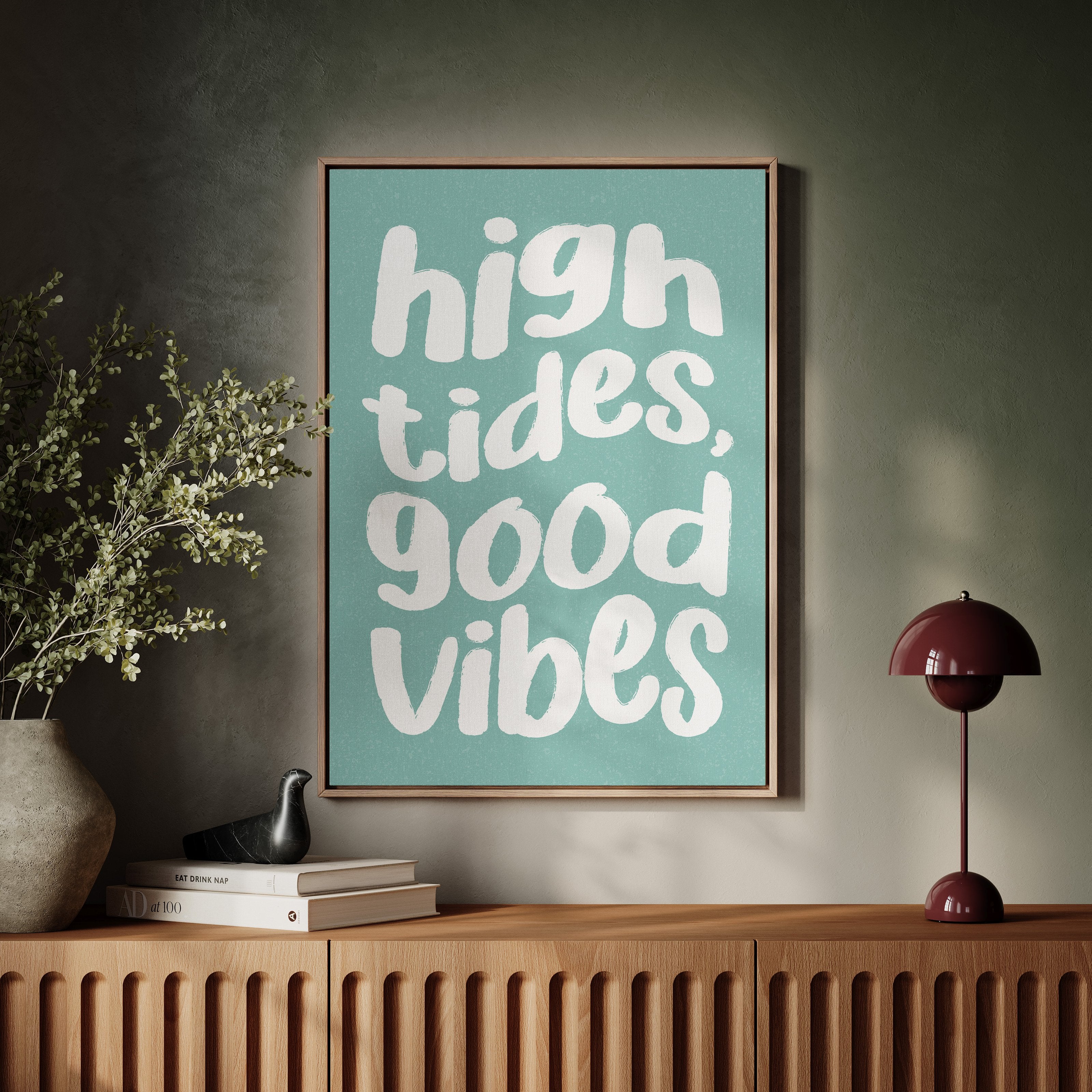 A harmonious blend of coastal charm and desert spirit comes alive in this scene, where a playful turquoise typography piece meets a hardy cactus companion. Part of our Contemporary collection, this composition speaks to the modern bohemian soul. The soft sage-green backdrop carries white hand-lettered words that dance with casual confidence, while the textured concrete wall and weathered wooden elements add industrial warmth to the setting. The minimal staging creates a perfect balance between urban edge and beachy ease. This piece brings instant personality to a home office, beach house living room, or any space seeking that perfect mix of laid-back sophistication.
