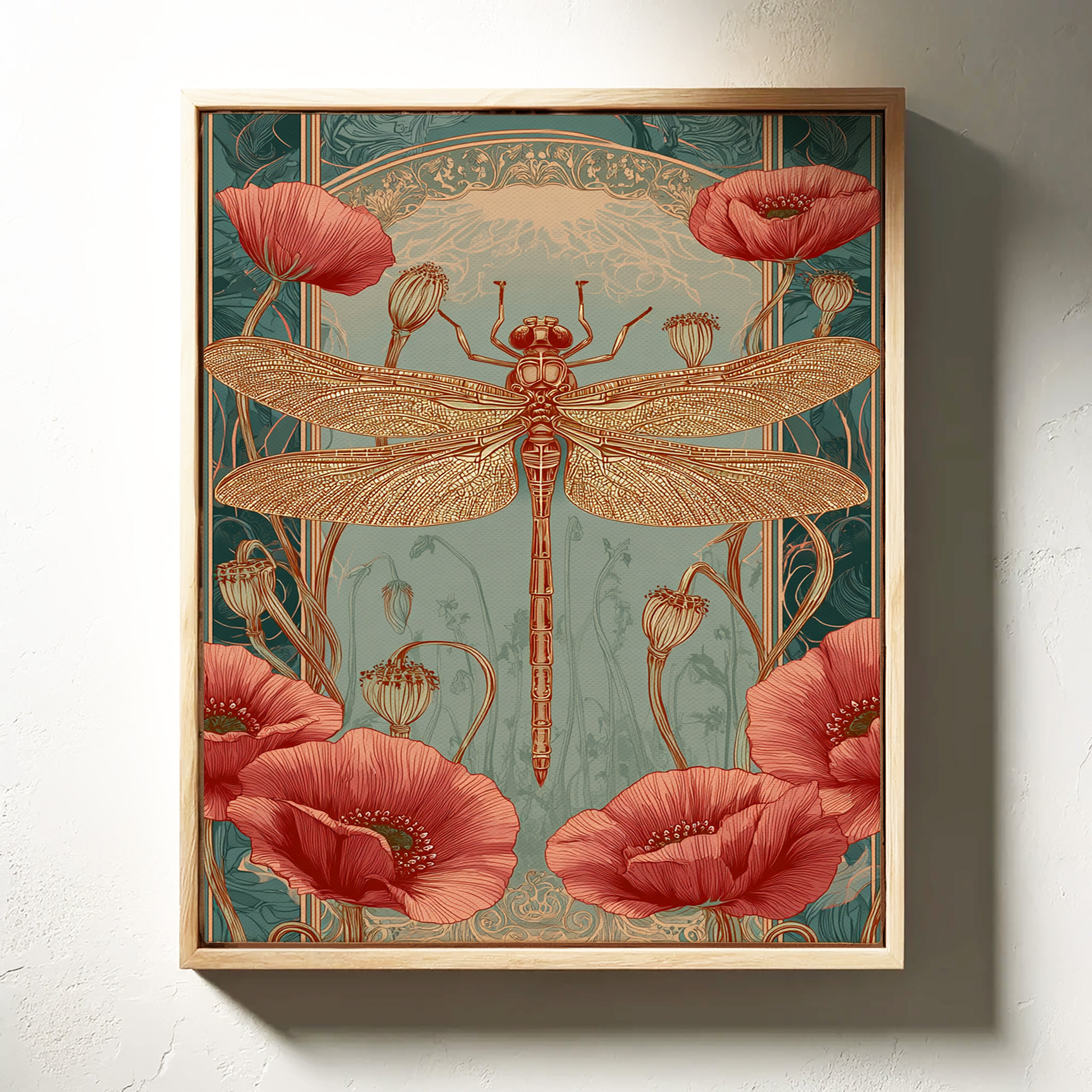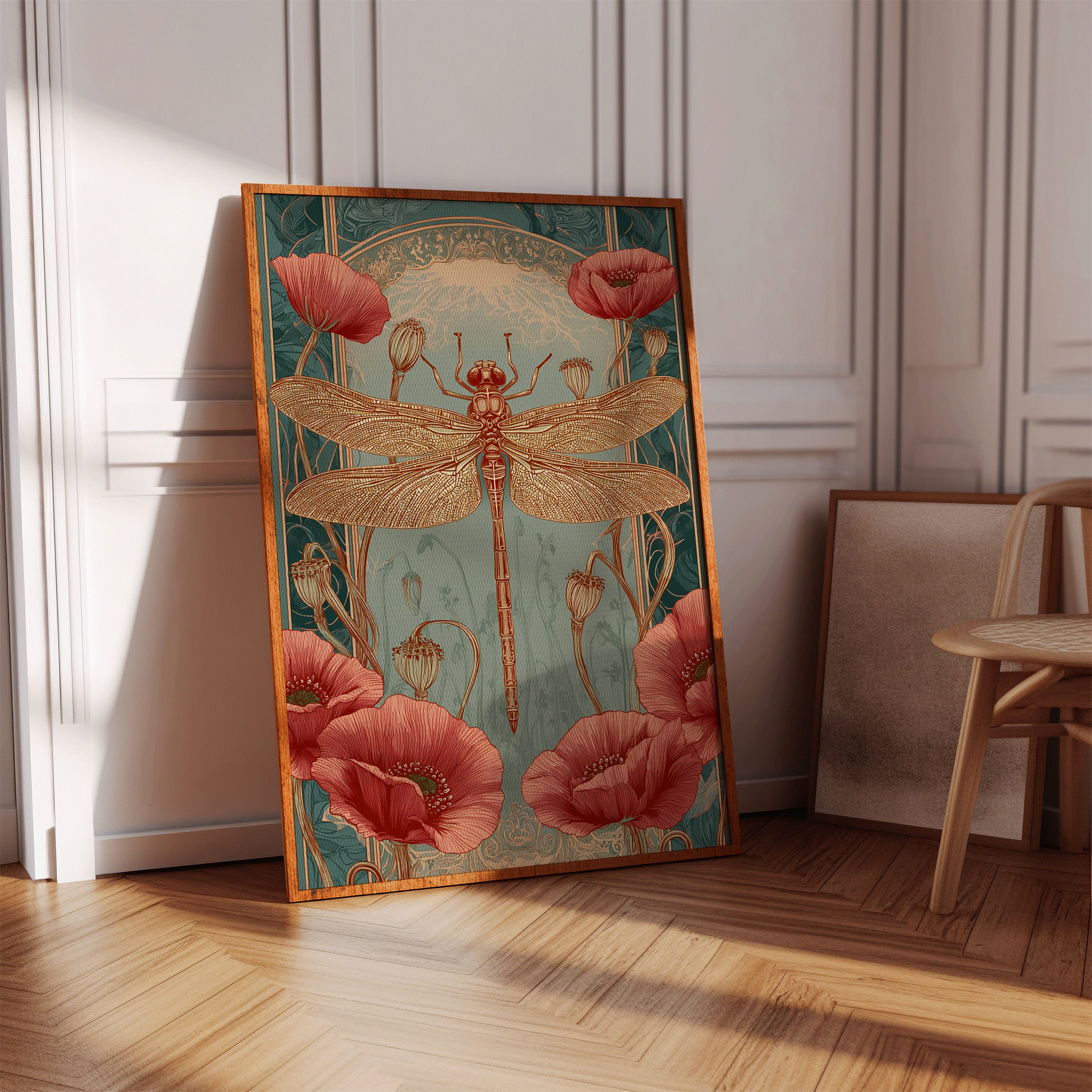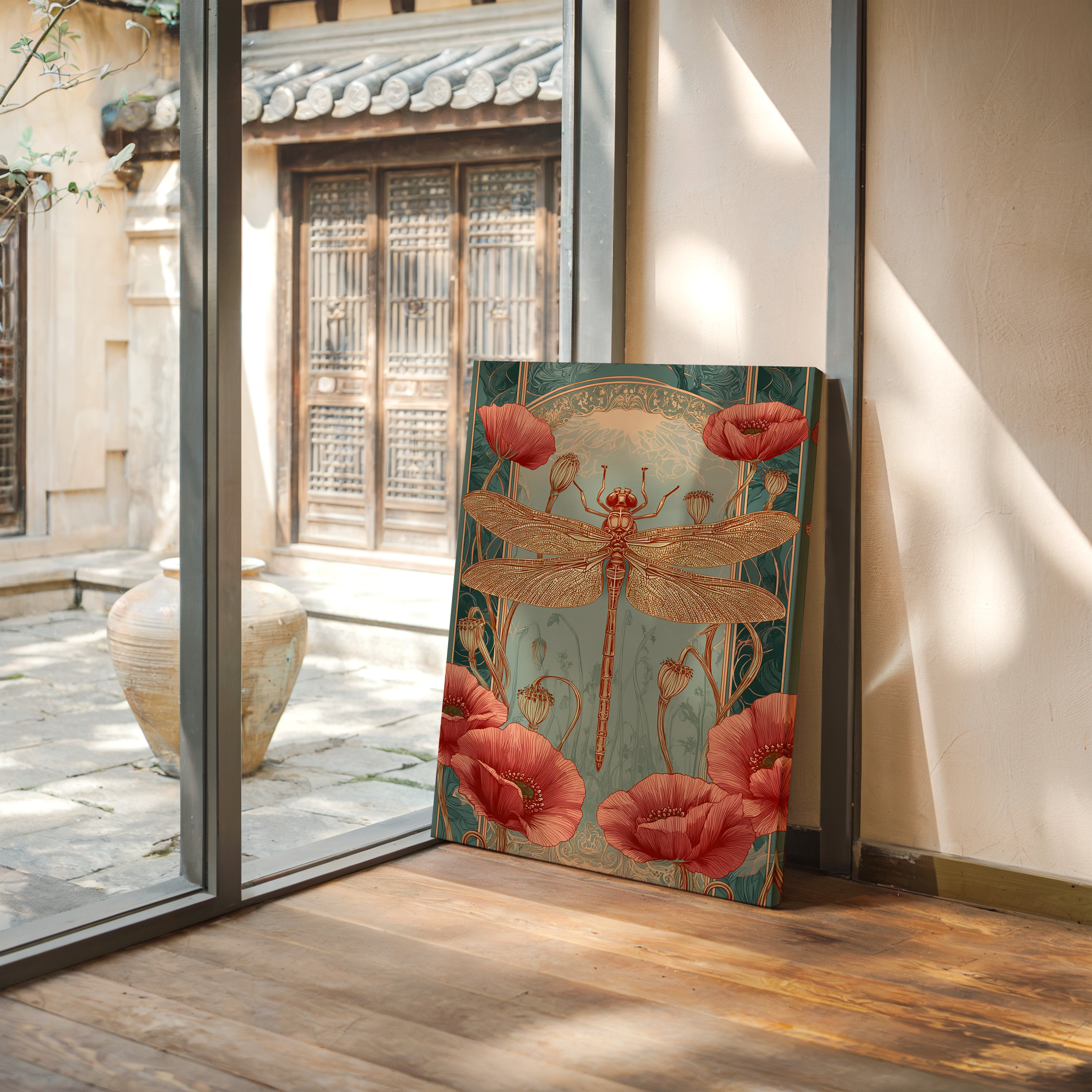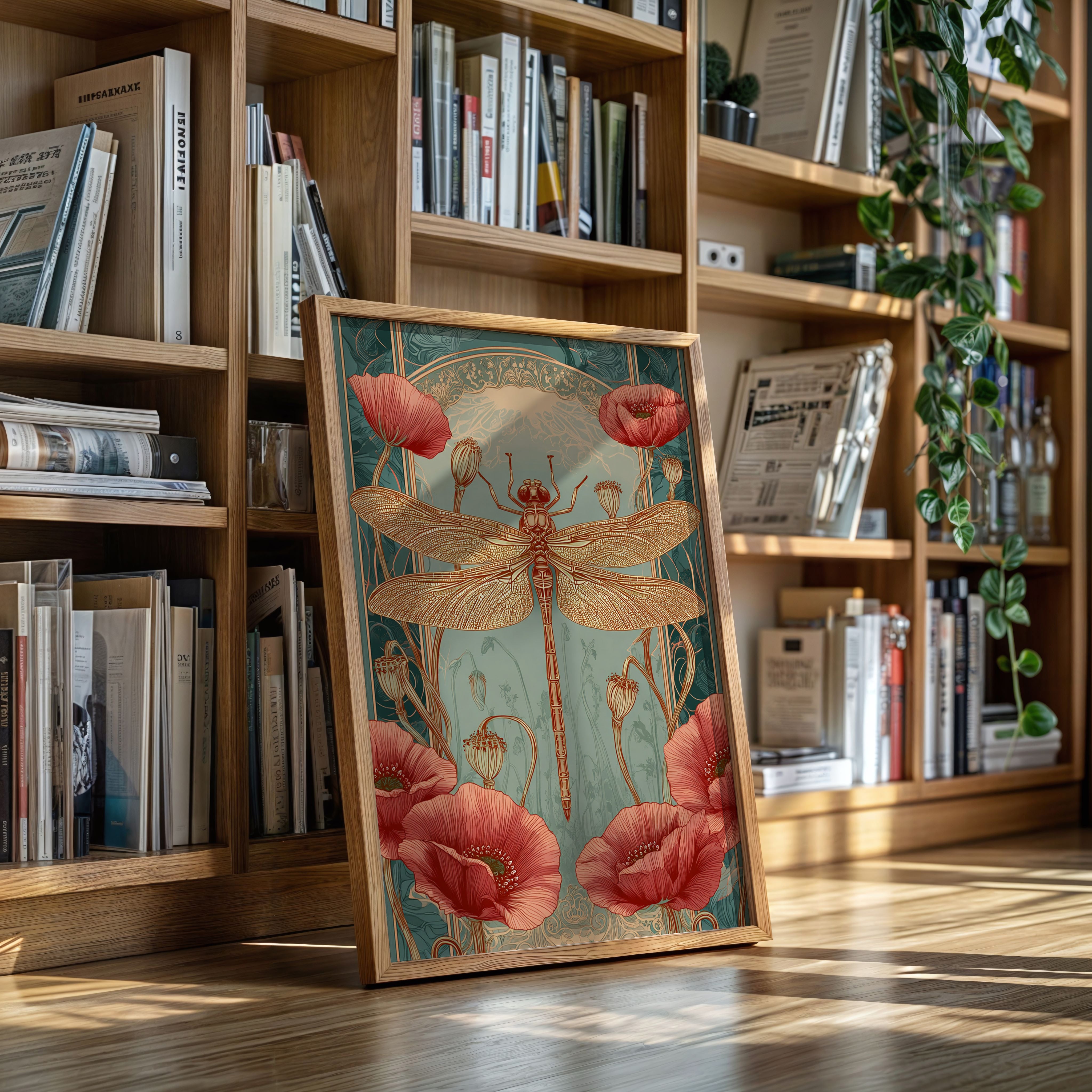 In a realm where artistry and nature intertwine, a dragonfly perches gracefully atop a vibrant bloom, heralding the beauty of fleeting moments. This piece embodies the essence of the Artisanal collection, celebrating the intricate dance of life and artistry. The delicate lines of the dragonflys wings contrast beautifully with the bold crimson of the poppies, evoking a sense of wonder and tranquility. Ideal for a serene reading nook or a vibrant entryway, this piece invites viewers to pause and reflect on the beauty surrounding them.