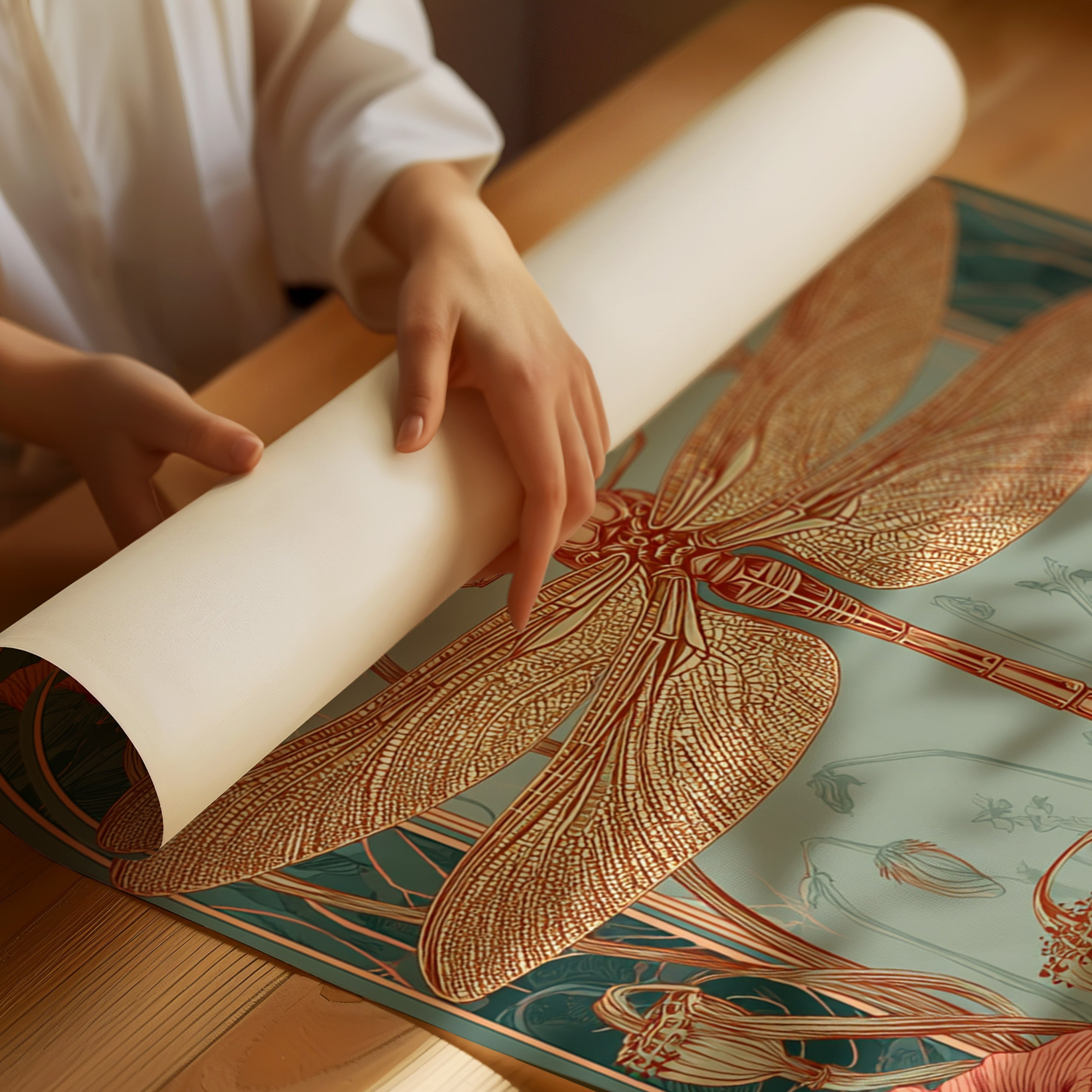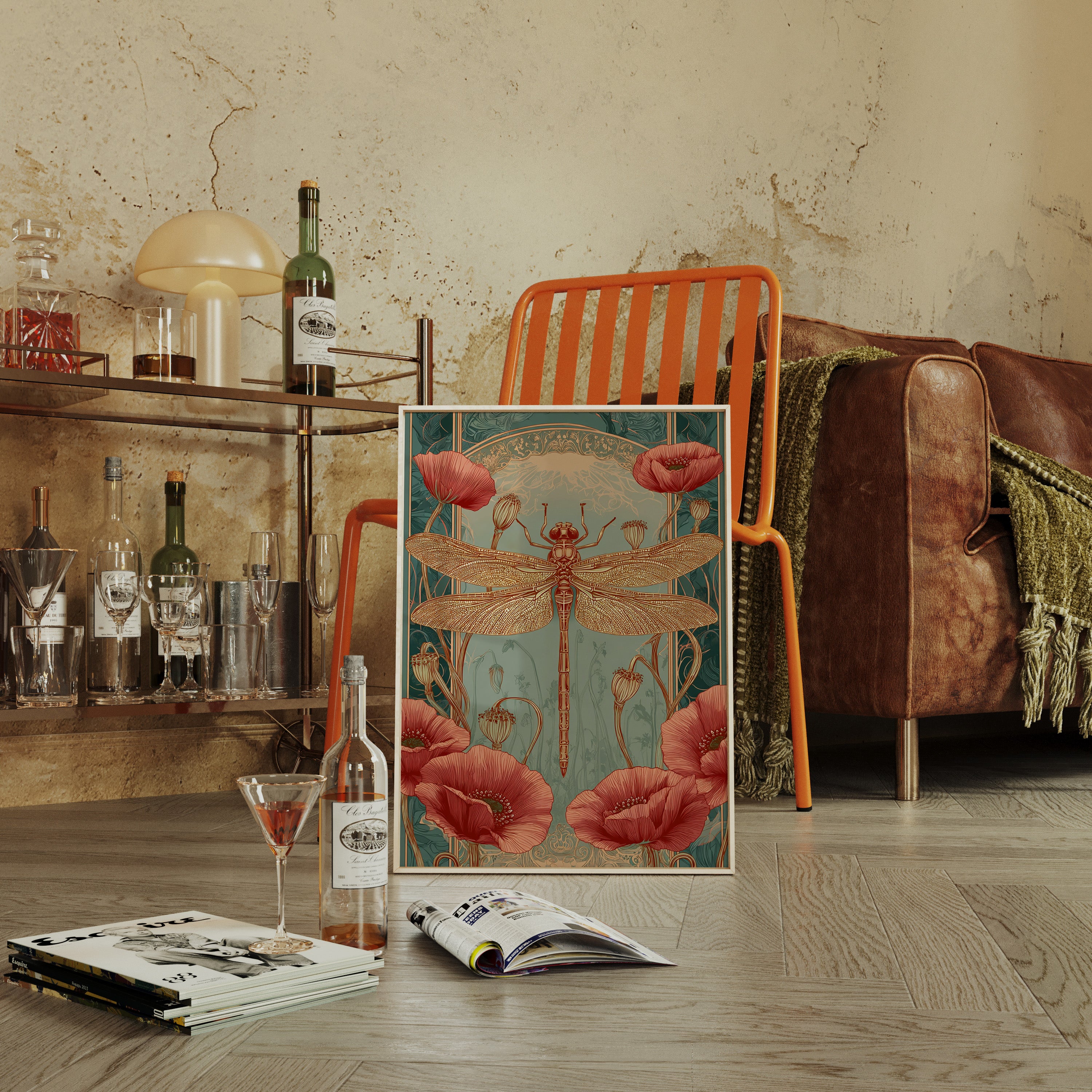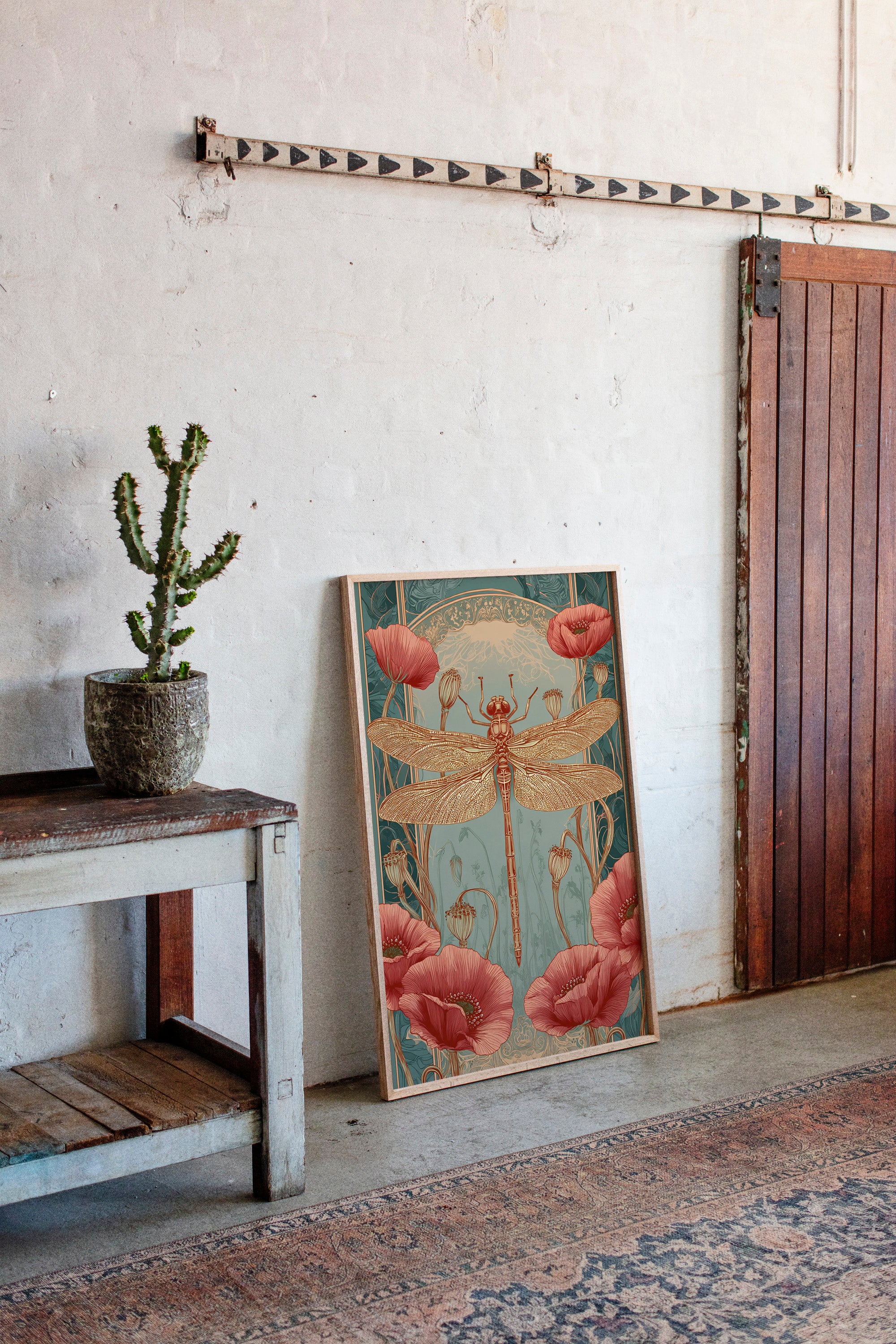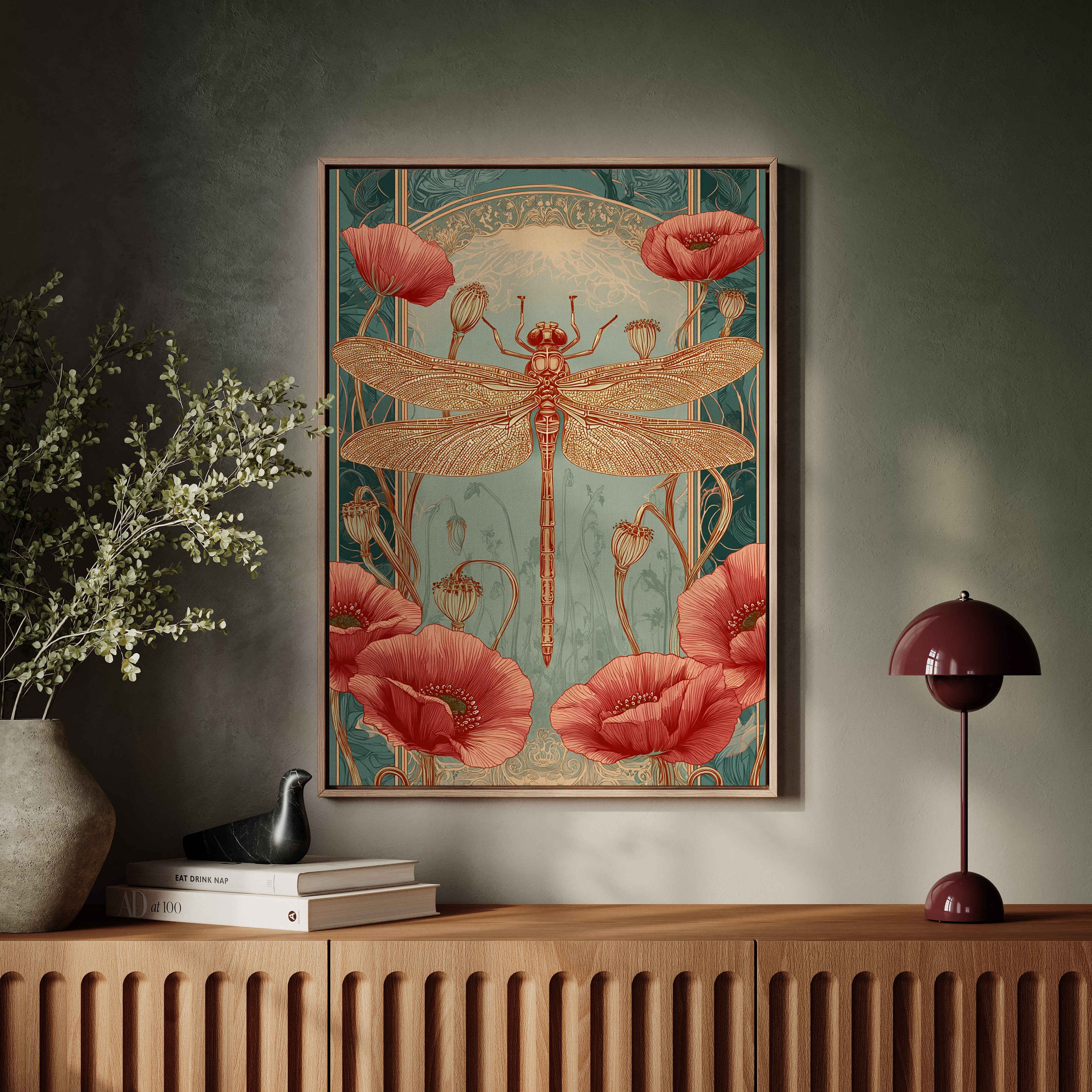 In a realm where artistry and nature intertwine, a dragonfly perches gracefully atop a vibrant bloom, heralding the beauty of fleeting moments. This piece embodies the essence of the Artisanal collection, celebrating the intricate dance of life and artistry. The delicate lines of the dragonflys wings contrast beautifully with the bold crimson of the poppies, evoking a sense of wonder and tranquility. Ideal for a serene reading nook or a vibrant entryway, this piece invites viewers to pause and reflect on the beauty surrounding them.
