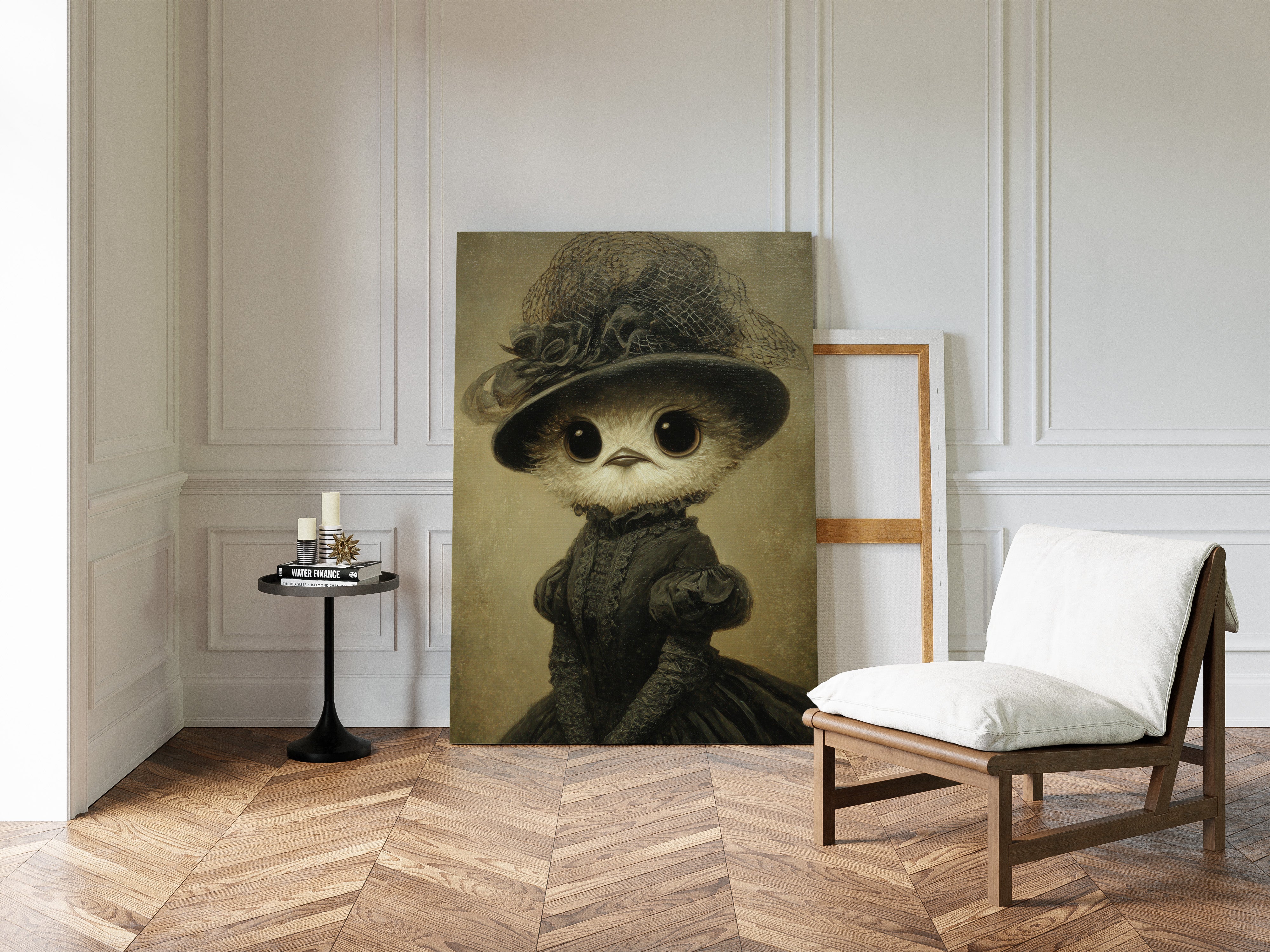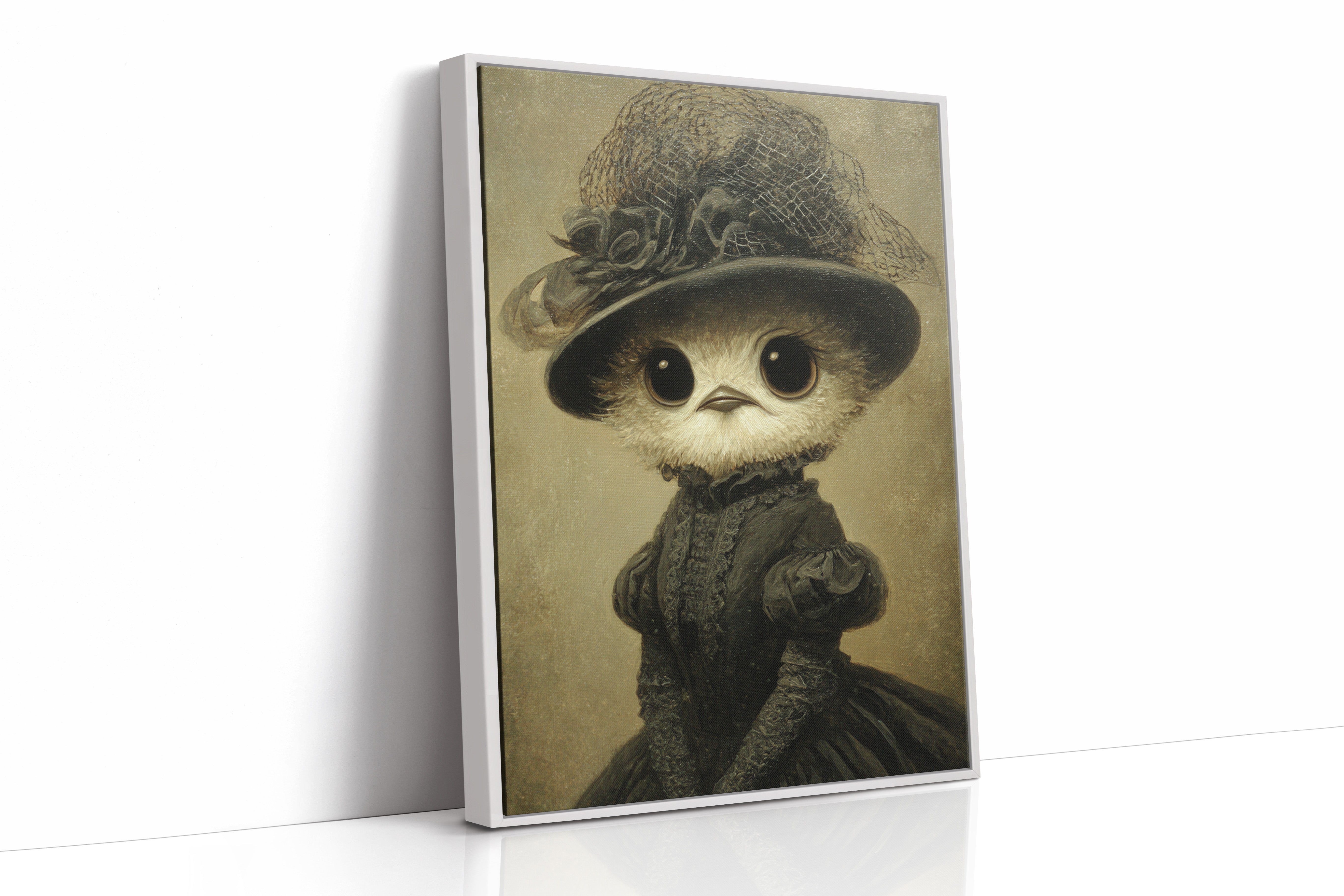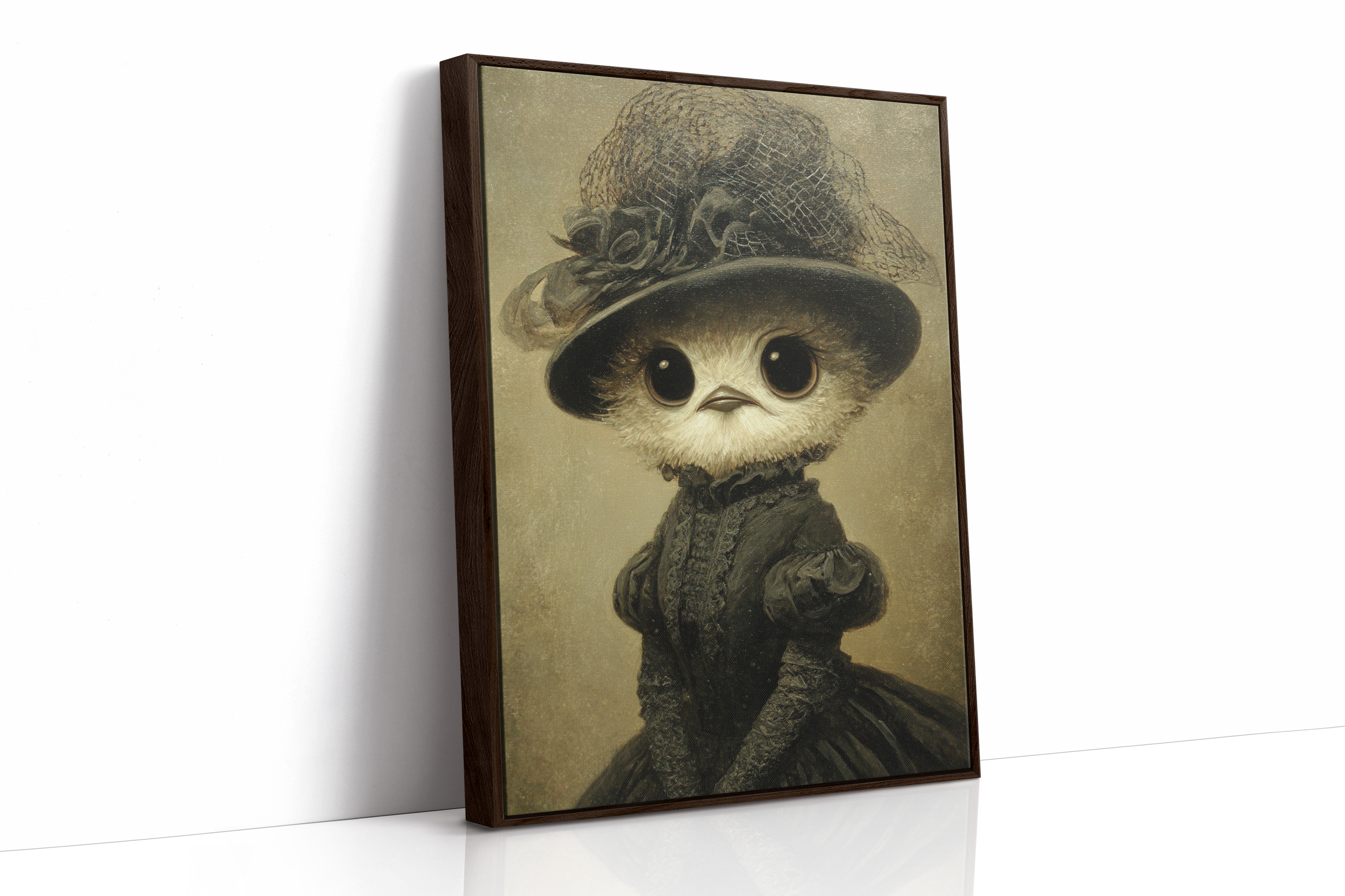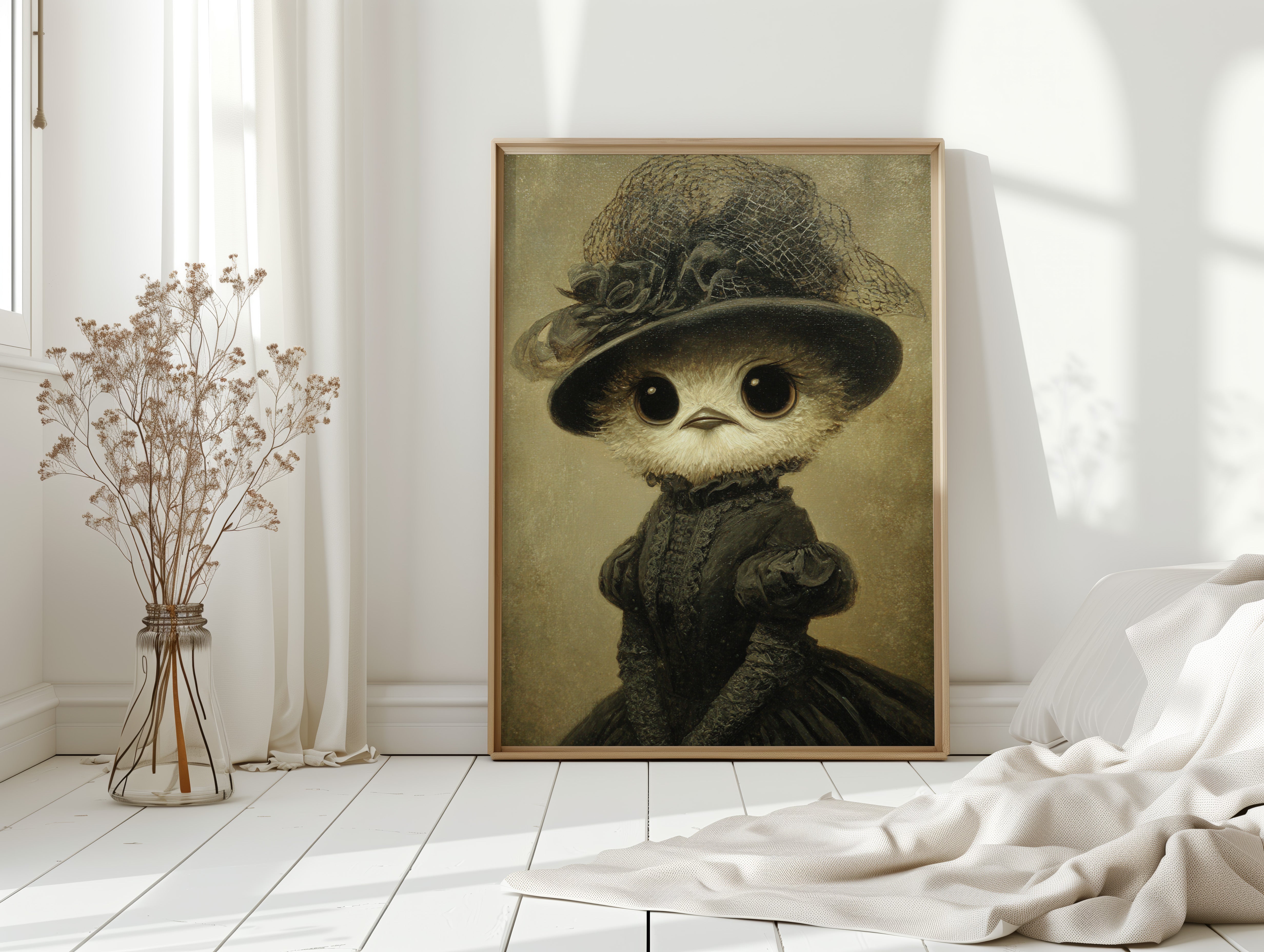 In a world where whimsy meets refinement, a charming creature dons its finest attire, embodying both innocence and grace. This piece is a delightful entry in the Artisanal collection, where craftsmanship blooms in unexpected forms. Every detail, from the lace-trimmed hat to the flowing gown, tells a tale of a bygone era, inviting you to wonder about the stories behind those wide, expressive eyes. Perfect for a cozy reading nook or a playful children's room, this enchanting piece will spark joy and curiosity.