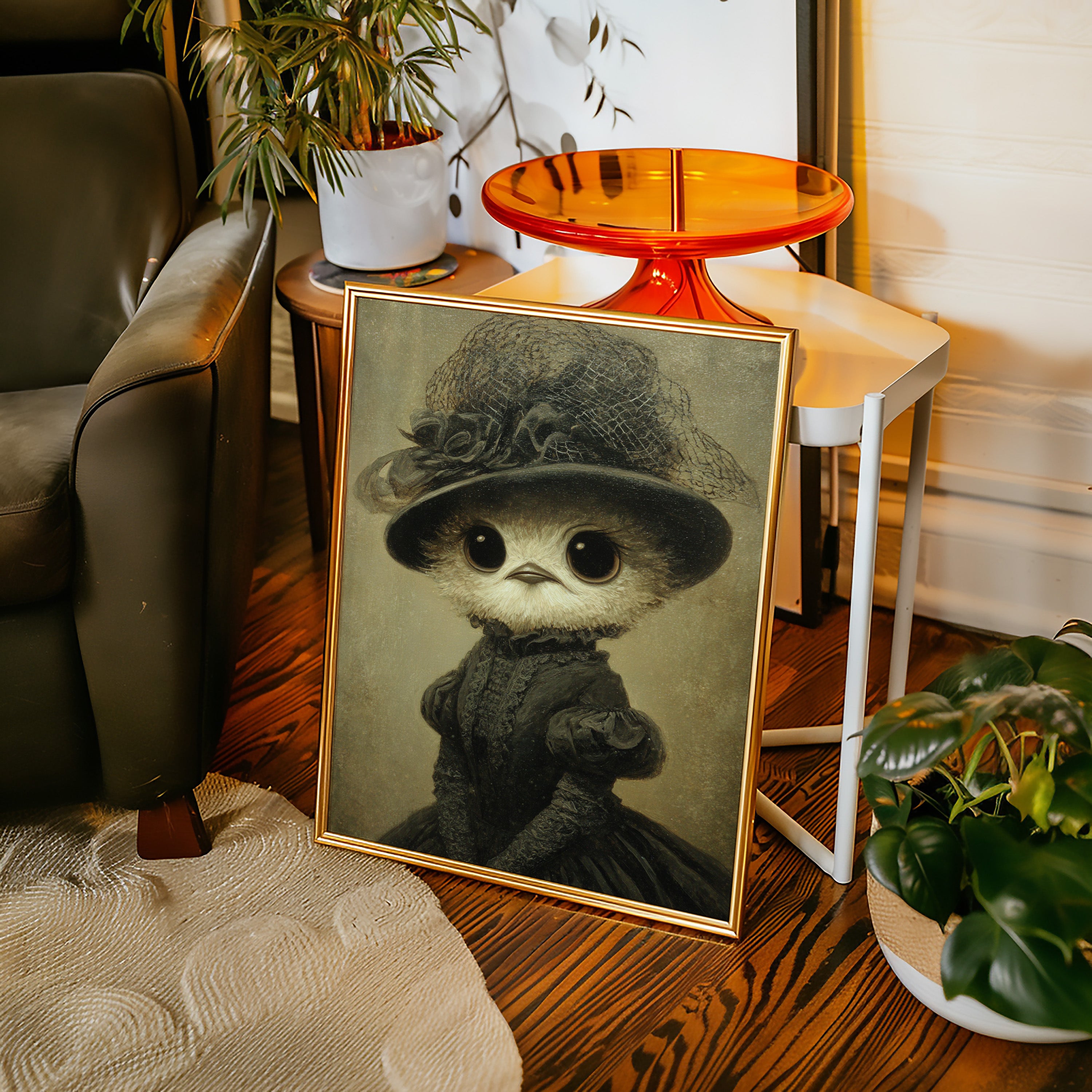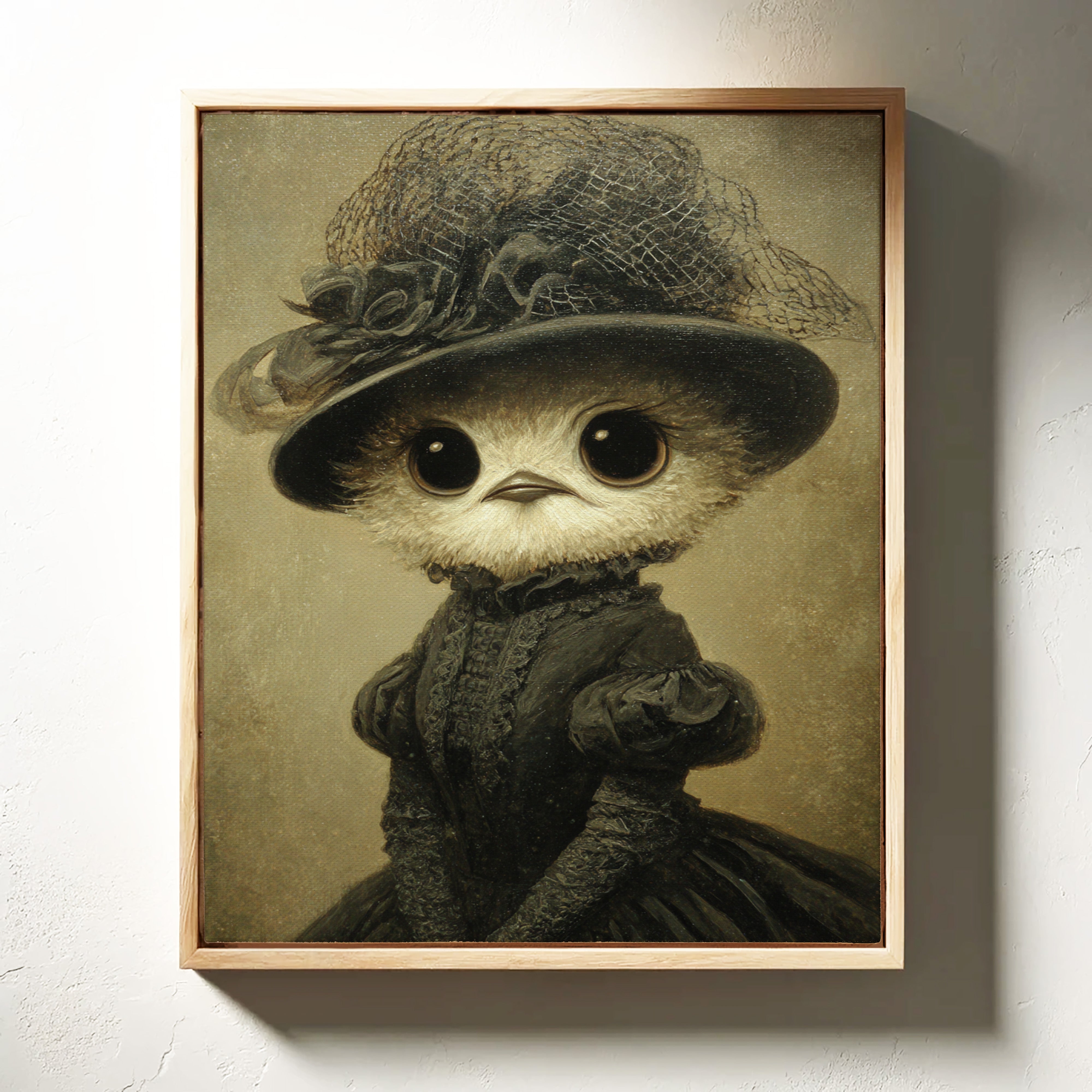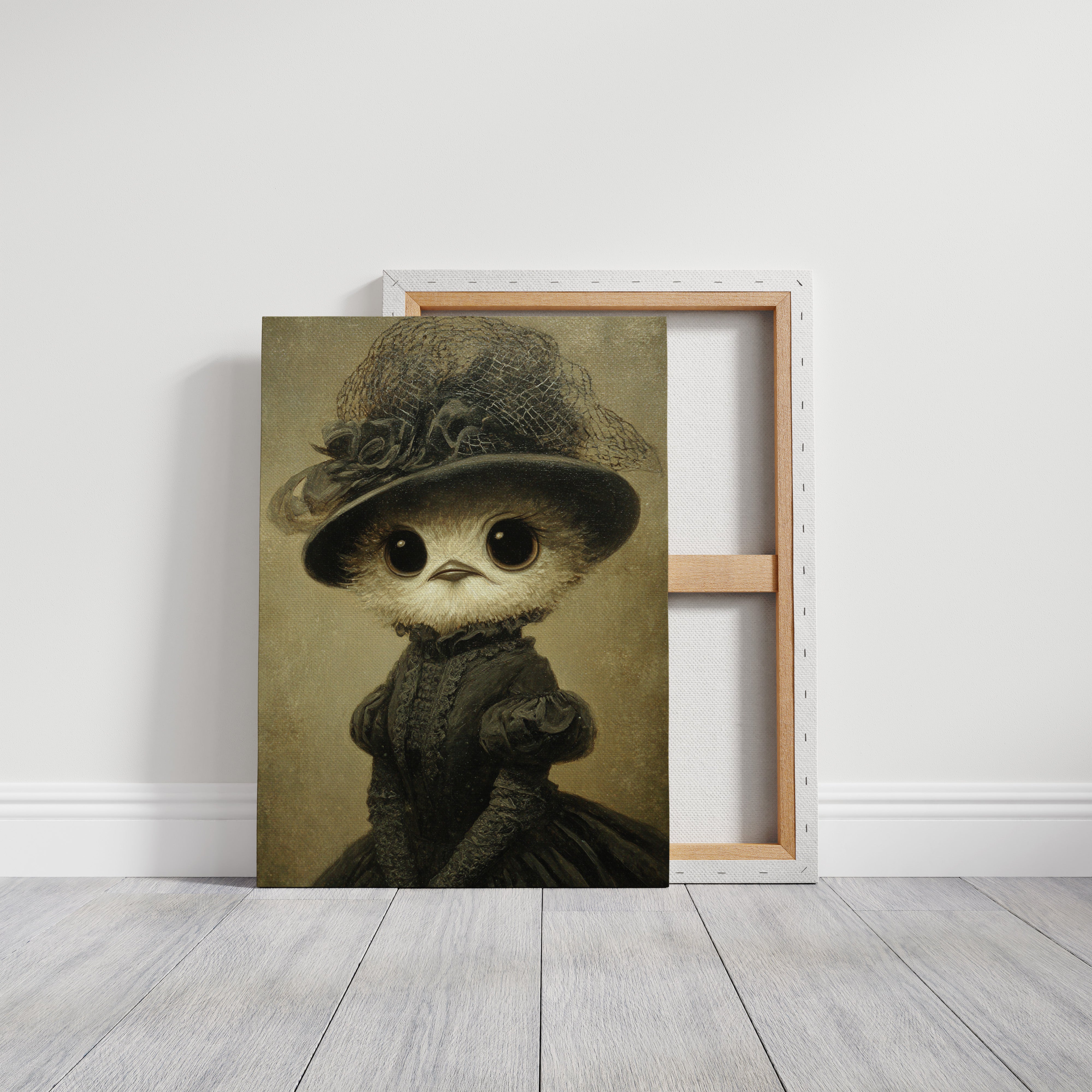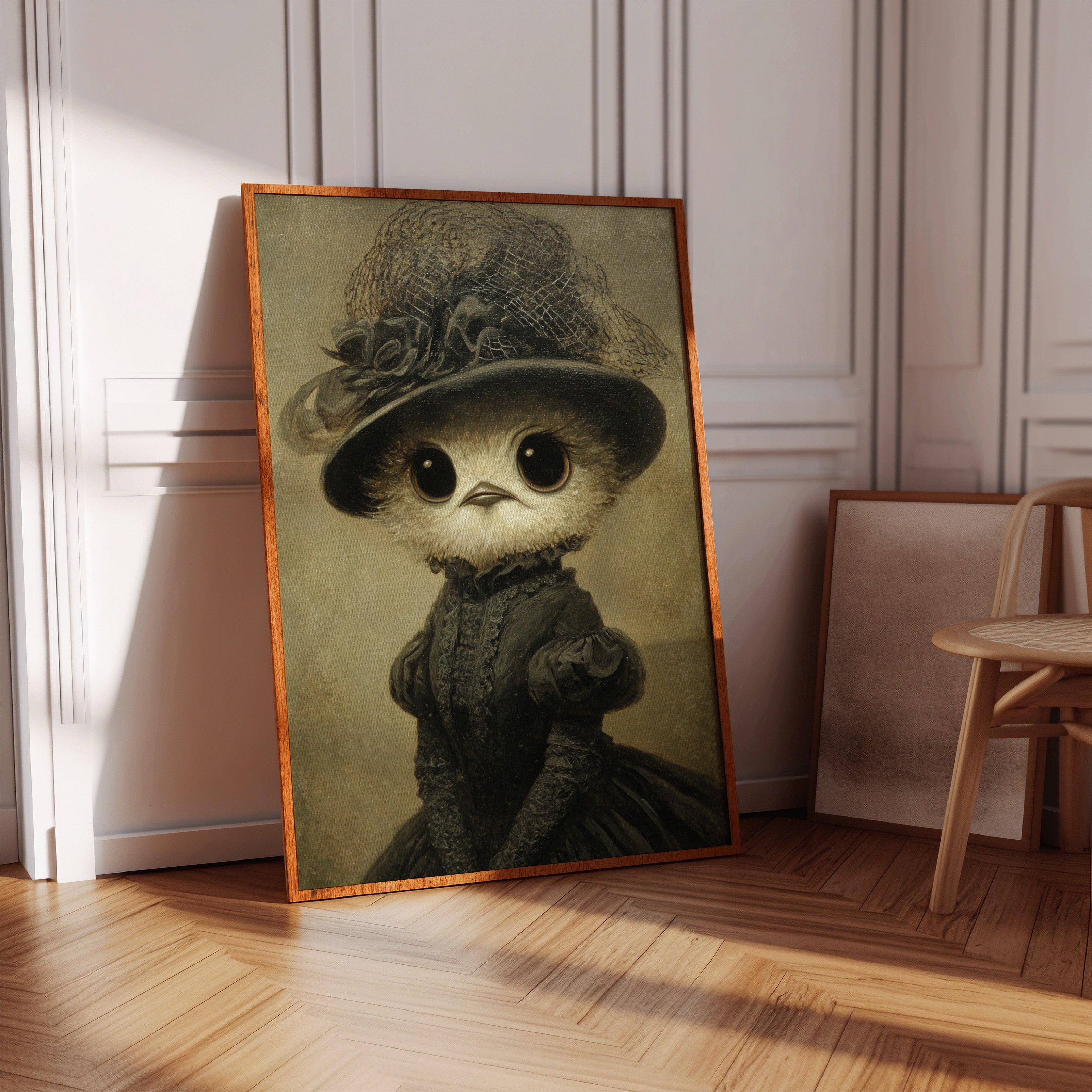 In a world where whimsy meets refinement, a charming creature dons its finest attire, embodying both innocence and grace. This piece is a delightful entry in the Artisanal collection, where craftsmanship blooms in unexpected forms. Every detail, from the lace-trimmed hat to the flowing gown, tells a tale of a bygone era, inviting you to wonder about the stories behind those wide, expressive eyes. Perfect for a cozy reading nook or a playful children's room, this enchanting piece will spark joy and curiosity.