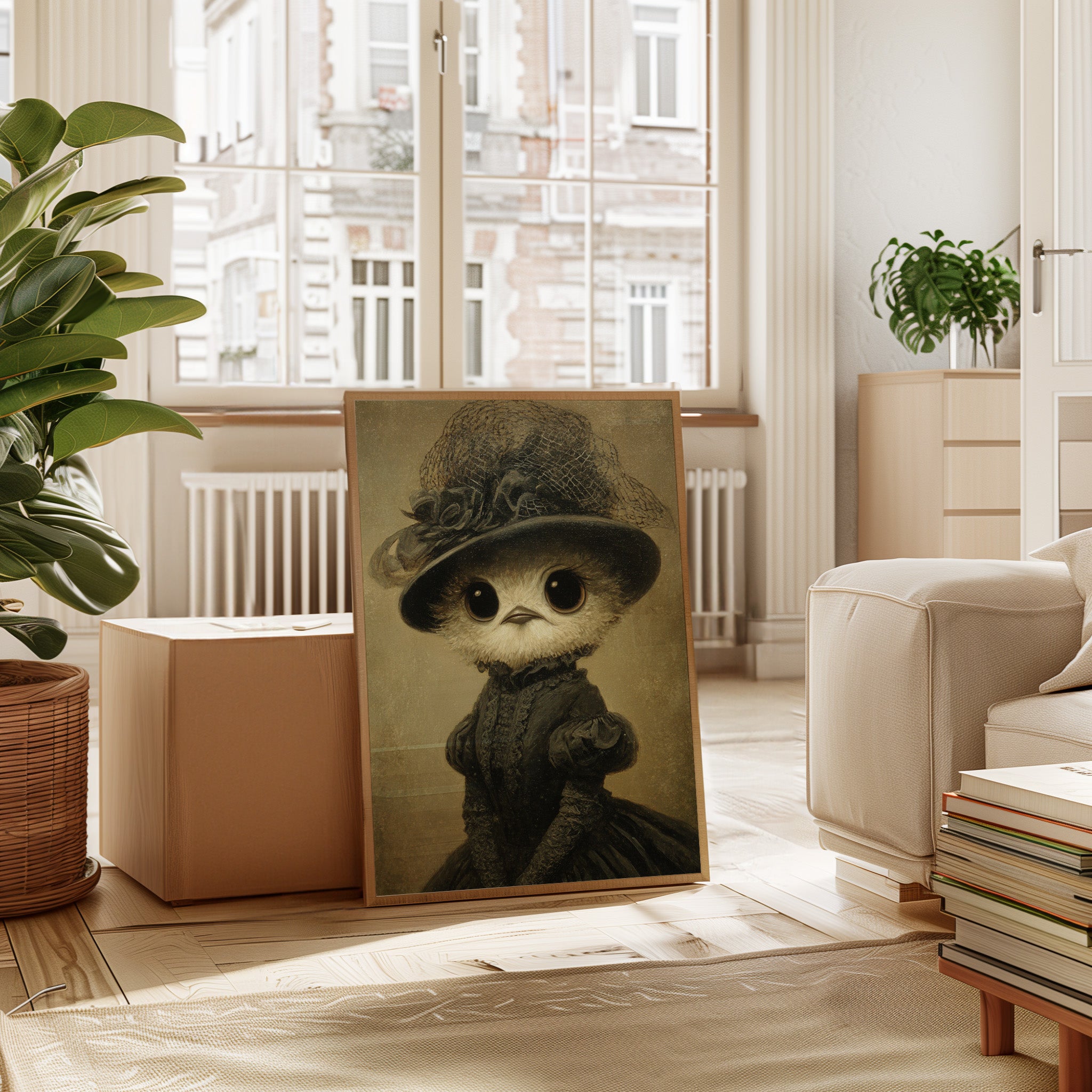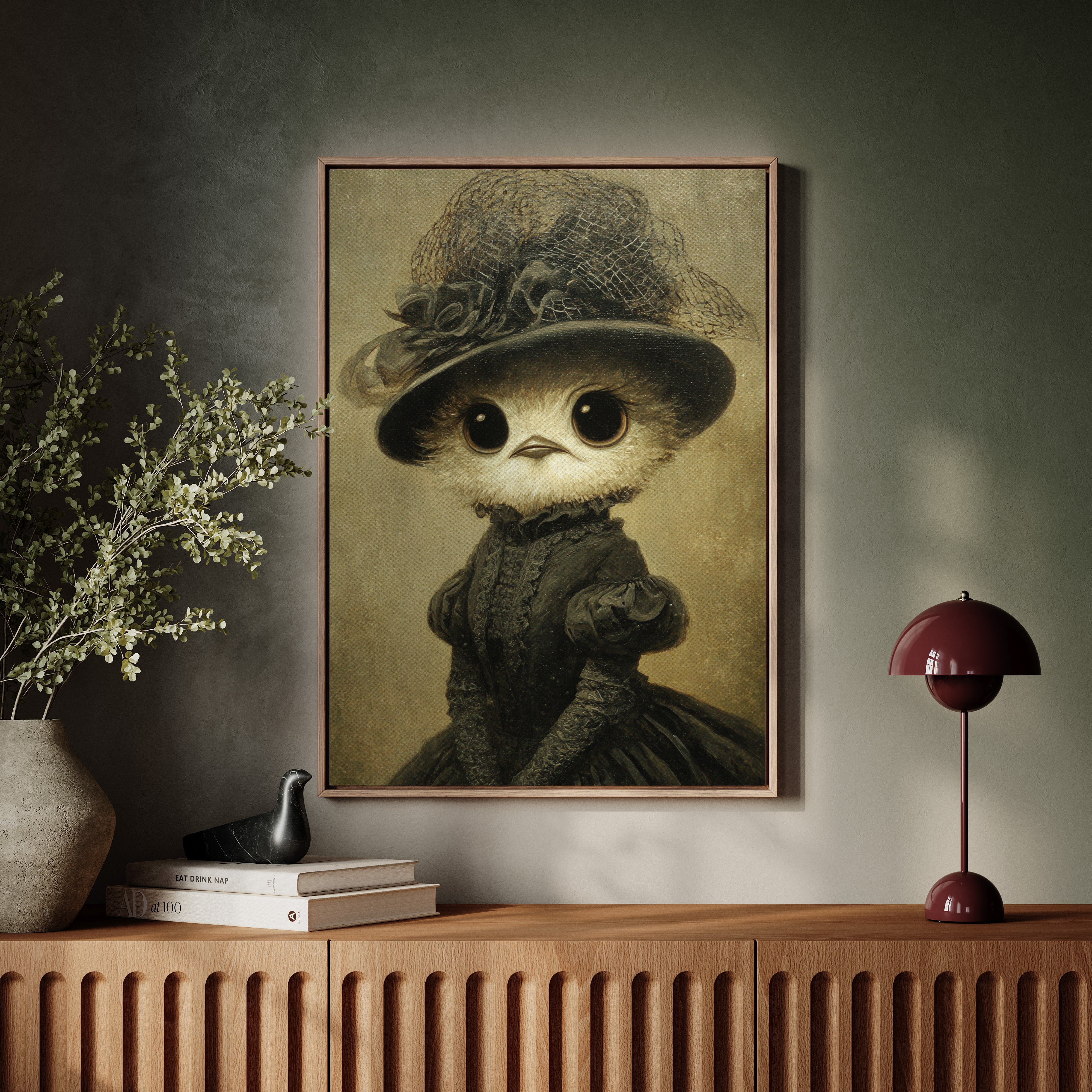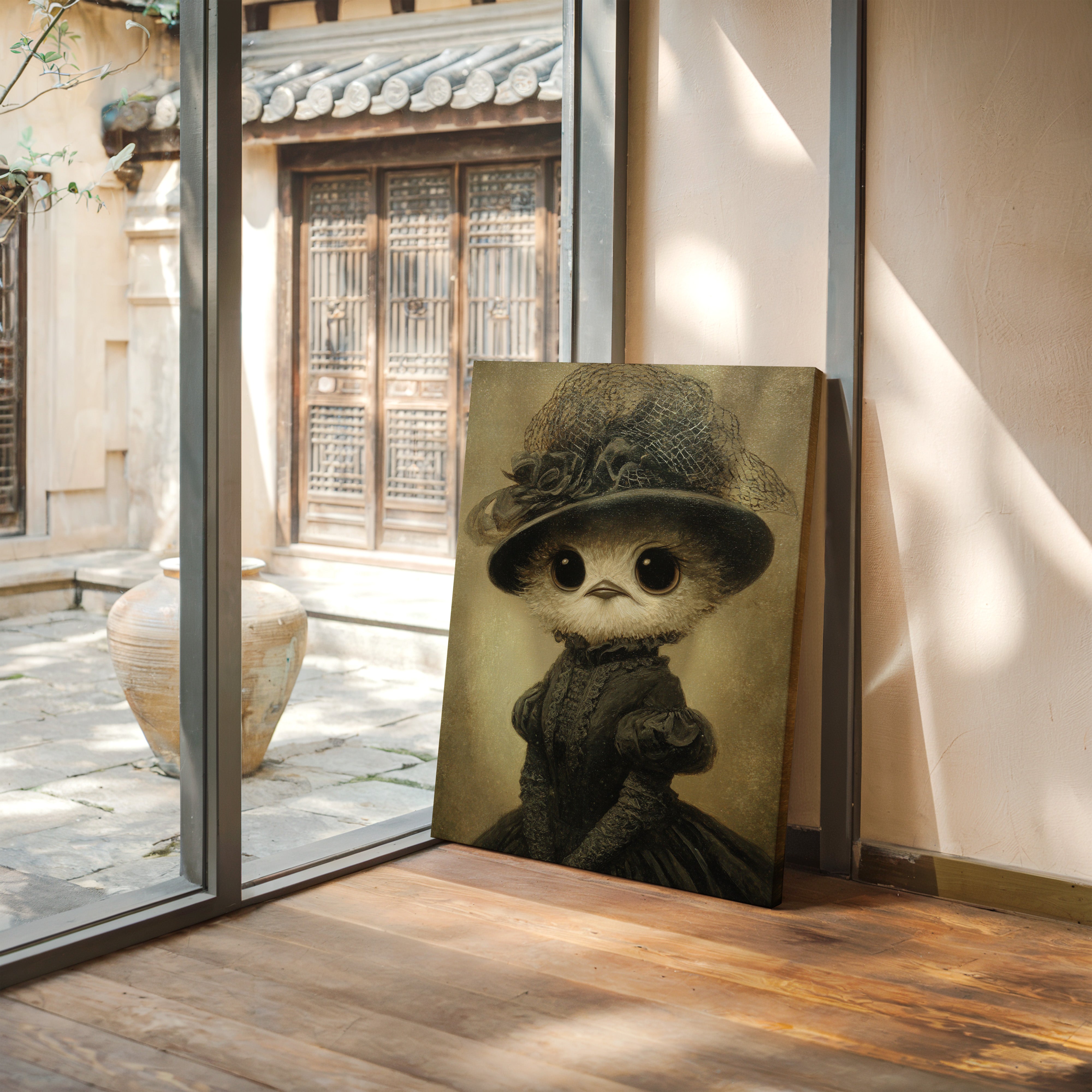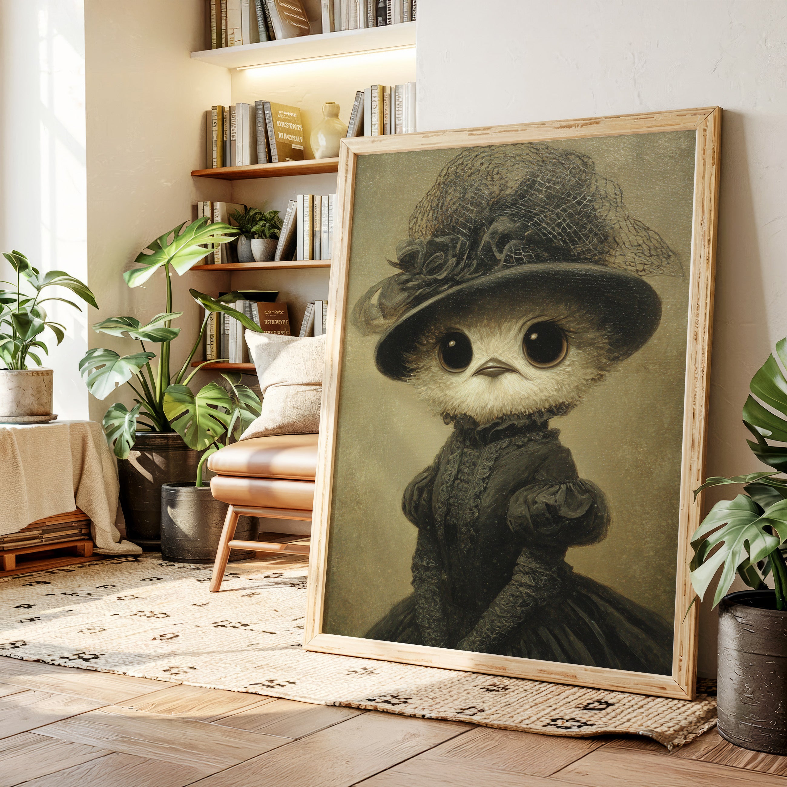 In a world where whimsy meets refinement, a charming creature dons its finest attire, embodying both innocence and grace. This piece is a delightful entry in the Artisanal collection, where craftsmanship blooms in unexpected forms. Every detail, from the lace-trimmed hat to the flowing gown, tells a tale of a bygone era, inviting you to wonder about the stories behind those wide, expressive eyes. Perfect for a cozy reading nook or a playful children's room, this enchanting piece will spark joy and curiosity.