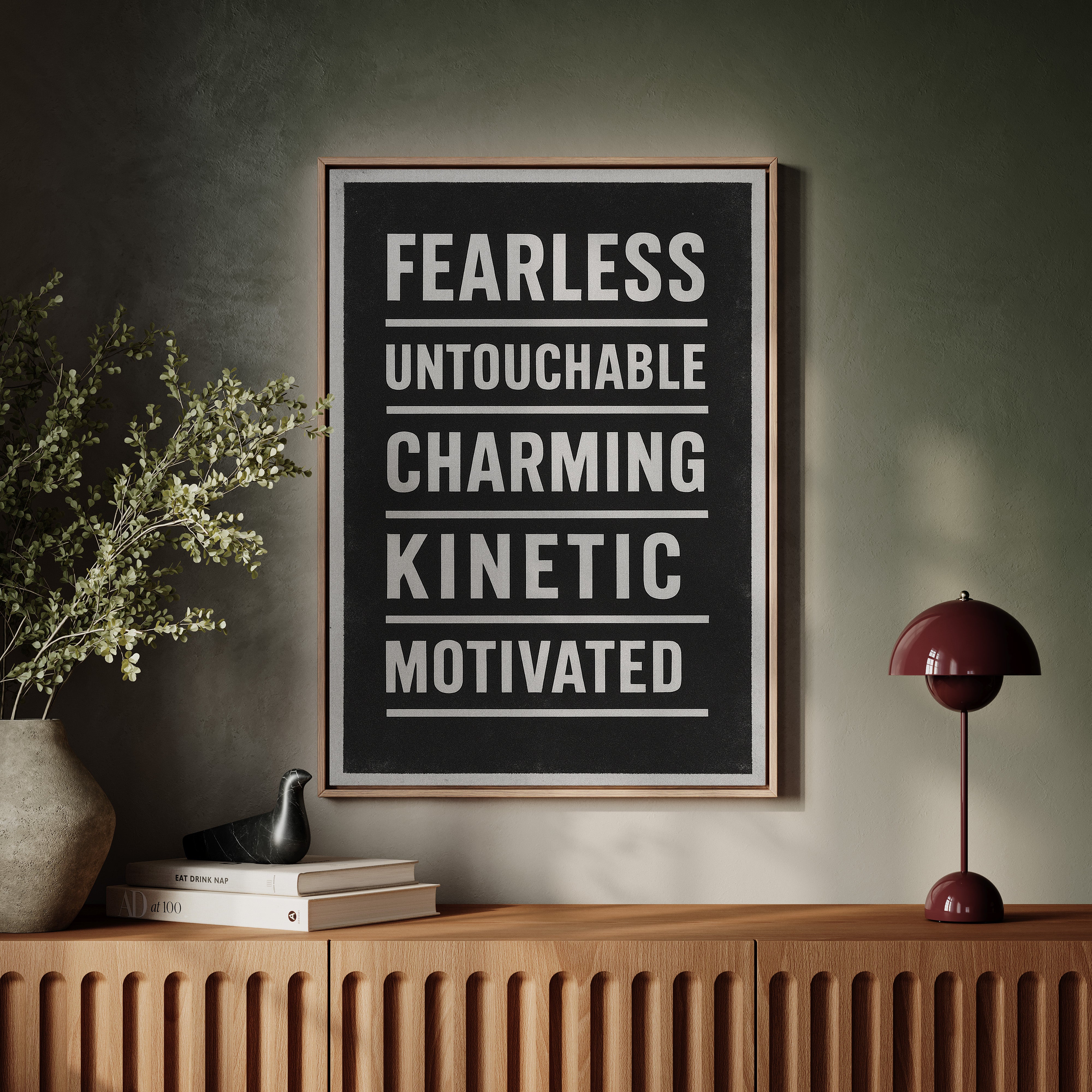 Strong and unapologetic, this monochrome power print spells out confidence with every word—perfect for office walls, gym spaces, or daily motivation zones.