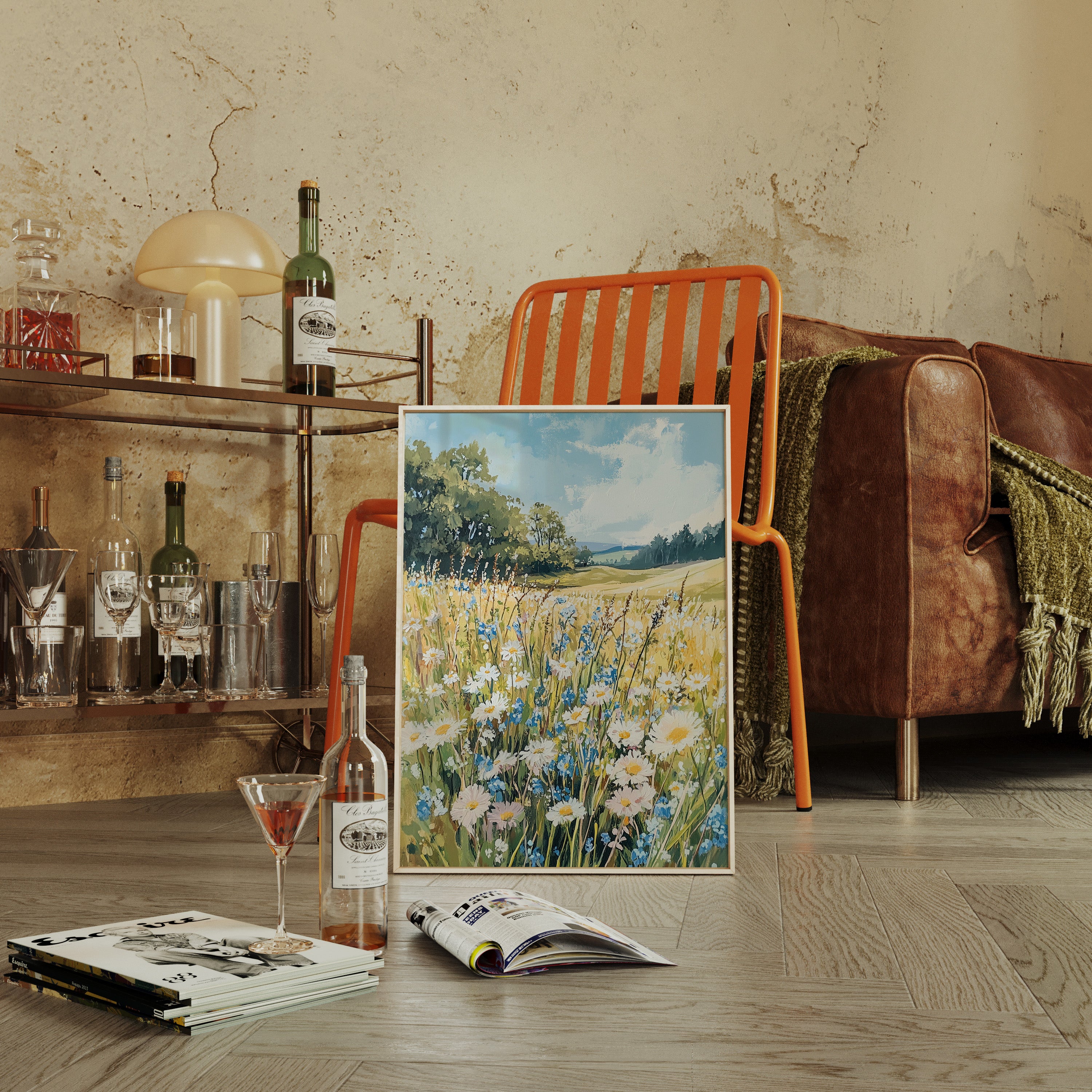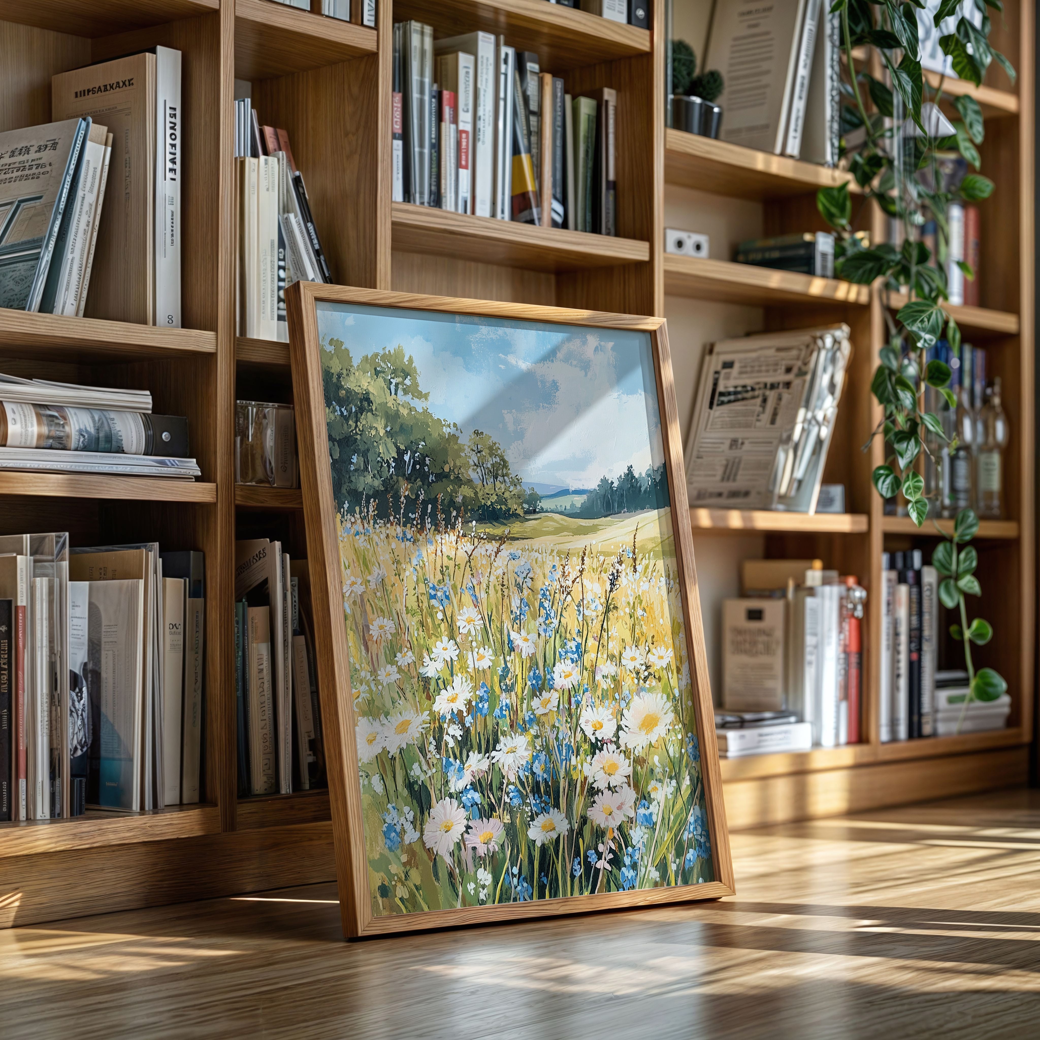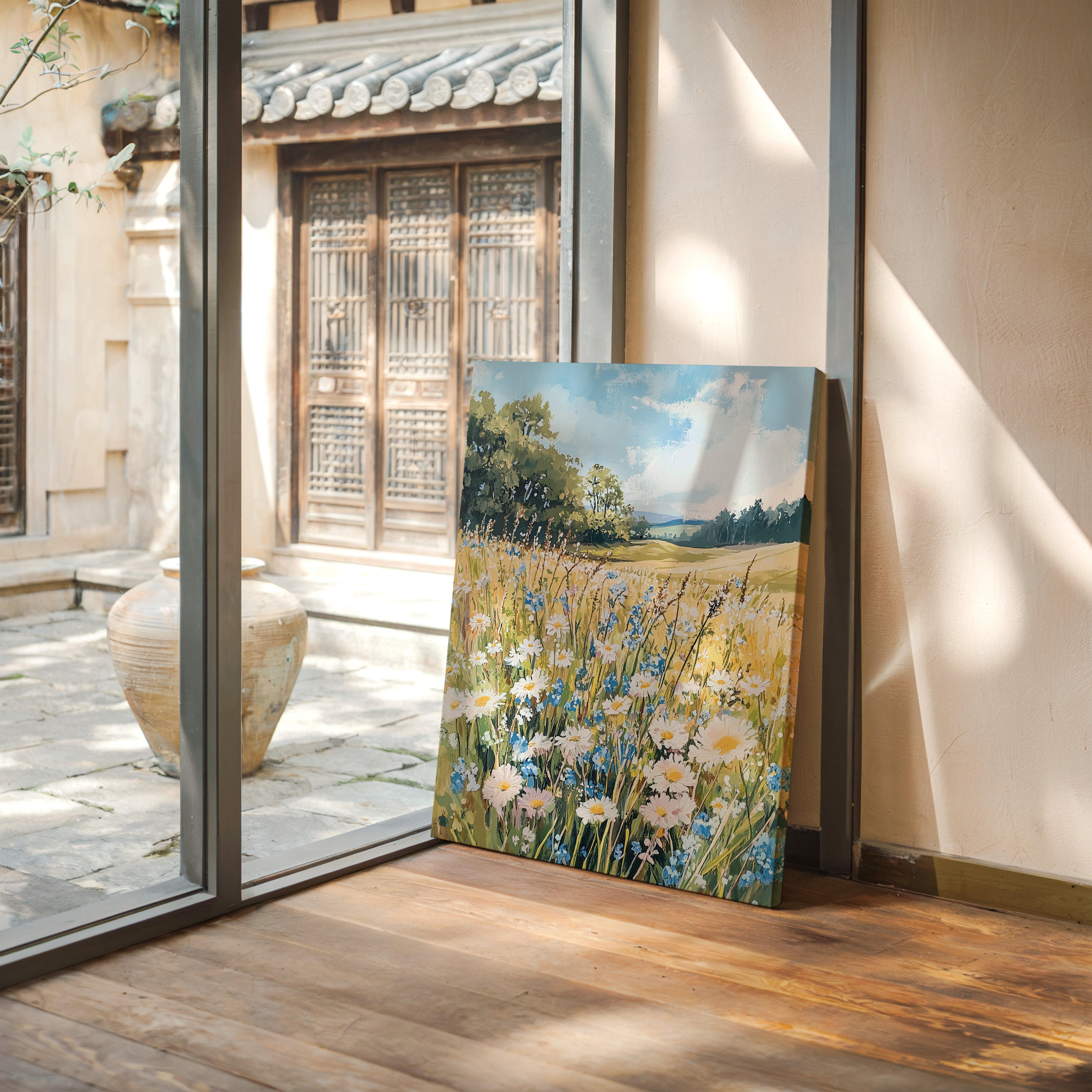 Beneath a vast cerulean sky, wildflowers sway in playful harmony, their vibrant colors singing a melody of summer's warmth. This piece embodies the essence of the artisanal collection, celebrating nature's delicate artistry. Each bloom is a brushstroke in a canvas of life, where daisies and blues intertwine, inviting a sense of joy and tranquility. Perfect for a sunlit dining nook or a cozy reading corner, this piece brings the spirit of the outdoors inside.