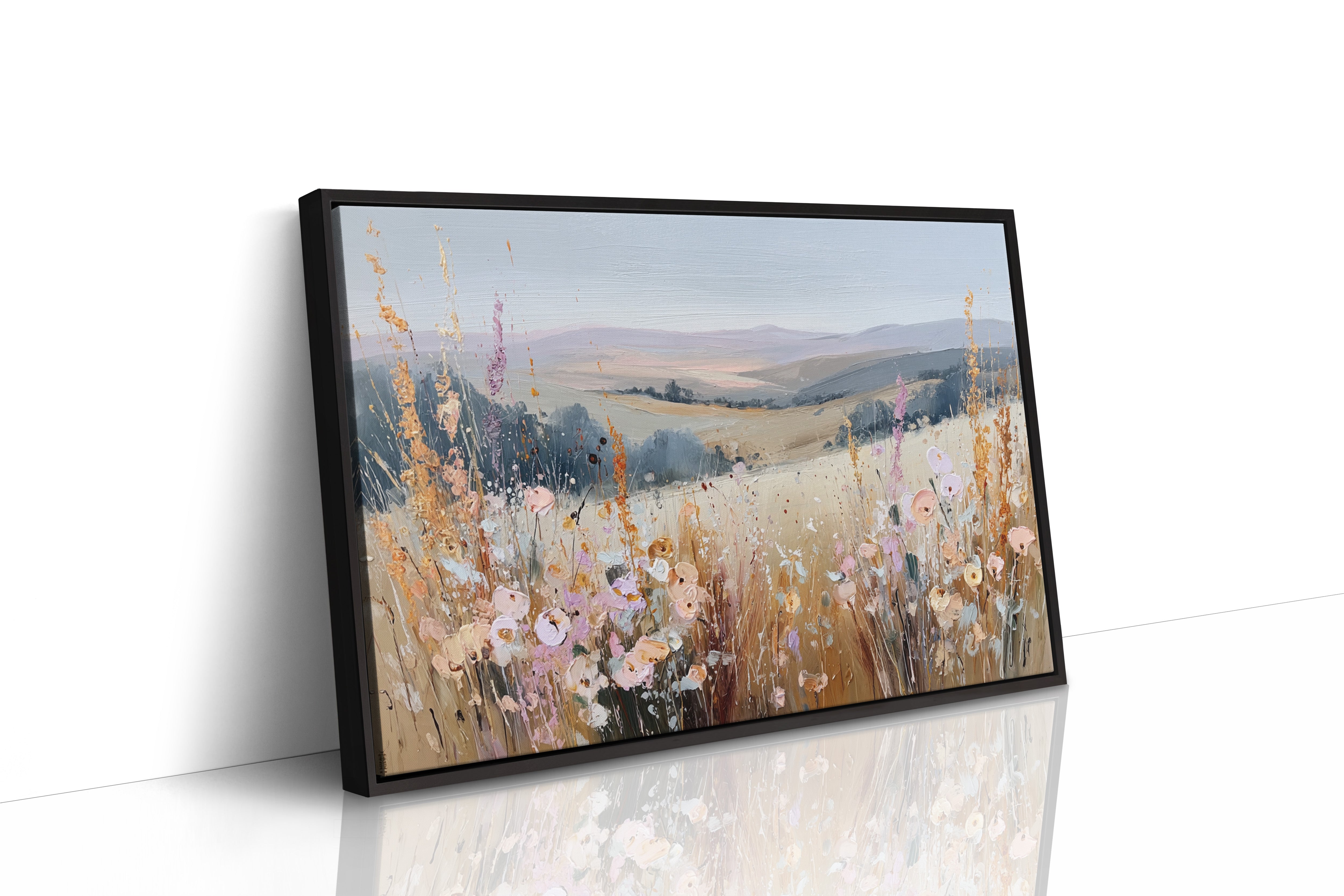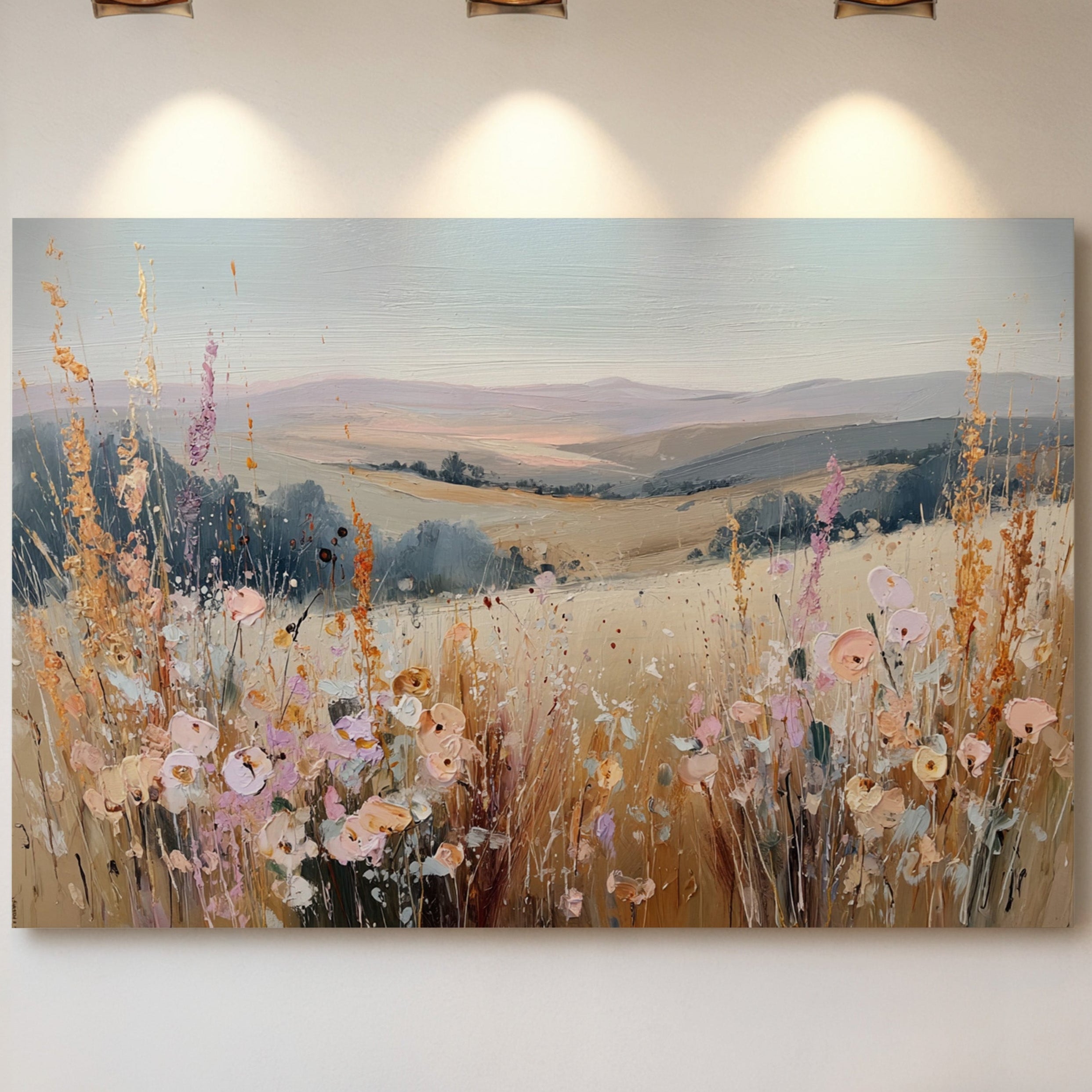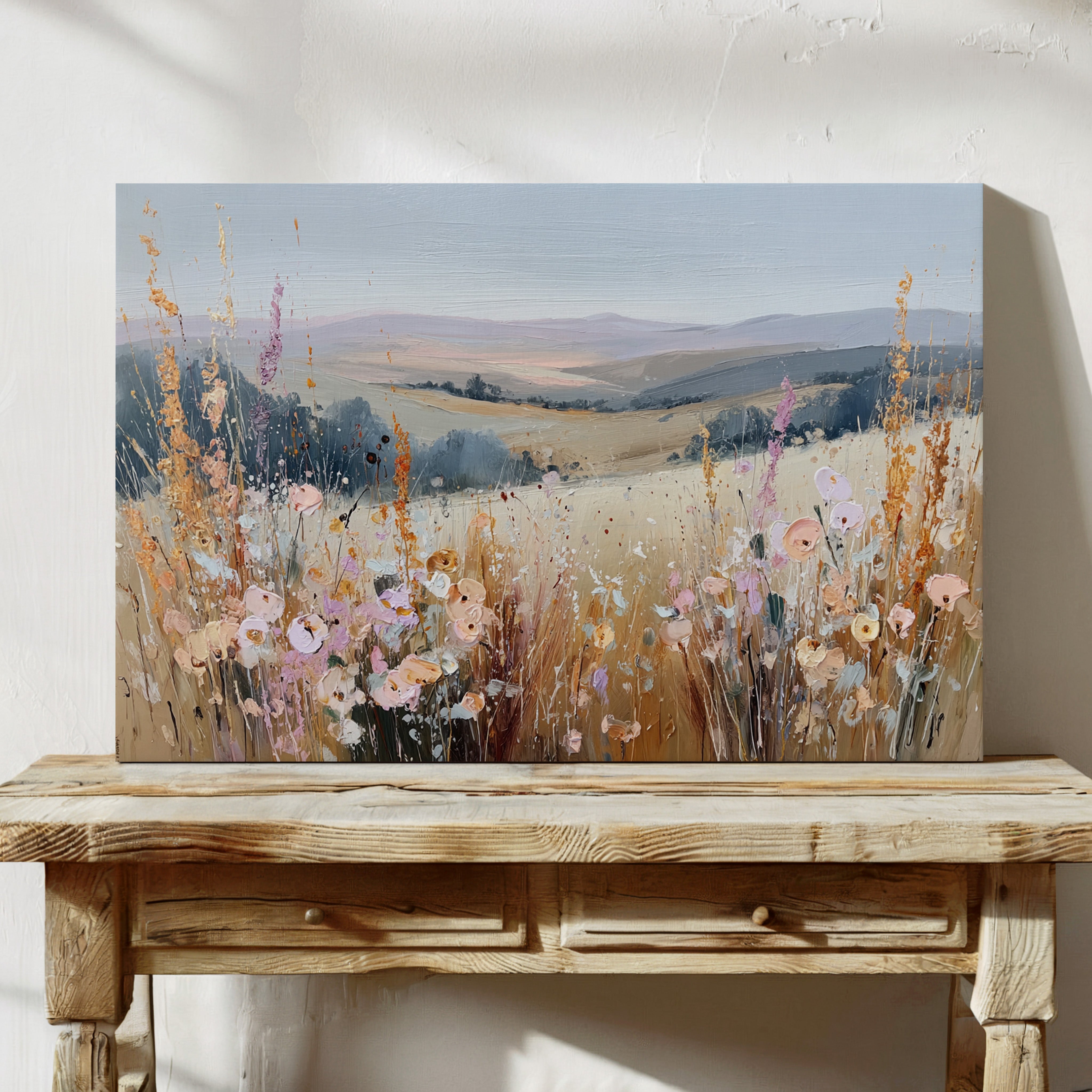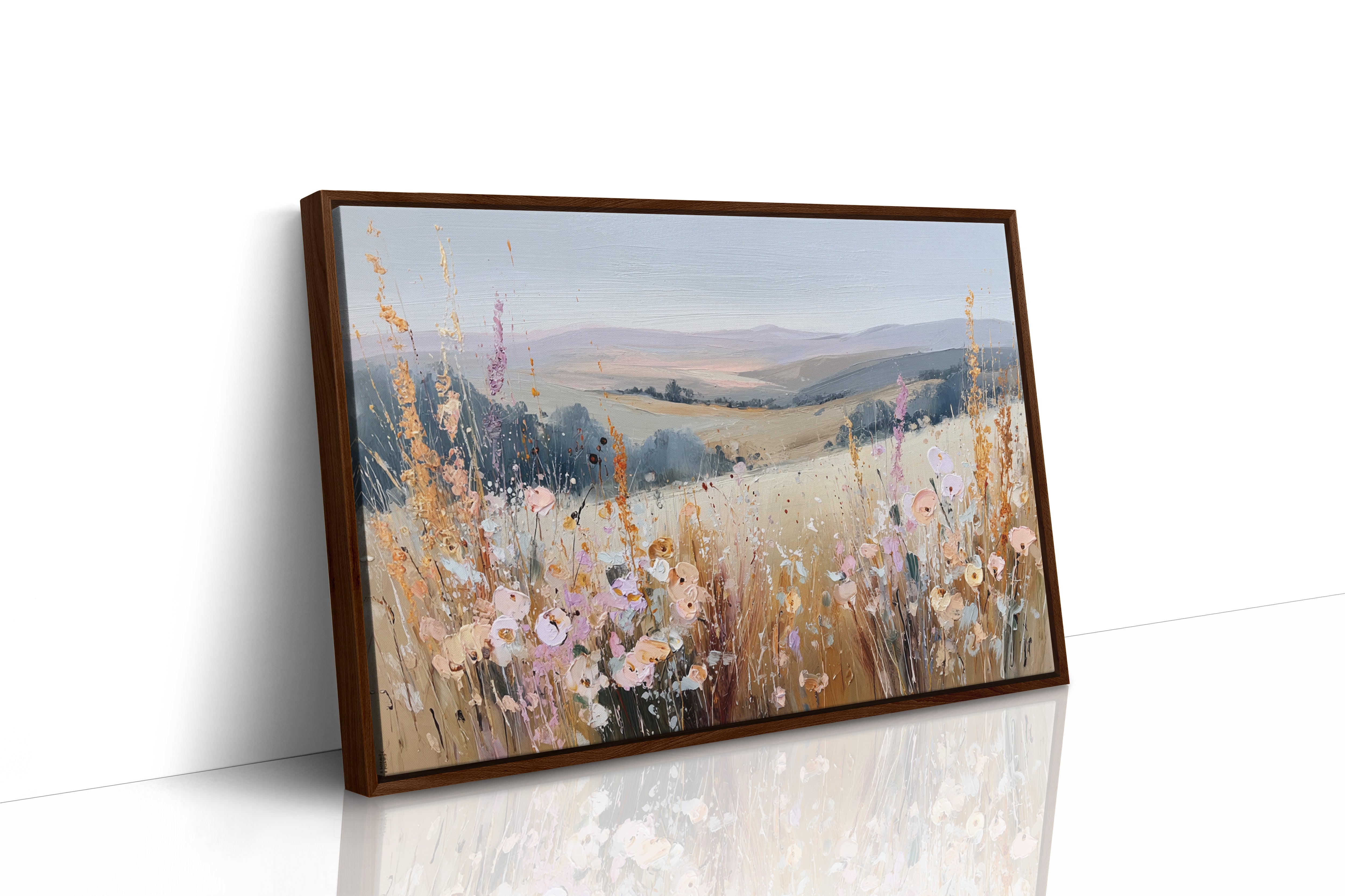 In a sun-kissed meadow, vibrant blooms sway gently in the breeze, their hues dancing against the golden backdrop. This piece embodies the essence of artisanal charm, celebrating nature's spontaneous beauty. Each brushstroke reveals a tapestry of colors, from soft pastels to warm earth tones, evoking a sense of freedom and peace. Perfect for brightening a serene bedroom or creating a welcoming foyer, this artwork invites tranquility into any space.