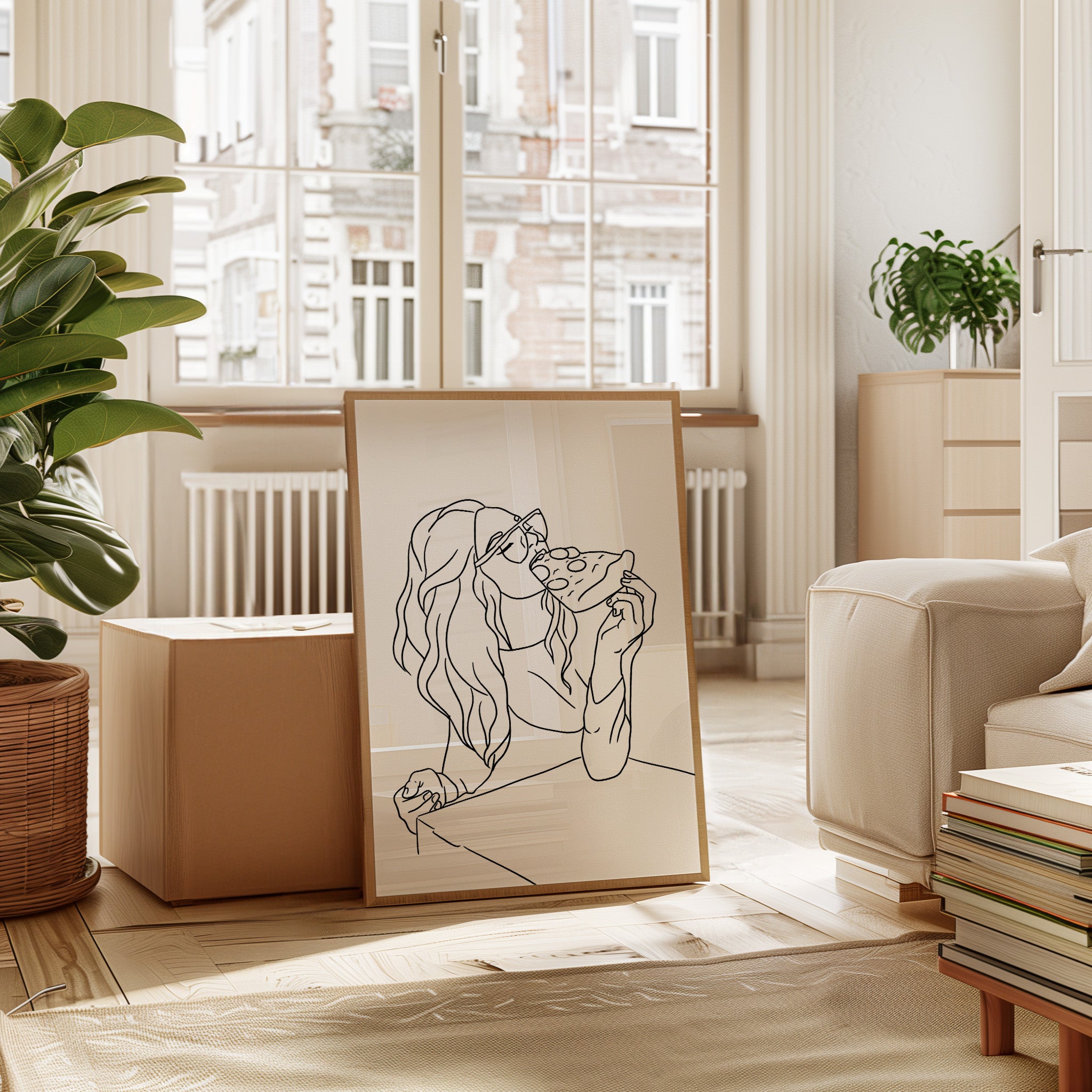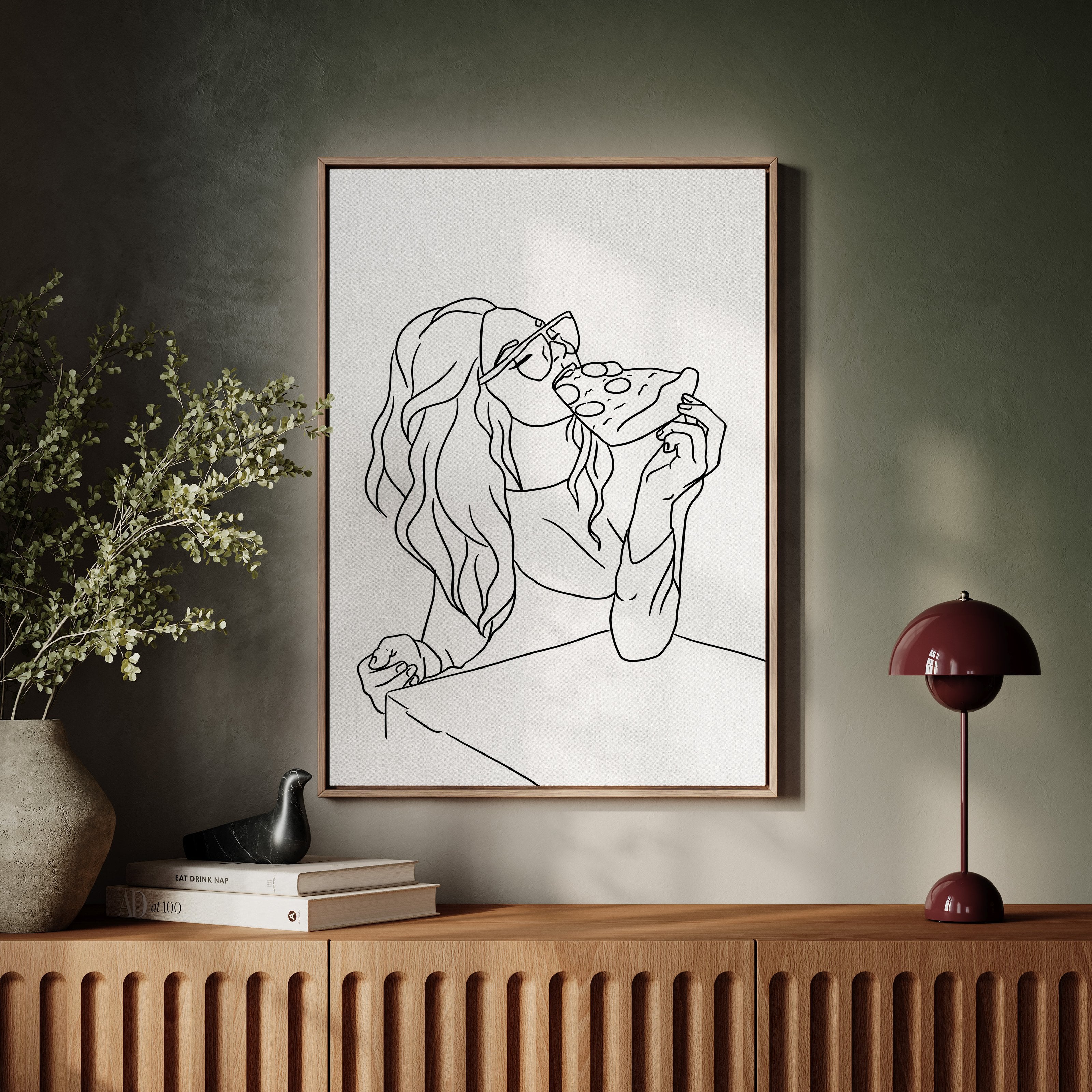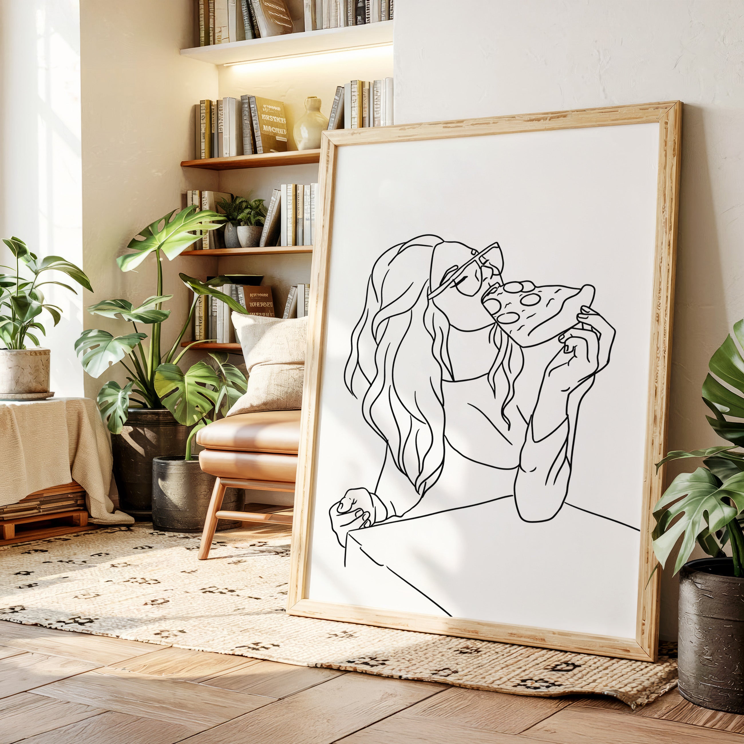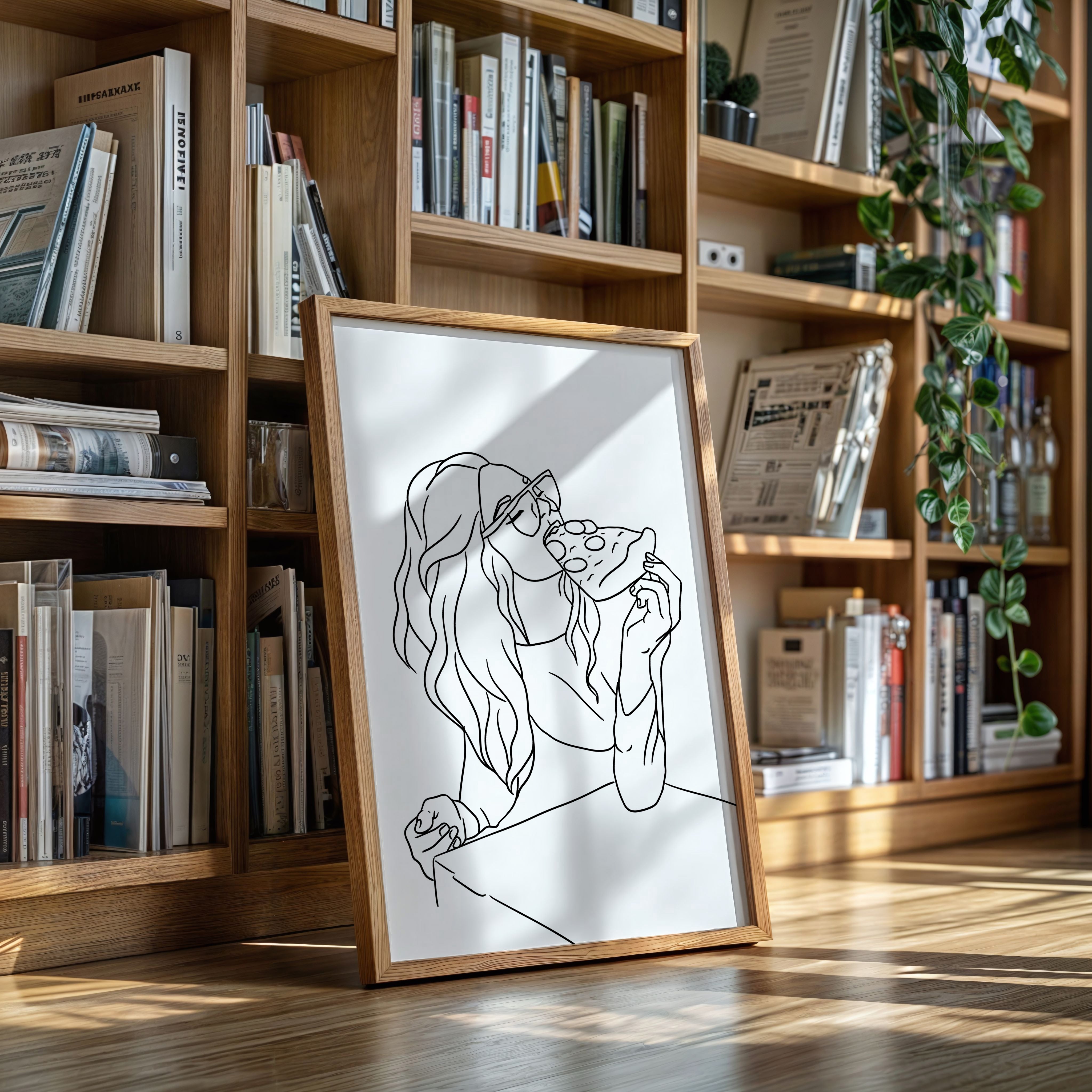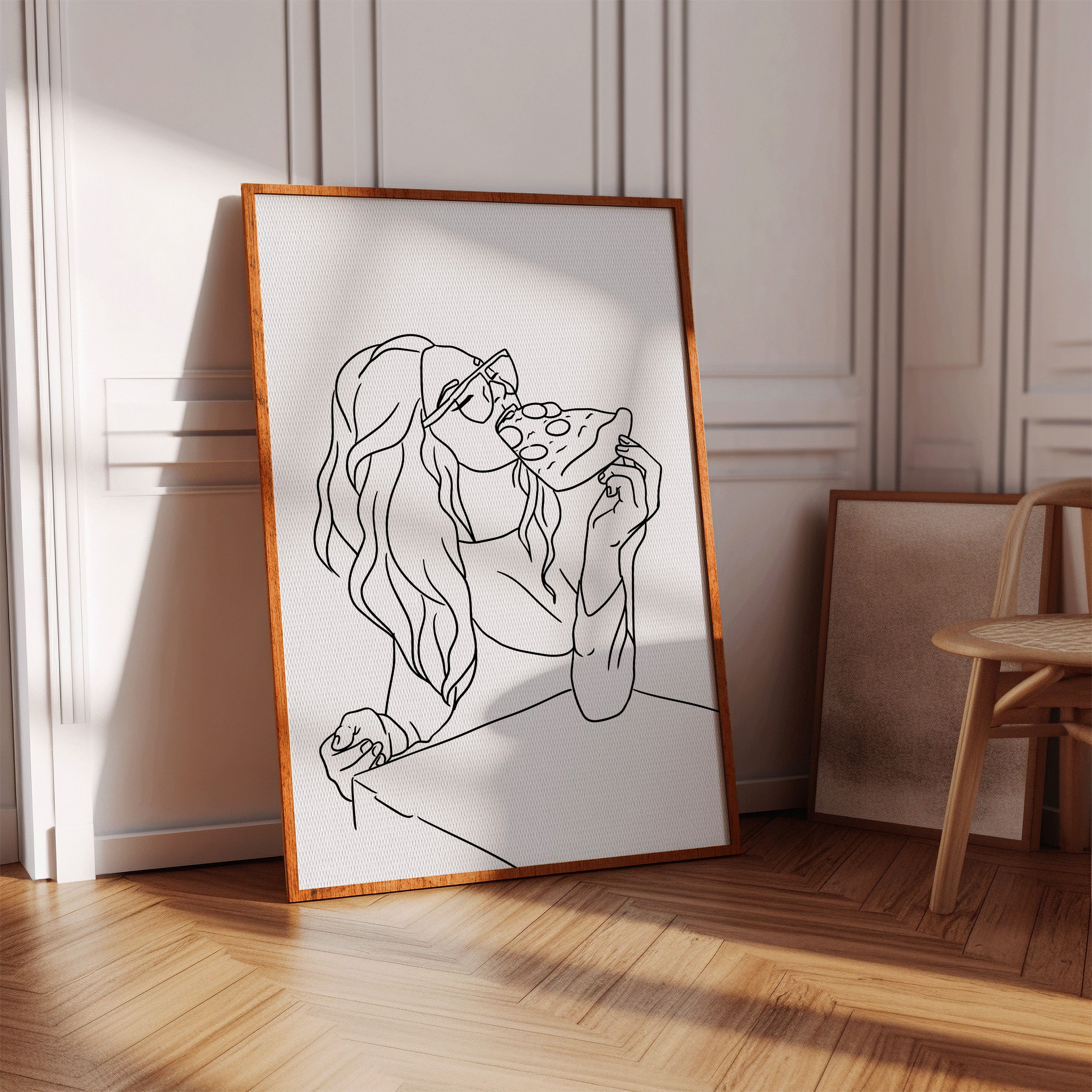 A slice of pure joy captured in clean lines, where casual indulgence meets carefree spirit. This piece belongs to our Contemporary collection, celebrating modern moments with minimalist charm. Long waves cascade freely while sunglasses catch imagined light, creating a scene of unrestrained pleasure in life's simple delights. The composition speaks to that perfect moment when weekend freedom meets culinary satisfaction. Perfect for adding personality to a dining room or bringing a touch of fun sophistication to a modern kitchen space. The minimalist black and white design makes every line count in telling this delicious story.