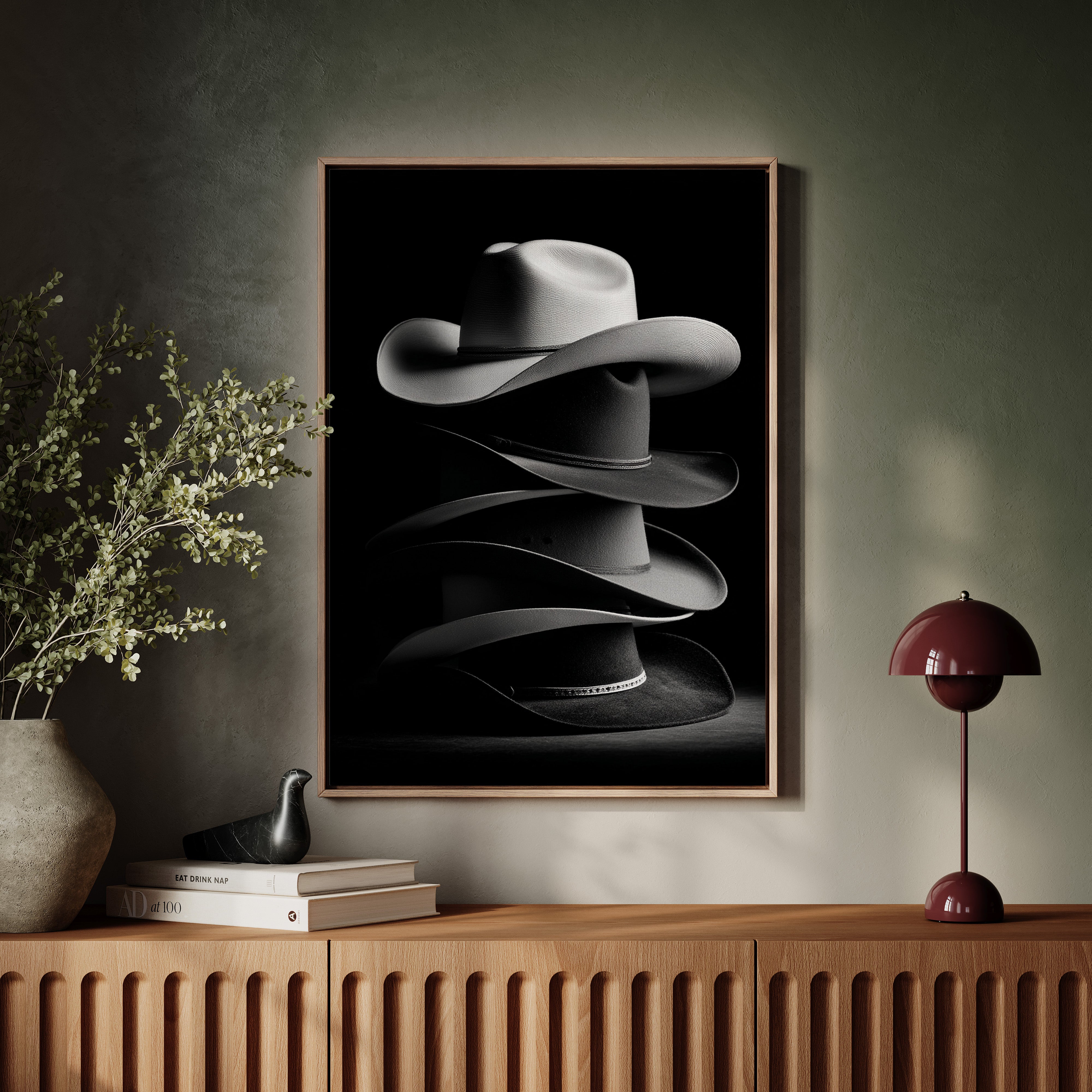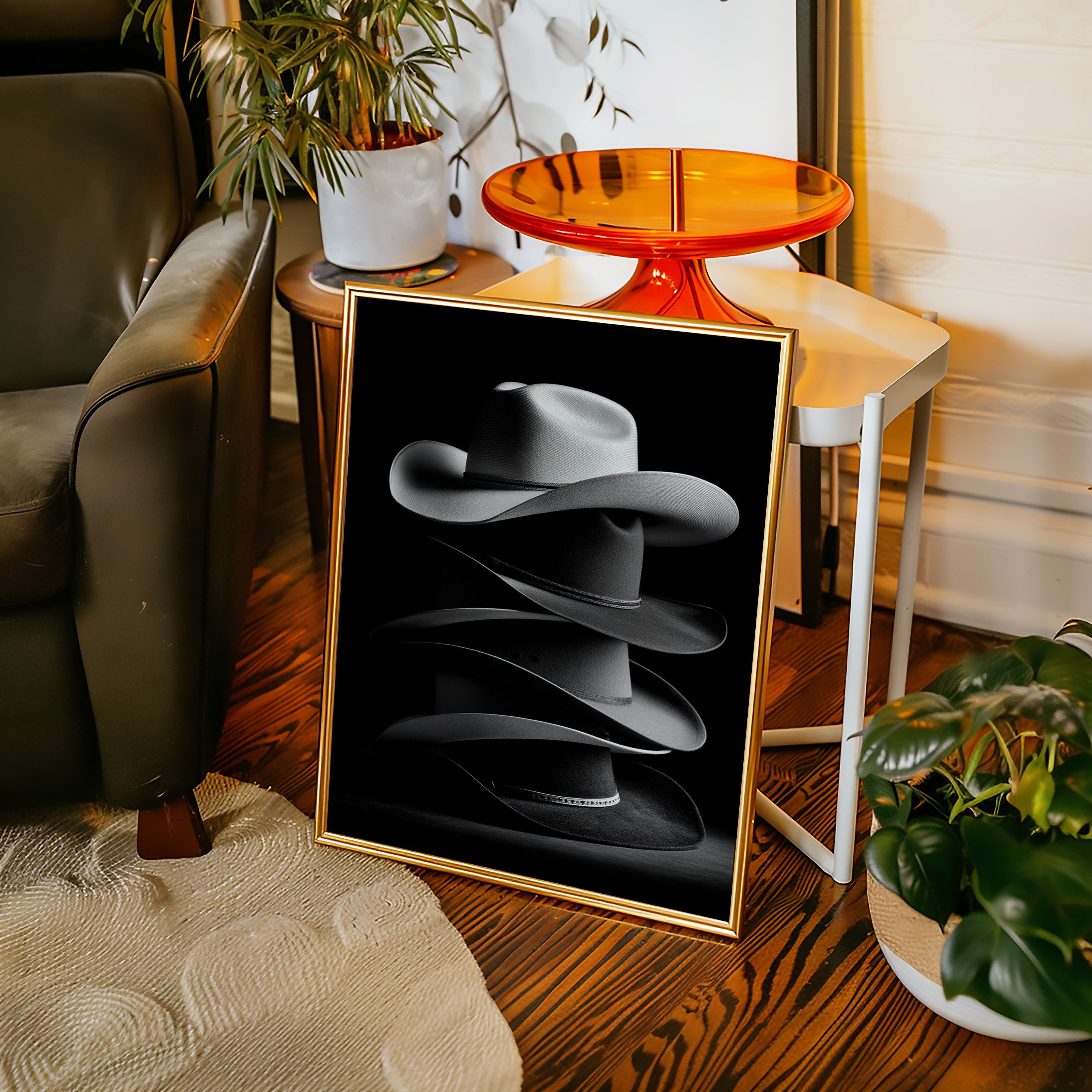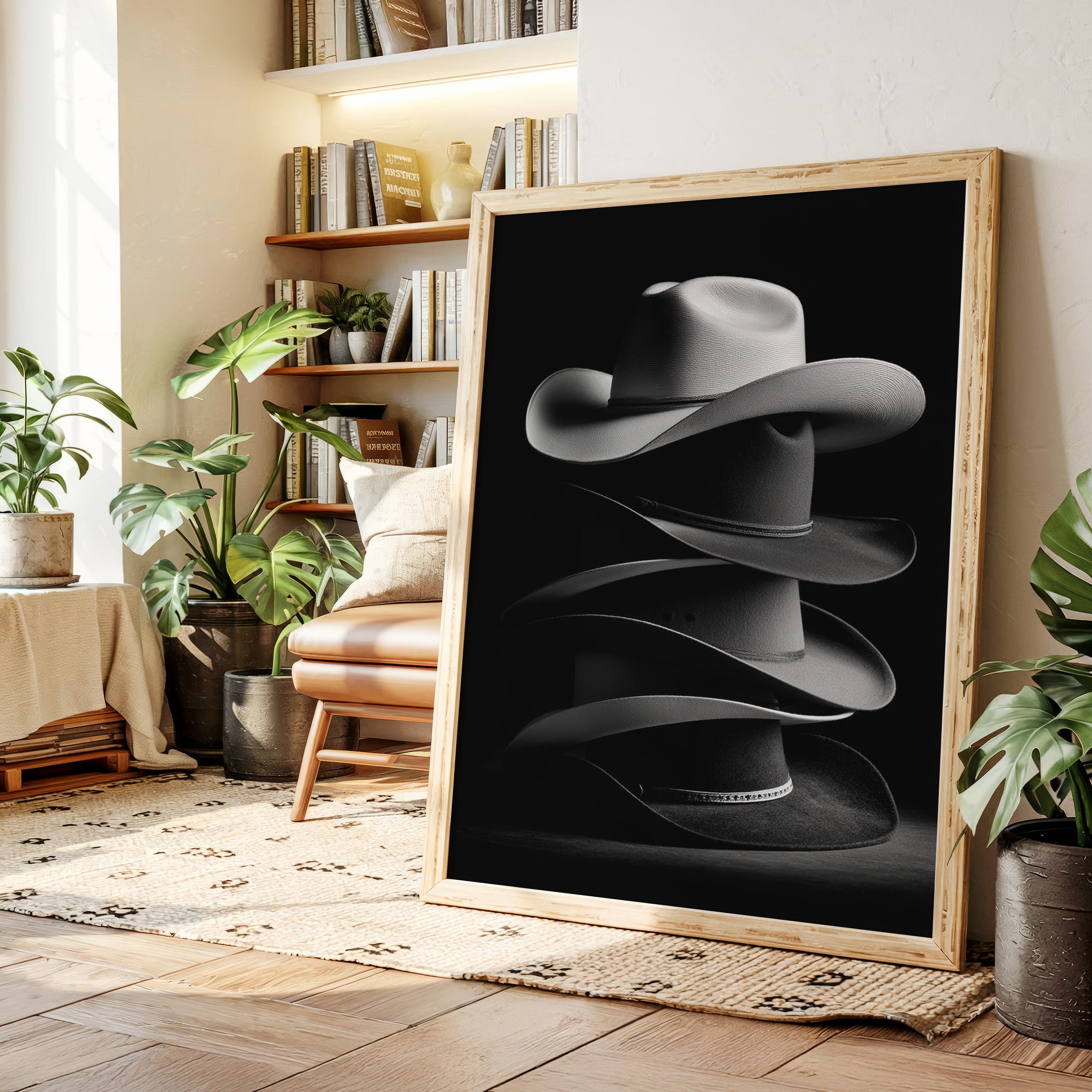 Perfect for creating an elegant focal point in living rooms, home offices, or any space where you want to celebrate Western heritage with contemporary sophistication. This piece brings the timeless appeal of cowboy culture into modern interiors with artistic refinement.