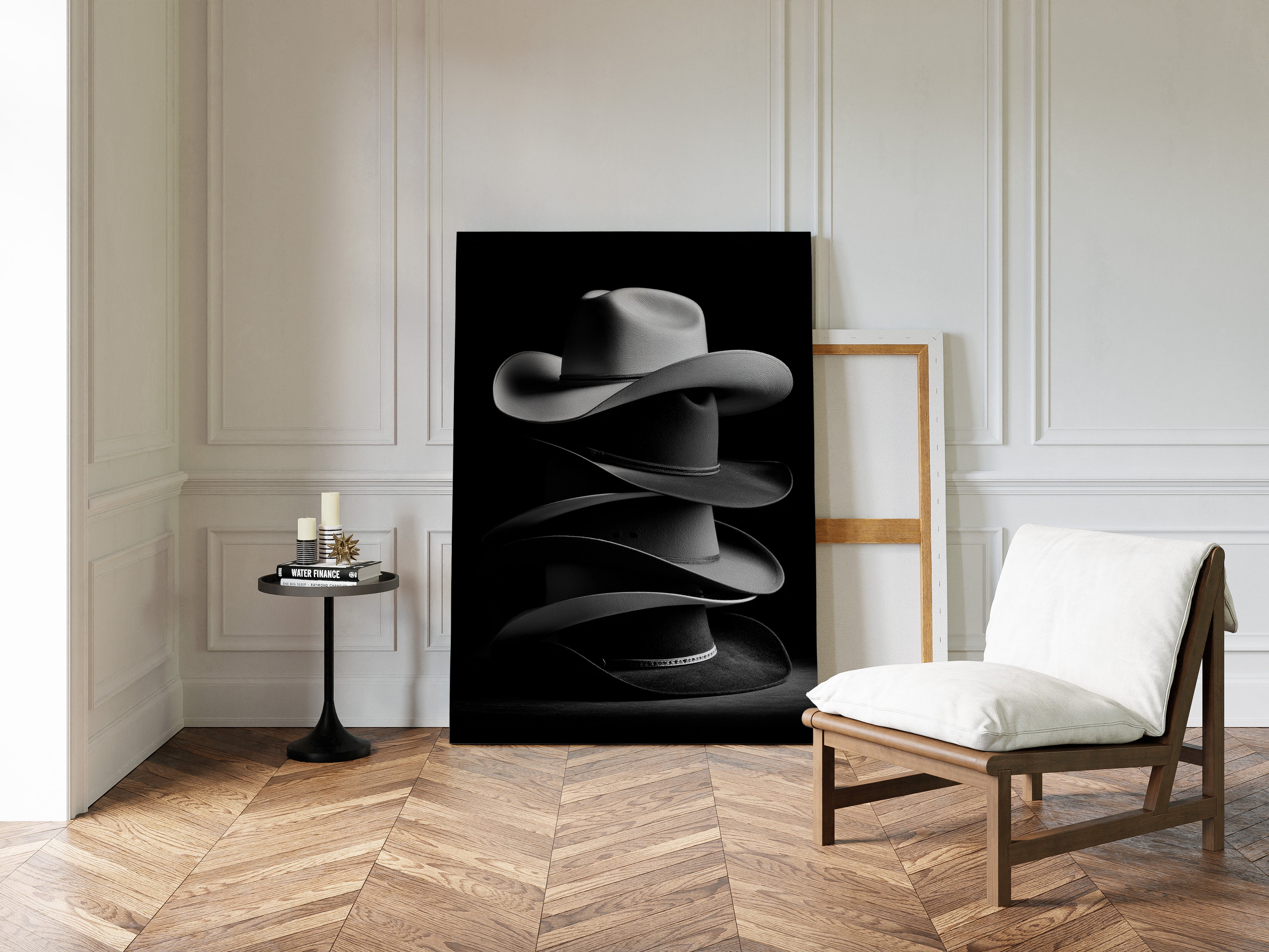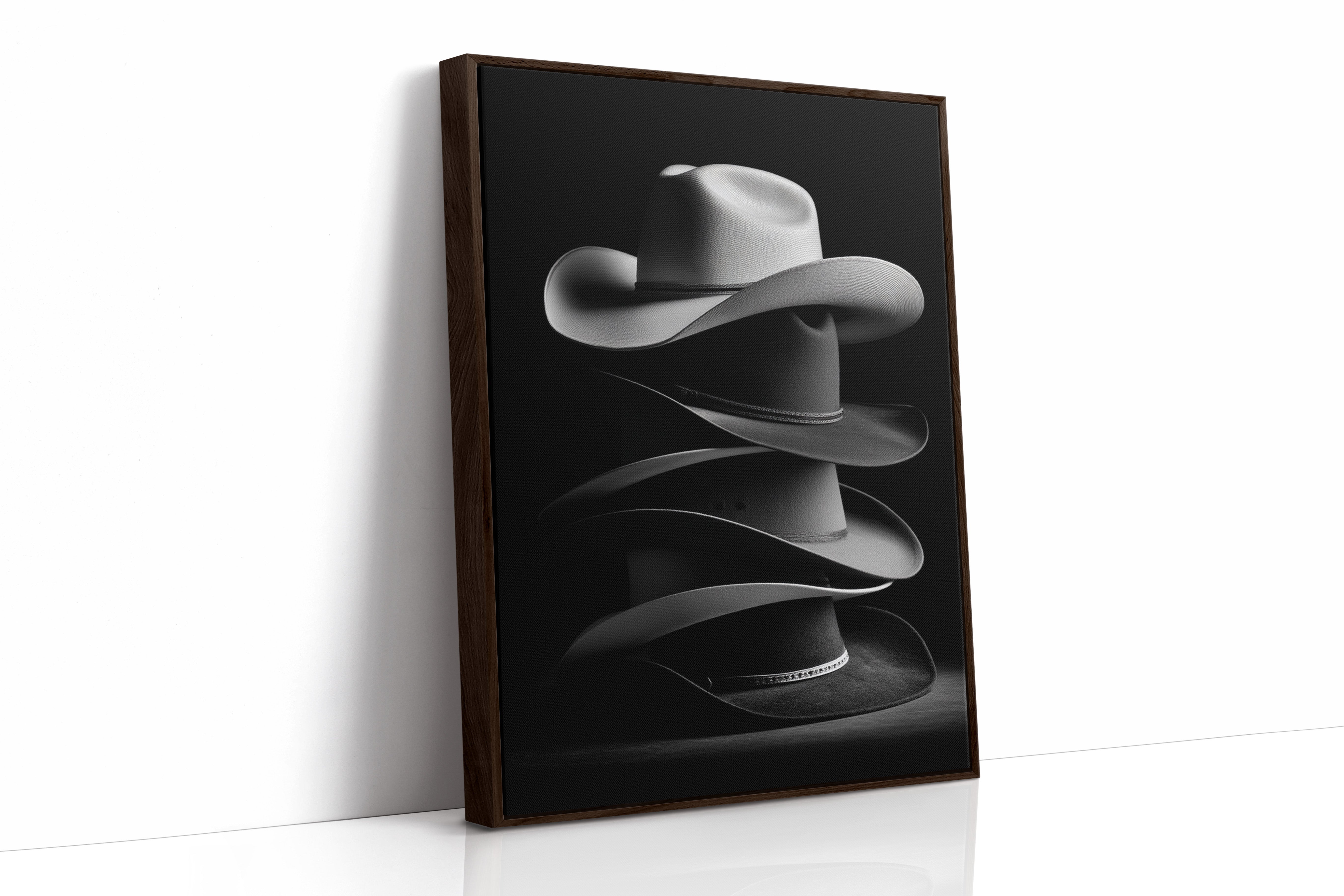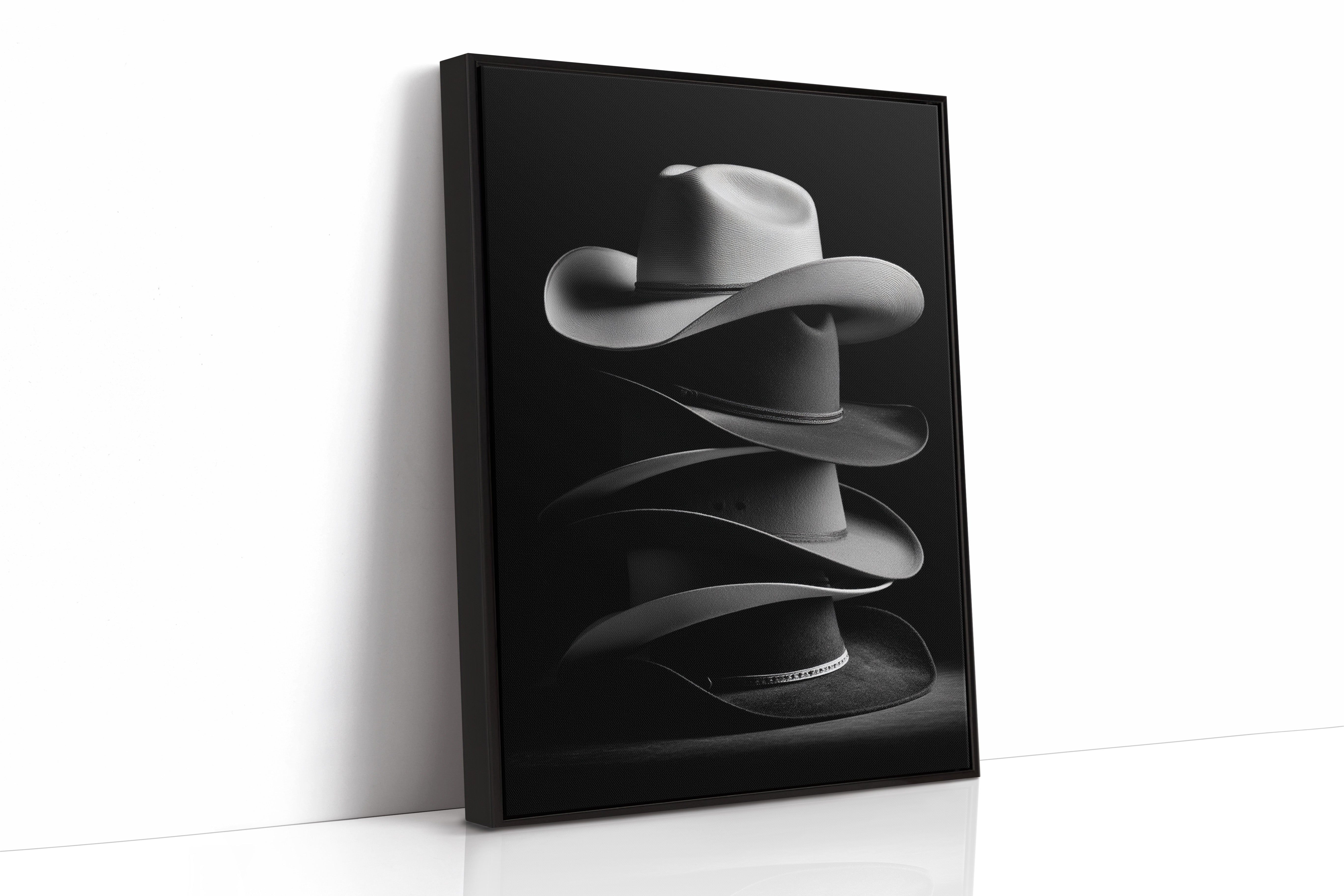 Part of our Western Artisan collection, this sophisticated black and white photograph elevates everyday Western gear into sculptural art. The dramatic lighting and careful composition transform these working tools into a meditation on craftsmanship, tradition, and the enduring appeal of Western style.