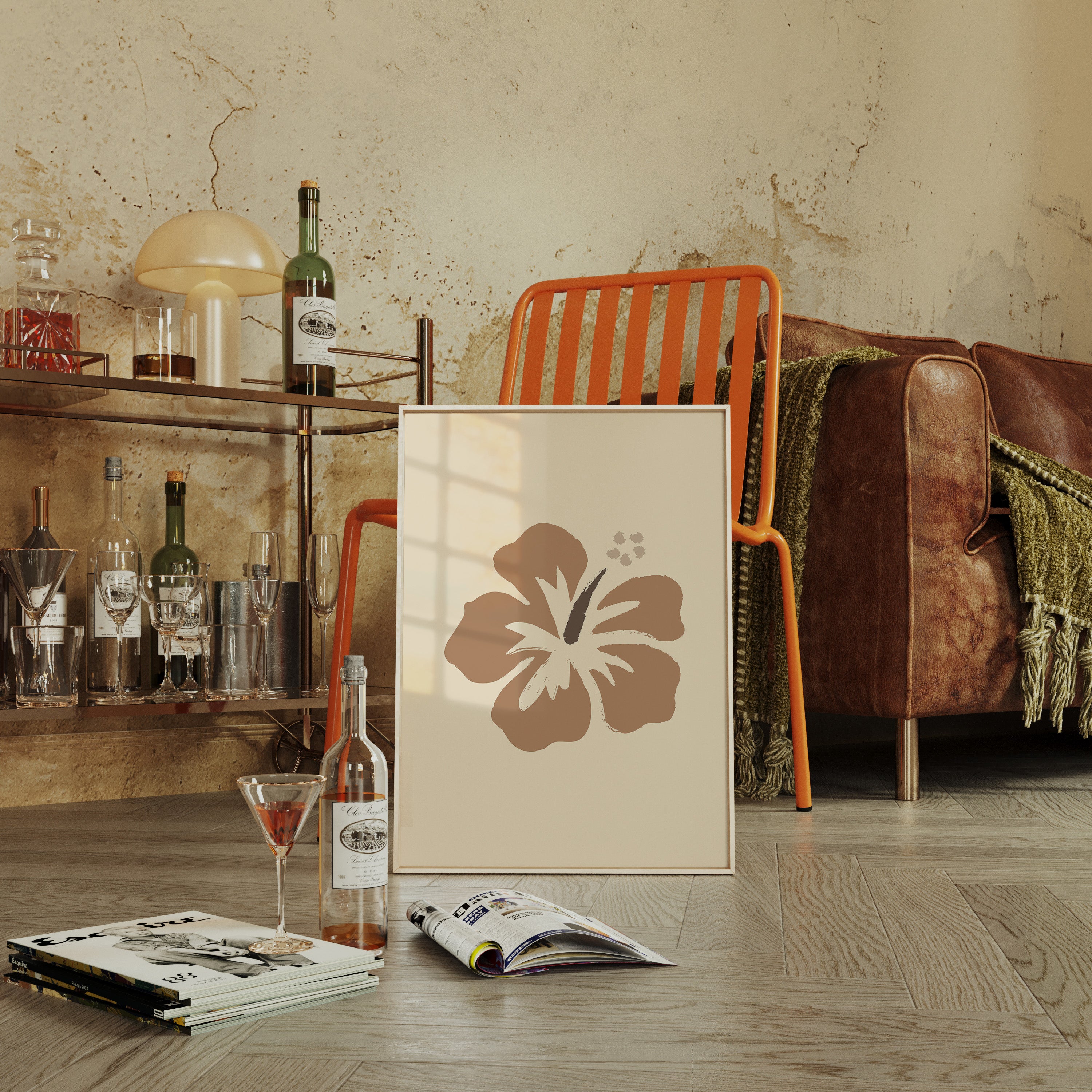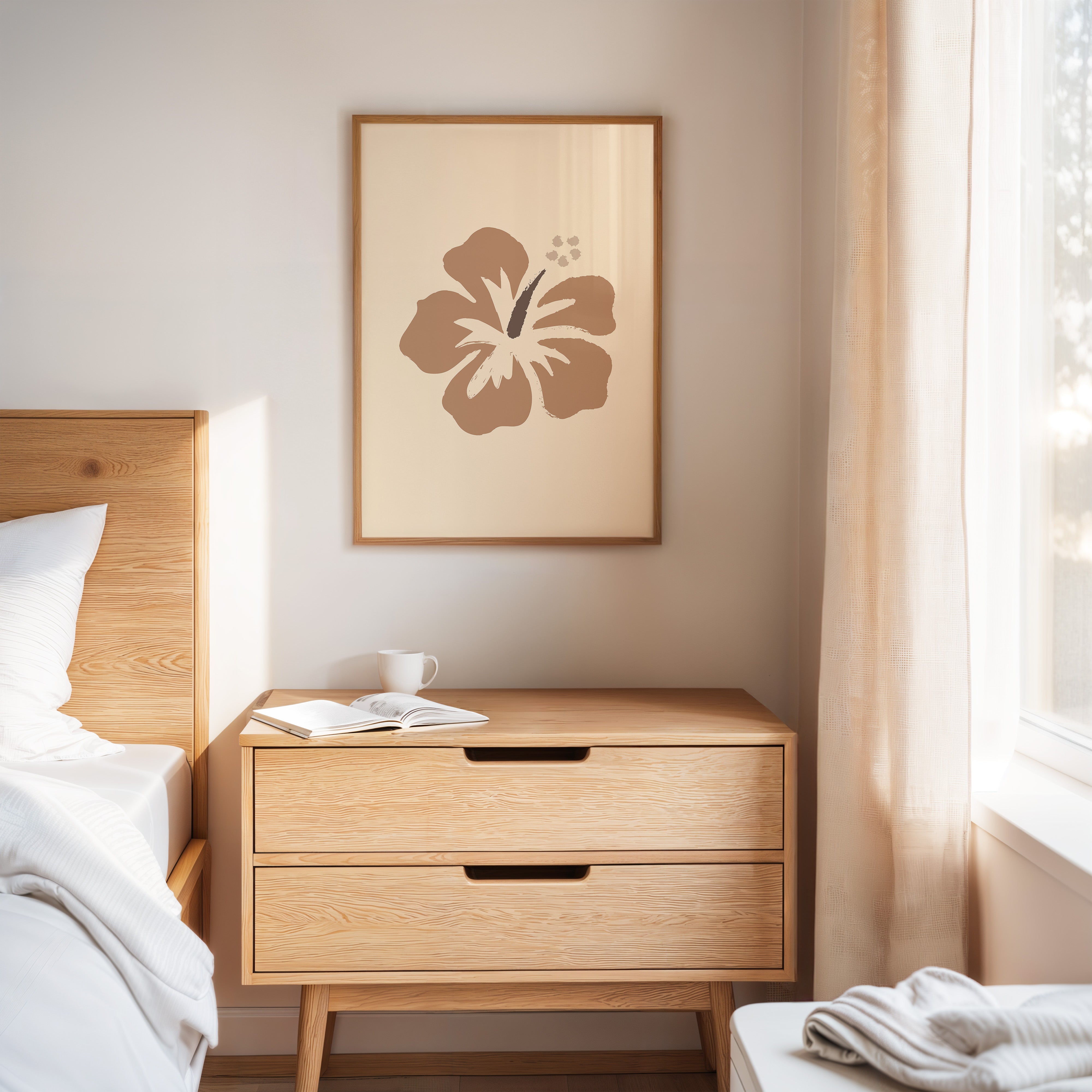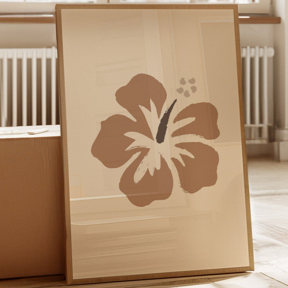 A single hibiscus bloom captures the essence of tropical serenity, rendered in warm bronze tones against a soft cream canvas. This piece exemplifies the Contemporary collection's celebration of simplified natural forms. The brushstroke technique creates a perfect balance between organic movement and intentional design, while the minimalist approach allows the flower's graceful silhouette to command attention. This statement piece brings a sophisticated tropical accent to any modern living space. Its serene presence works particularly well in meditation rooms or as a focal point in minimalist bedrooms, adding warmth without overwhelming the senses.