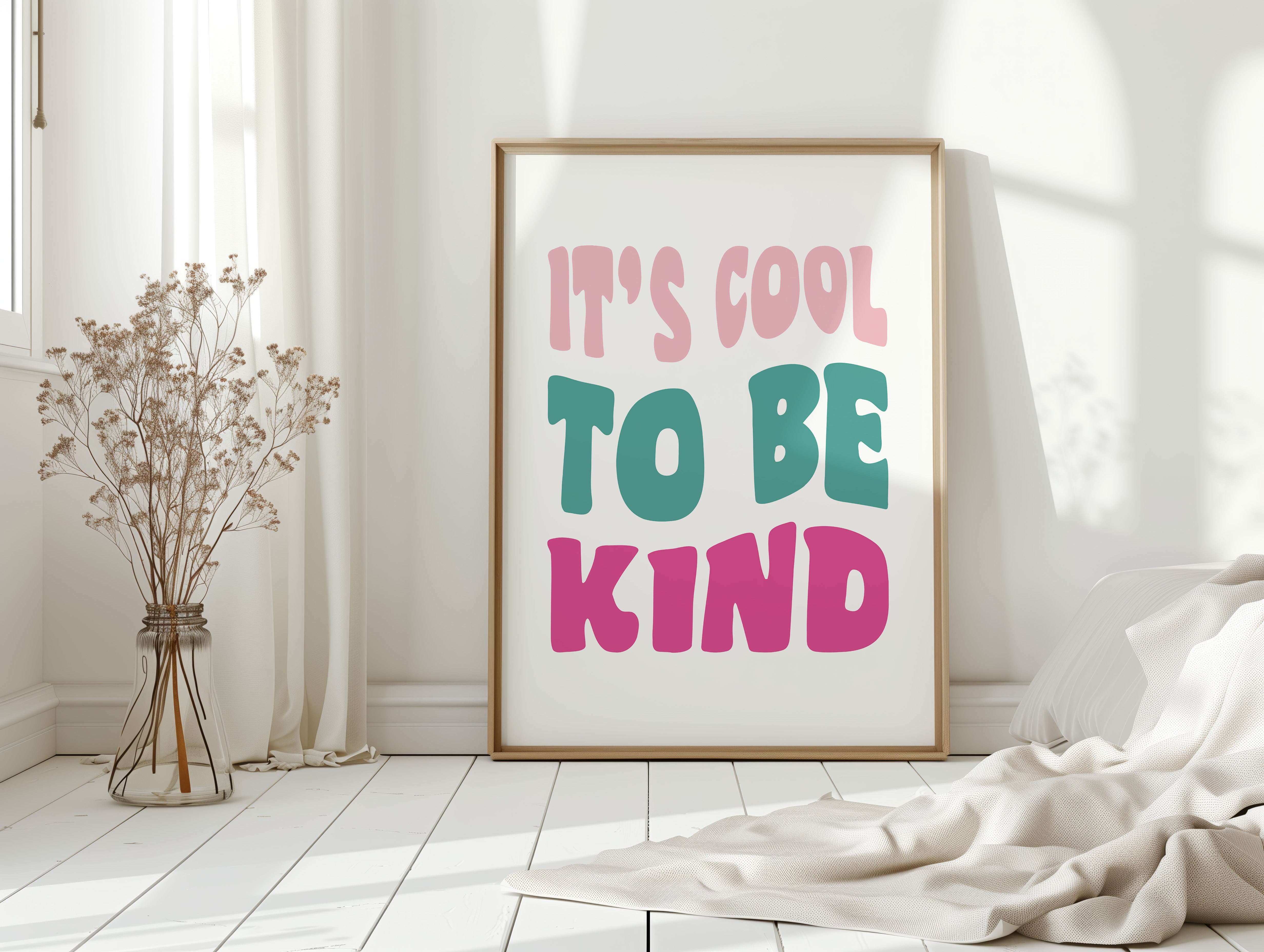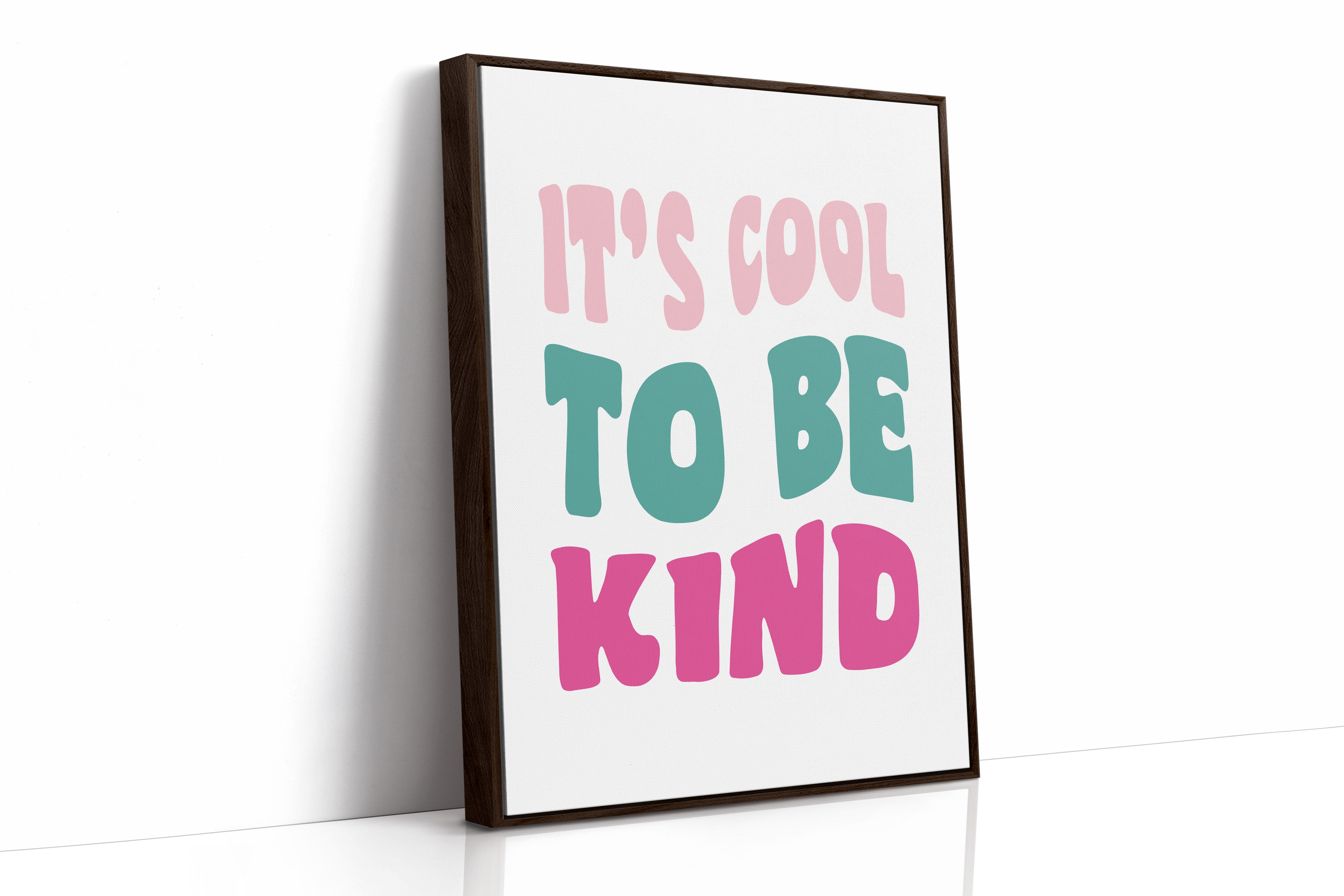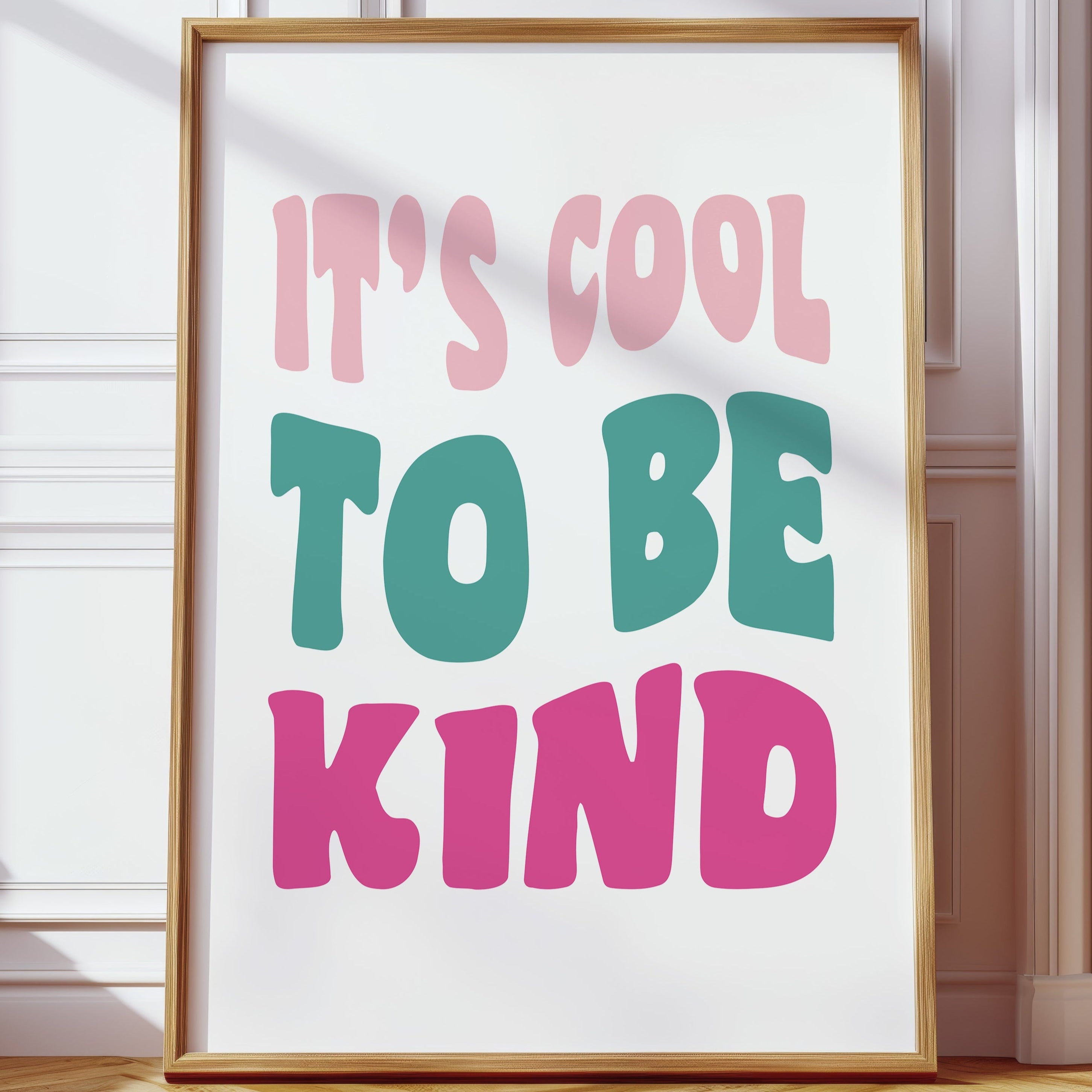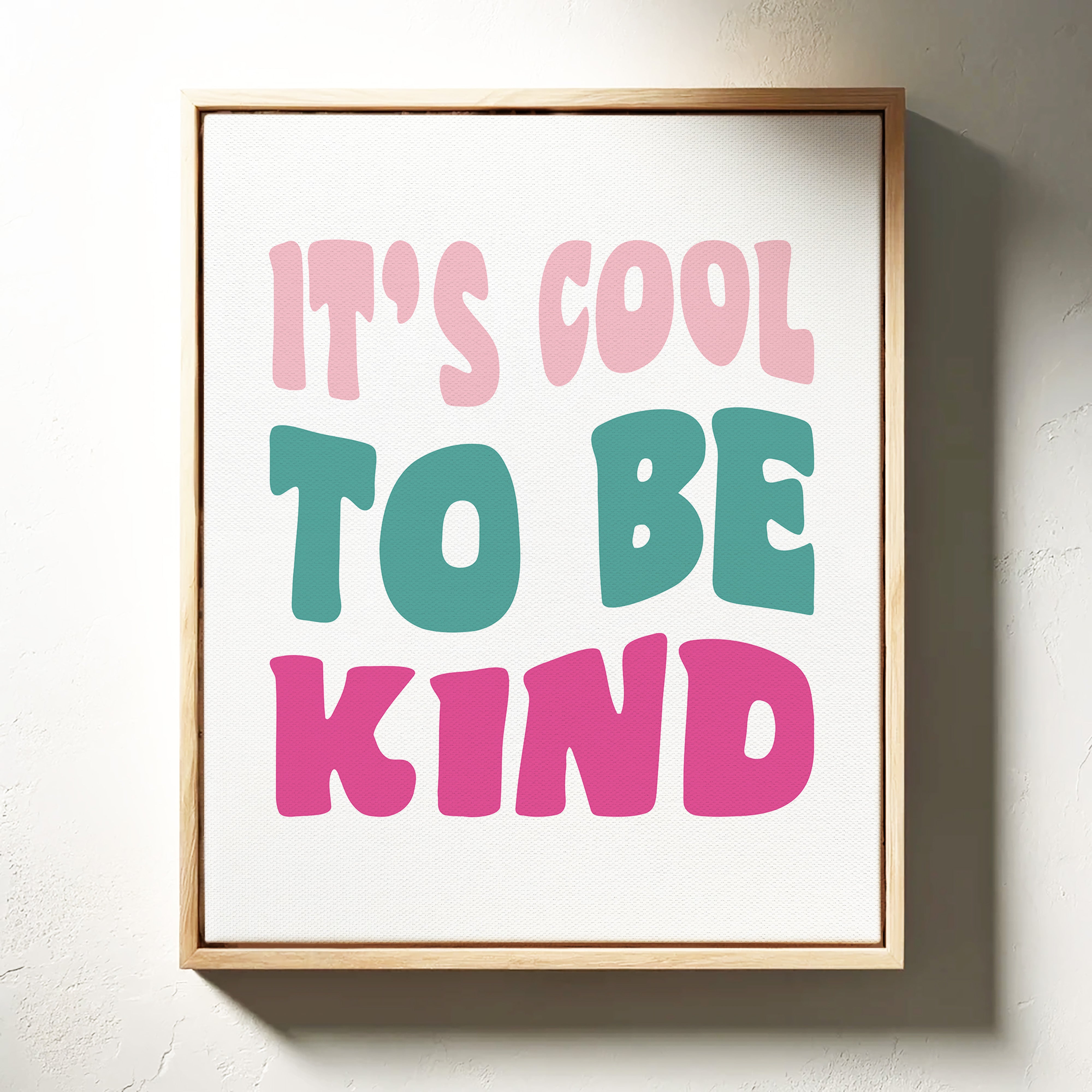 Simple letters cascade in soft pastels, carrying a message that feels like the first breath of a fresh day. This piece from our Contemporary collection celebrates the power of positive affirmations through minimalist typography. The playful arrangement of pink, teal, and rose text creates a gentle rhythm, like waves of kindness rippling across the canvas. Each letter seems to float with intention, creating a moment of pause and reflection. Perfect for a child's room, home office, or any space where daily inspiration is welcome, this piece serves as a gentle reminder of life's simple truths.