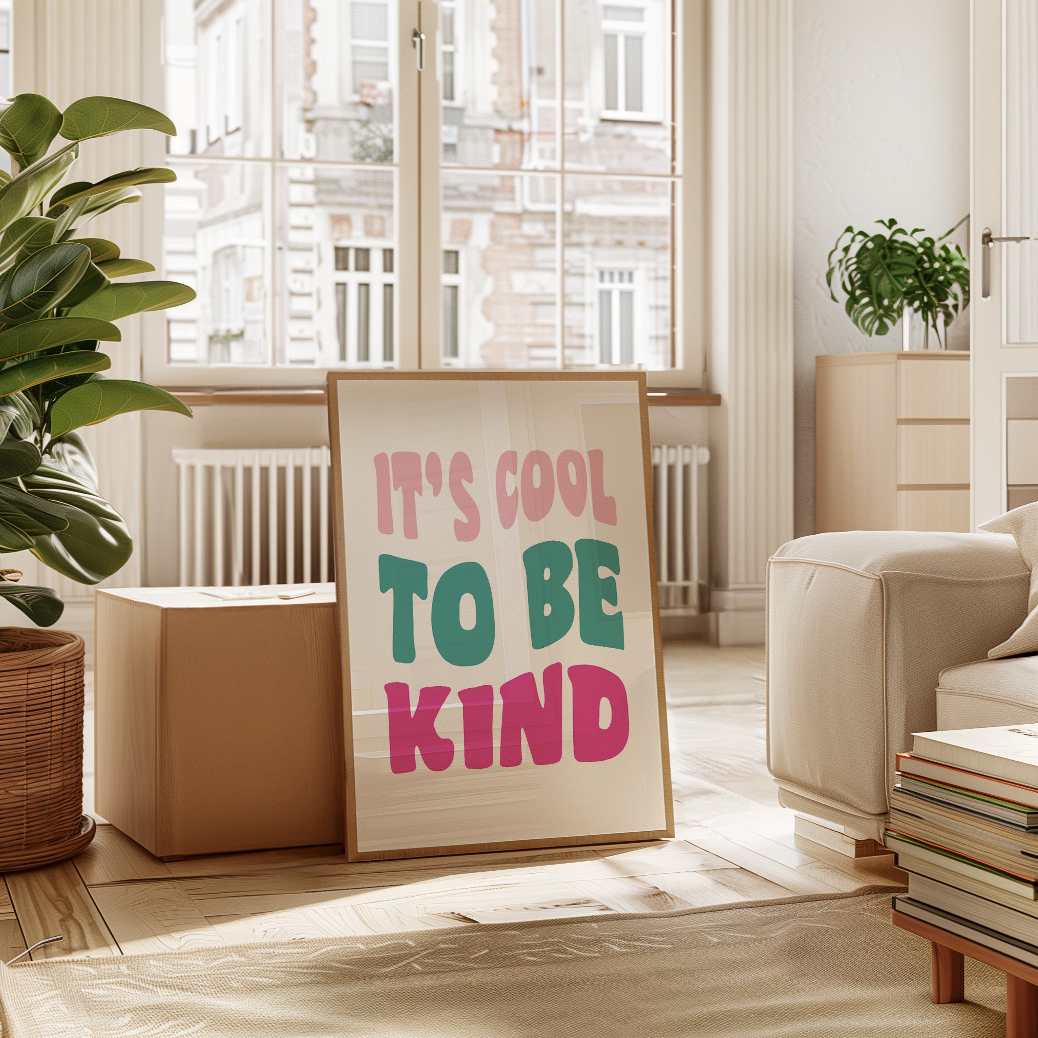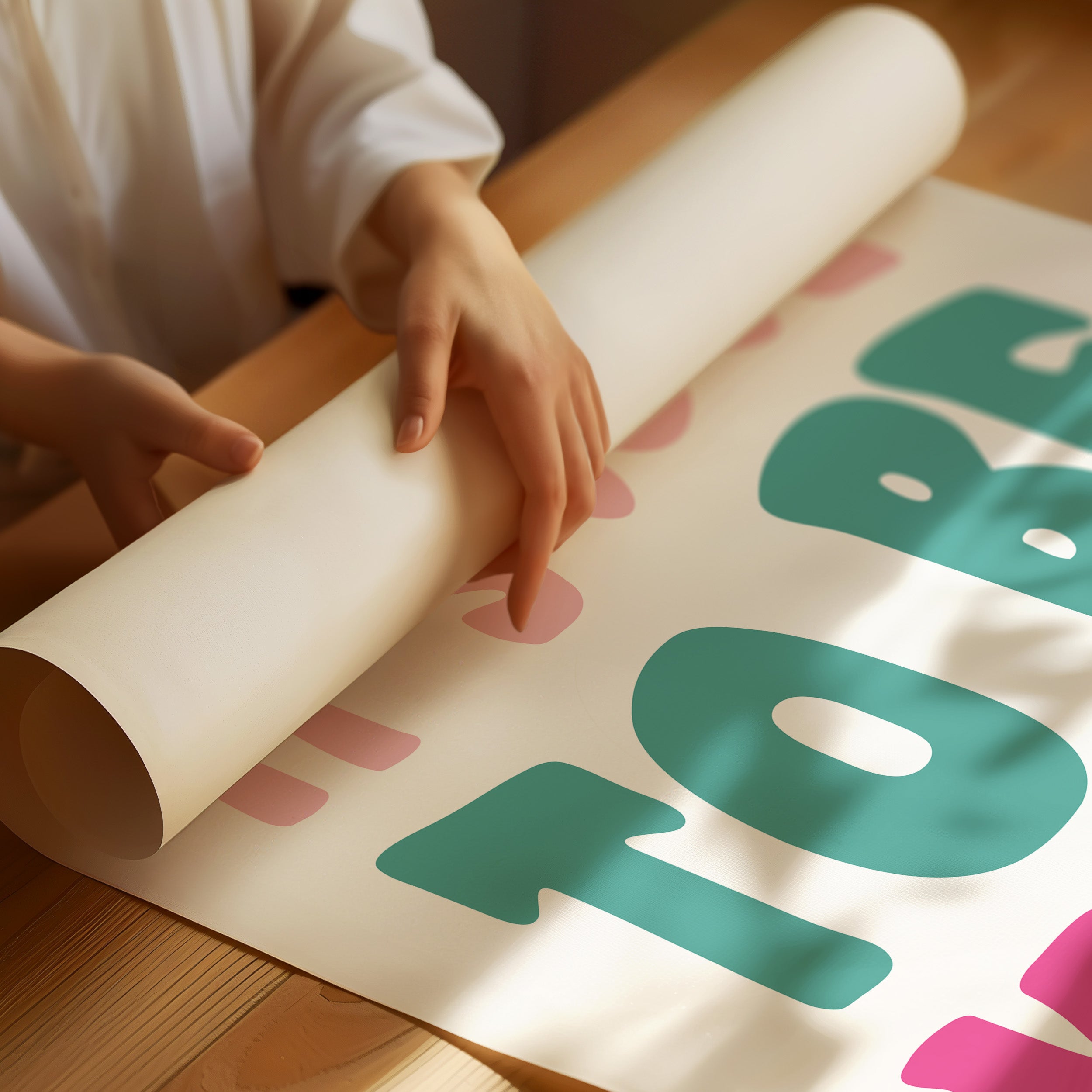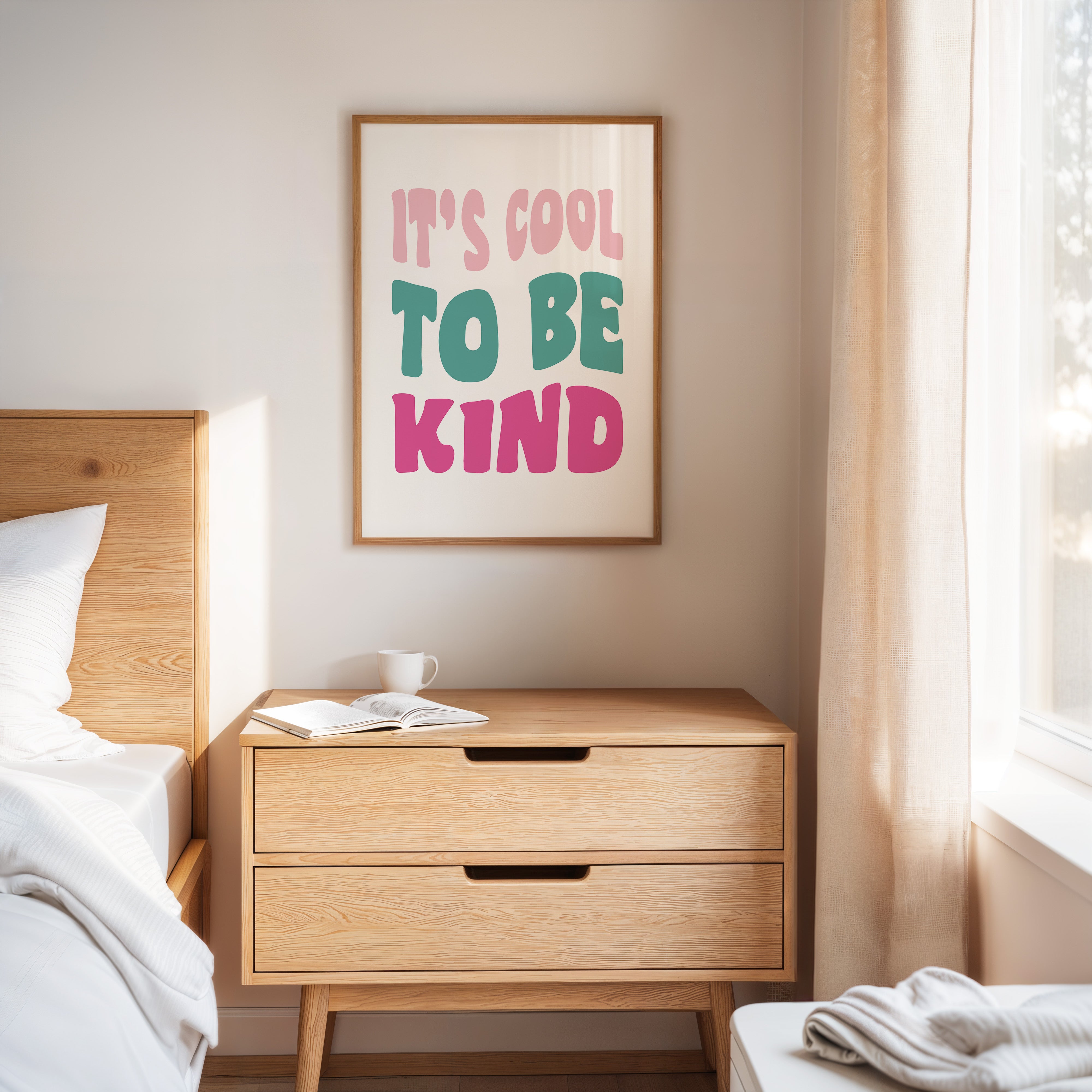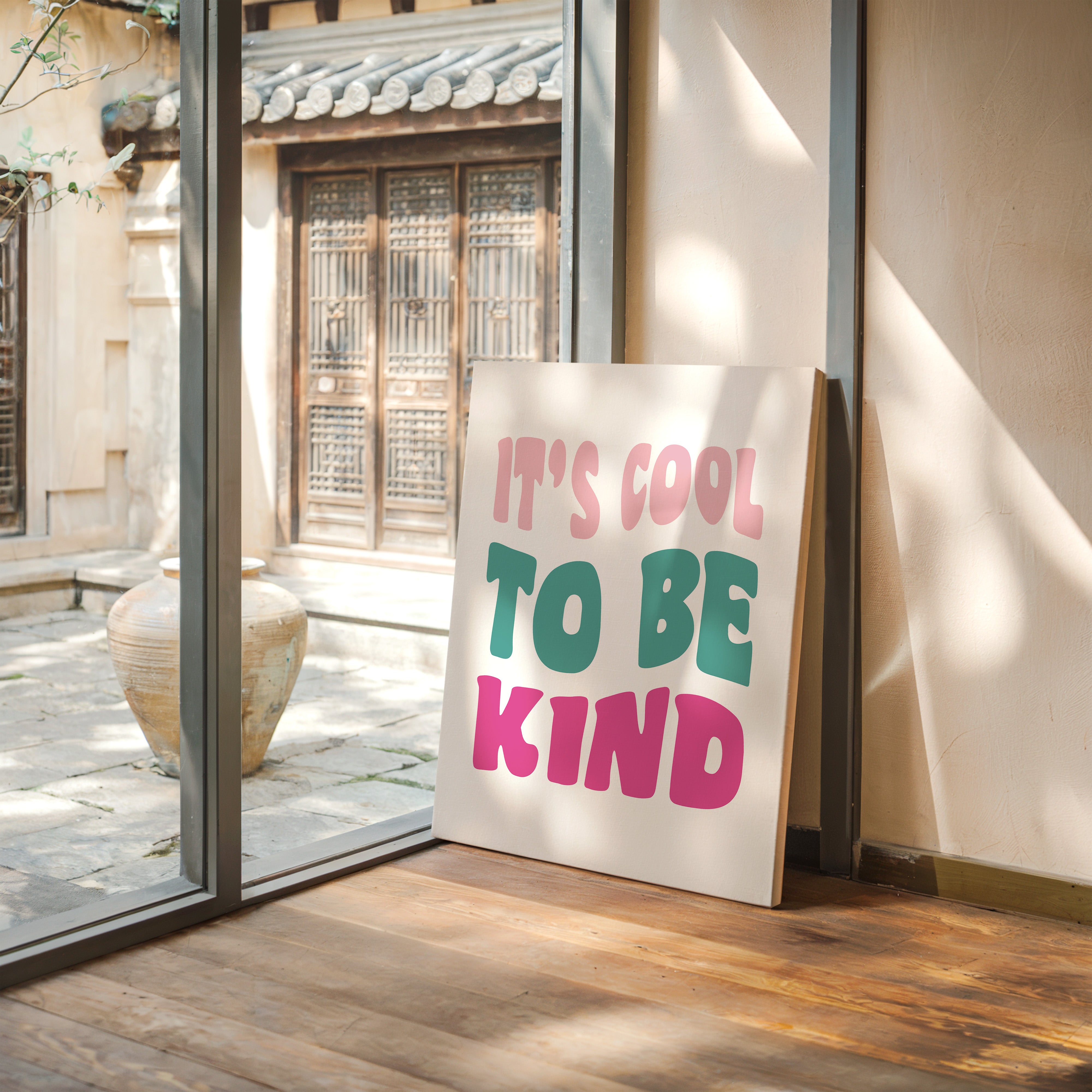 Simple letters cascade in soft pastels, carrying a message that feels like the first breath of a fresh day. This piece from our Contemporary collection celebrates the power of positive affirmations through minimalist typography. The playful arrangement of pink, teal, and rose text creates a gentle rhythm, like waves of kindness rippling across the canvas. Each letter seems to float with intention, creating a moment of pause and reflection. Perfect for a child's room, home office, or any space where daily inspiration is welcome, this piece serves as a gentle reminder of life's simple truths.