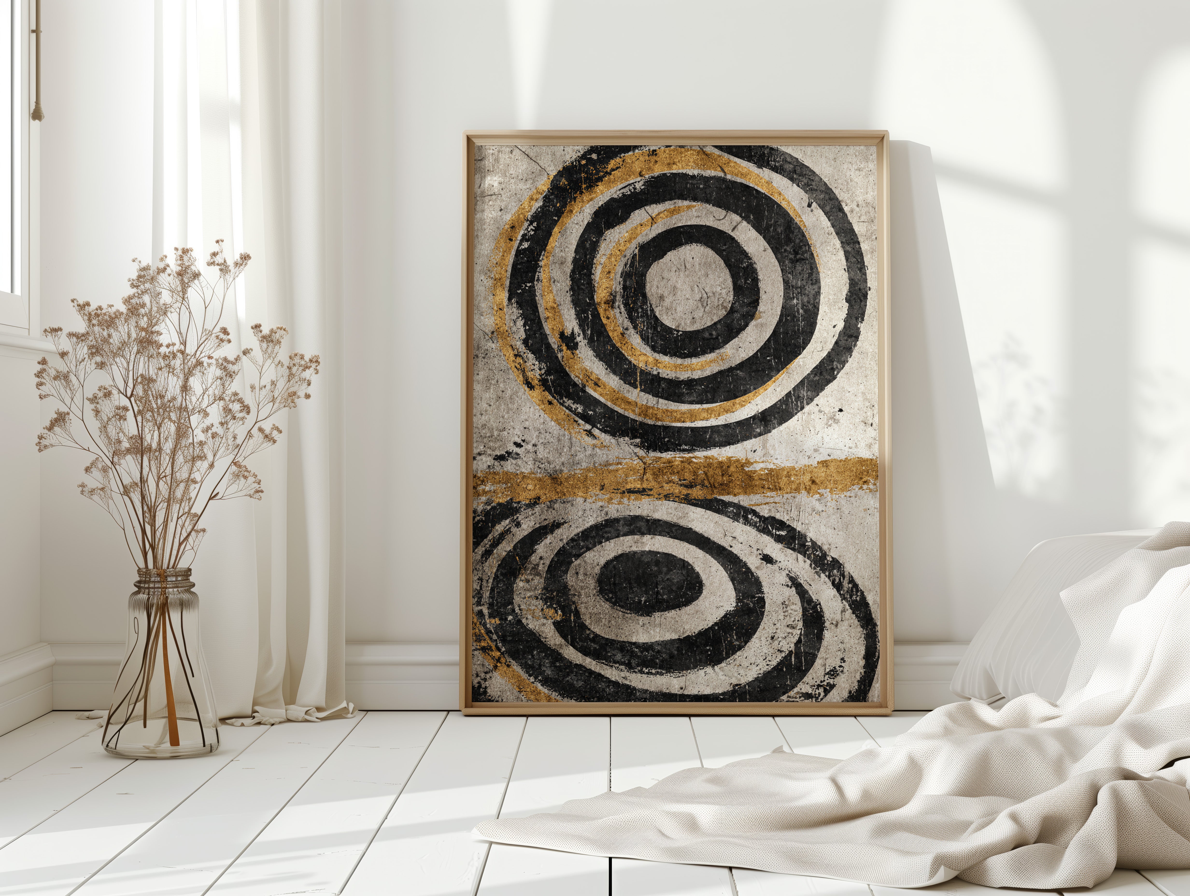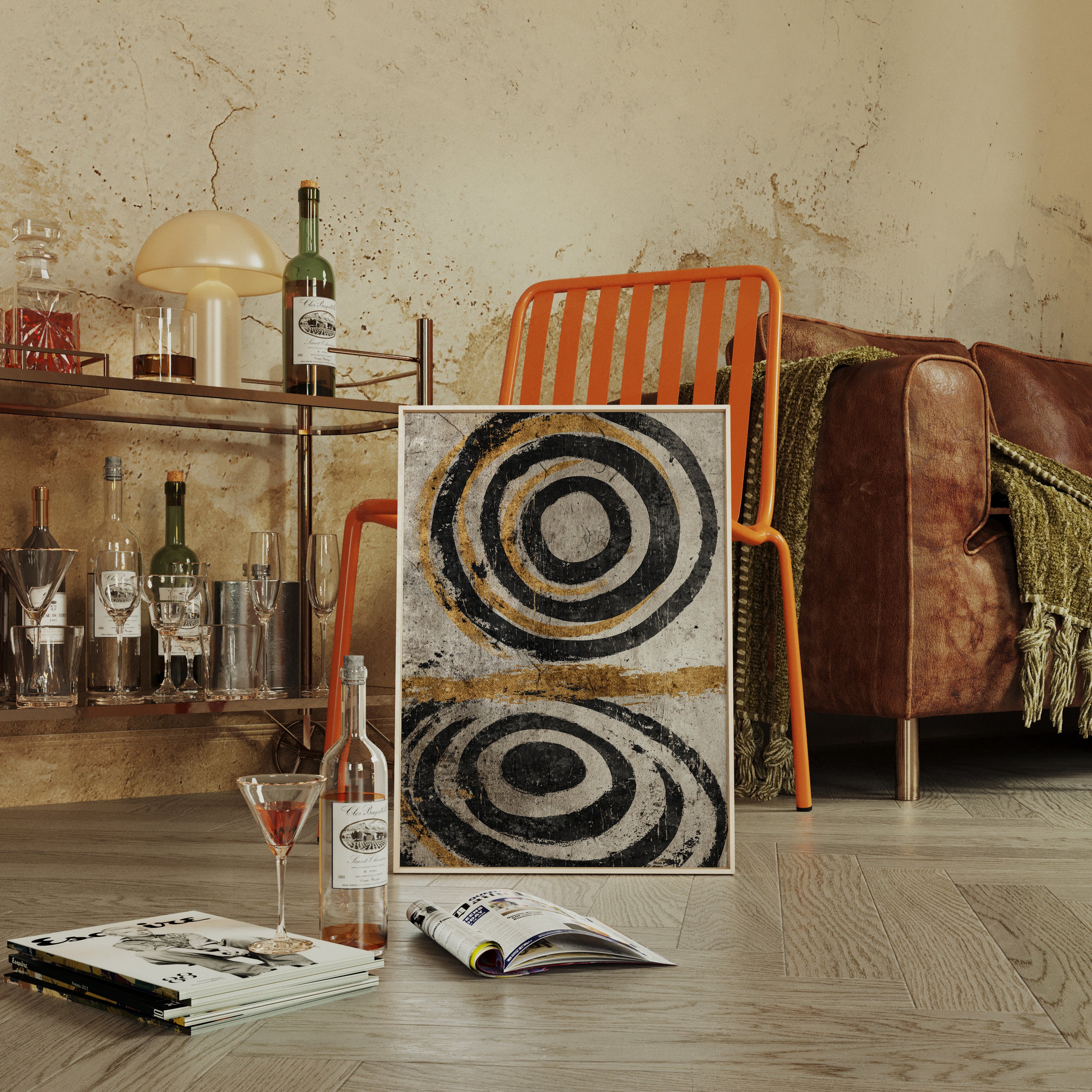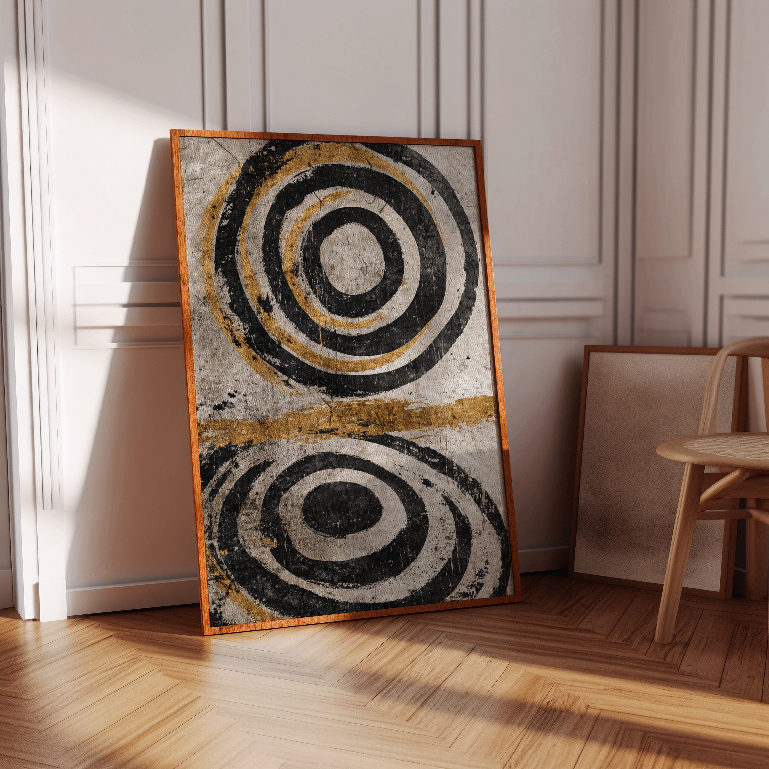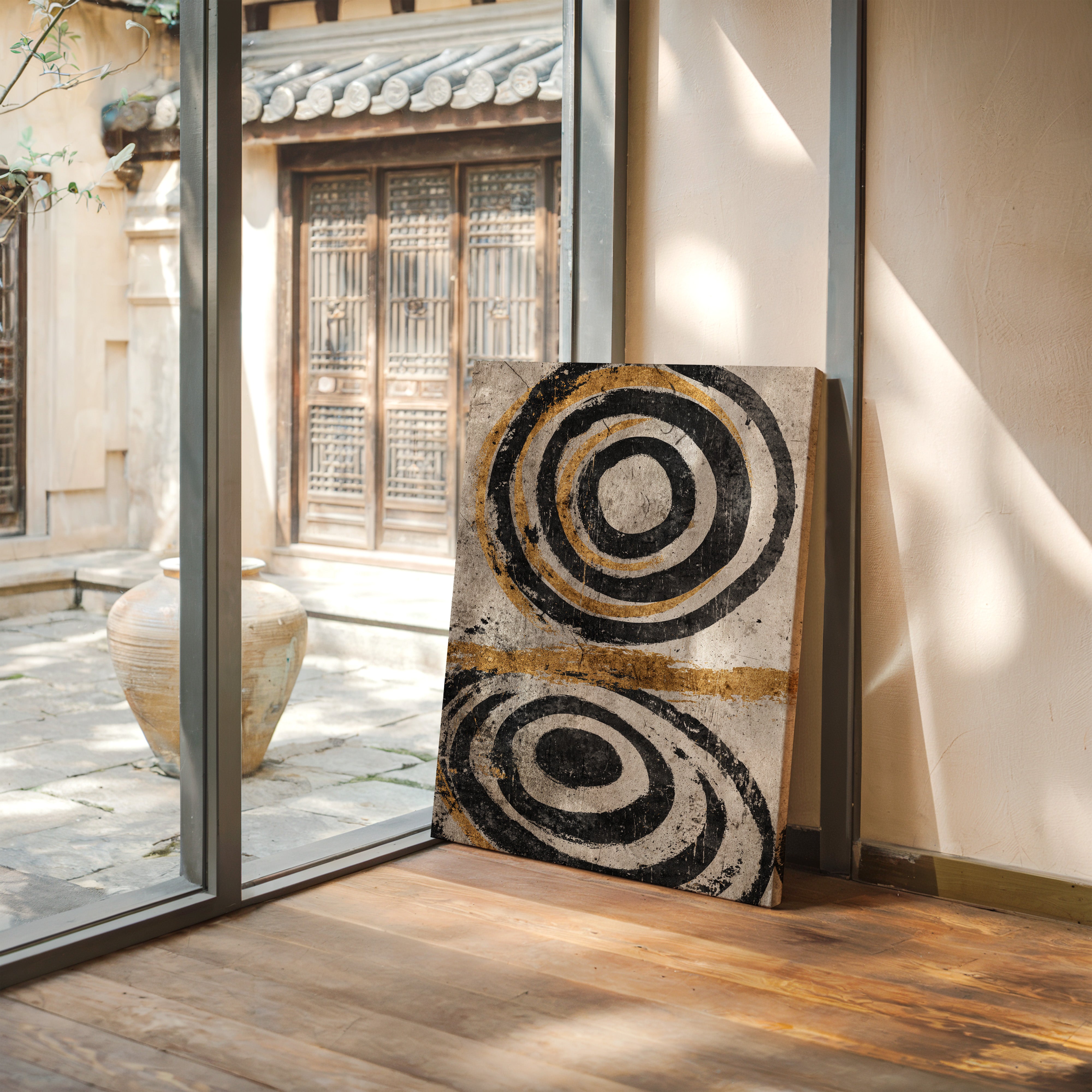 In a dance of geometry and grit, the circles emerge, inviting contemplation and connection. Anchored in the Artisanal collection, this piece melds tradition with modernity. The striking contrast of deep black and shimmering gold evokes a sense of ancient rituals, where each layer tells a story of craft and care. Perfect for a creative workspace or a reflective nook, this artwork inspires dialogue and introspection.