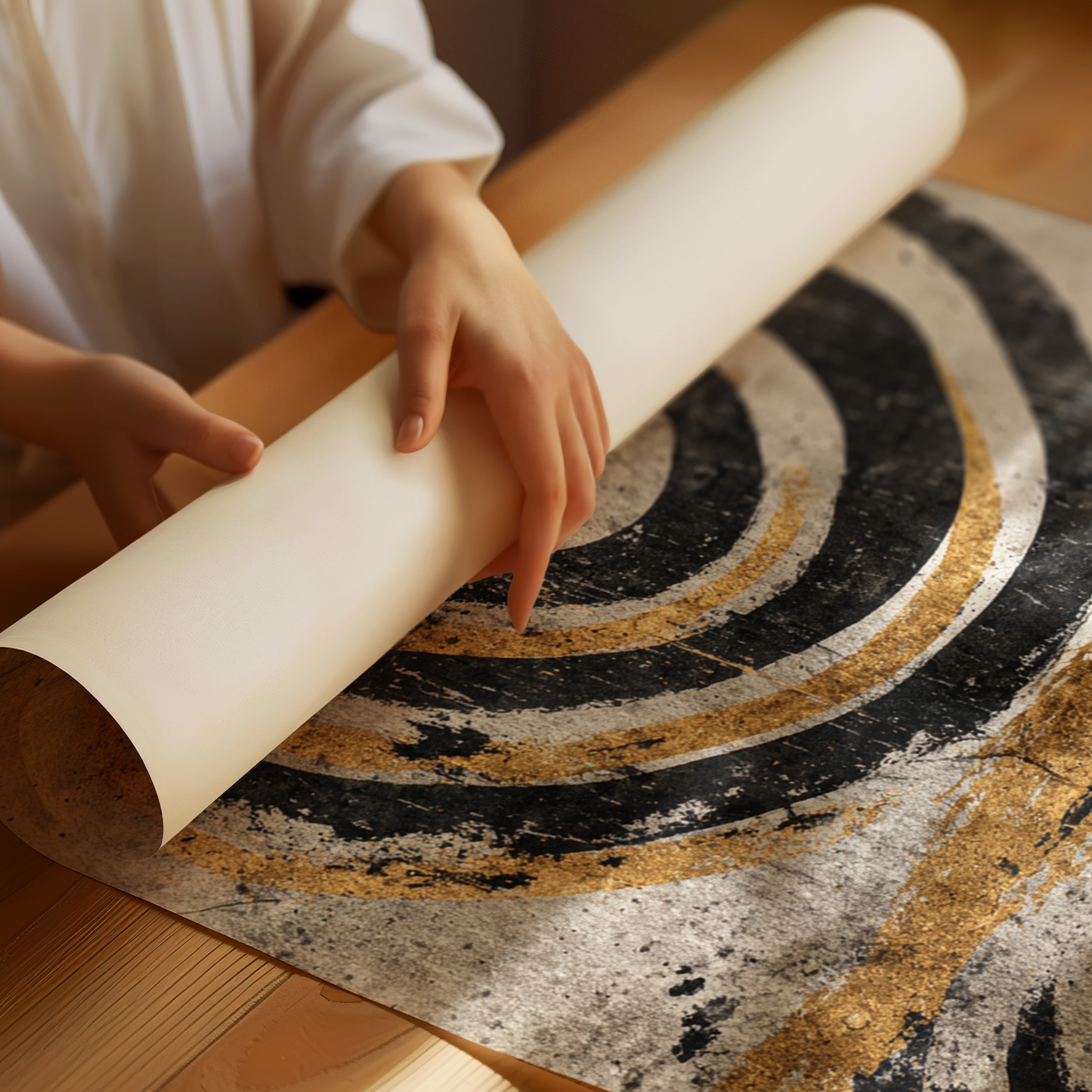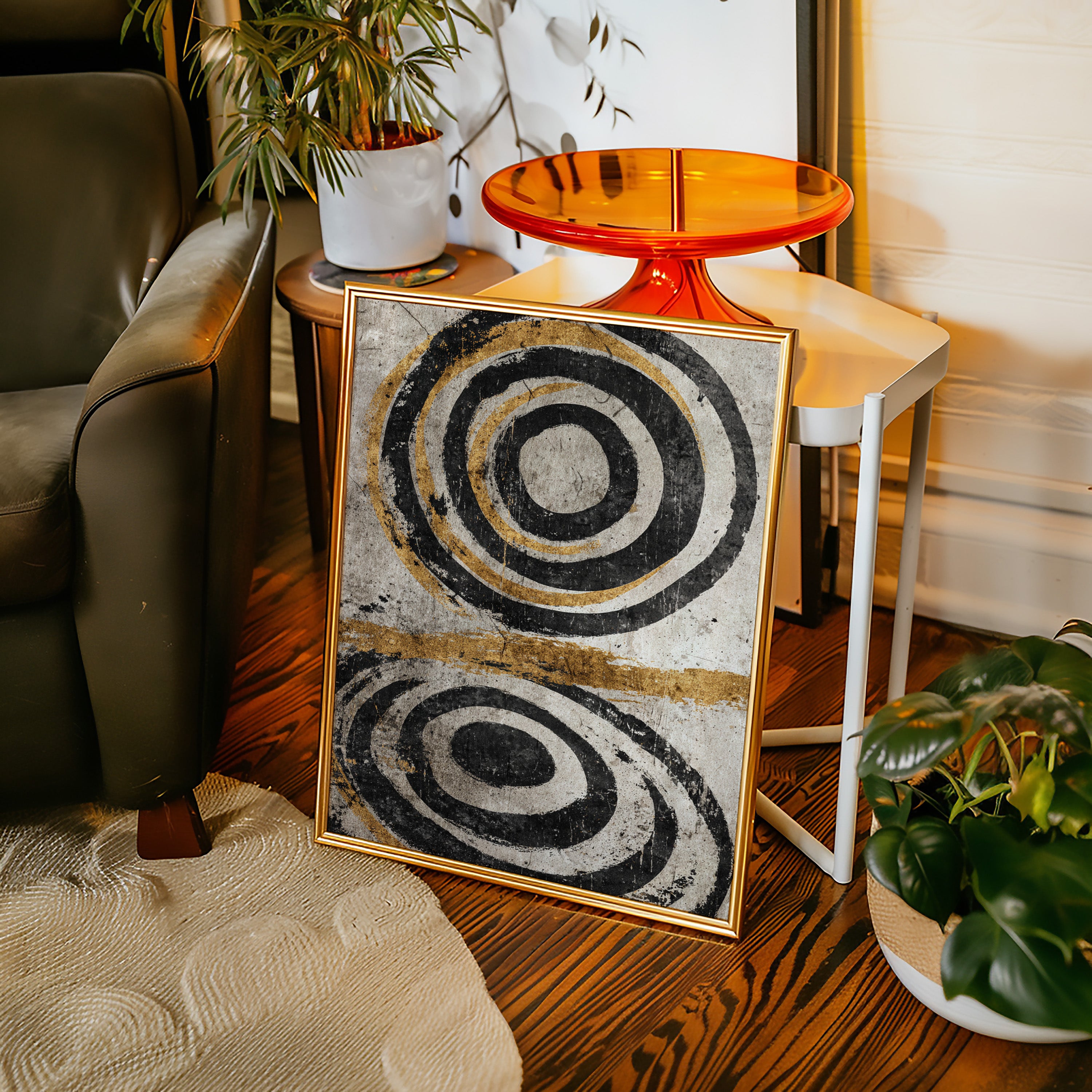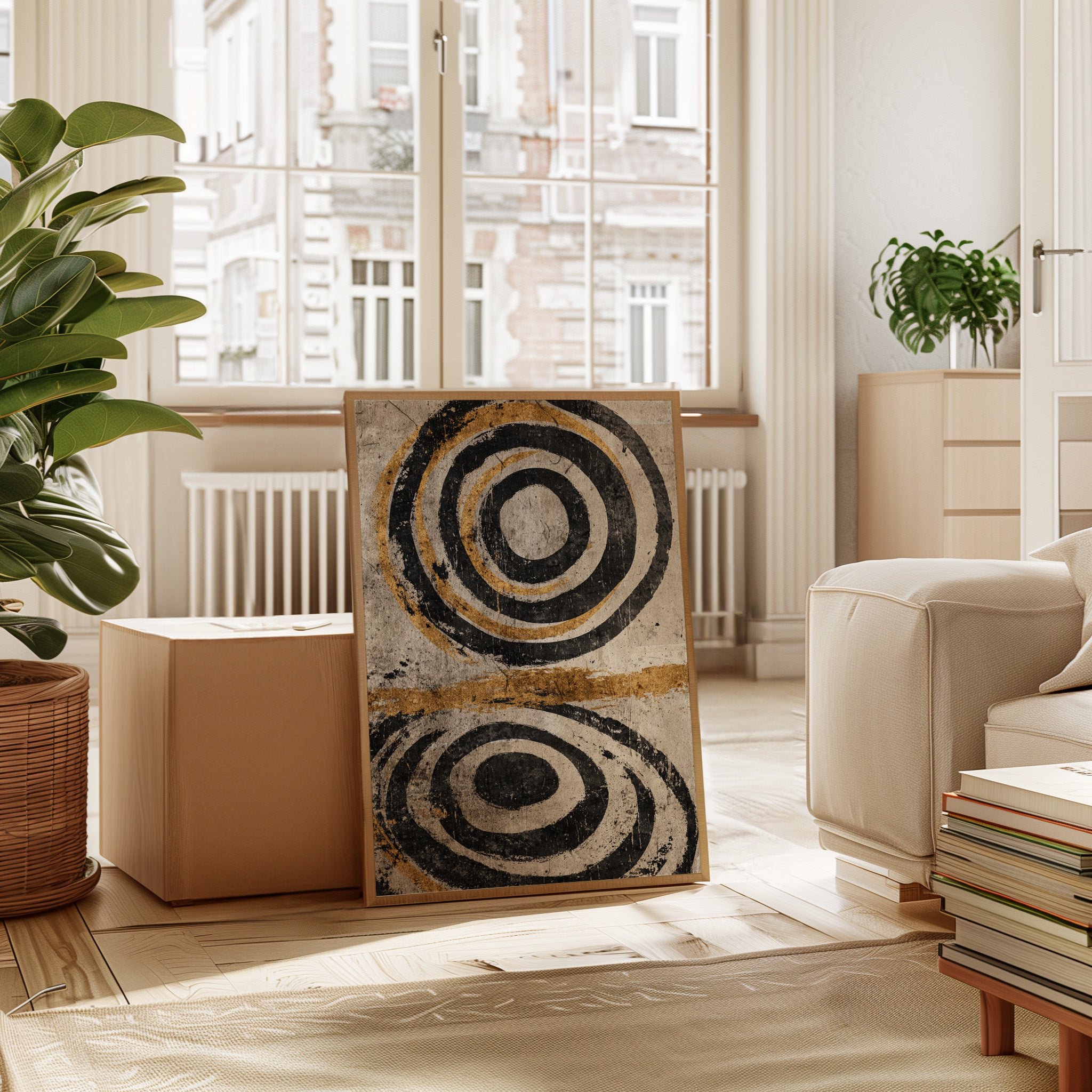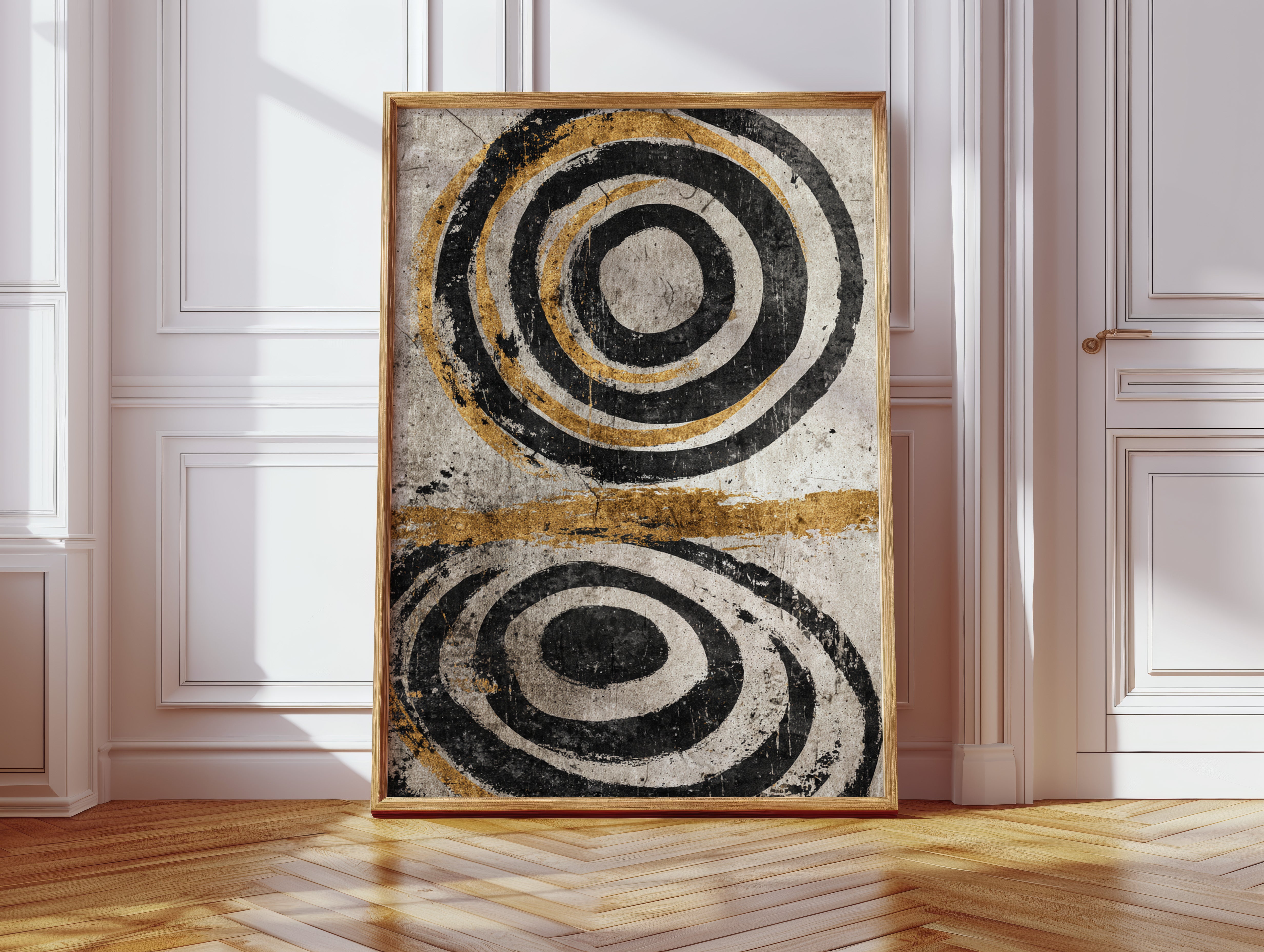 In a dance of geometry and grit, the circles emerge, inviting contemplation and connection. Anchored in the Artisanal collection, this piece melds tradition with modernity. The striking contrast of deep black and shimmering gold evokes a sense of ancient rituals, where each layer tells a story of craft and care. Perfect for a creative workspace or a reflective nook, this artwork inspires dialogue and introspection.