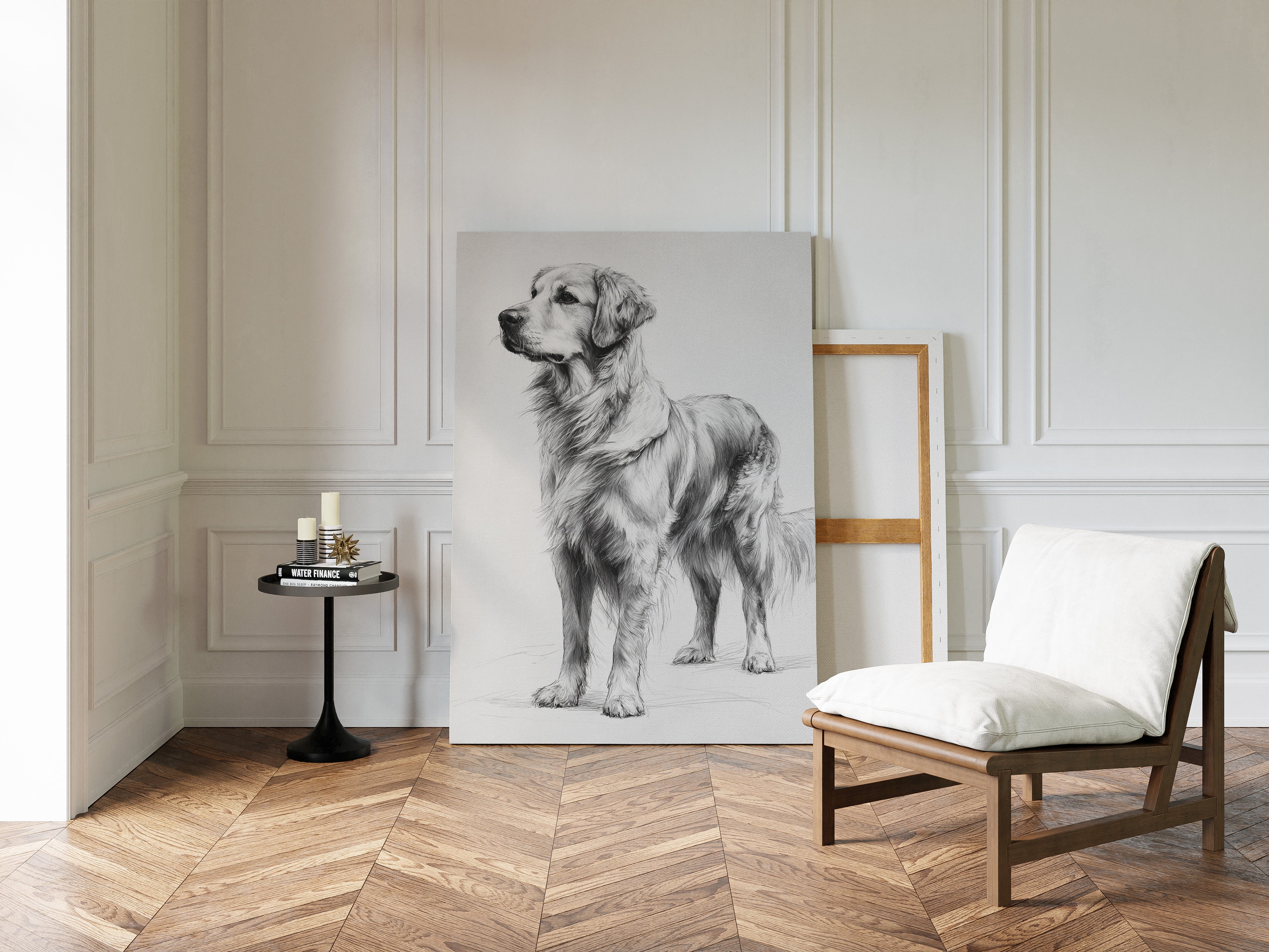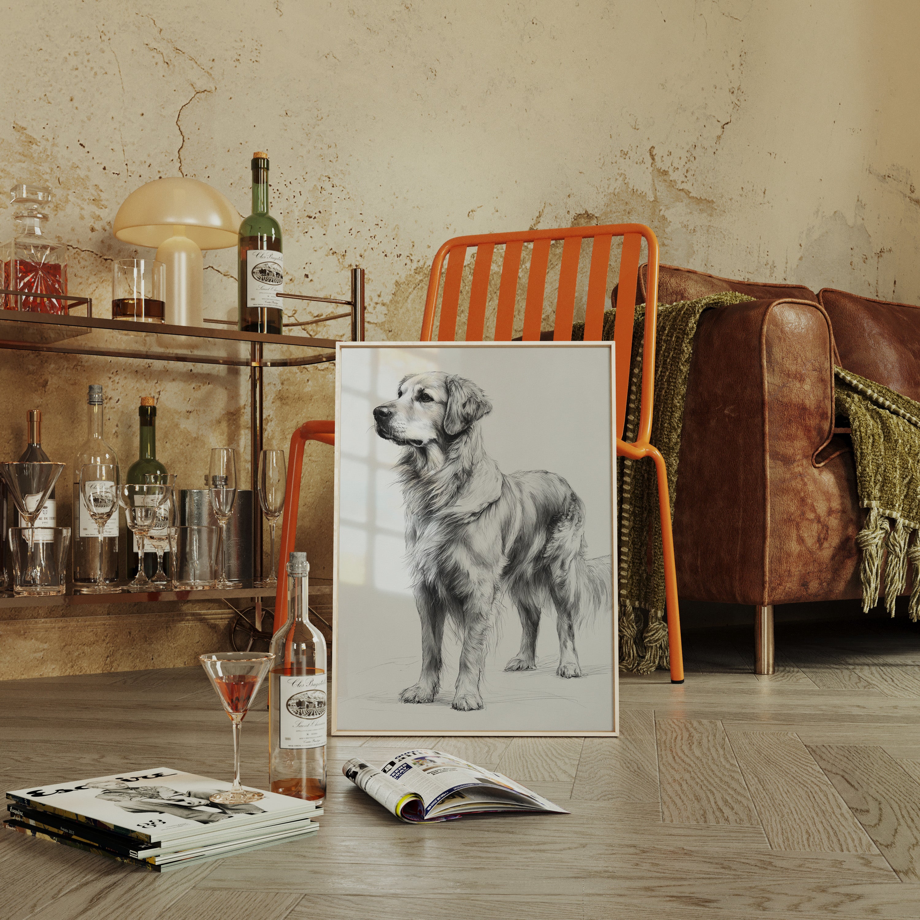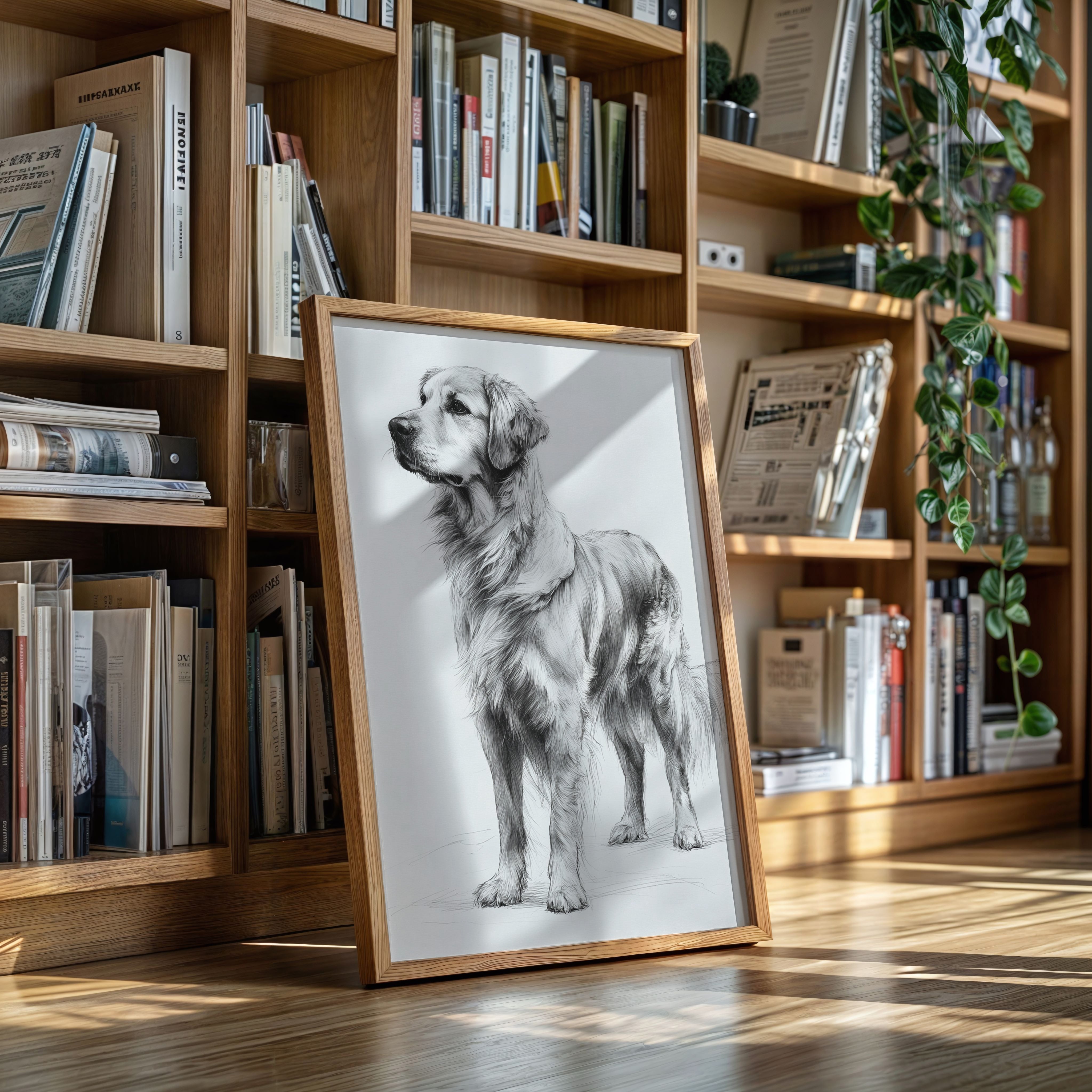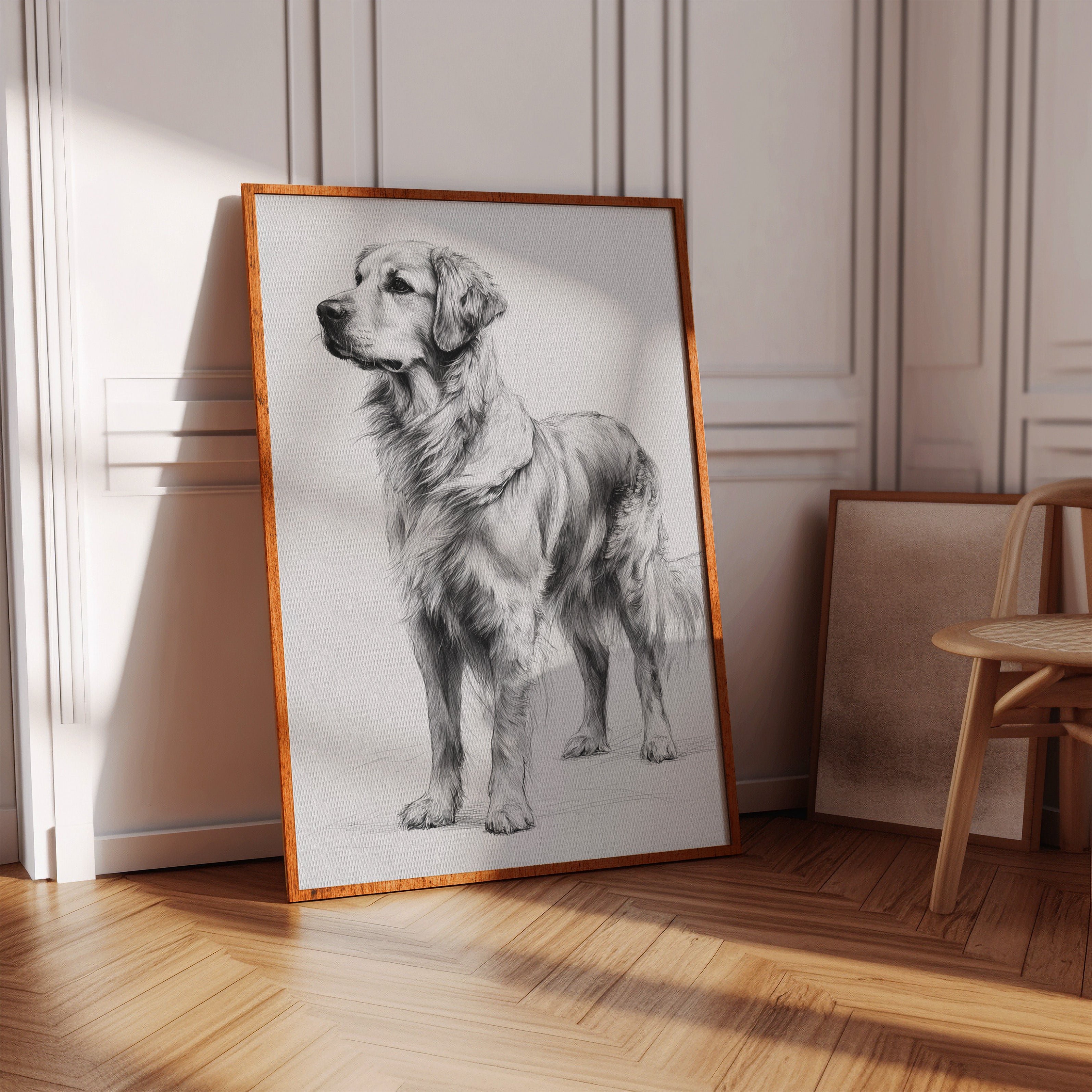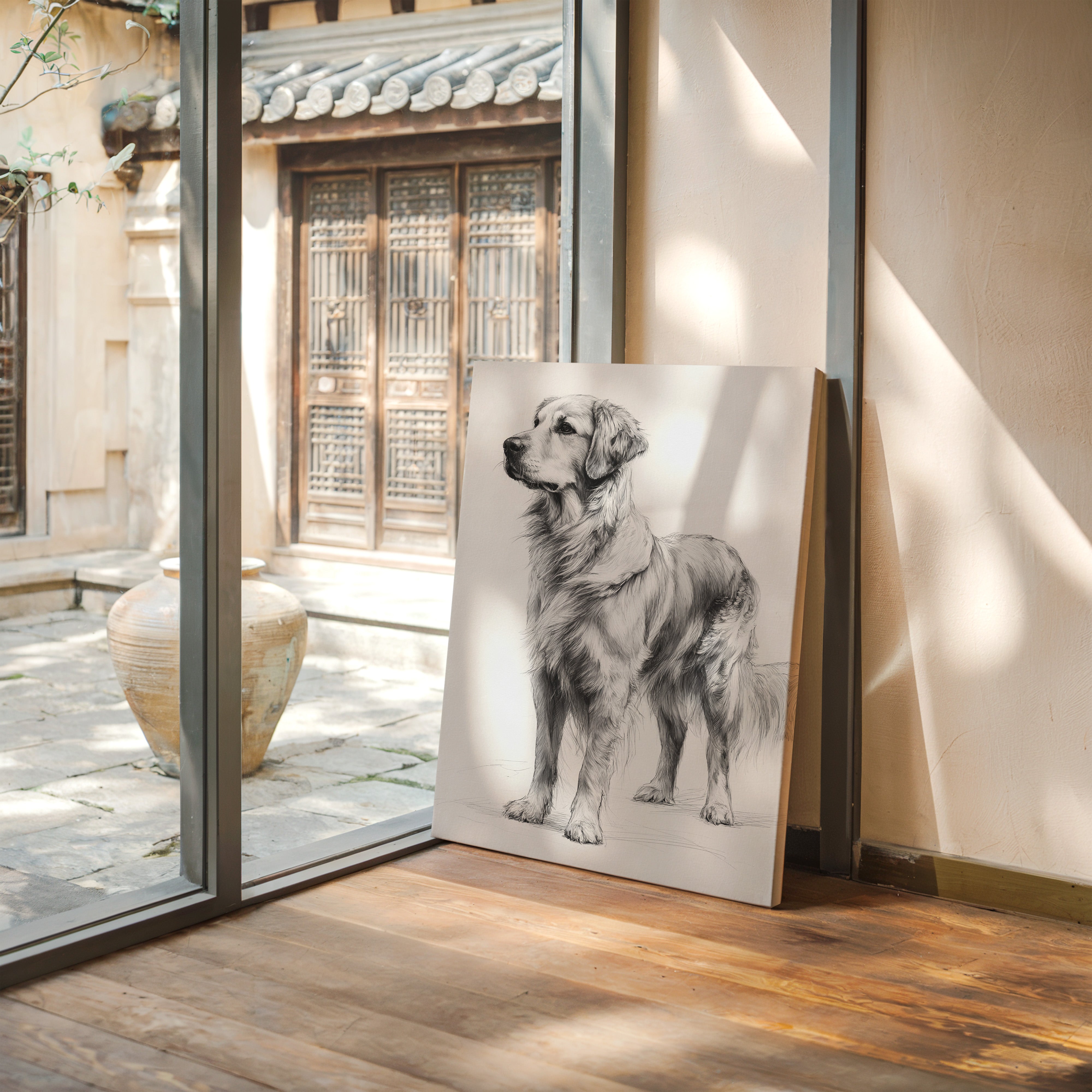 In the stillness of a sunlit room, a golden companion stands watch, embodying loyalty and warmth. This piece captures the essence of the artisanal spirit, blending realism with heartfelt emotion. The meticulously detailed fur glistens with the promise of shared adventures, each stroke weaving a narrative of joy, comfort, and companionship. Ideal for a cozy living room or a serene reading nook, this artwork invites you to pause and reflect on the simple, yet profound bond between humans and their pets.