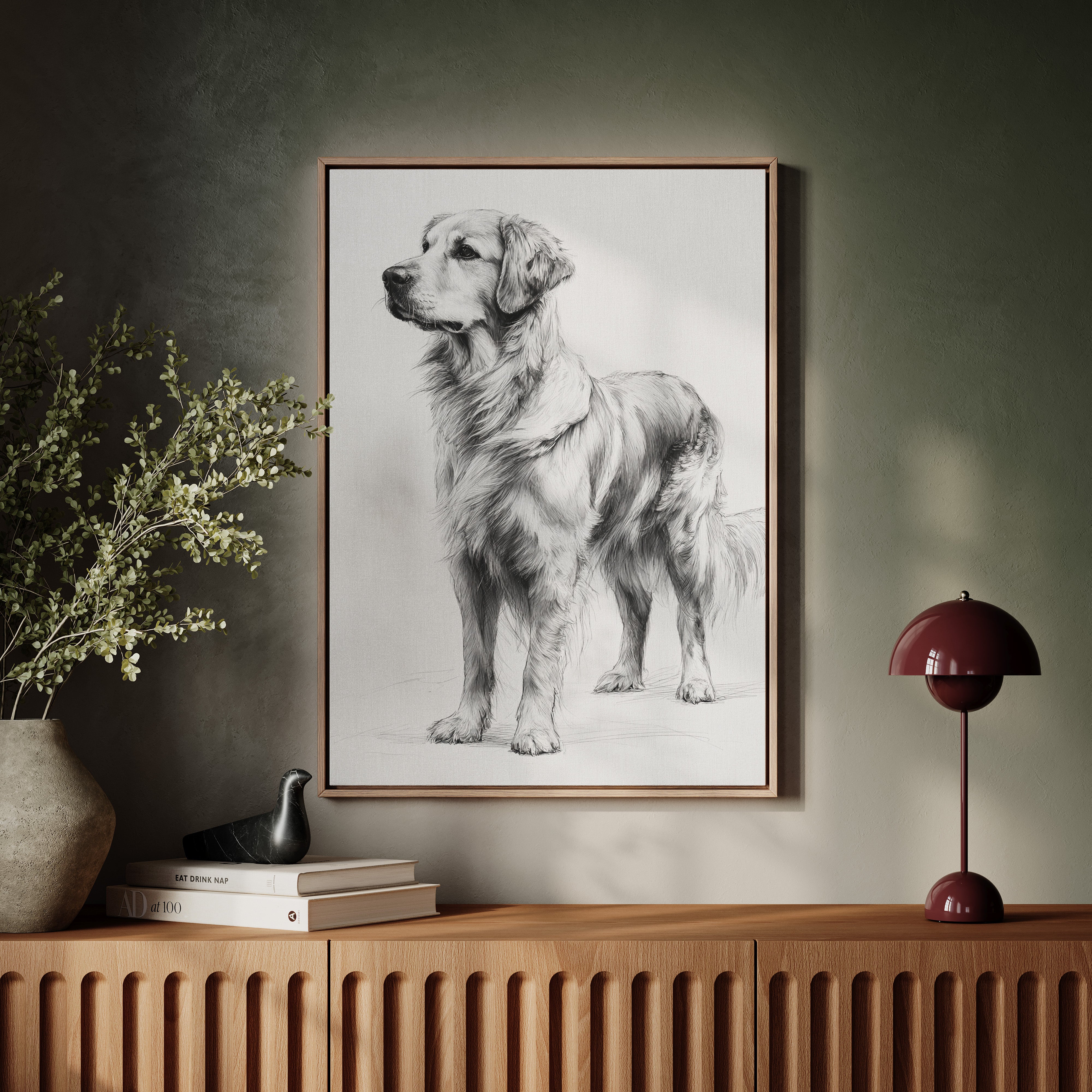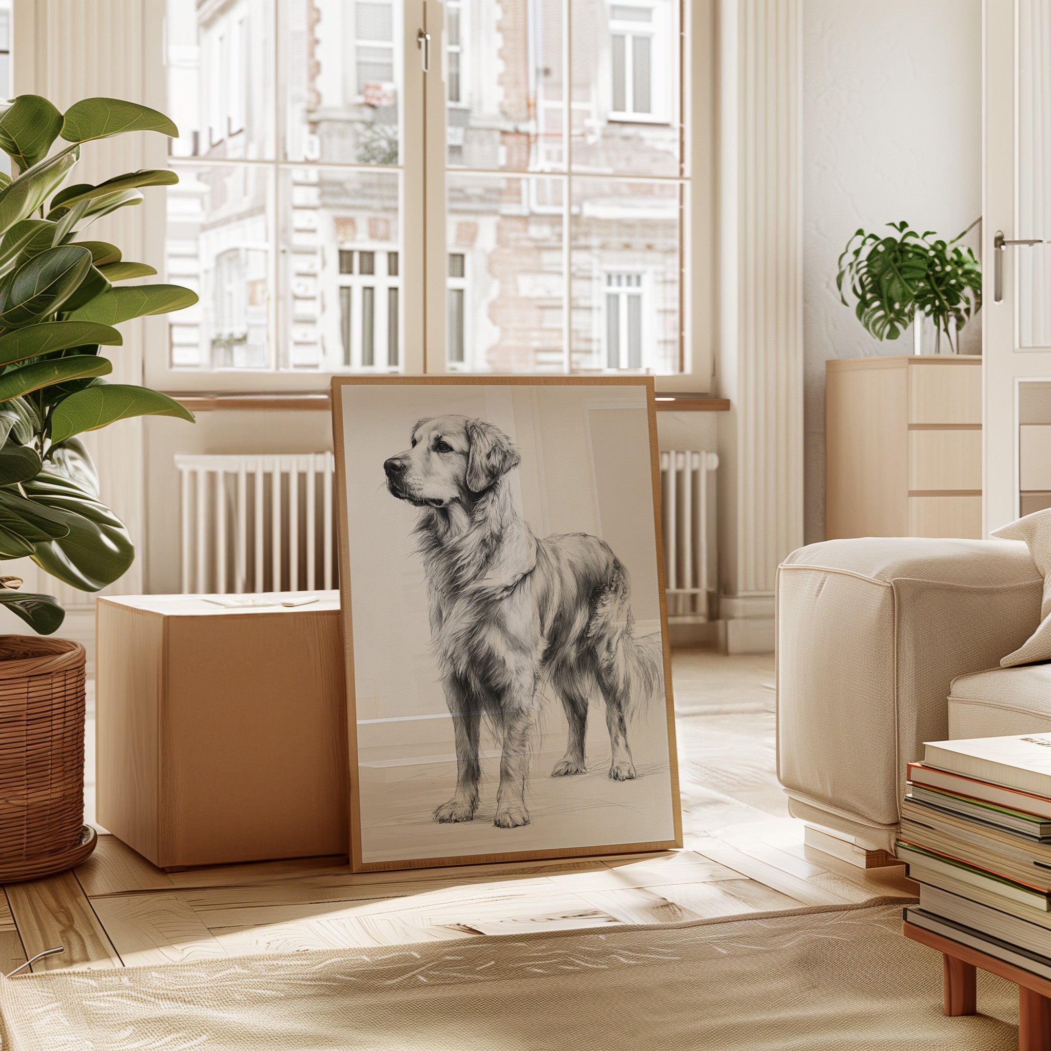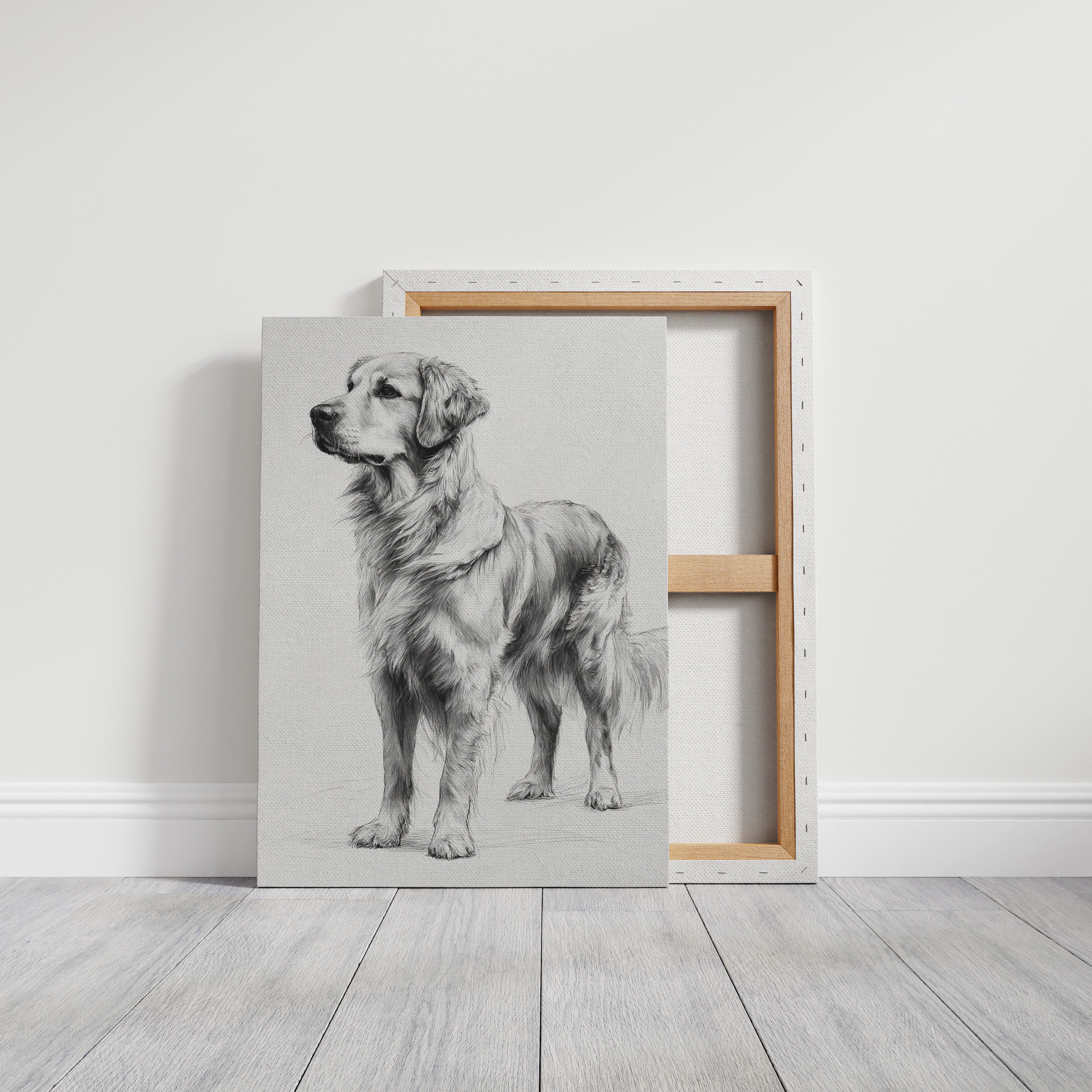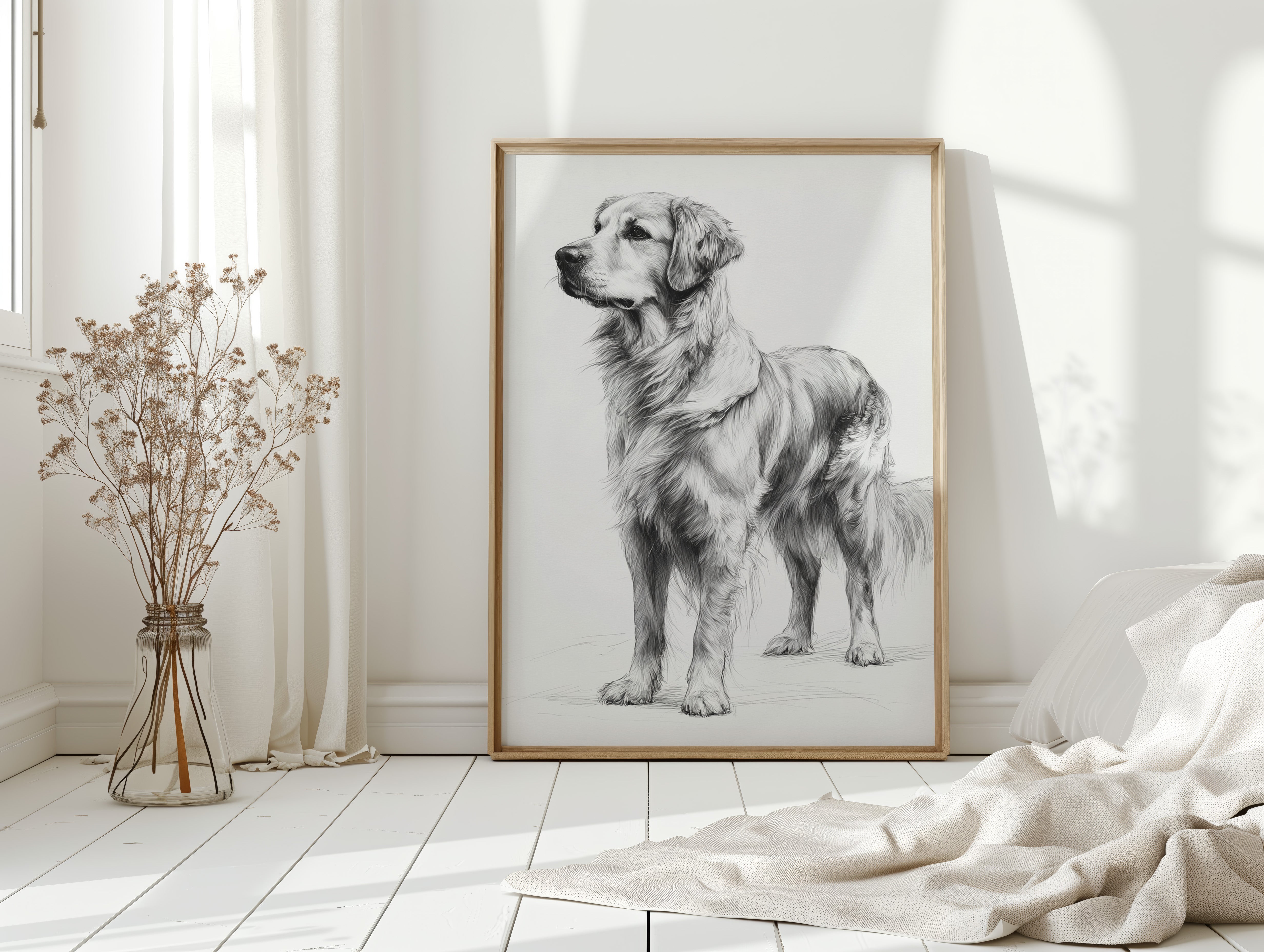 In the stillness of a sunlit room, a golden companion stands watch, embodying loyalty and warmth. This piece captures the essence of the artisanal spirit, blending realism with heartfelt emotion. The meticulously detailed fur glistens with the promise of shared adventures, each stroke weaving a narrative of joy, comfort, and companionship. Ideal for a cozy living room or a serene reading nook, this artwork invites you to pause and reflect on the simple, yet profound bond between humans and their pets.