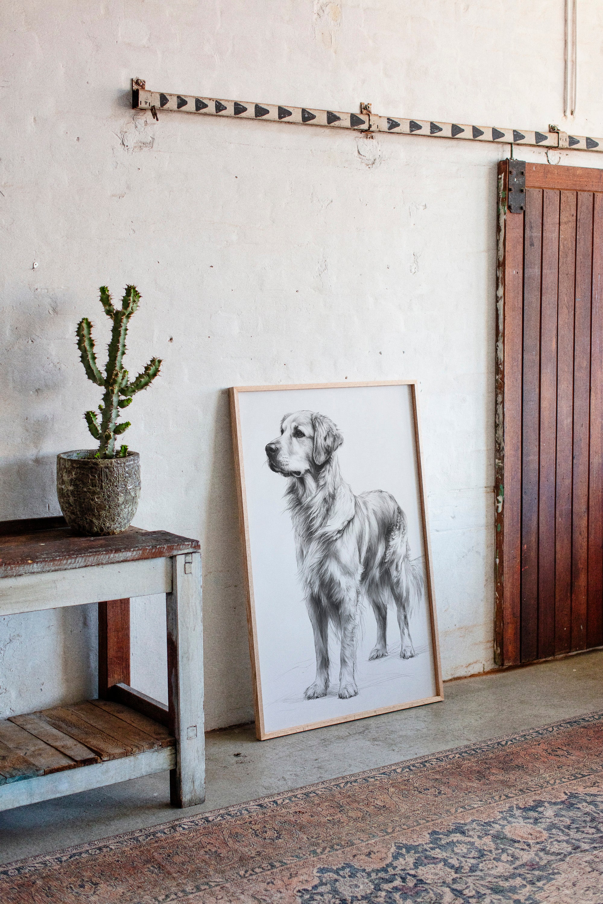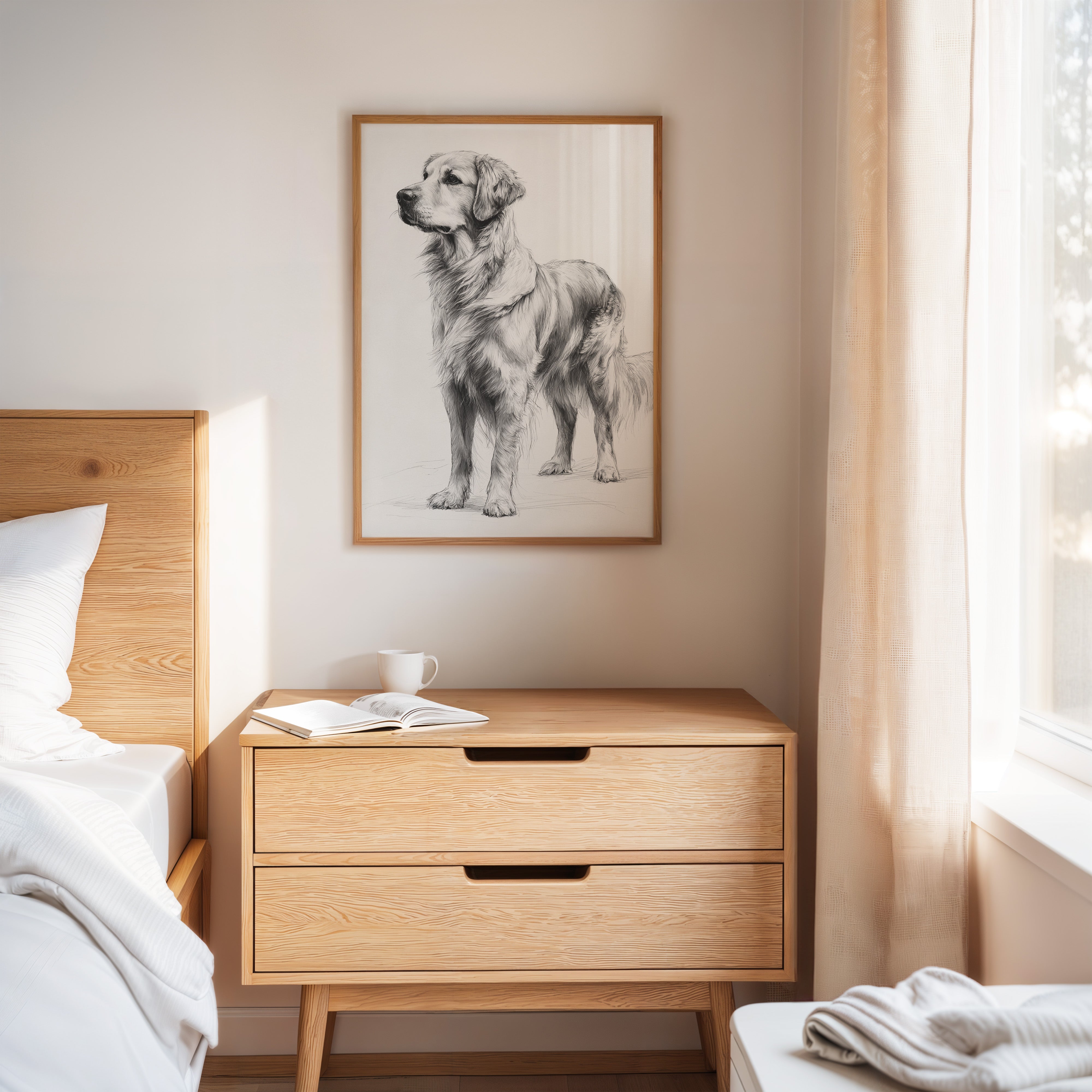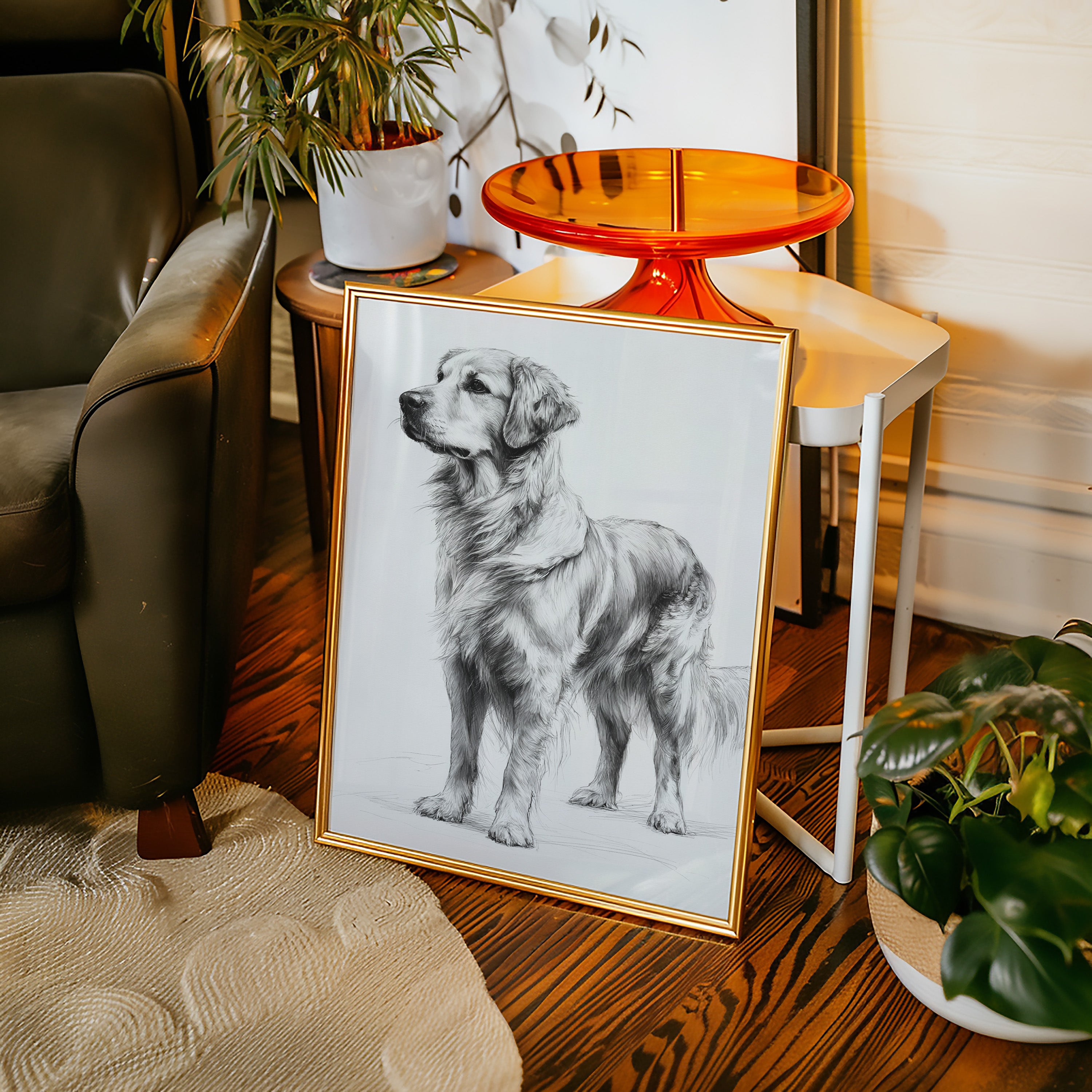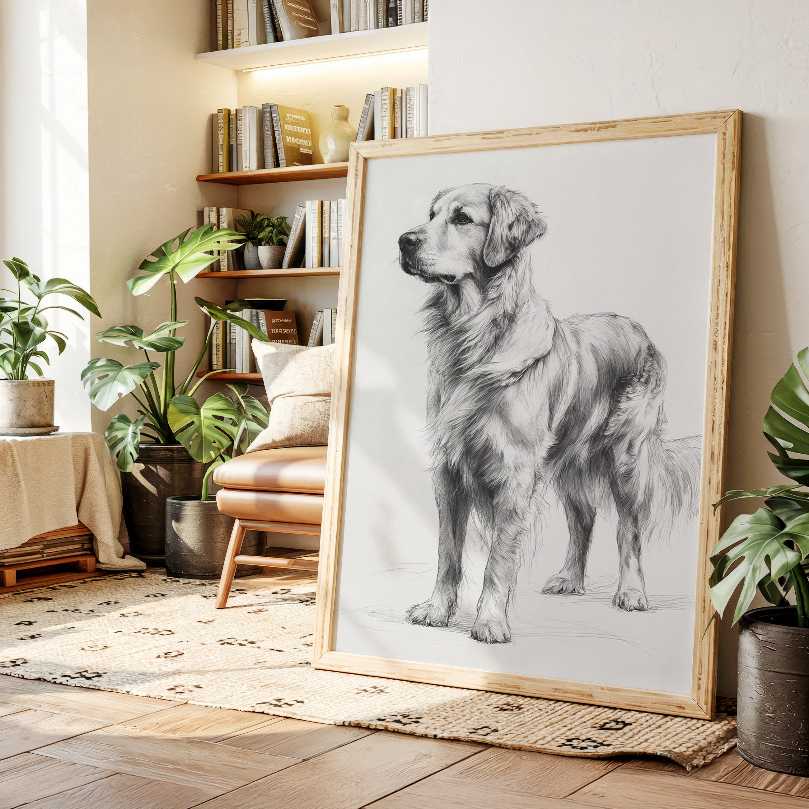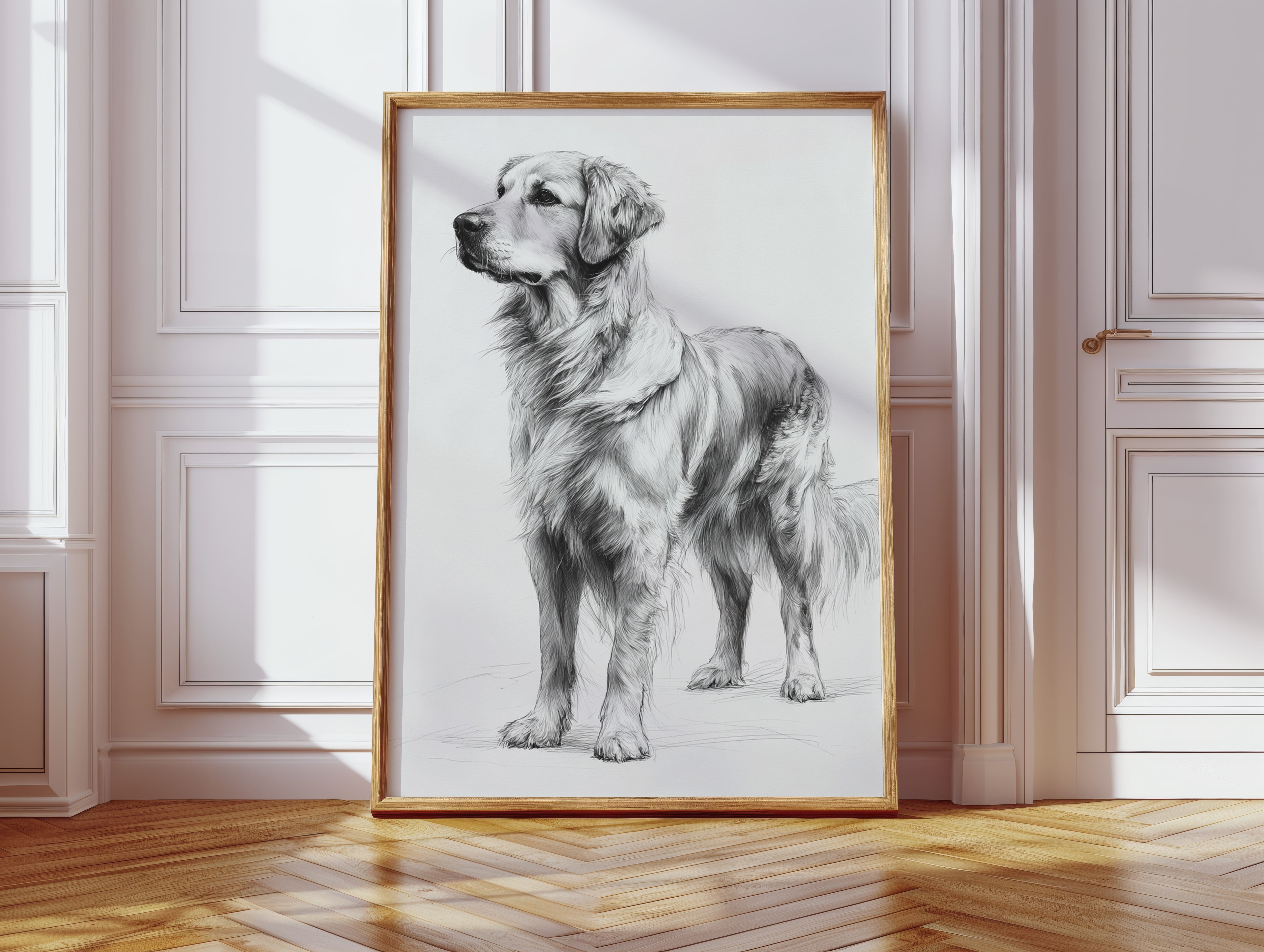 In the stillness of a sunlit room, a golden companion stands watch, embodying loyalty and warmth. This piece captures the essence of the artisanal spirit, blending realism with heartfelt emotion. The meticulously detailed fur glistens with the promise of shared adventures, each stroke weaving a narrative of joy, comfort, and companionship. Ideal for a cozy living room or a serene reading nook, this artwork invites you to pause and reflect on the simple, yet profound bond between humans and their pets.
