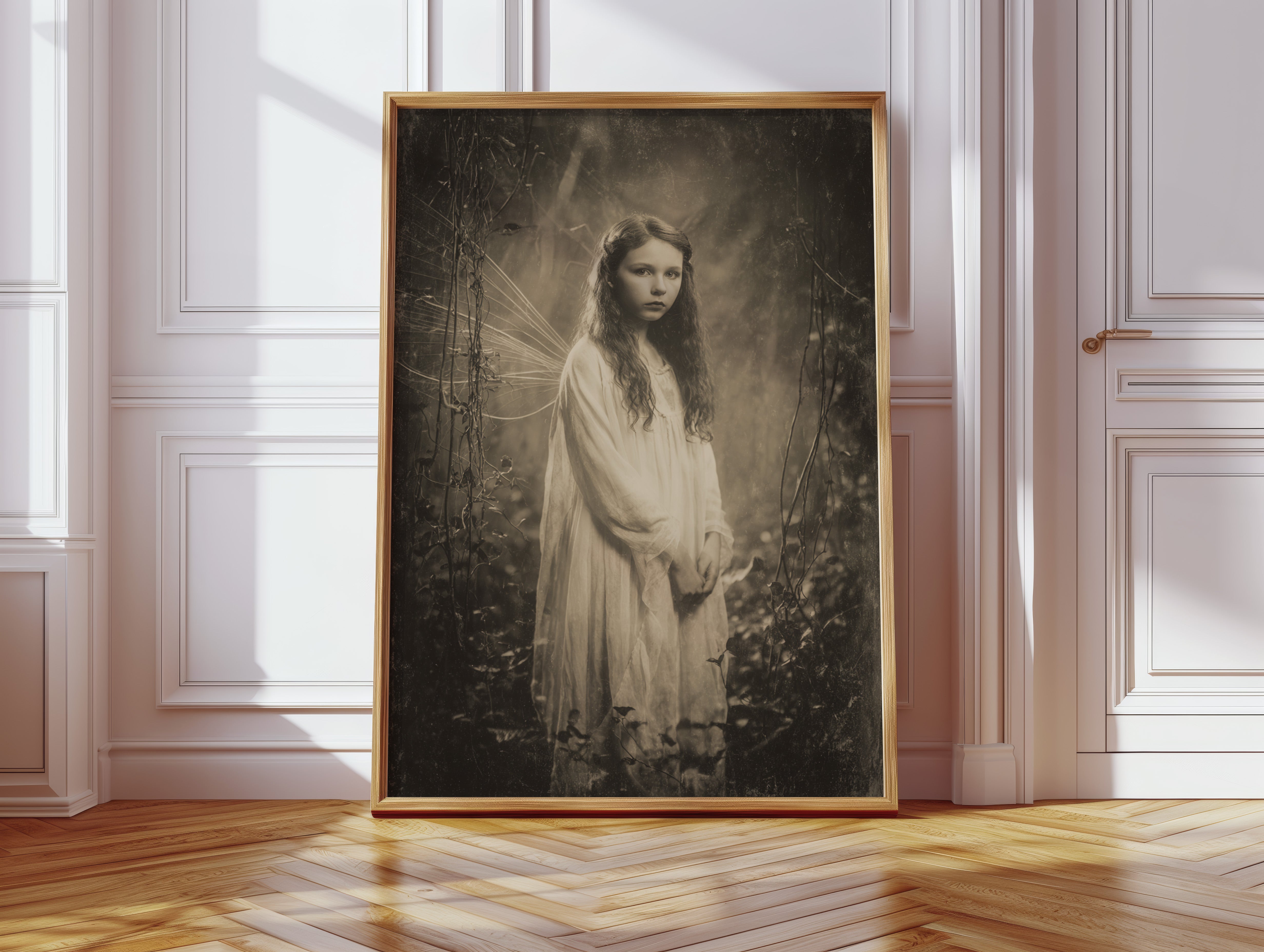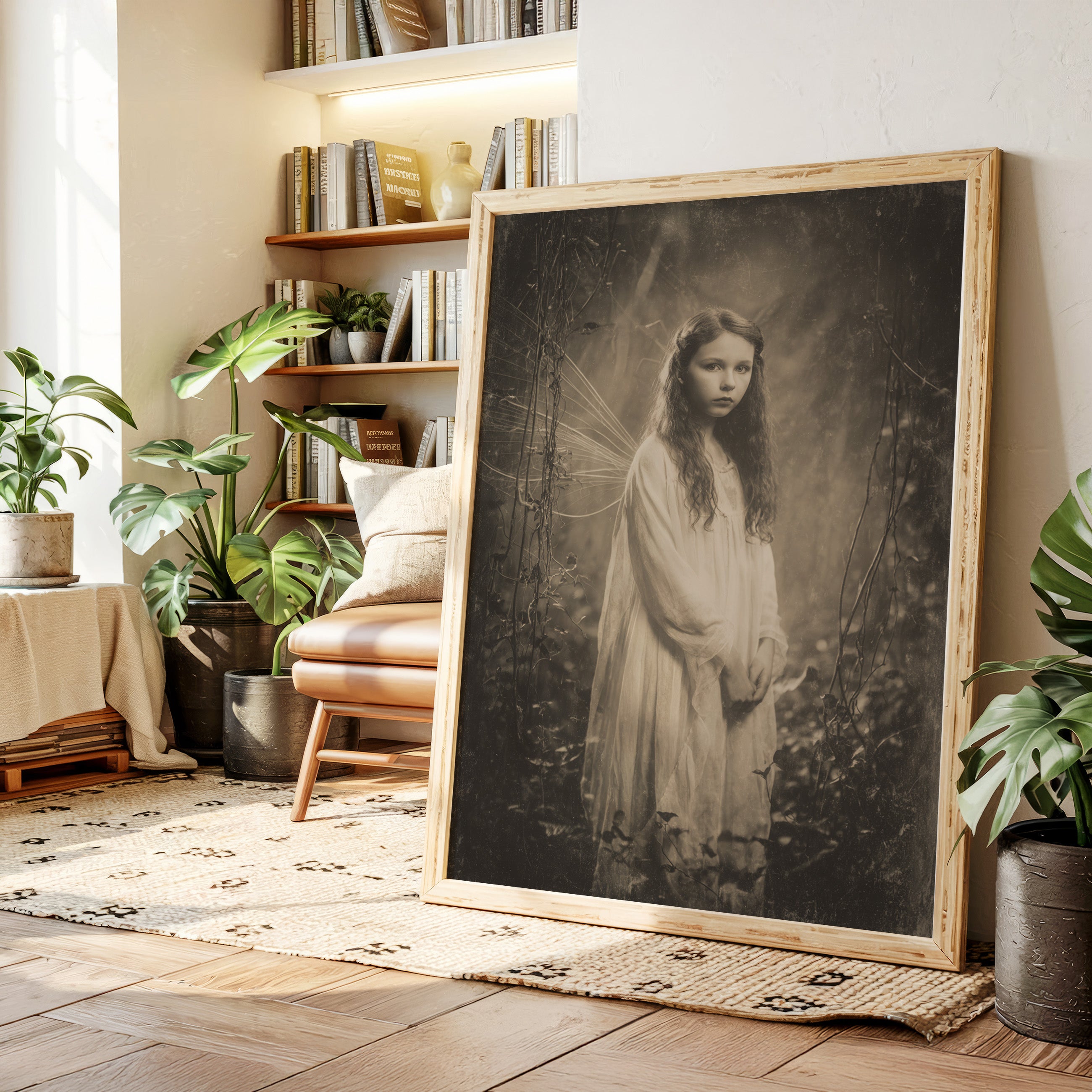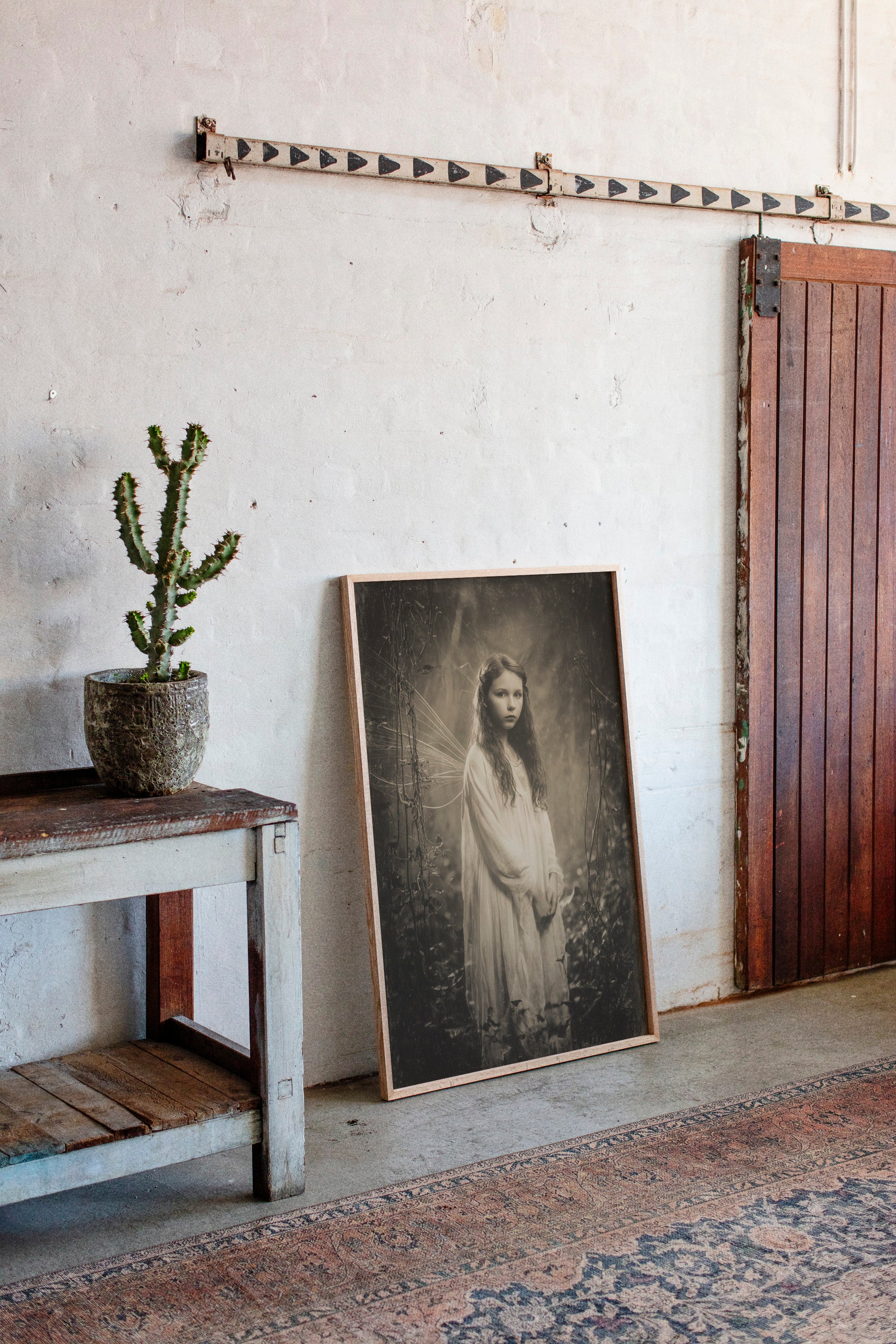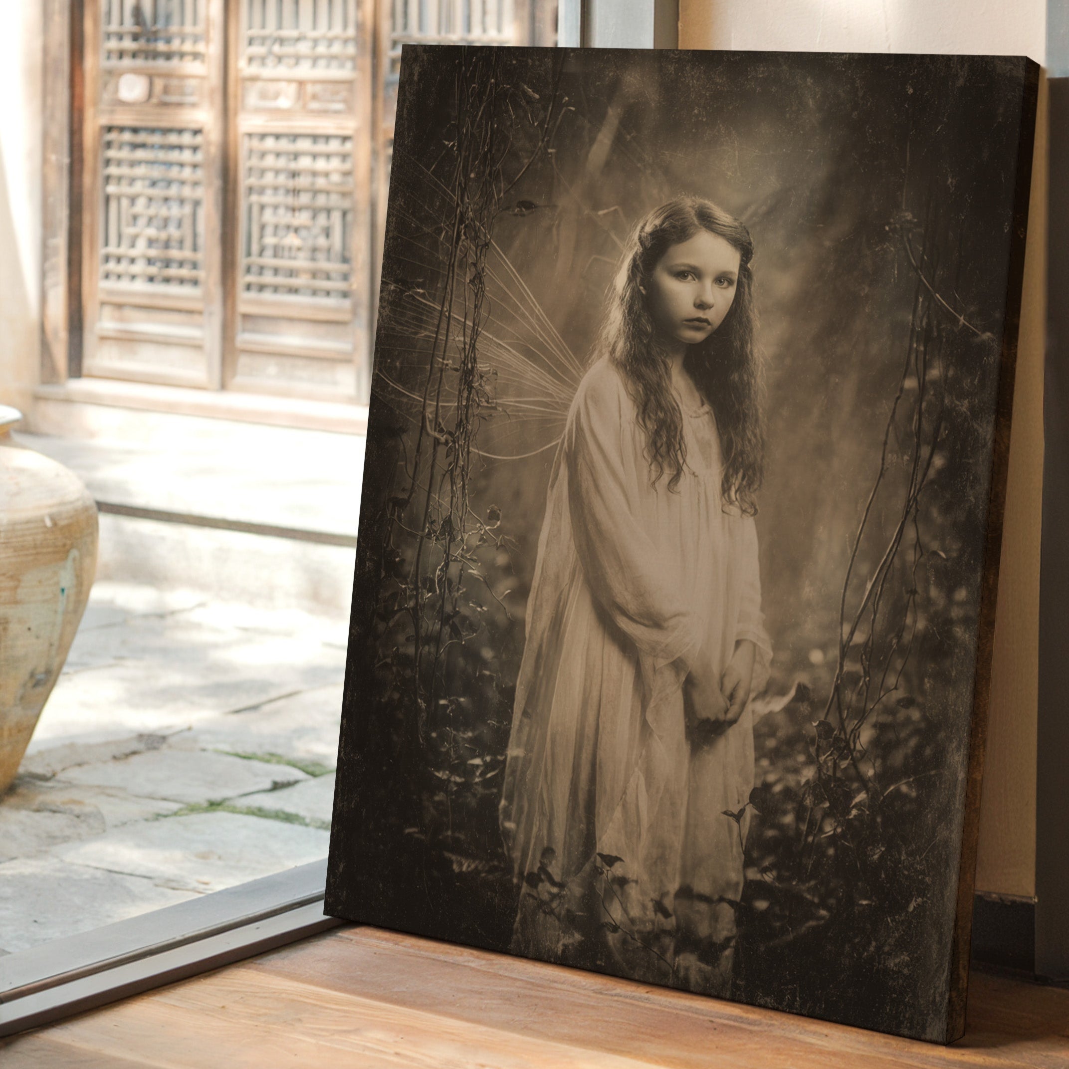 In a realm where magic lingers, a young figure stands, embodying both innocence and strength. This piece captures the essence of the 'Artisanal' collection, where craftsmanship meets ethereal beauty. The soft, flowing fabric of her gown contrasts with the intricate vines encircling her, creating a narrative of nature's embrace. Her solemn gaze invites you into a world of wonder and mystery, perfect for a cozy reading nook or a whimsical child's bedroom.