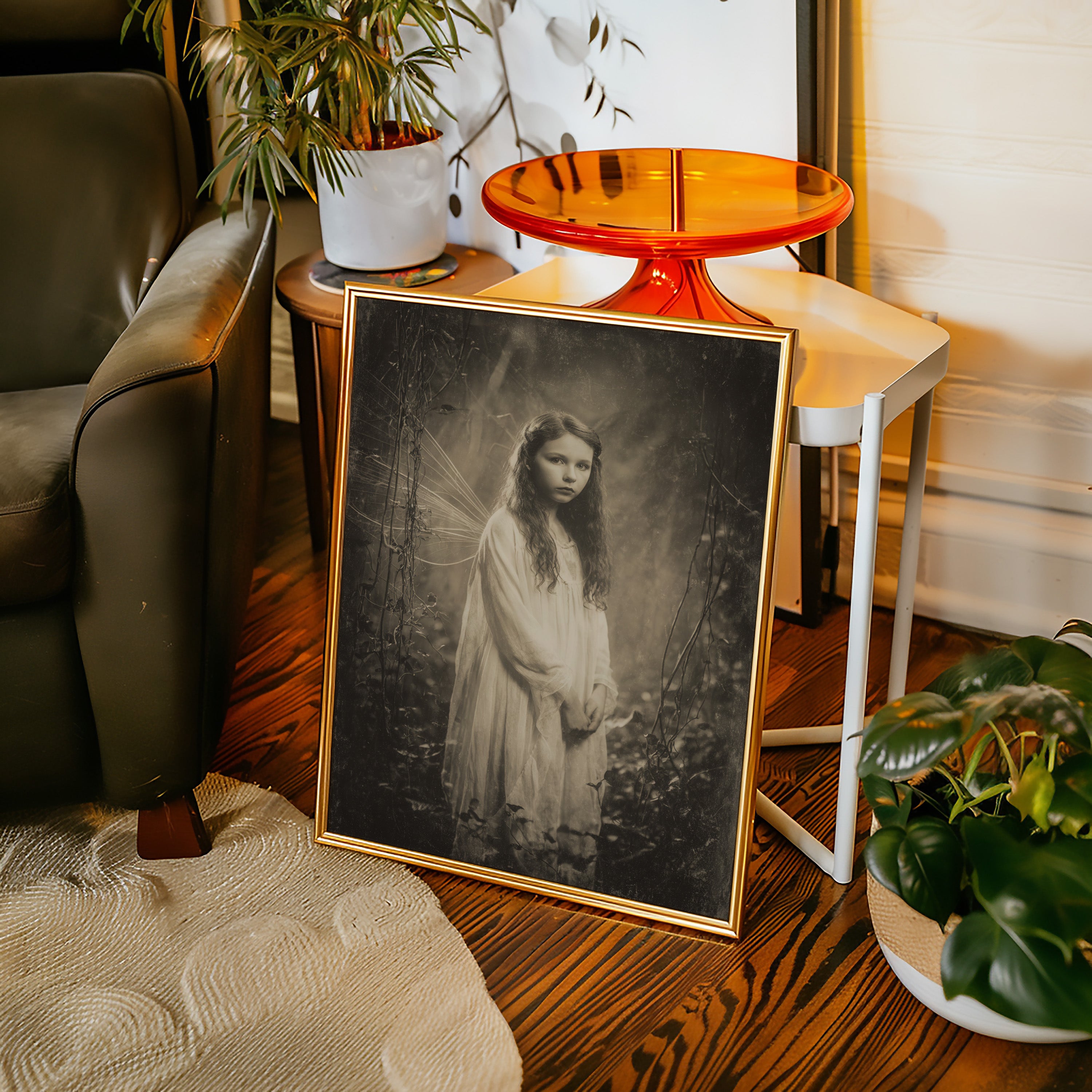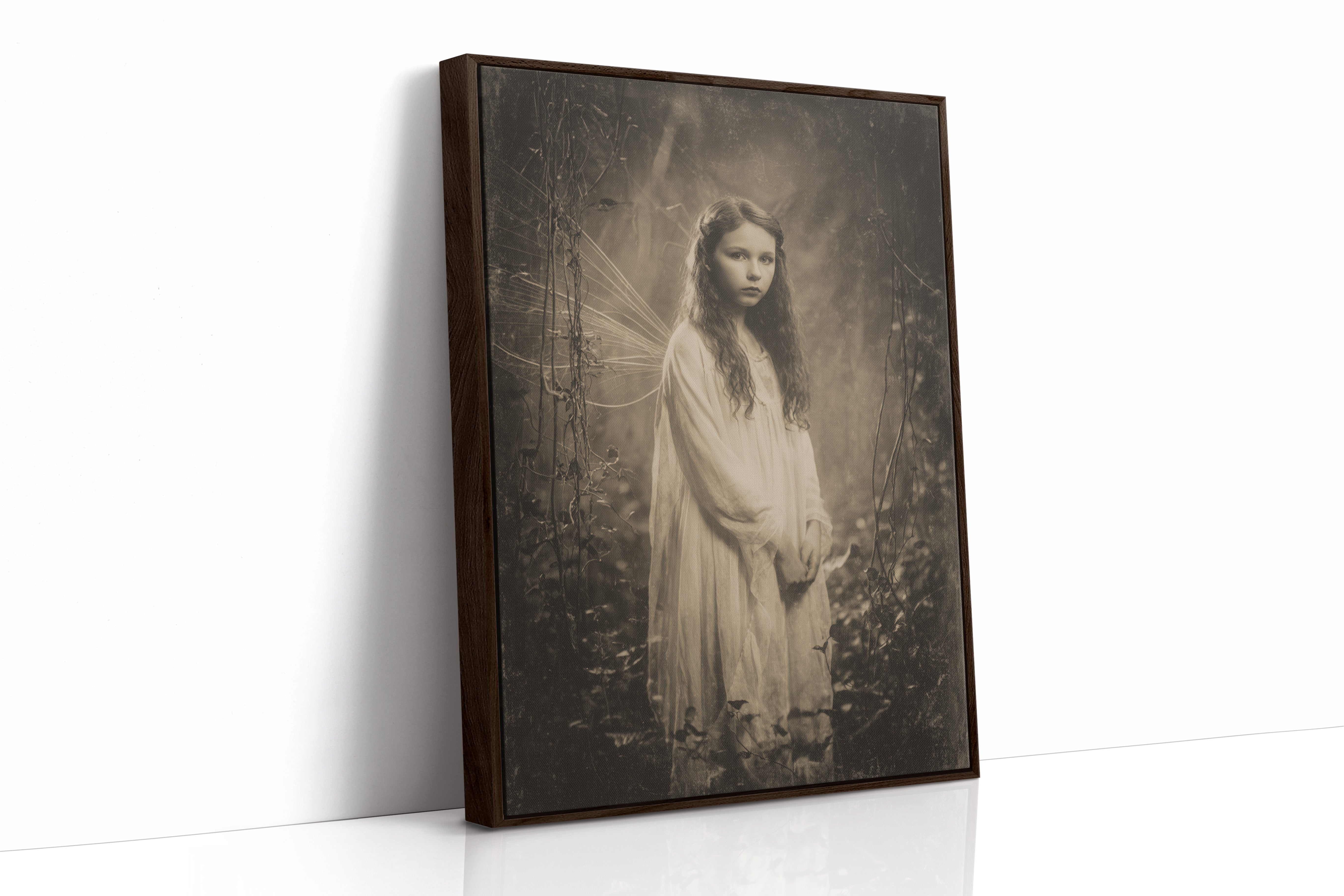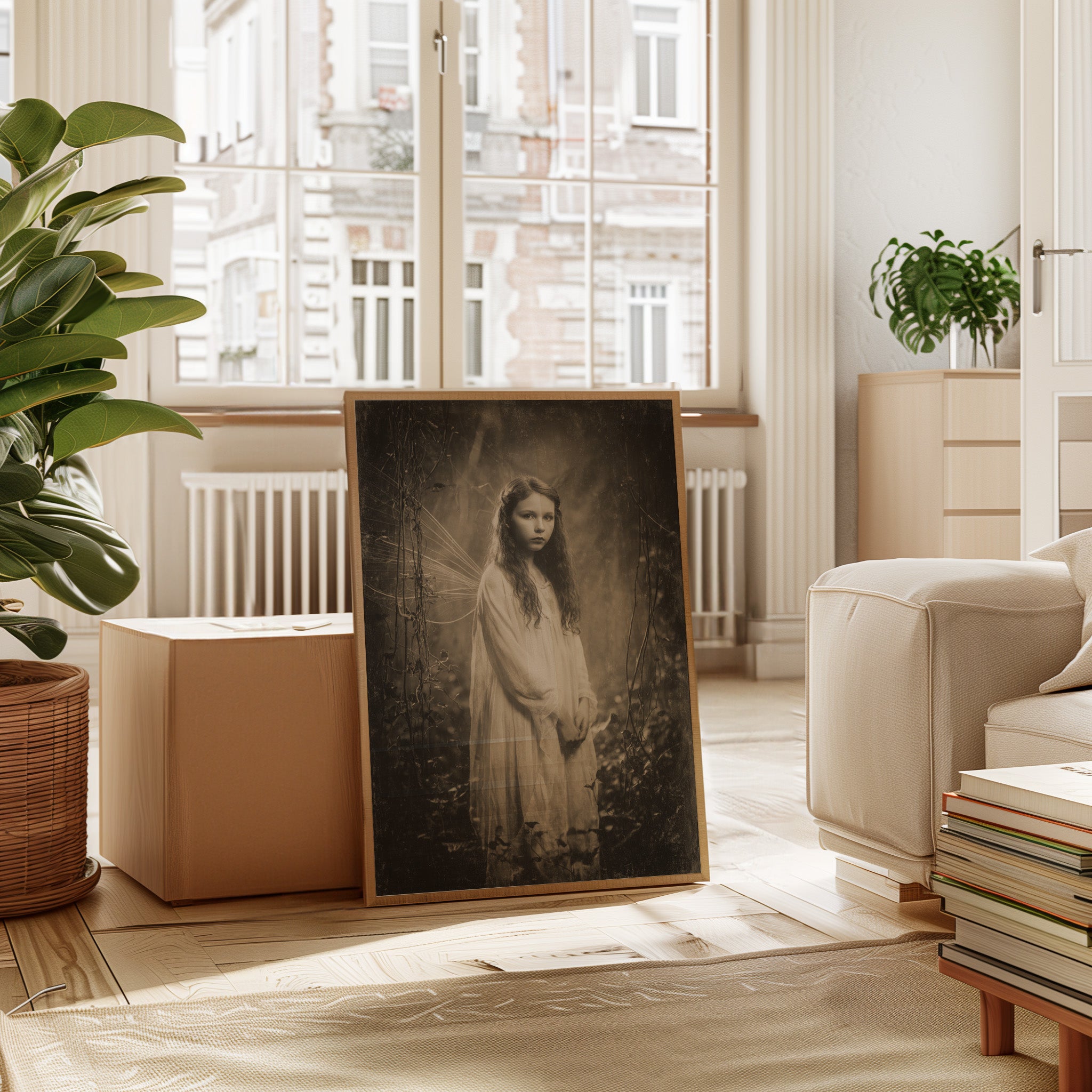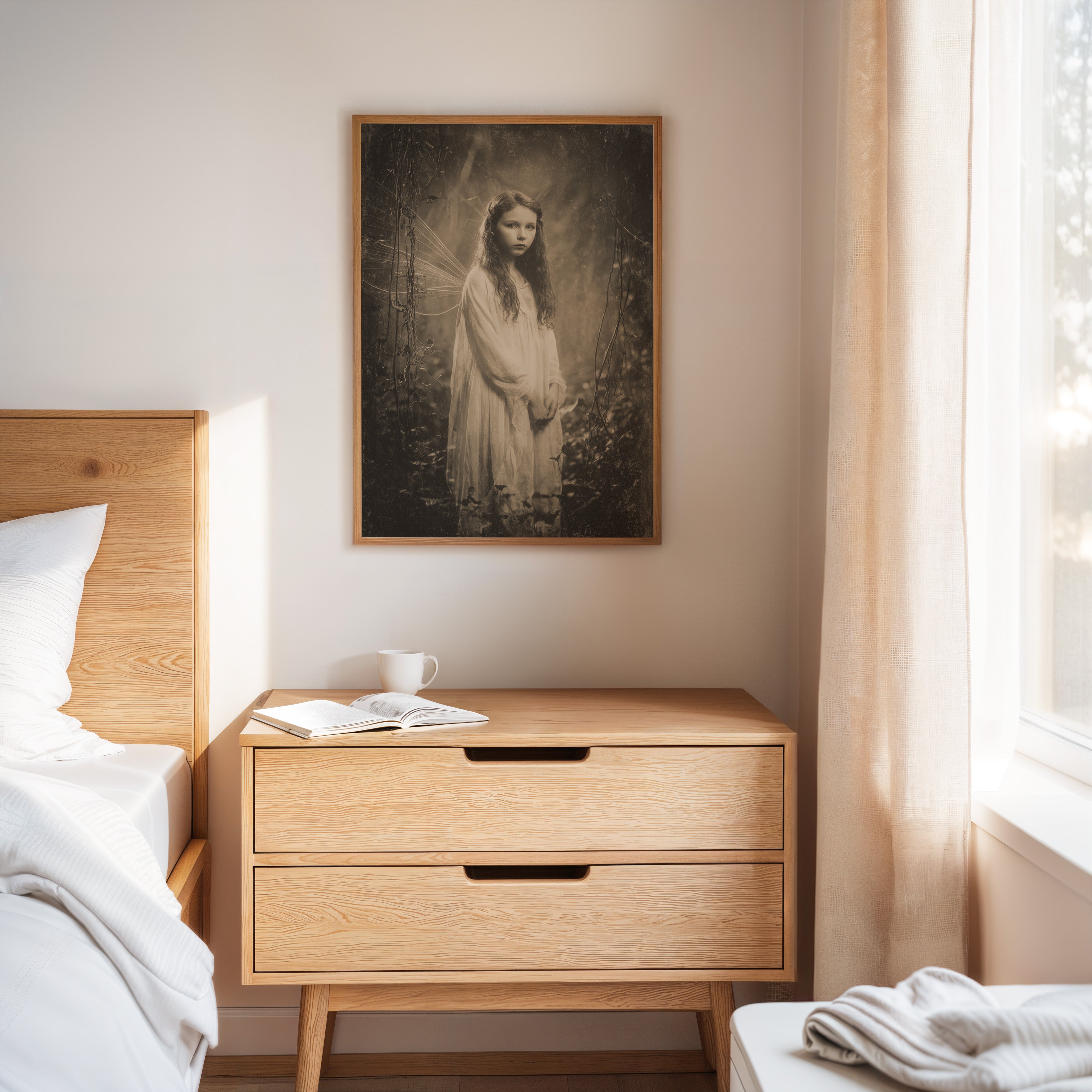 In a realm where magic lingers, a young figure stands, embodying both innocence and strength. This piece captures the essence of the 'Artisanal' collection, where craftsmanship meets ethereal beauty. The soft, flowing fabric of her gown contrasts with the intricate vines encircling her, creating a narrative of nature's embrace. Her solemn gaze invites you into a world of wonder and mystery, perfect for a cozy reading nook or a whimsical child's bedroom.