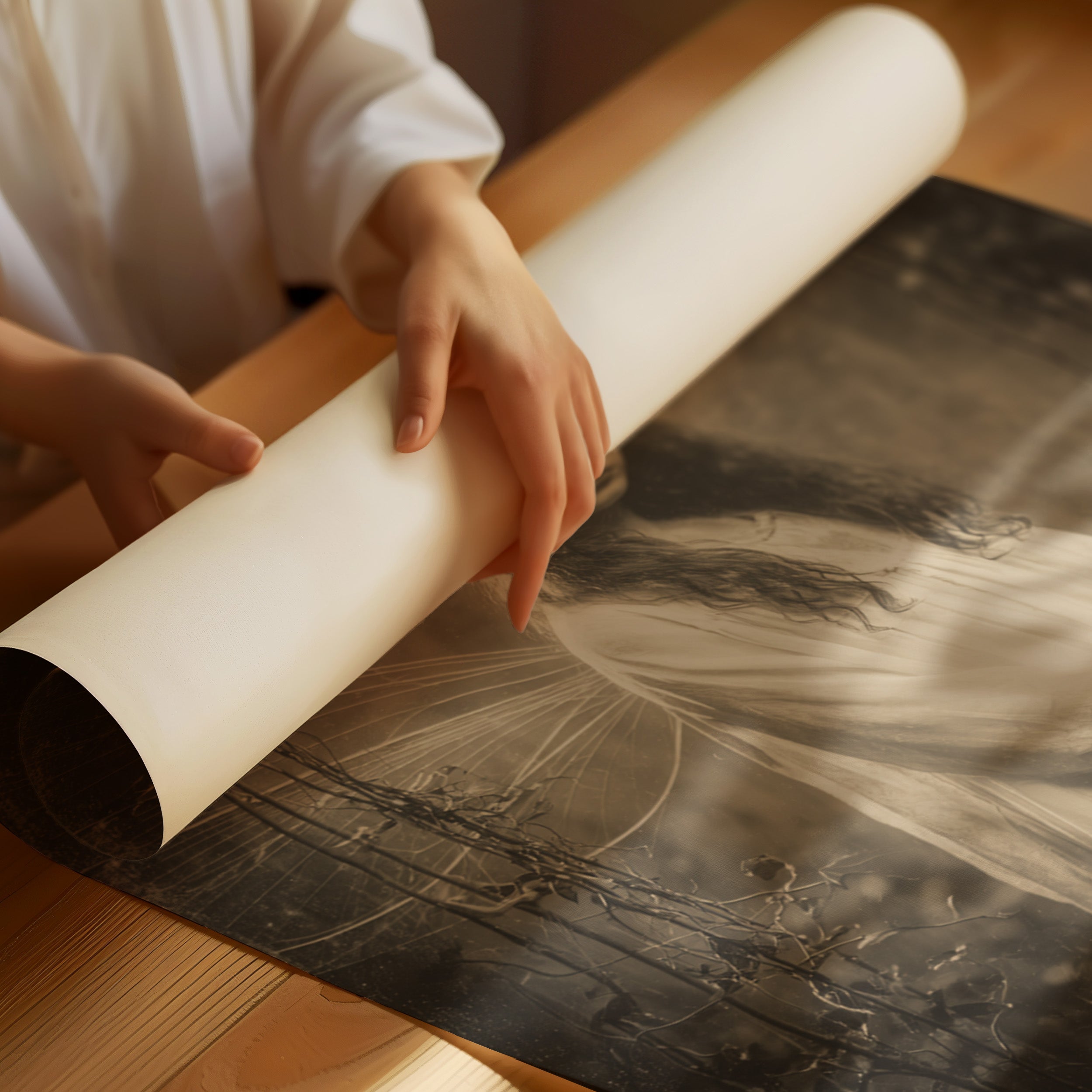 Museum-grade means pigment-based archival inks, acid-free cotton papers, and 100+ year fade resistance—the same standards used by major museums worldwide.