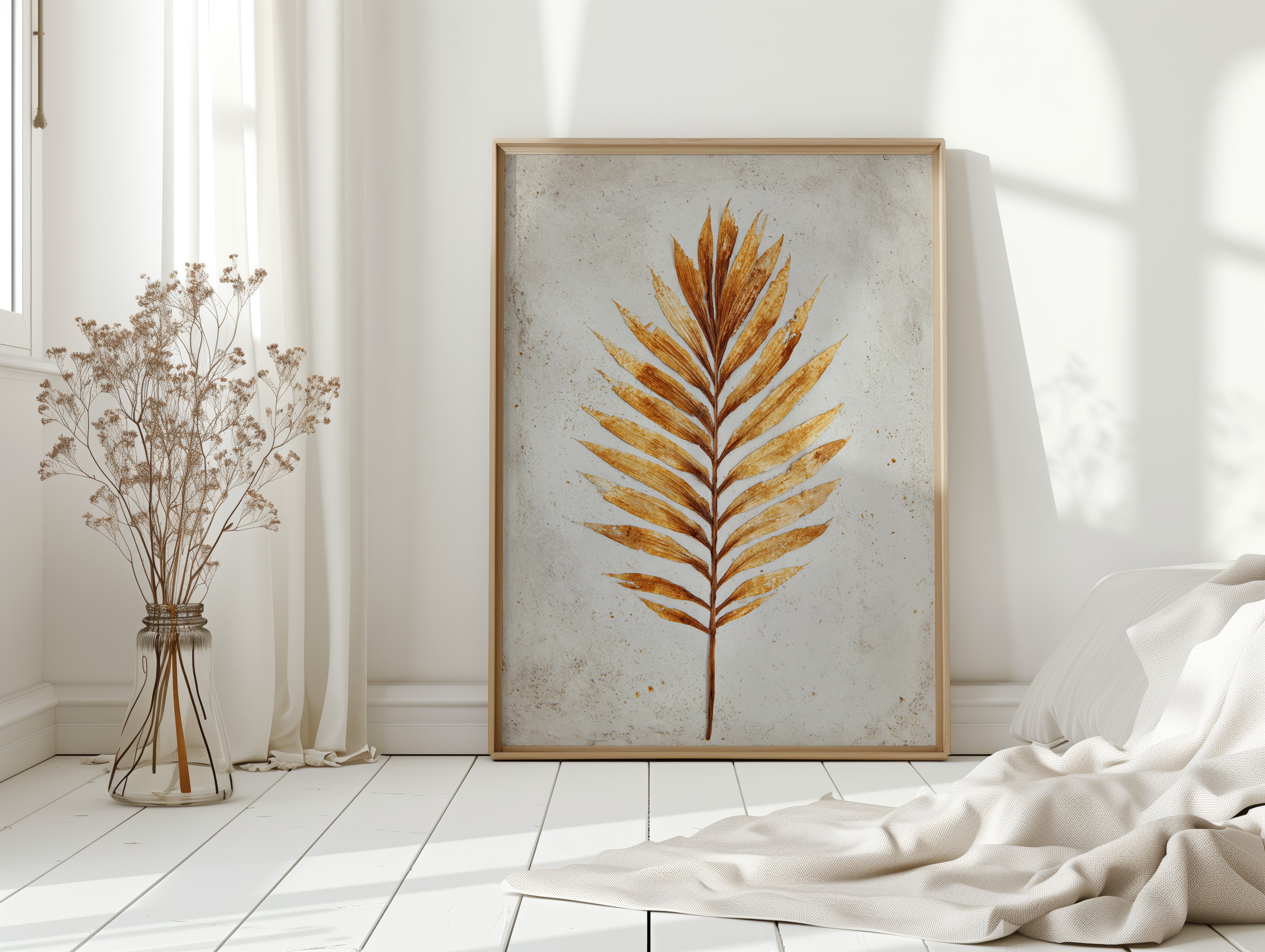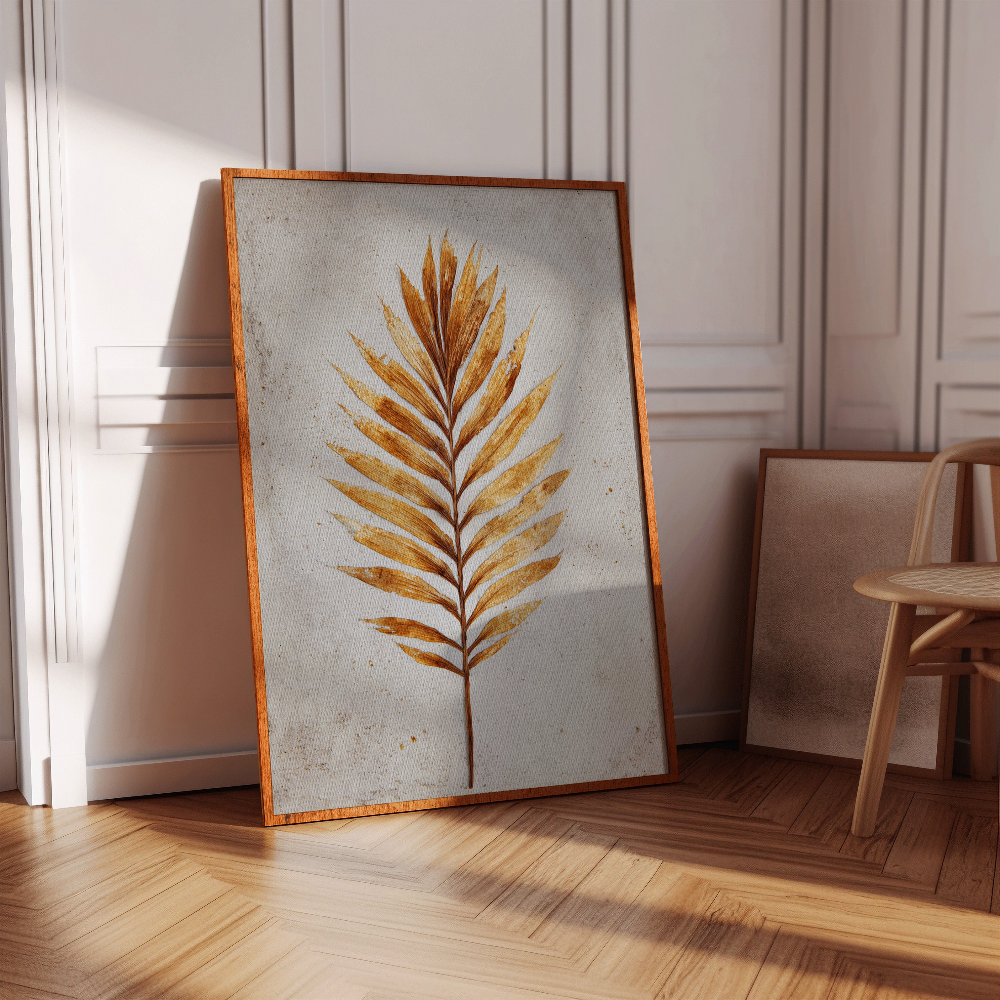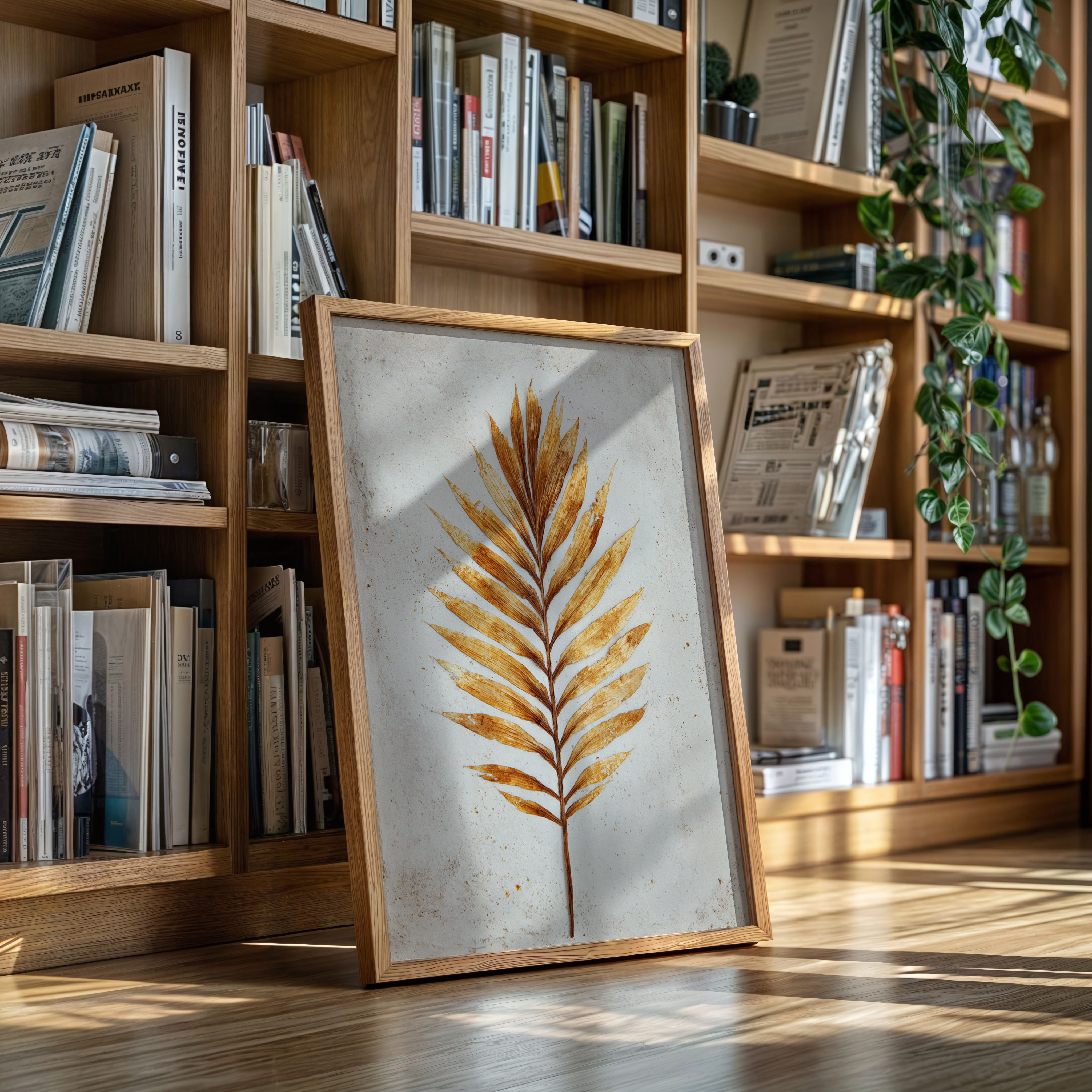 In the gentle caress of sunlight, a golden frond unfurls, capturing the essence of nature's artistry. This piece embodies the artisanal spirit, where organic forms meet refined elegance. Each delicate vein tells a story of resilience, painted in hues of amber and ochre, evoking the warmth of autumn and the whispers of long-forgotten tales. Imagine this piece gracing a serene reading nook or a peaceful entryway, inviting tranquility into your space.