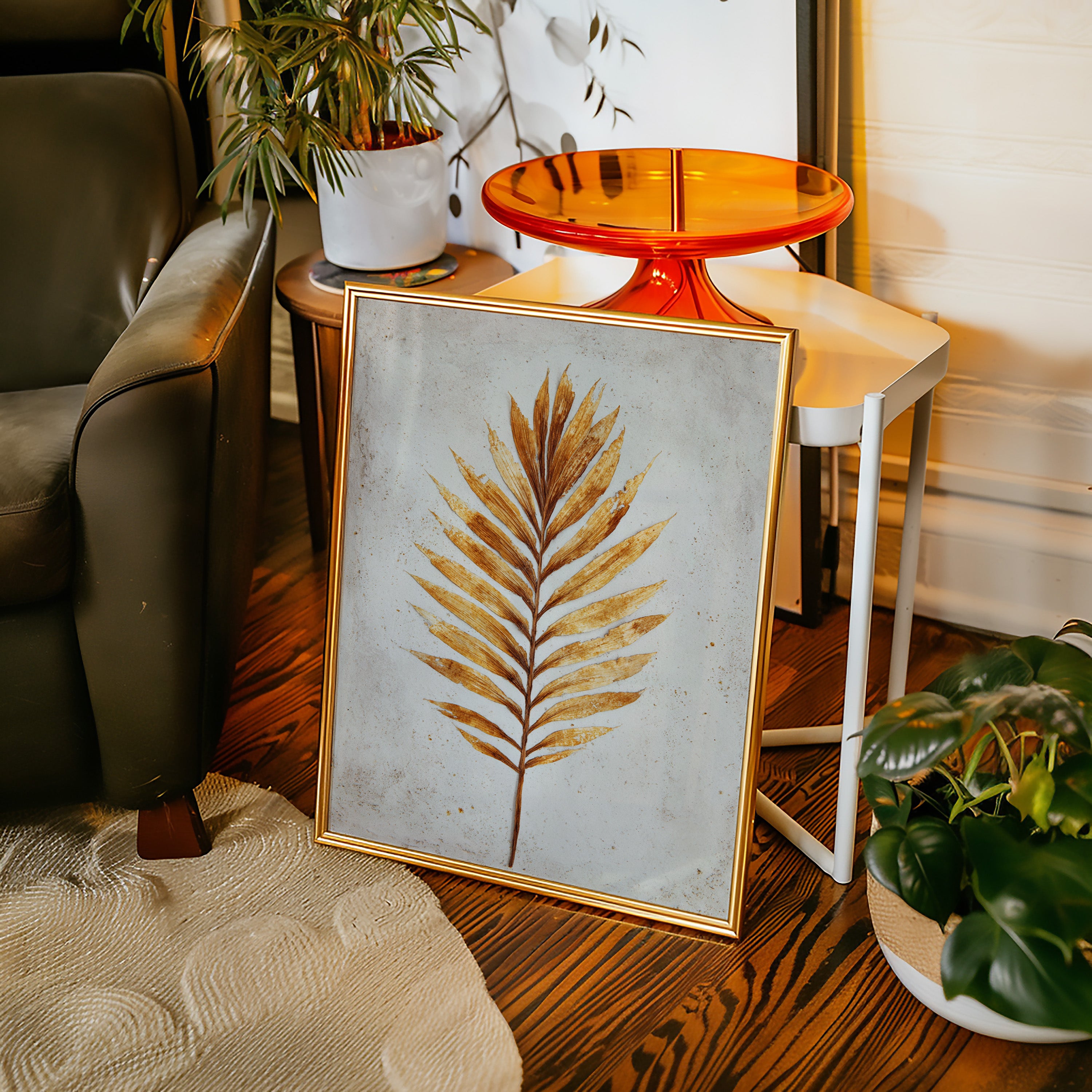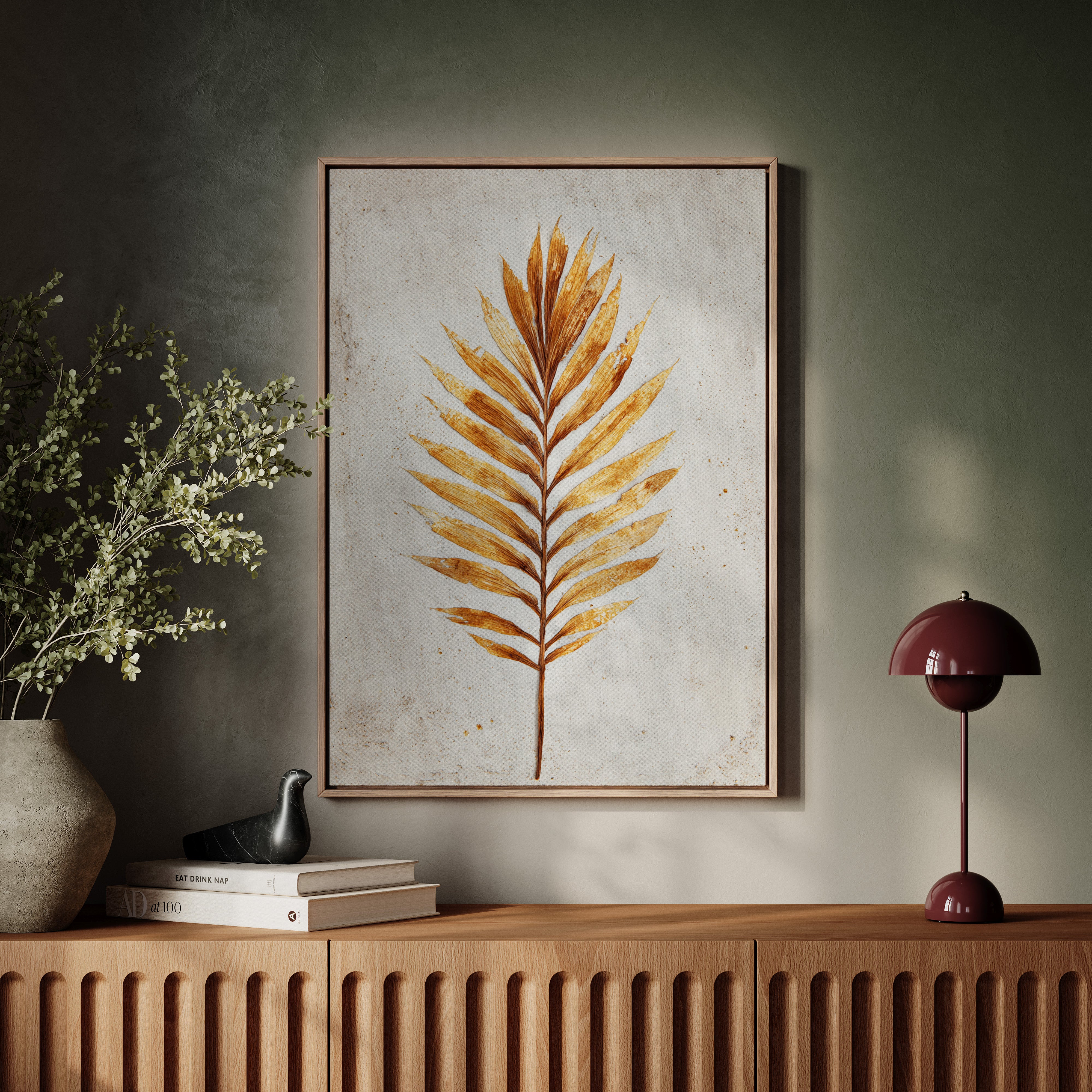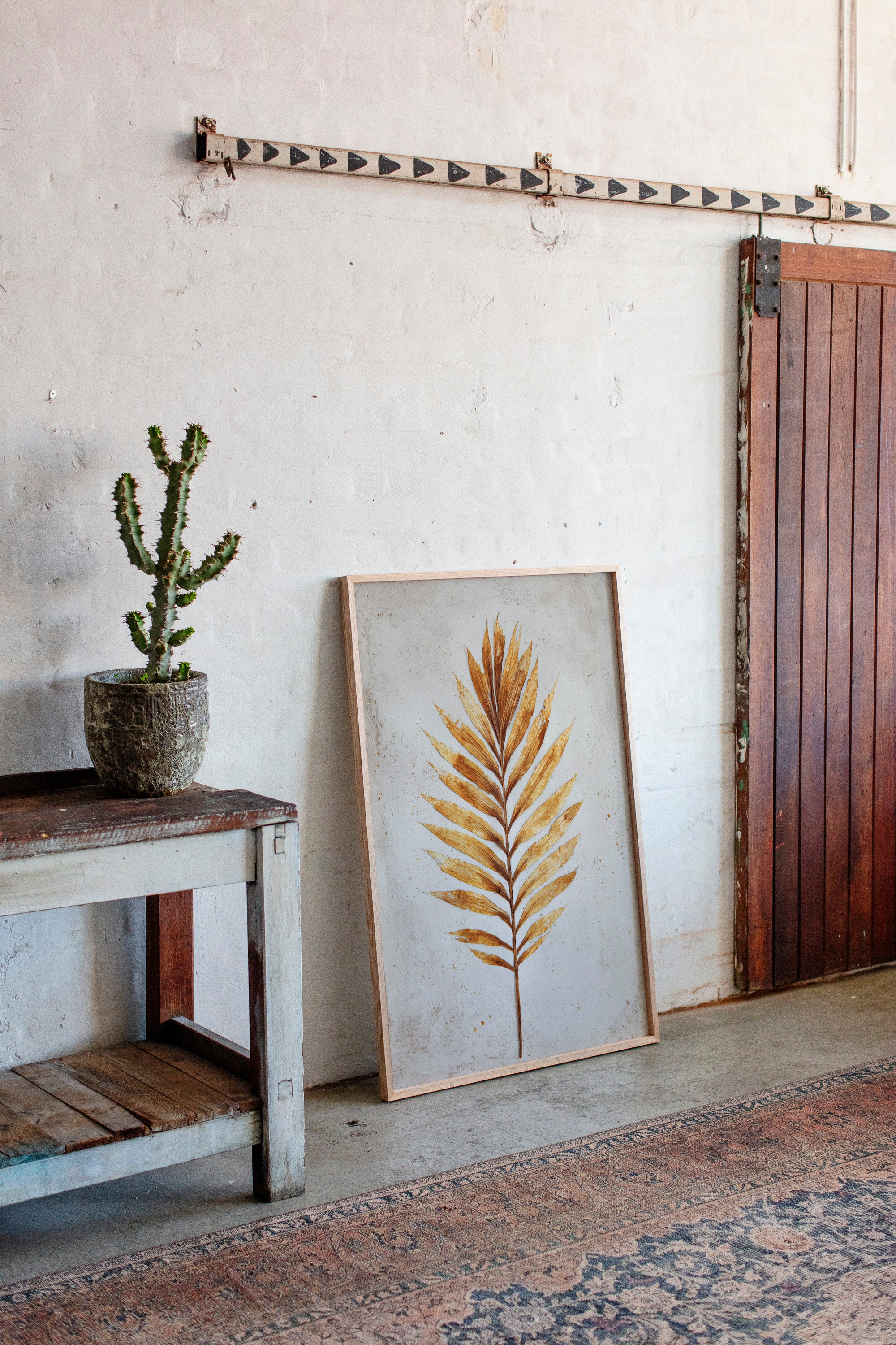 In the gentle caress of sunlight, a golden frond unfurls, capturing the essence of nature's artistry. This piece embodies the artisanal spirit, where organic forms meet refined elegance. Each delicate vein tells a story of resilience, painted in hues of amber and ochre, evoking the warmth of autumn and the whispers of long-forgotten tales. Imagine this piece gracing a serene reading nook or a peaceful entryway, inviting tranquility into your space.