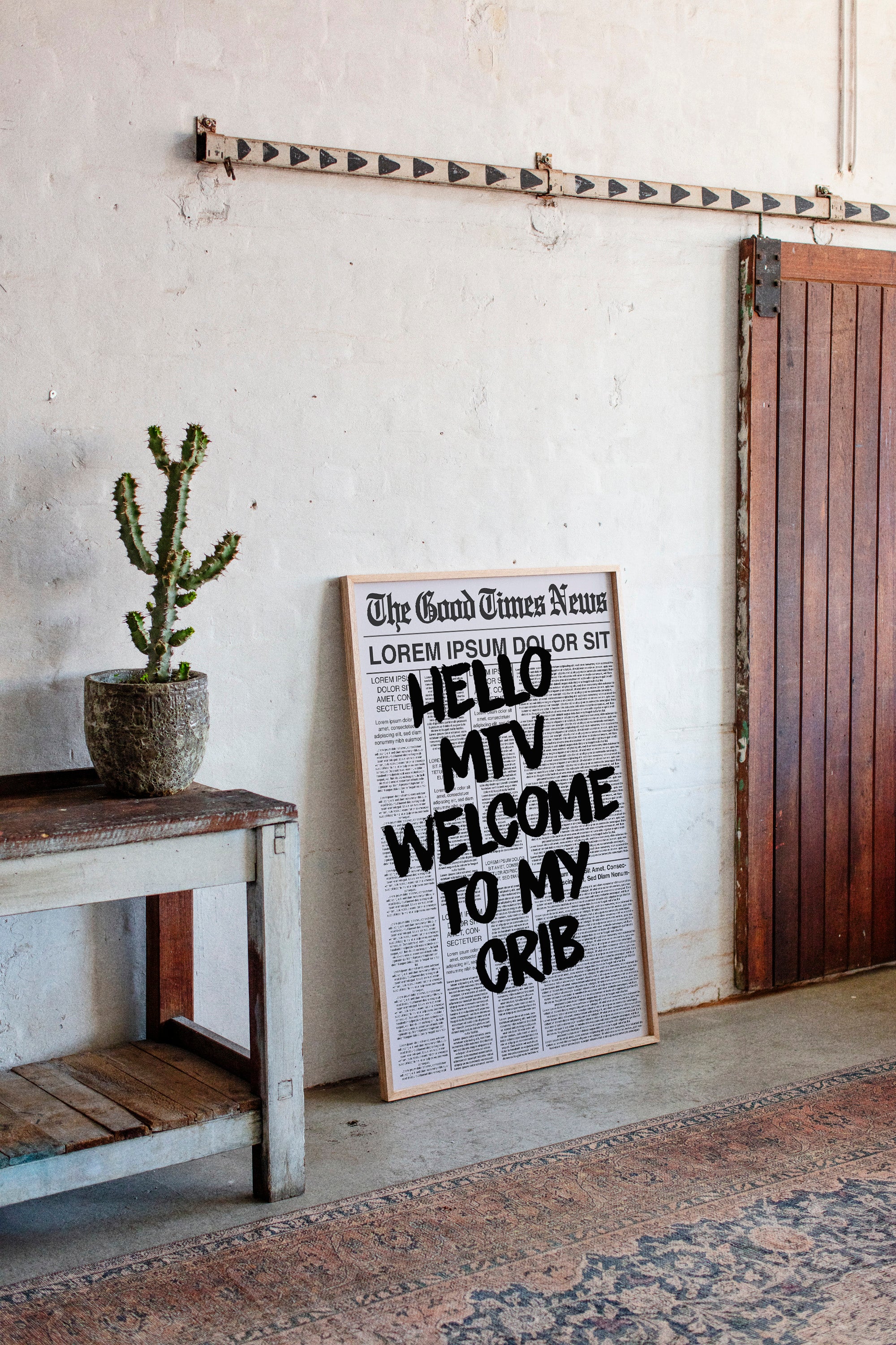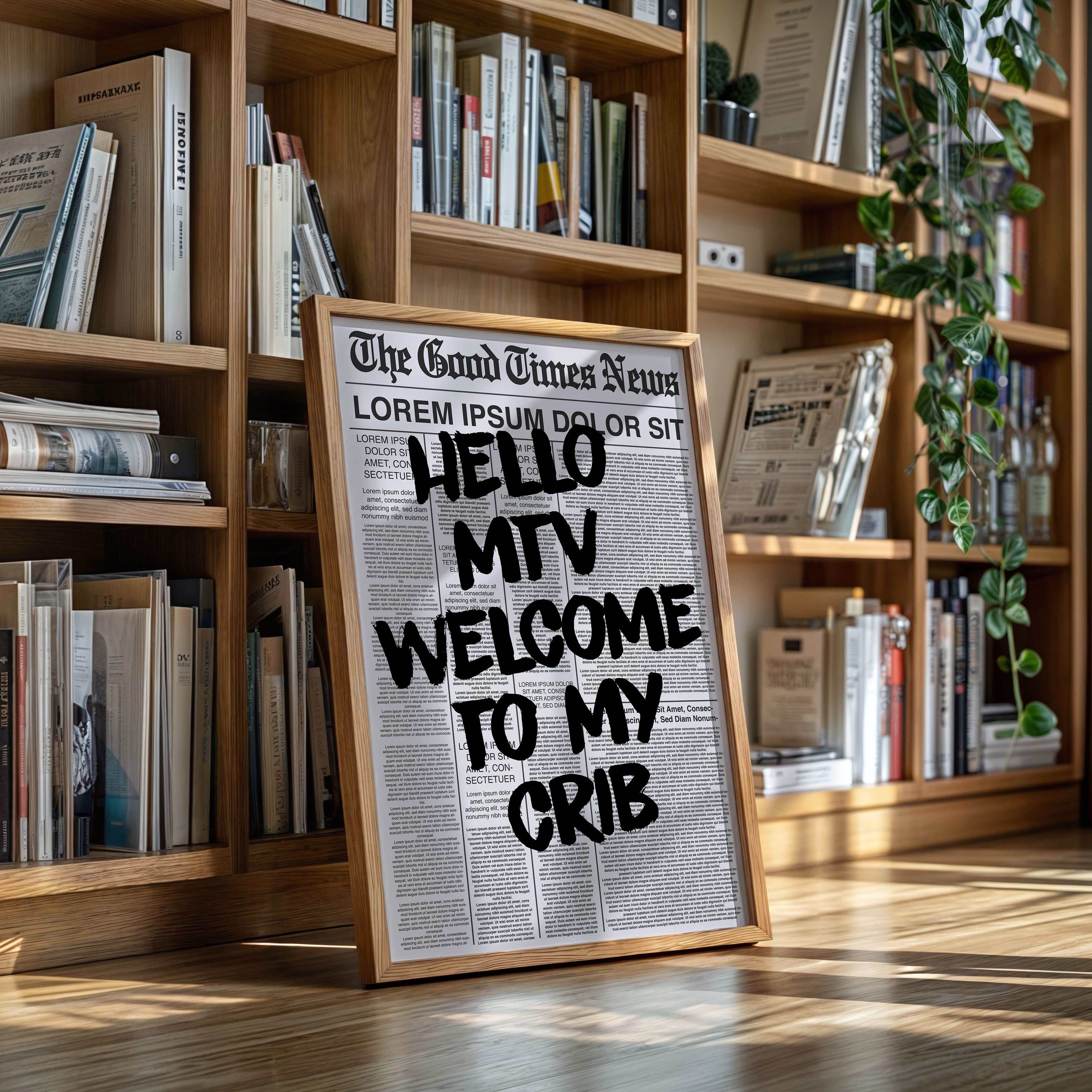 Bold strokes of rebellion dance across vintage newsprint, transforming traditional media into a playful modern statement. This piece from our Contemporary collection masterfully blends street art attitude with classic newspaper aesthetics. The stark contrast between the formal typography of the newspaper header and the rebellious graffiti-style message creates an engaging visual dialogue about communication in the modern age. Natural light streams across the scene, highlighting the warm wooden frame and creating an inviting morning ambiance. Perfect for adding personality to a home office, creative studio, or any space that celebrates the intersection of classic and contemporary expression. The piece invites daily inspiration while maintaining sophisticated visual appeal.